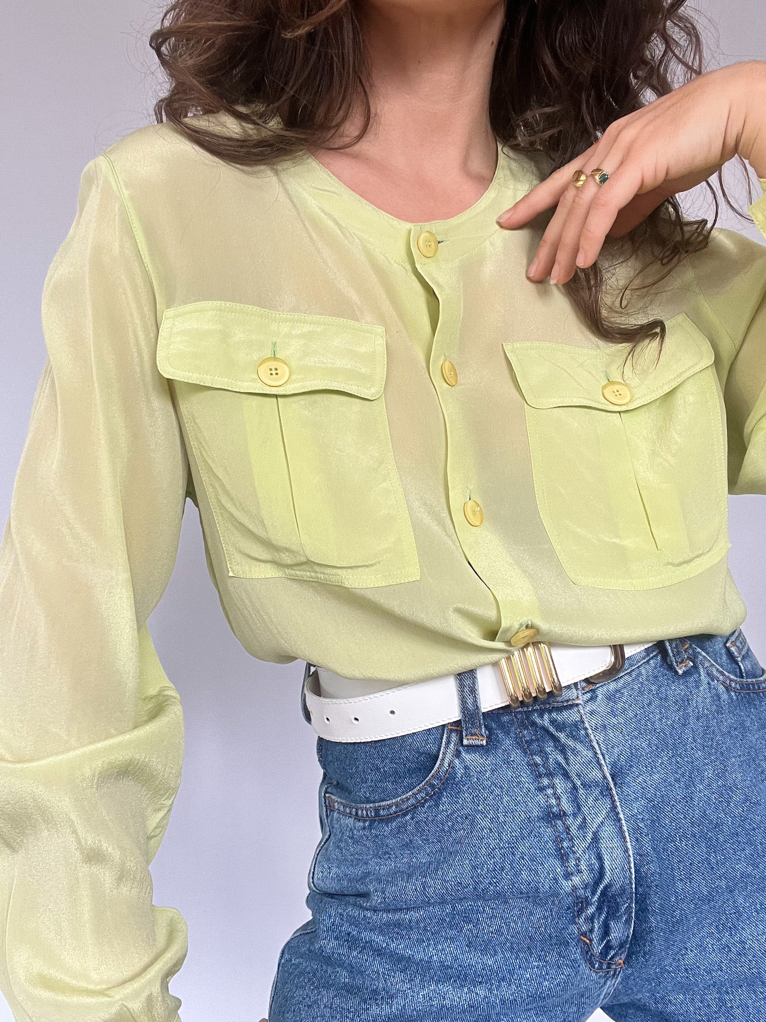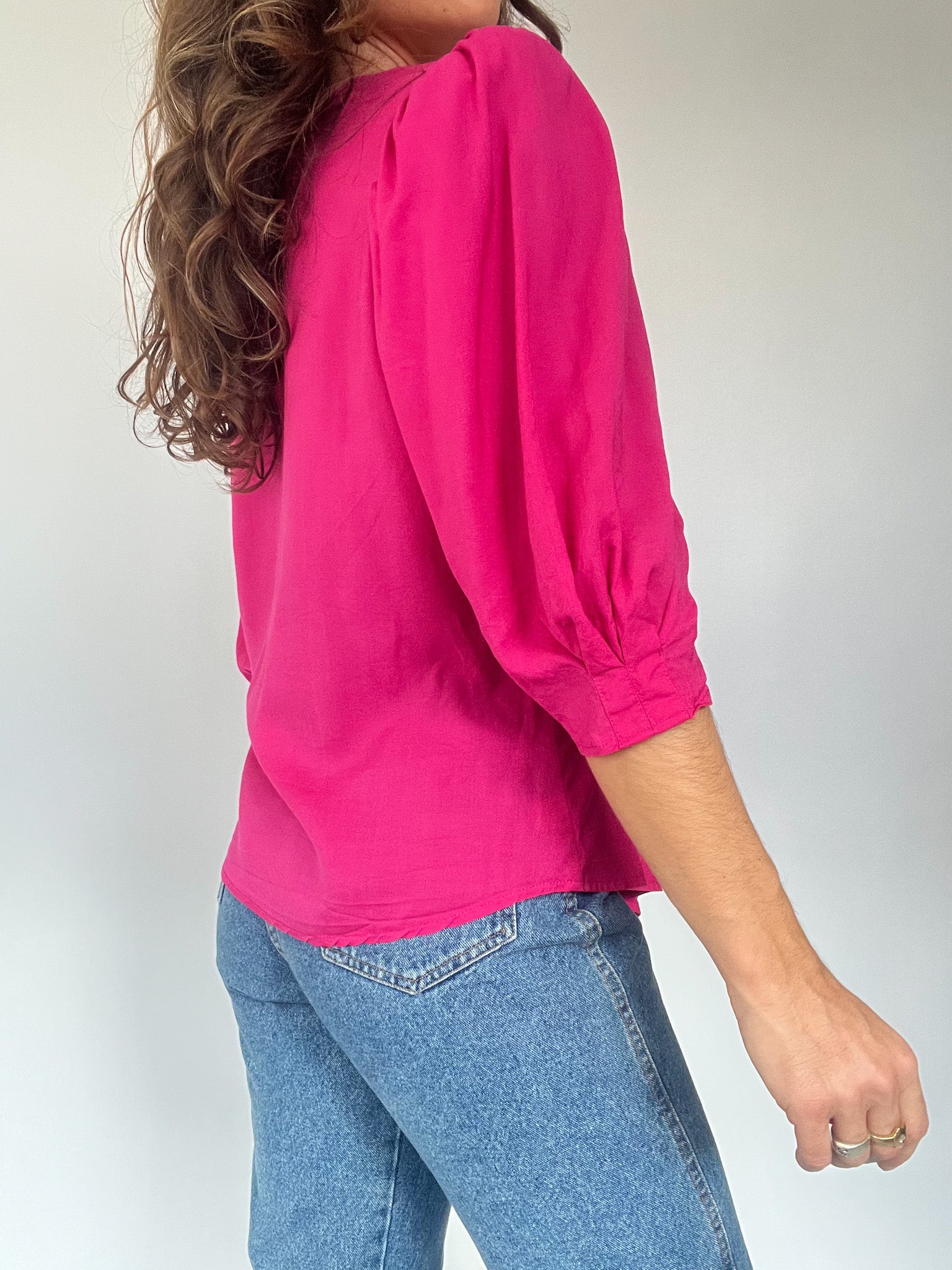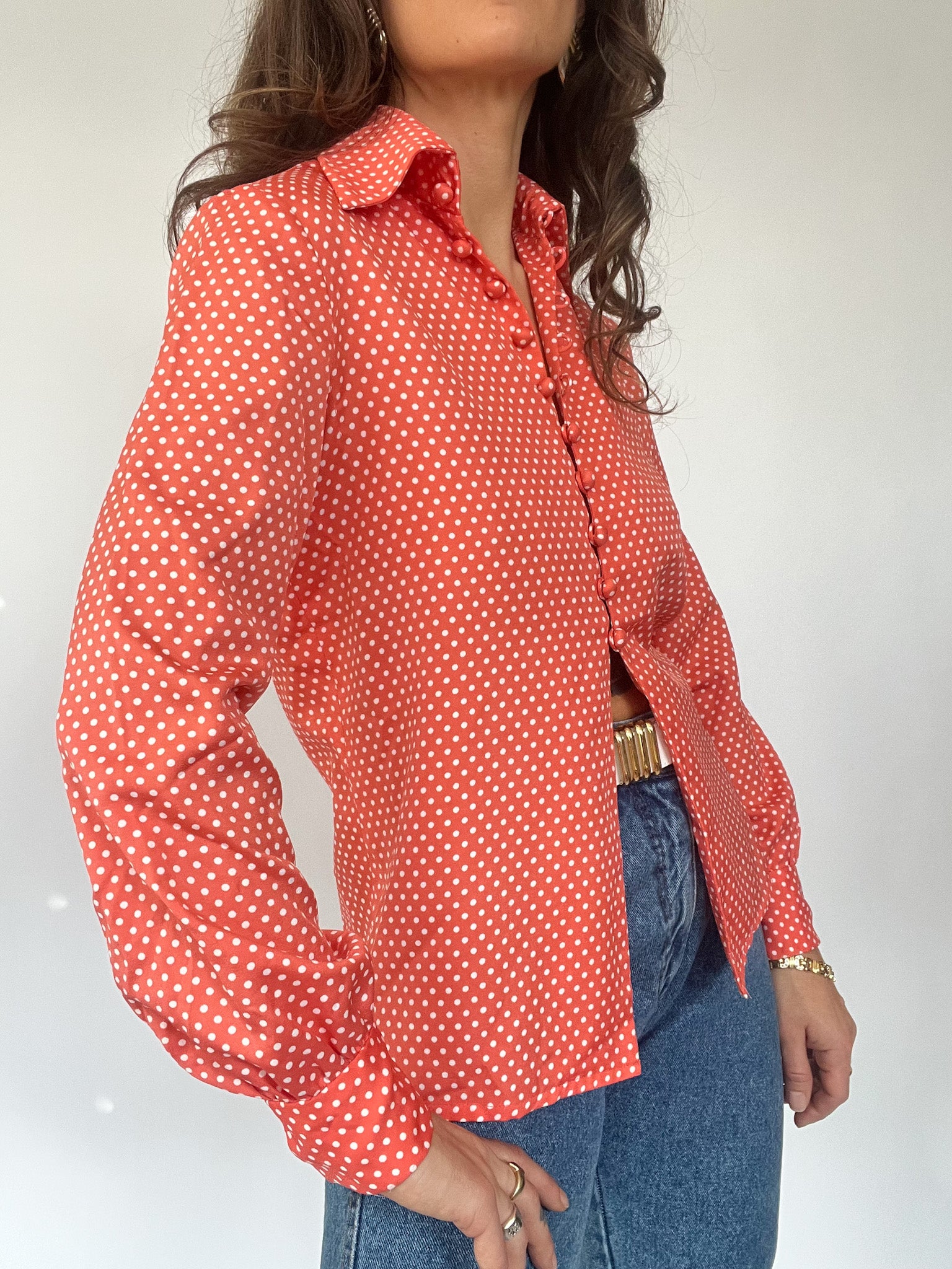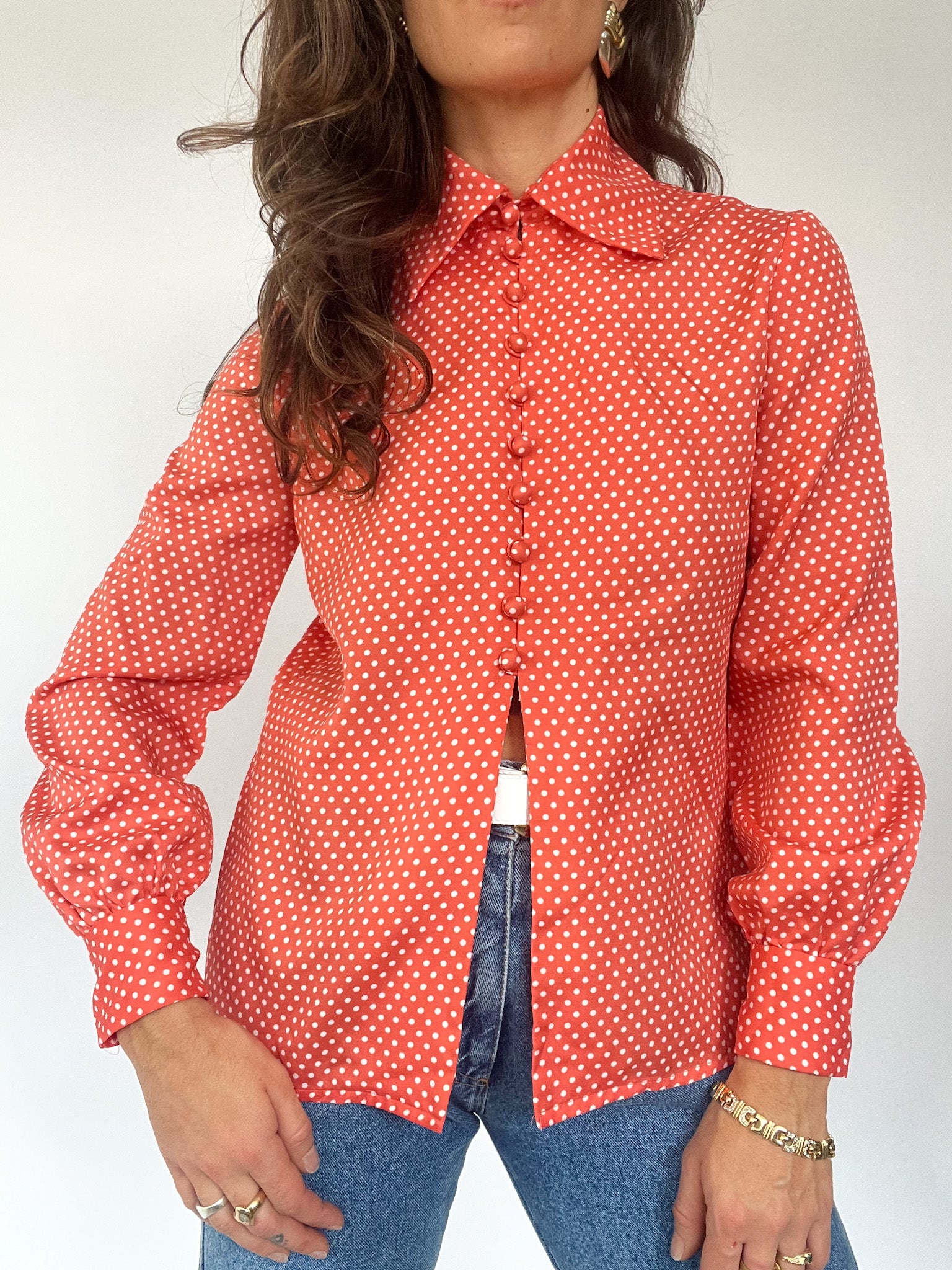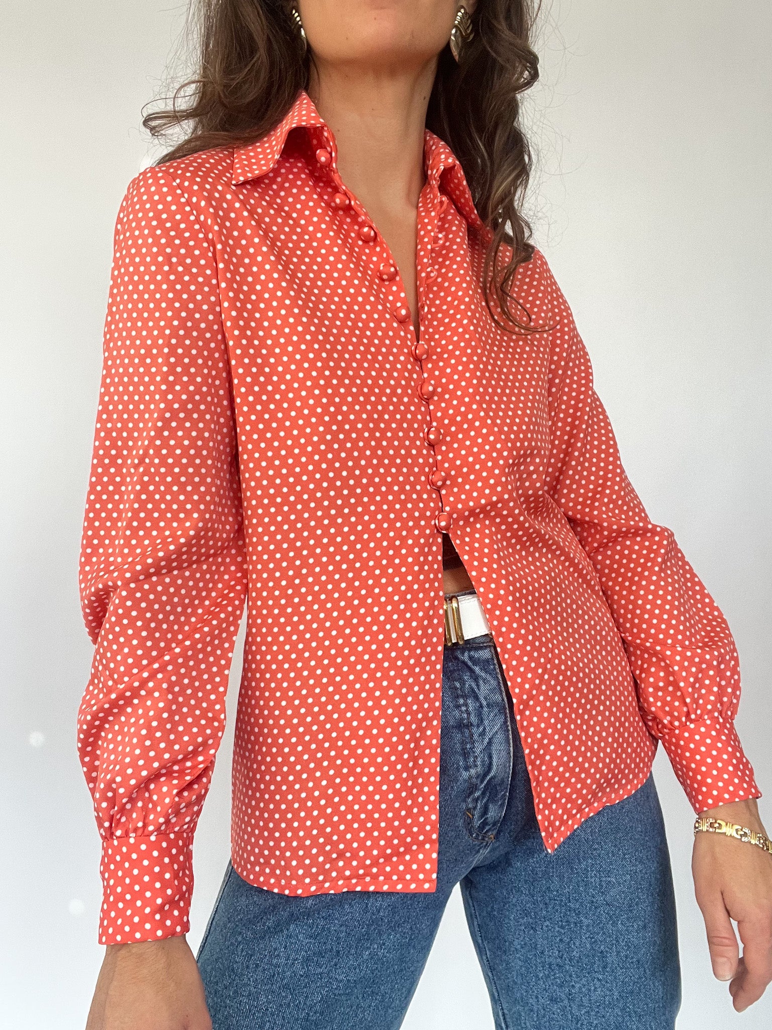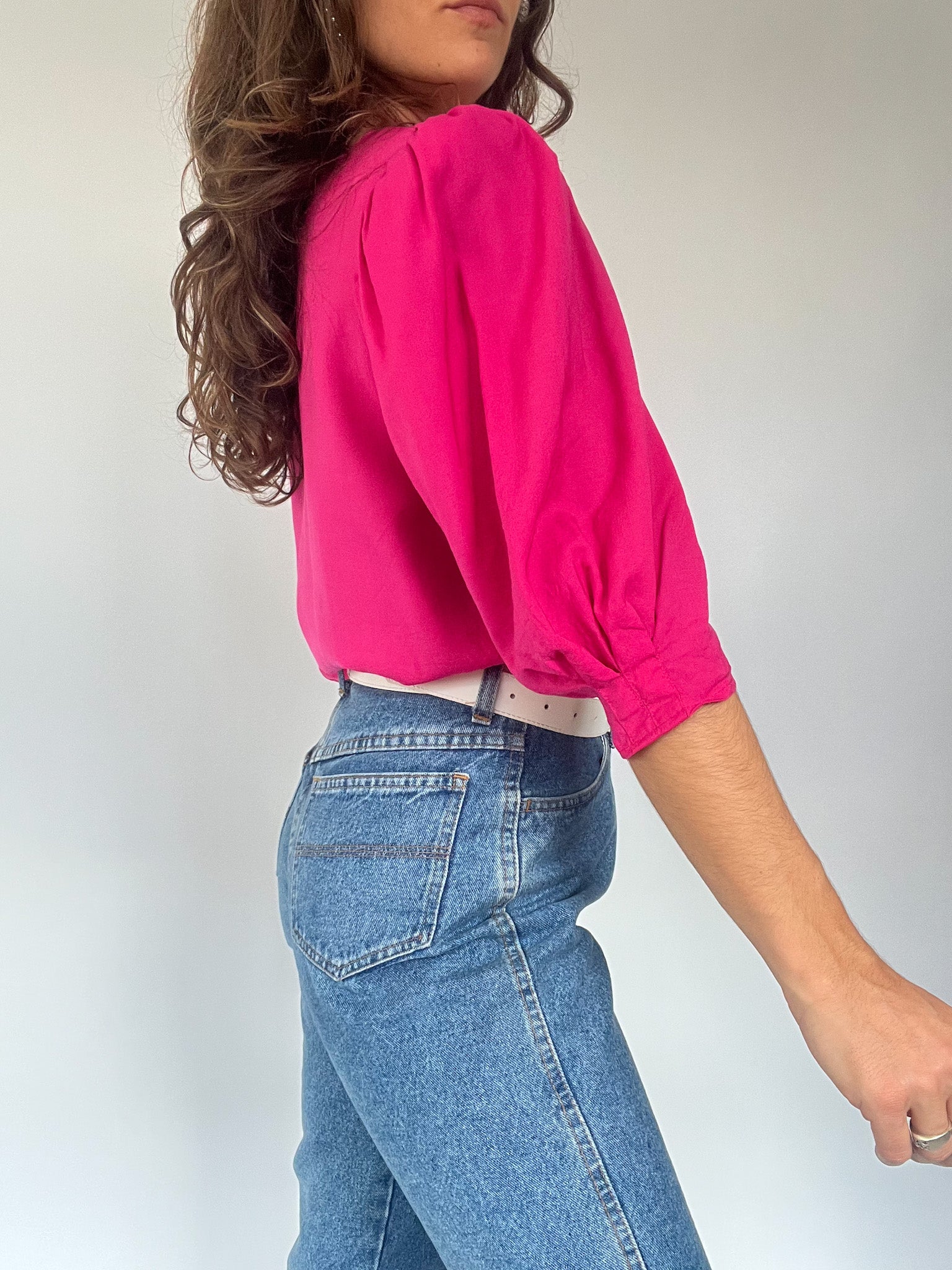 Vintage Pink Shirt with Geometric Cut-Out Collar