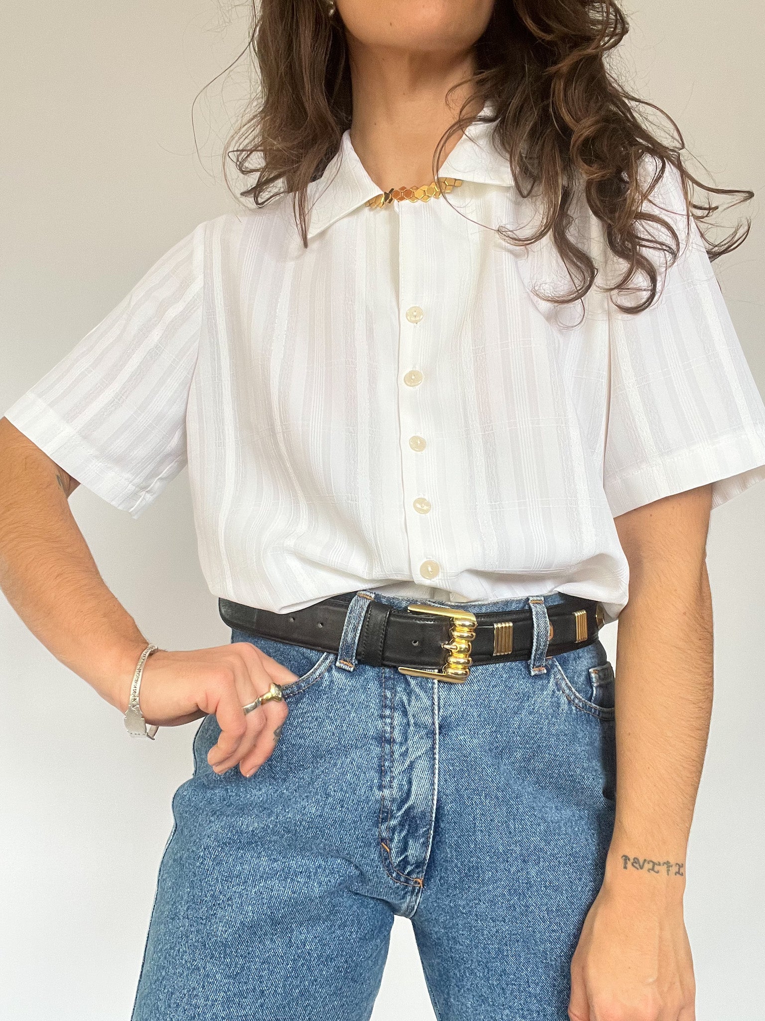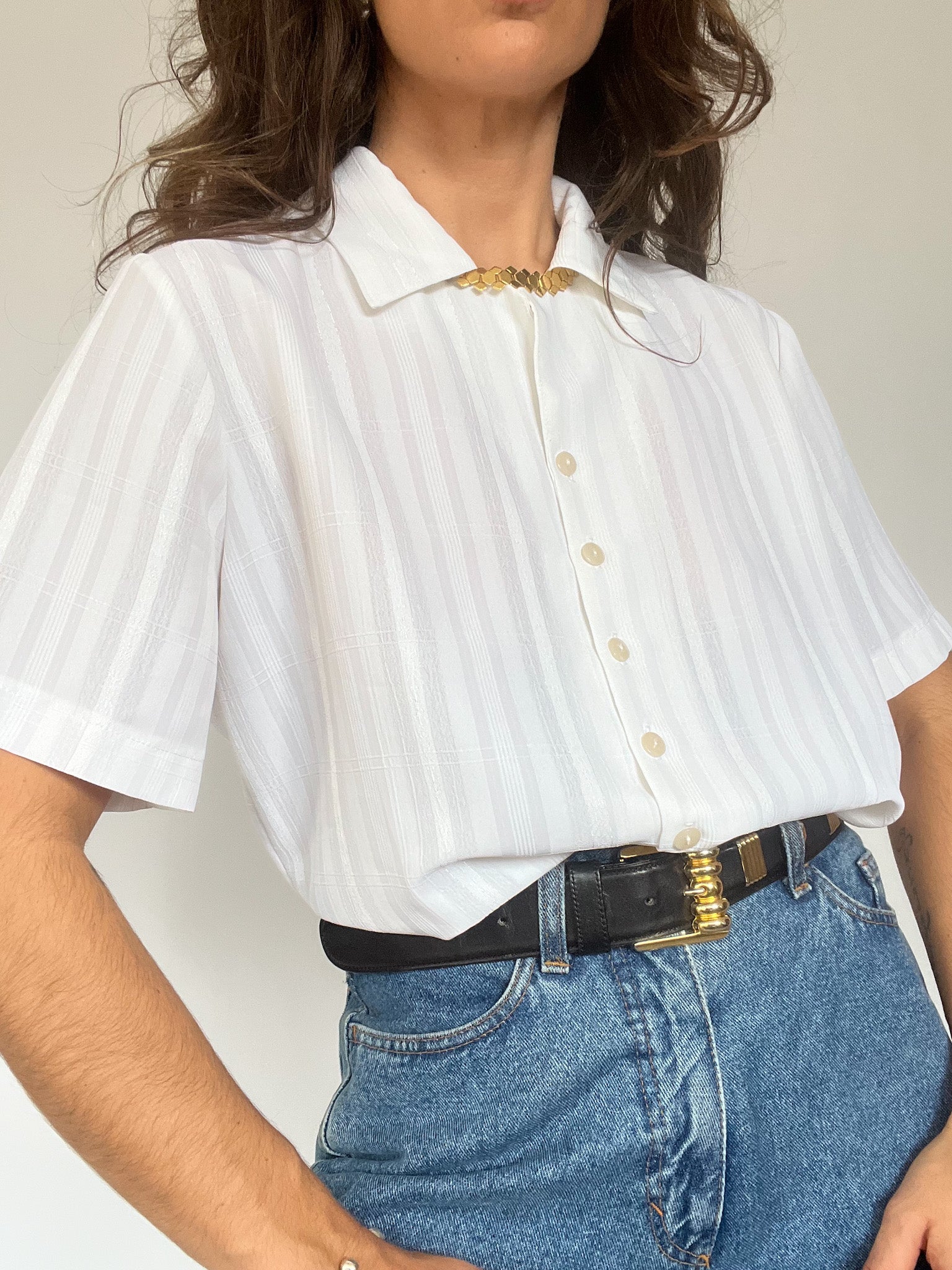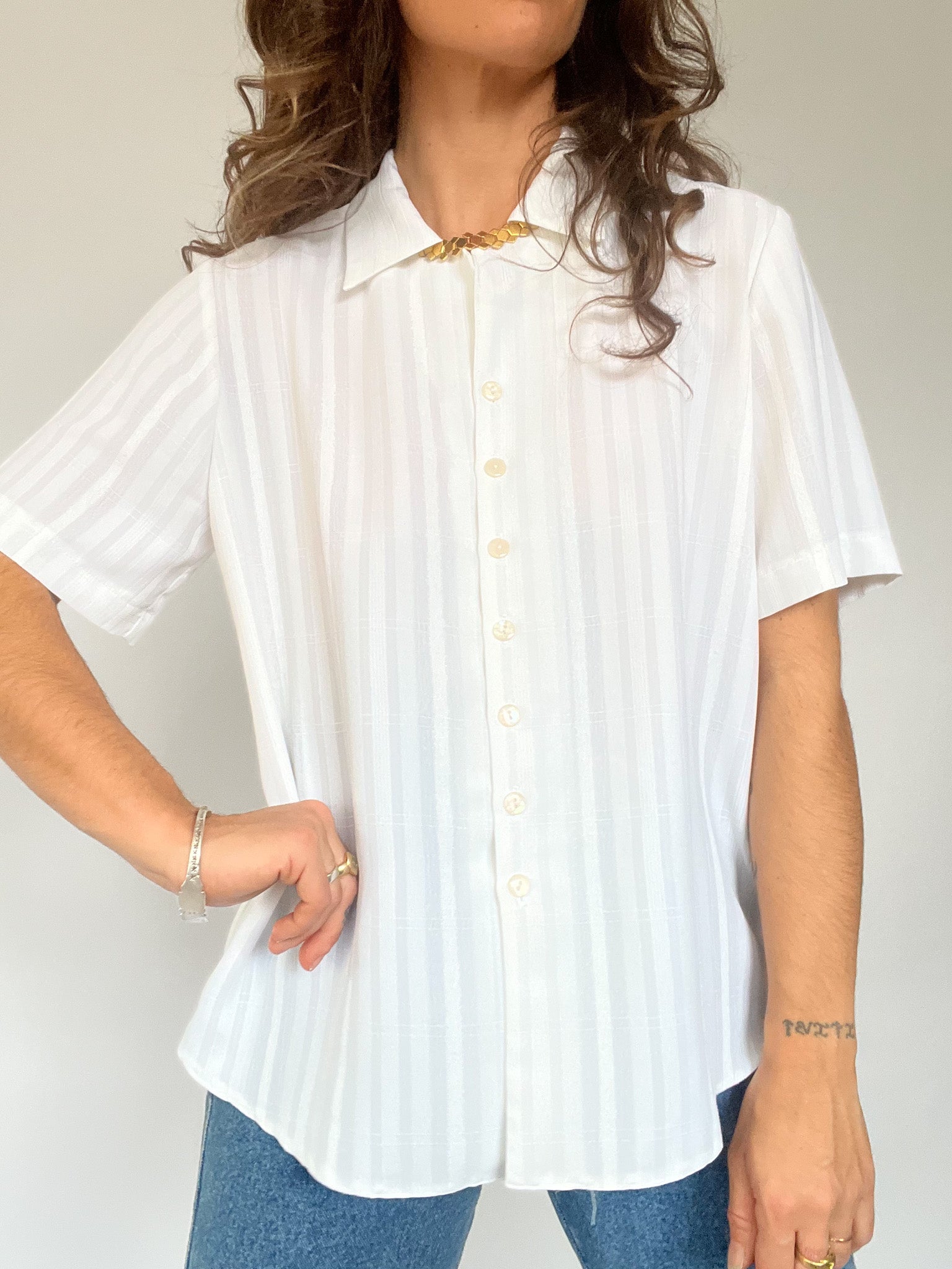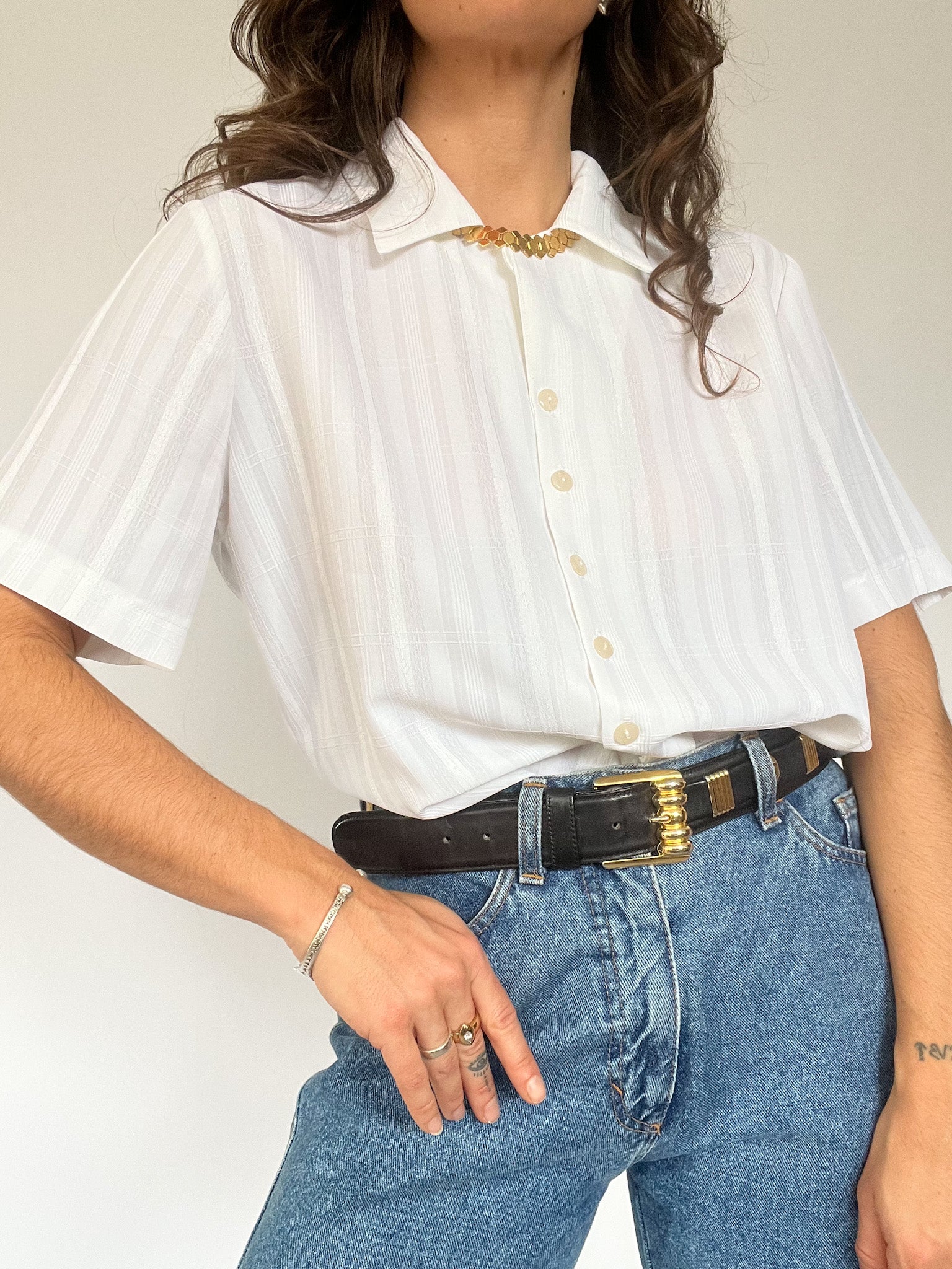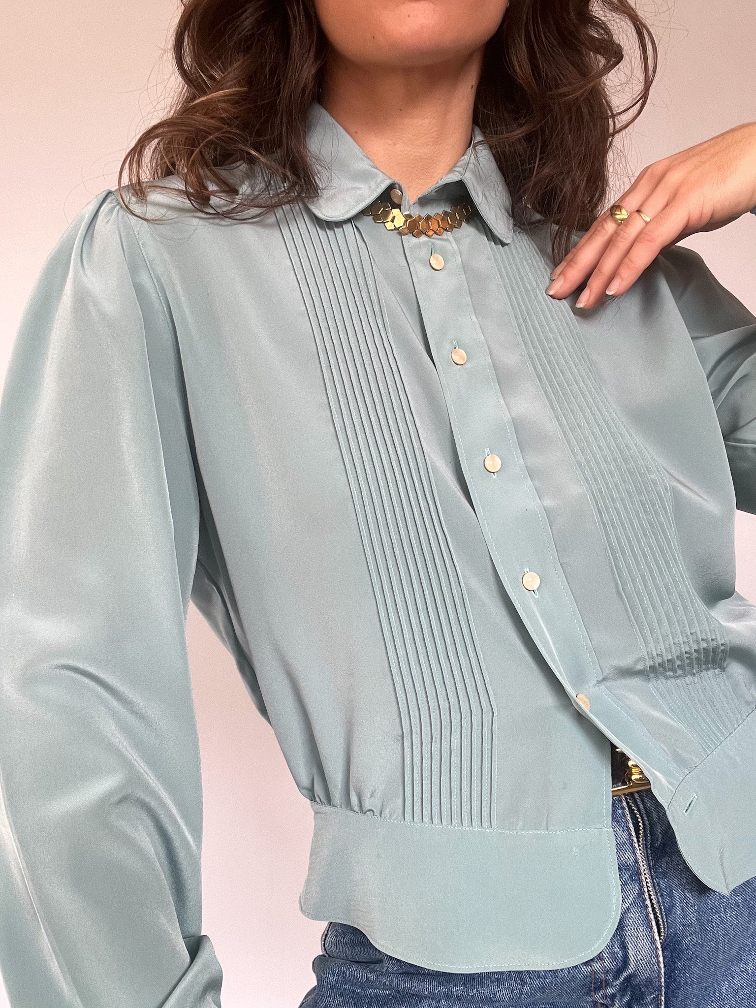 Vintage Pink Shirt with Geometric Cut-Out Collar