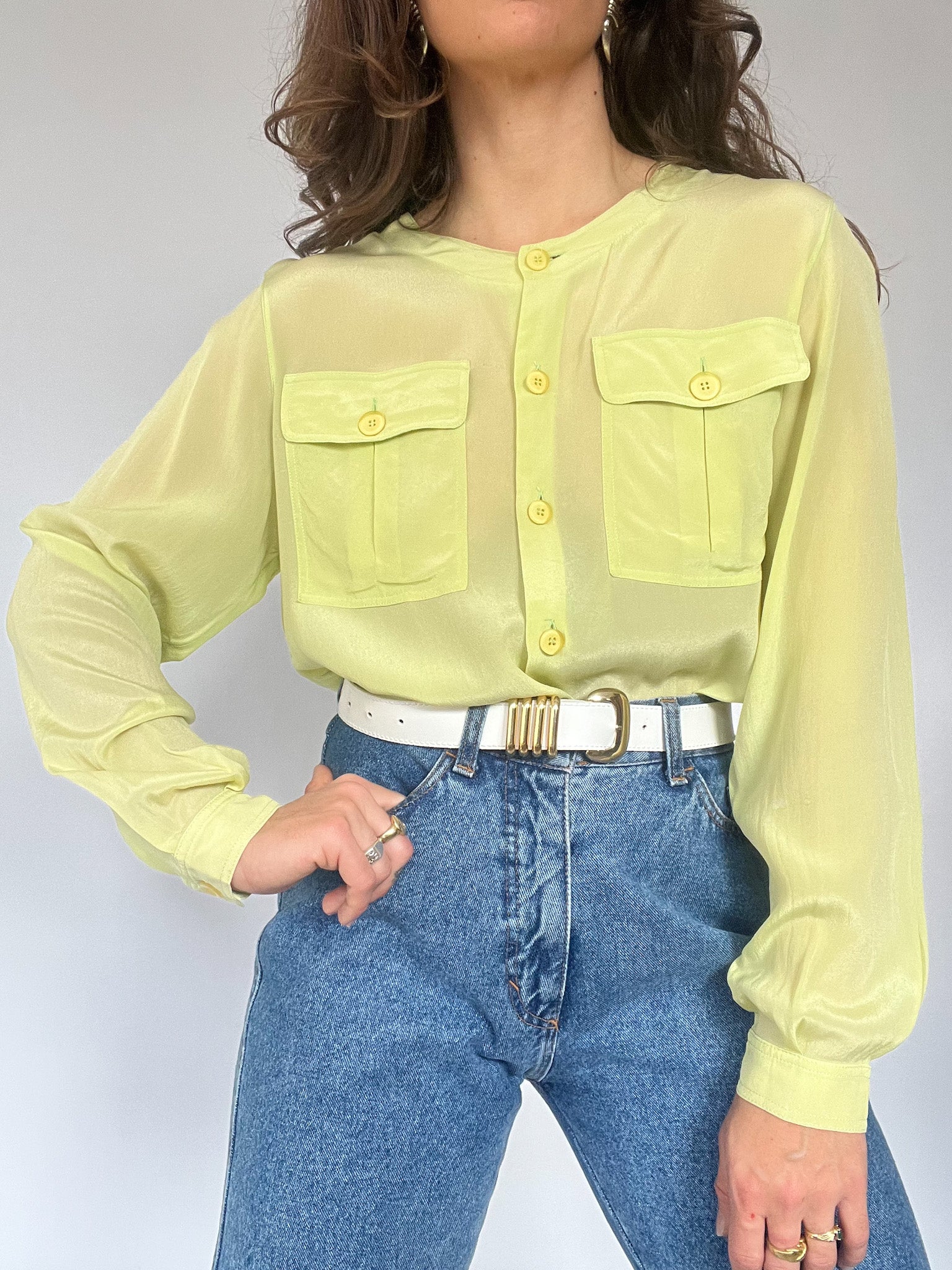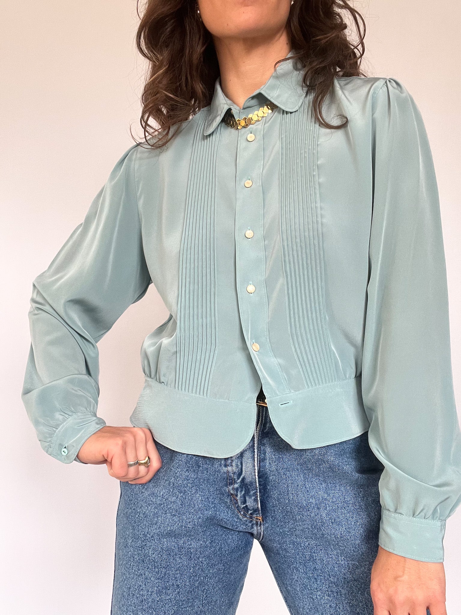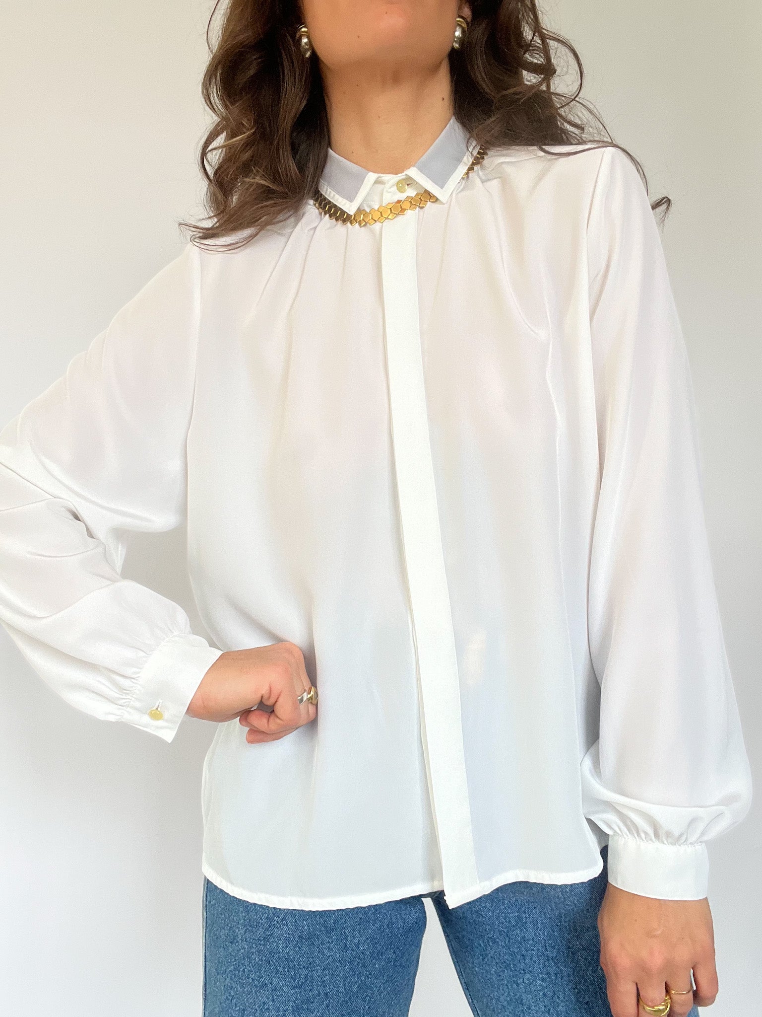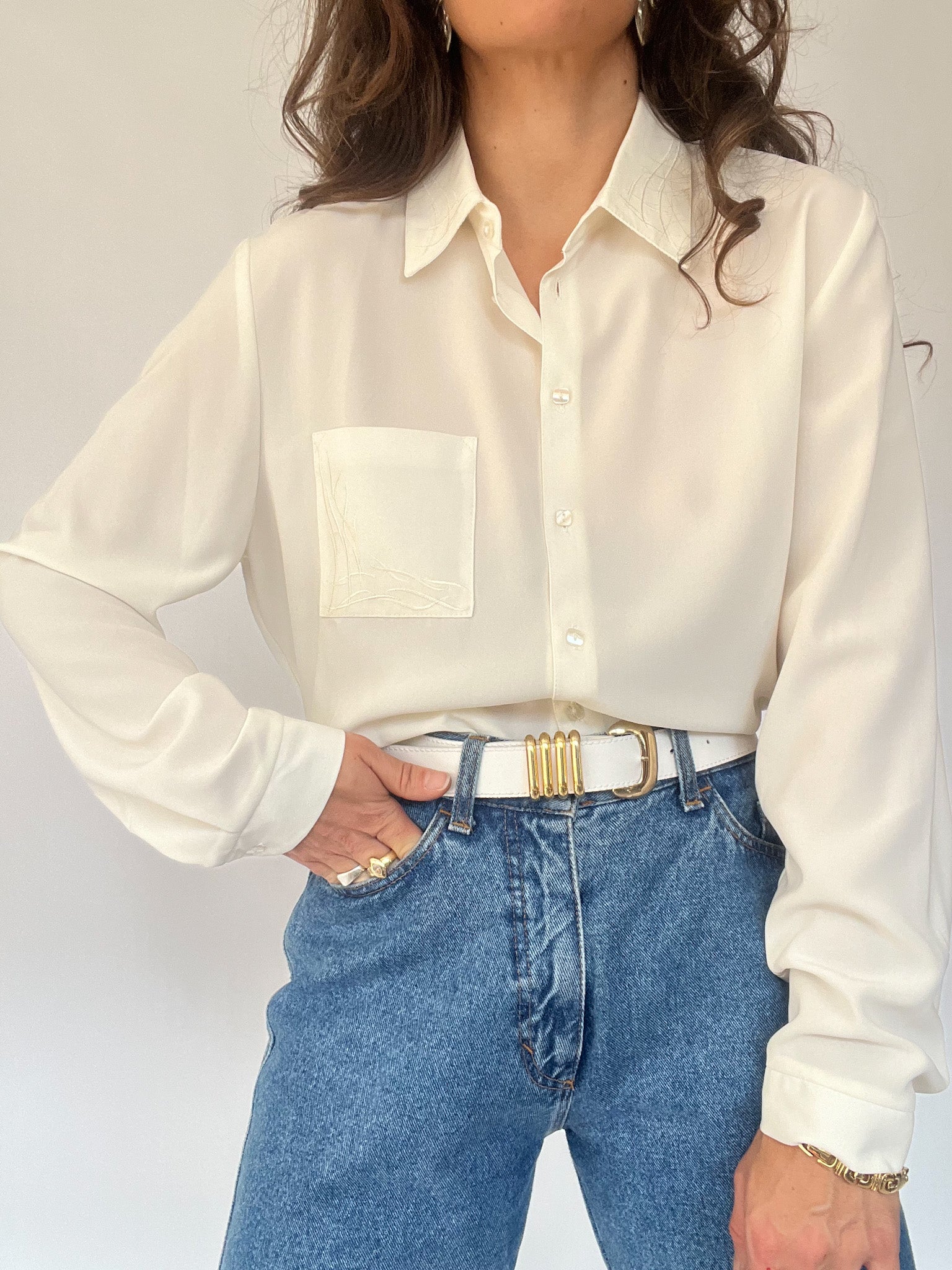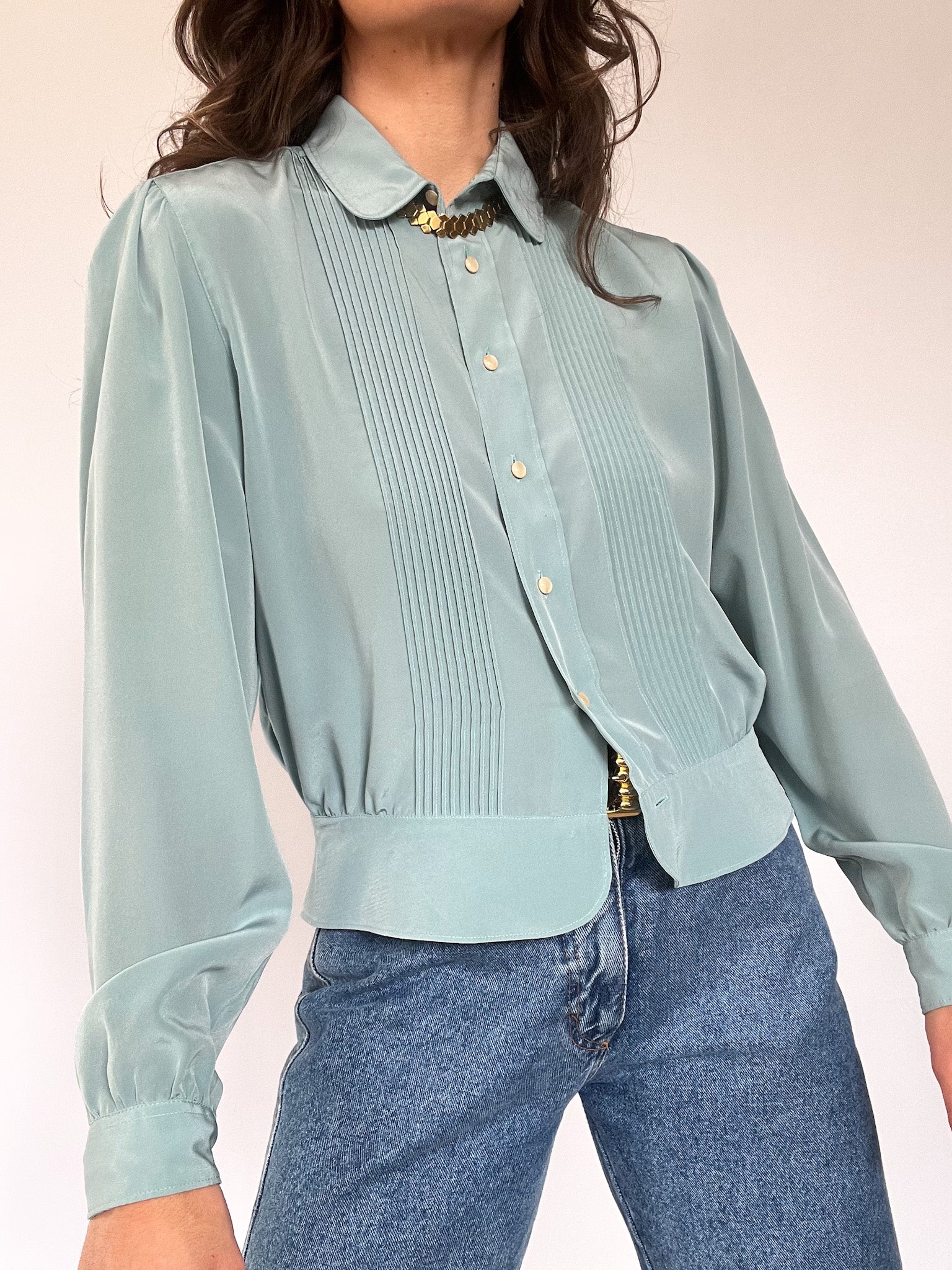 Vintage Pink Shirt with Geometric Cut-Out Collar