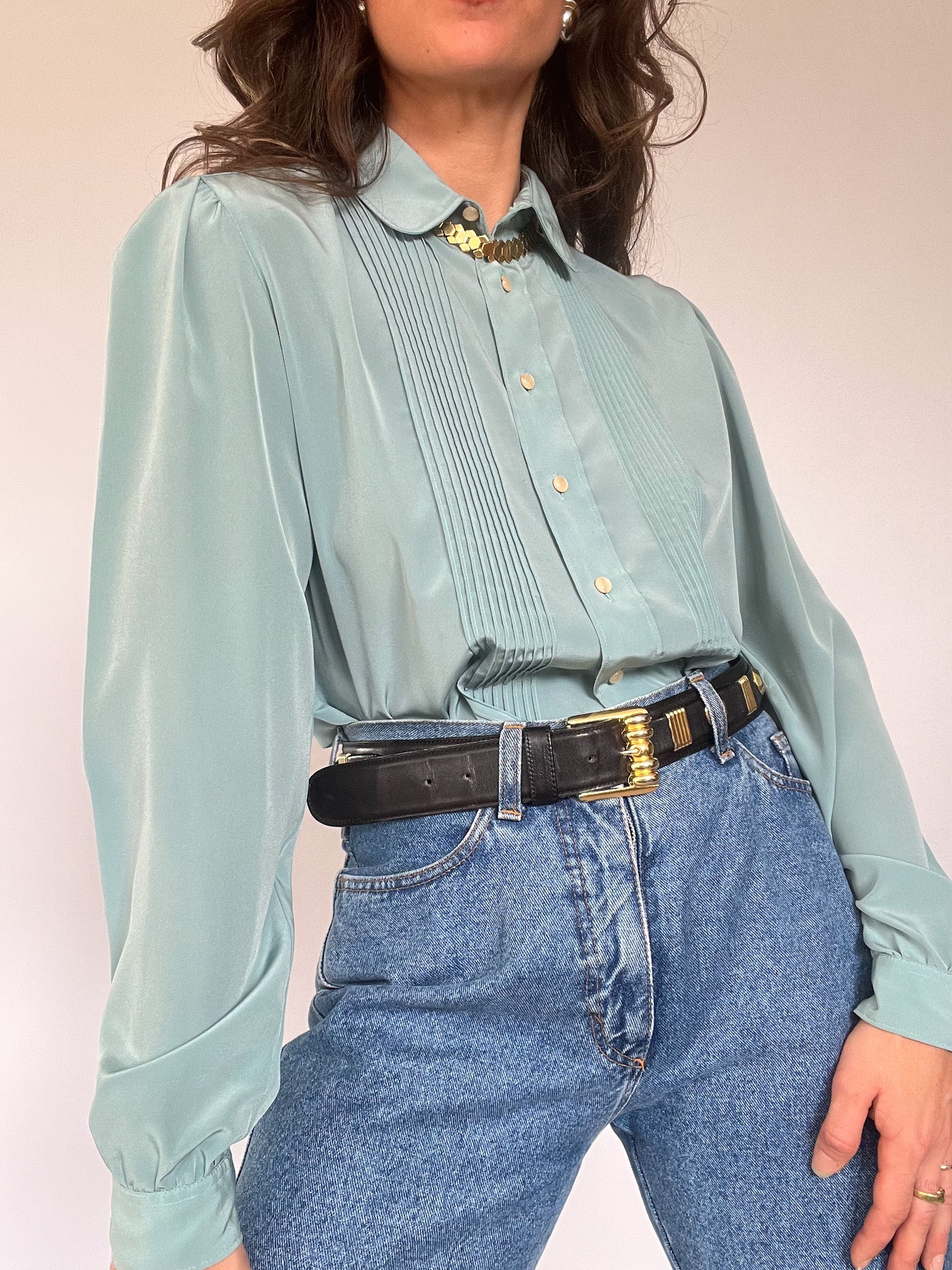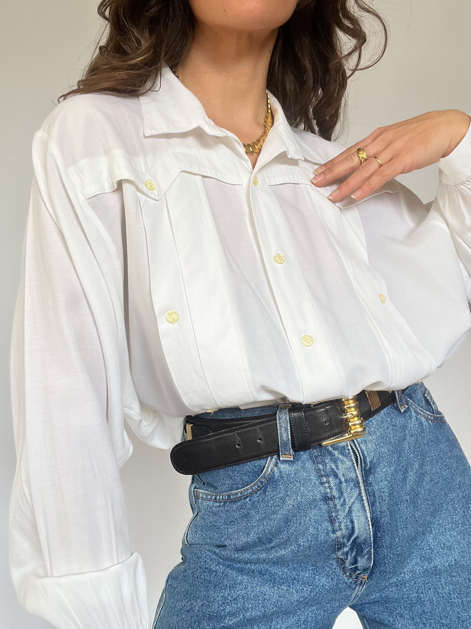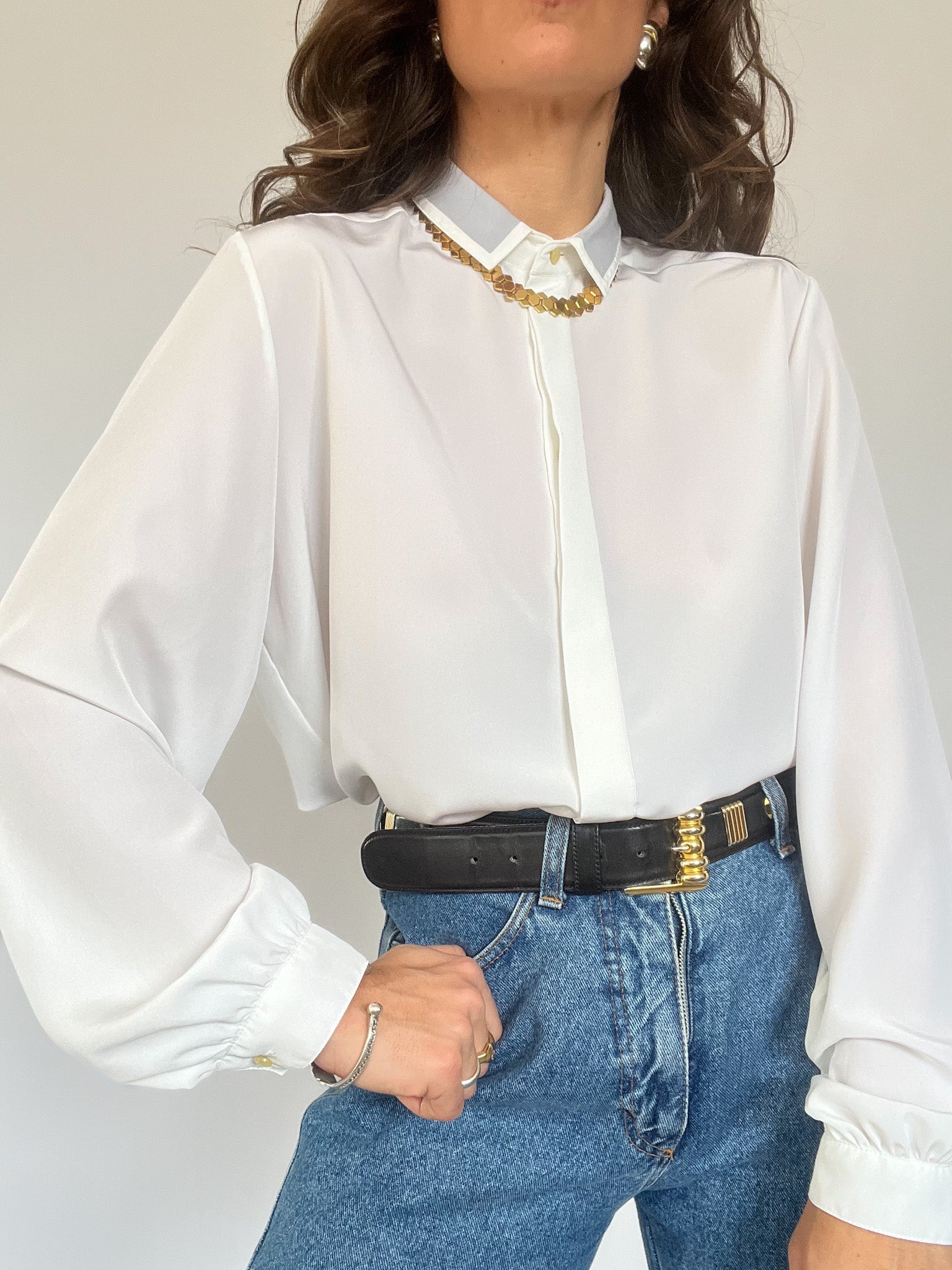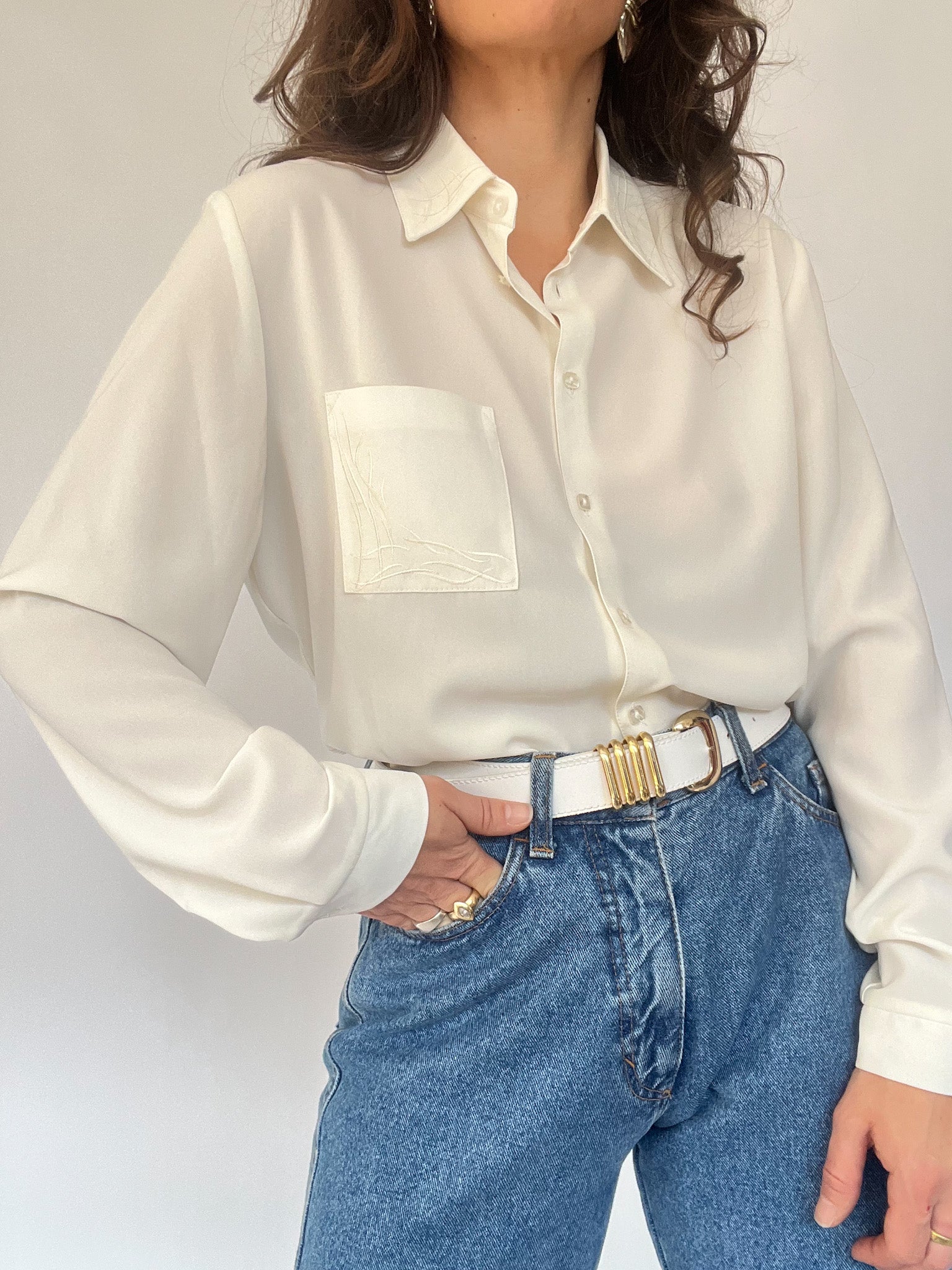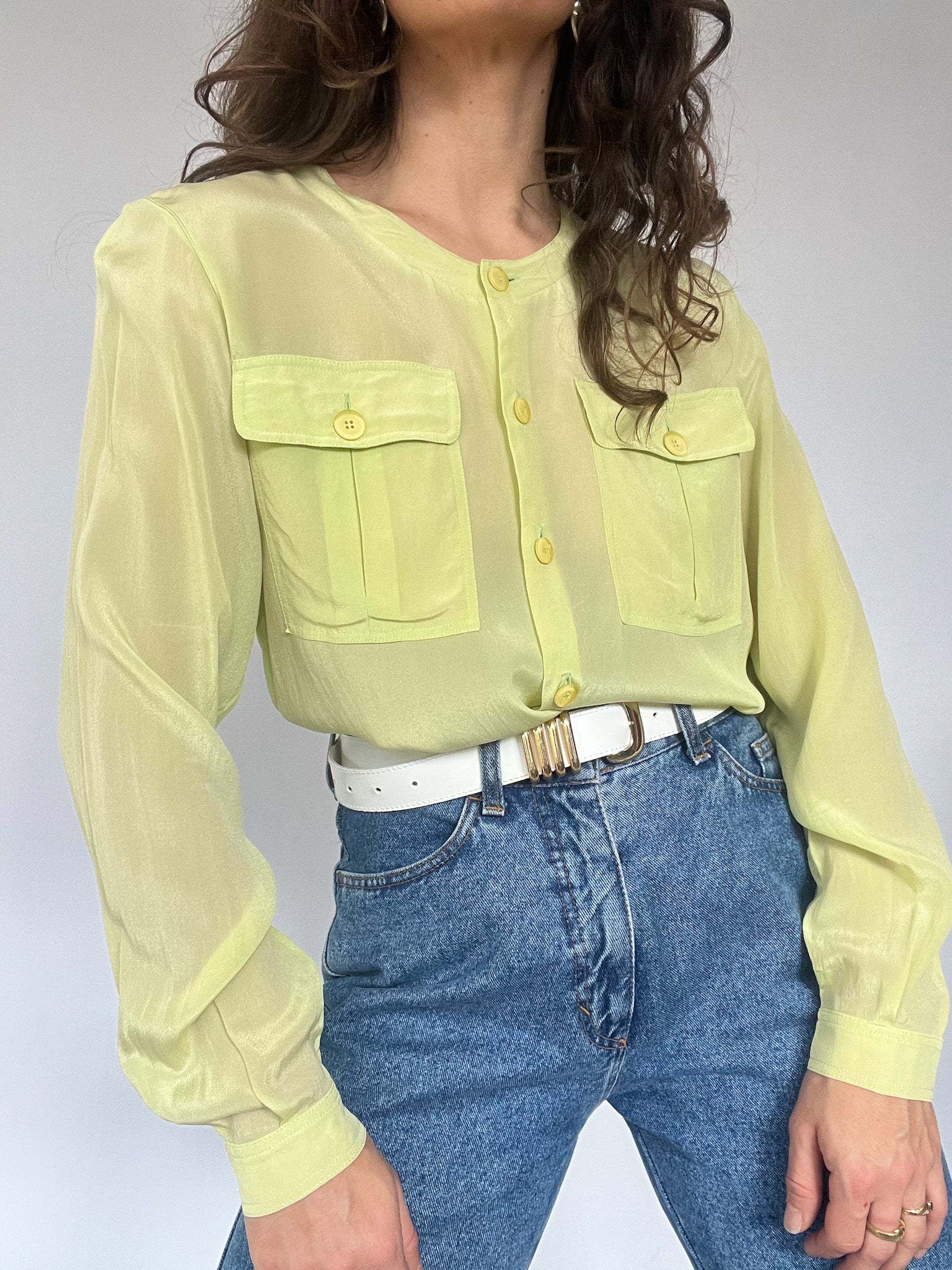 Vintage Pink Shirt with Geometric Cut-Out Collar