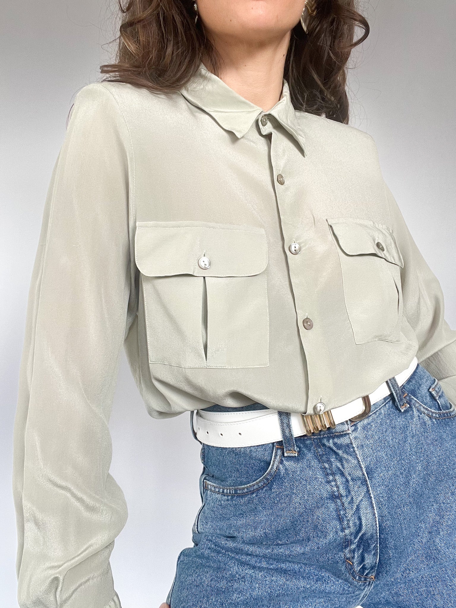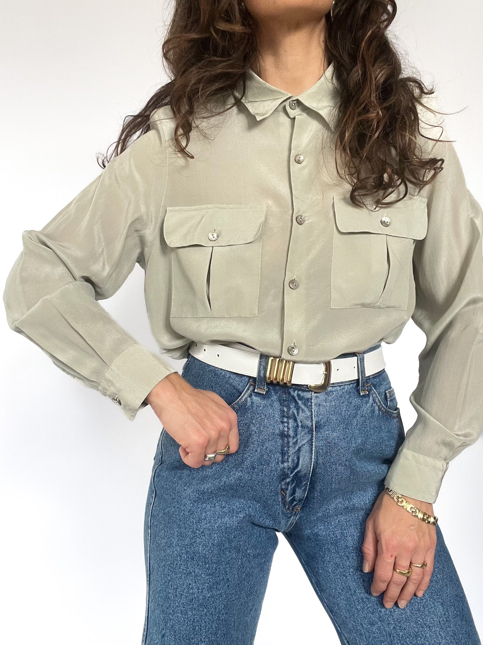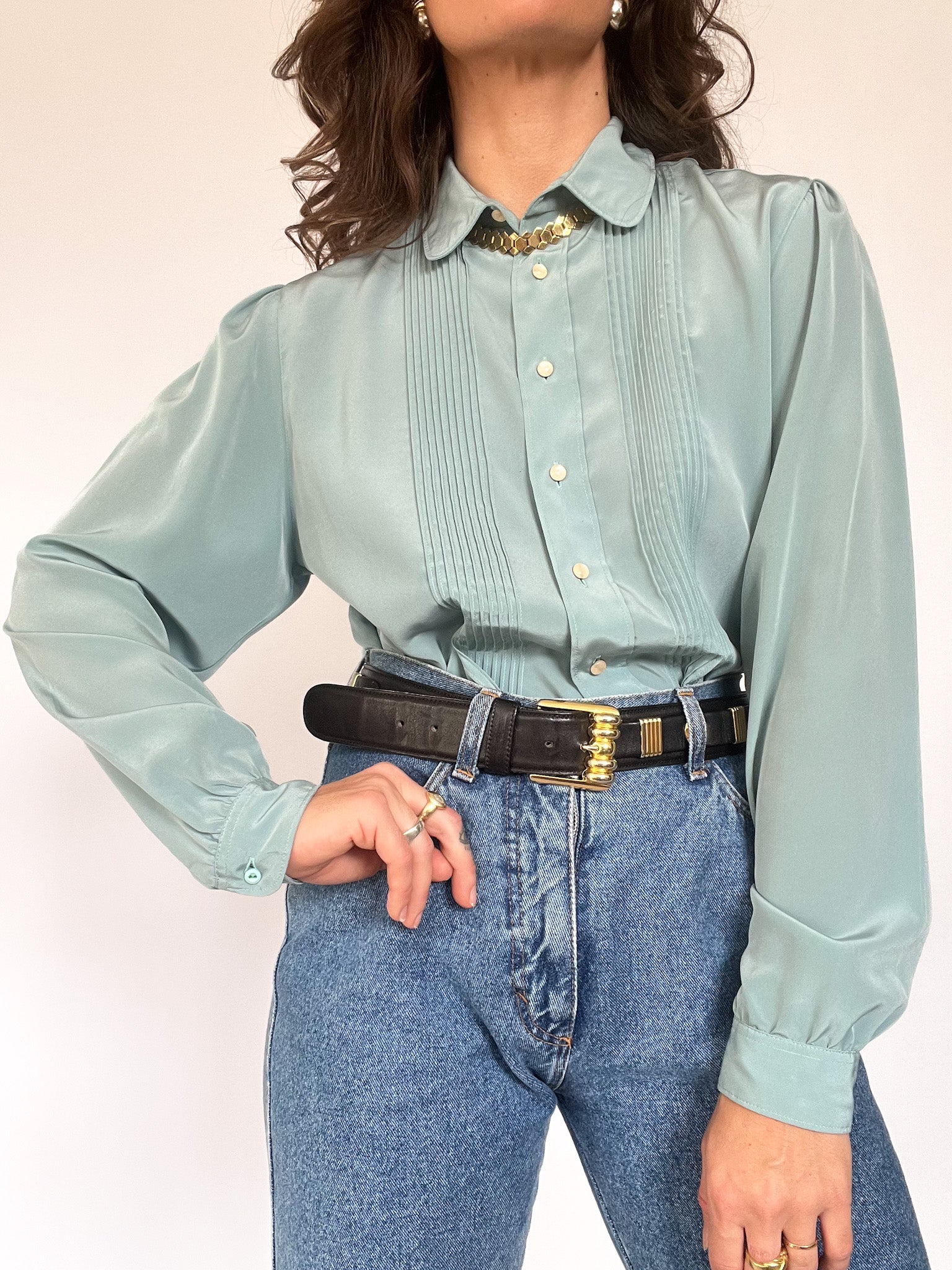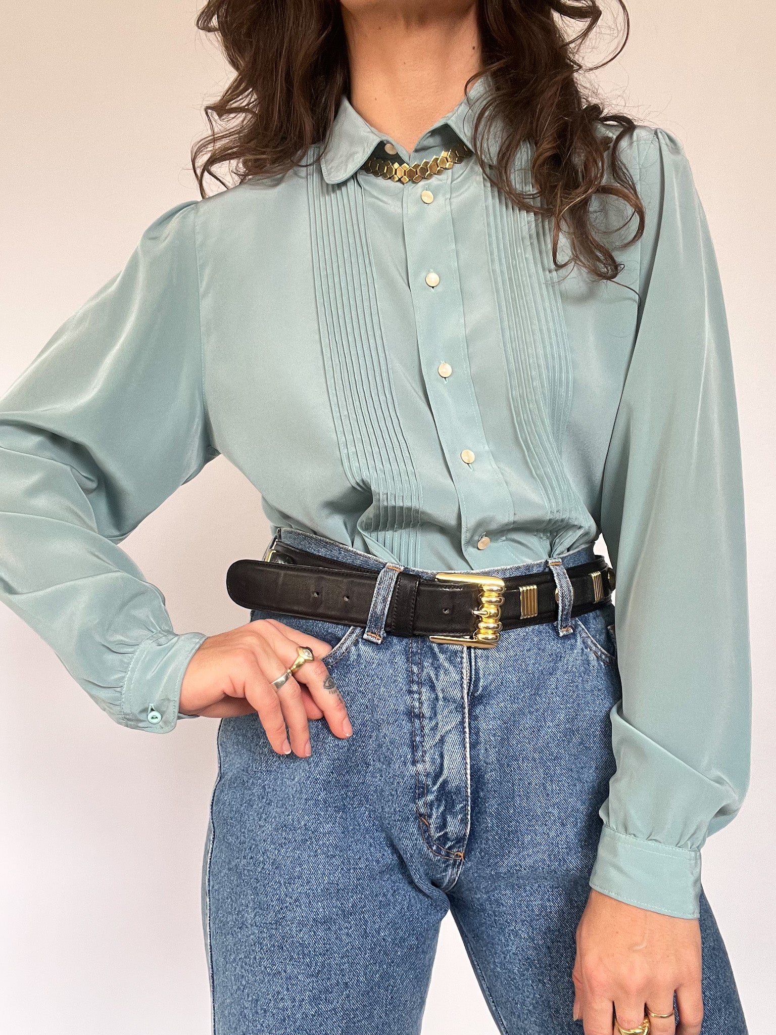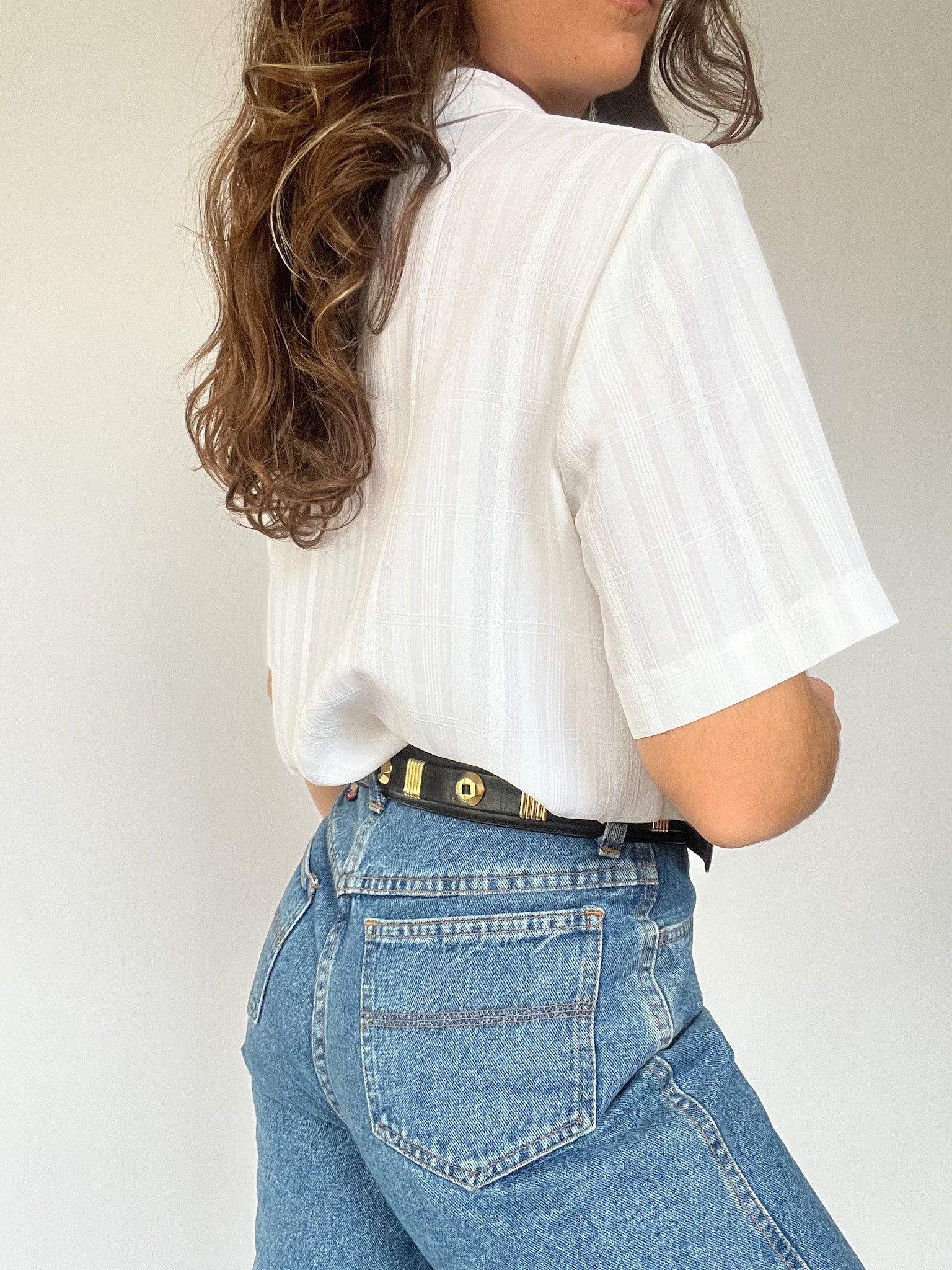 Vintage Pink Shirt with Geometric Cut-Out Collar