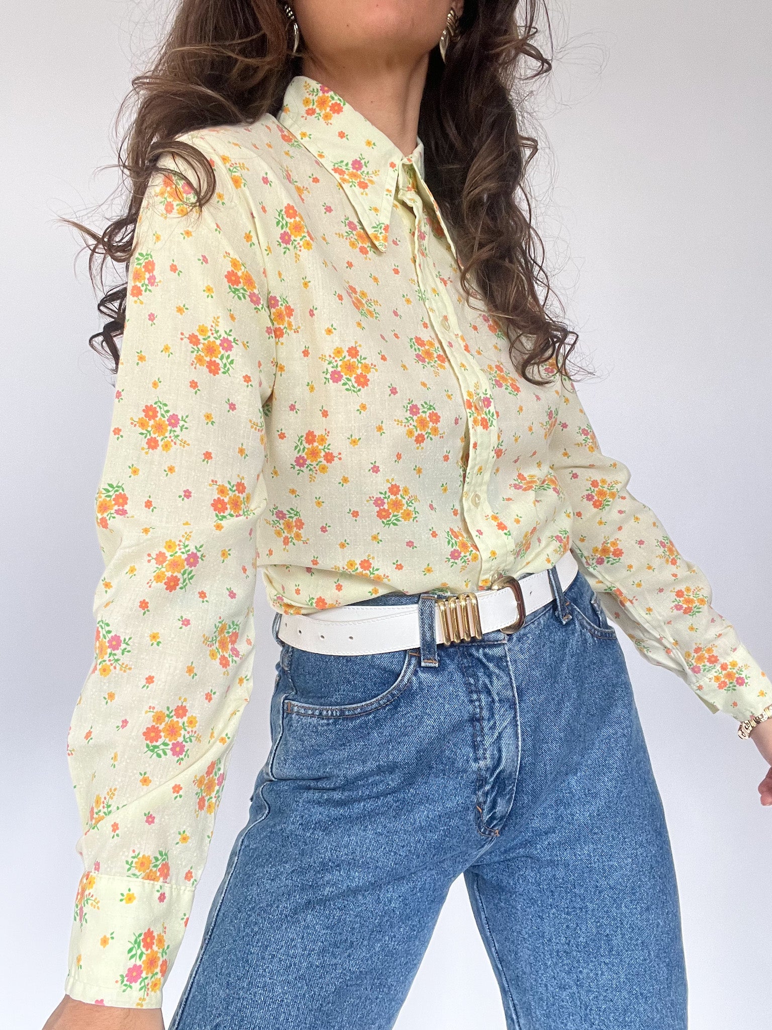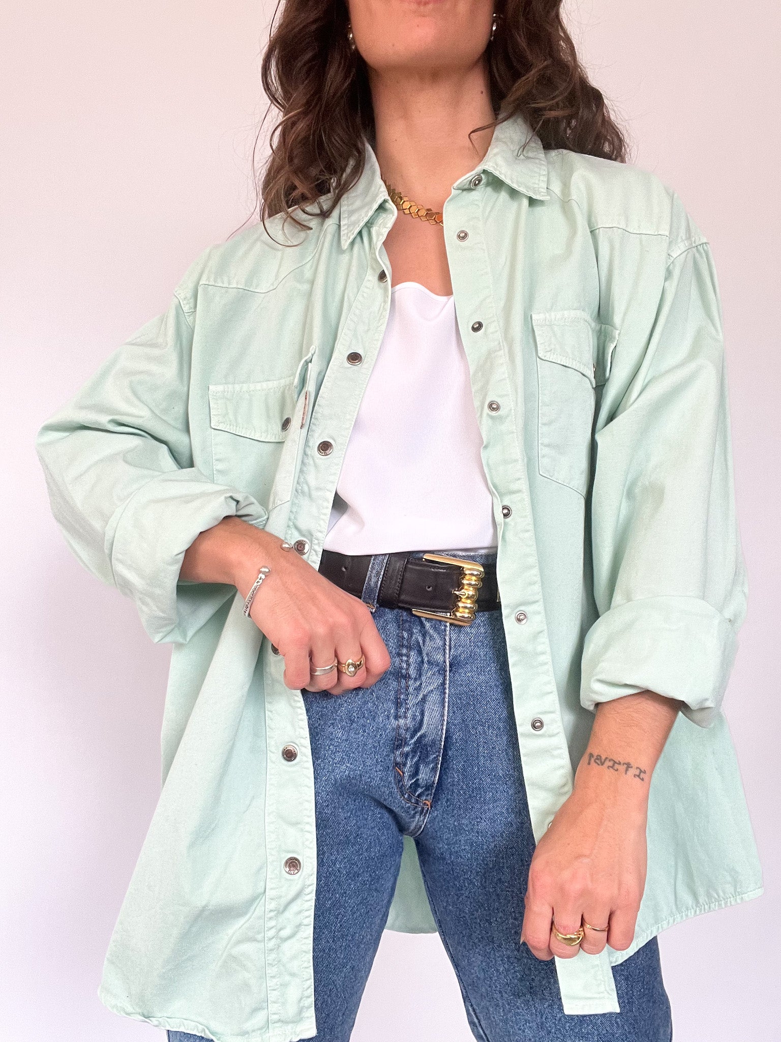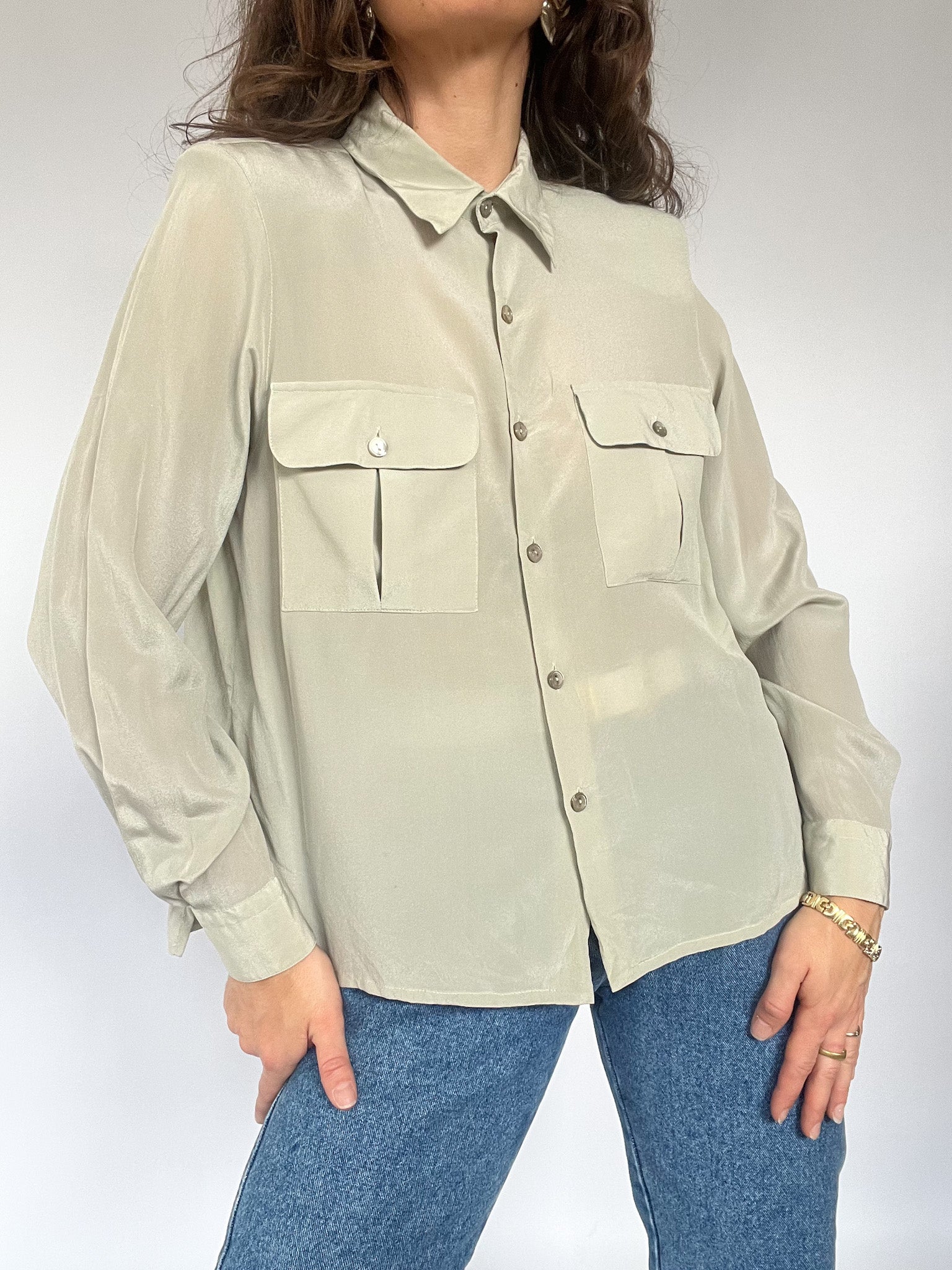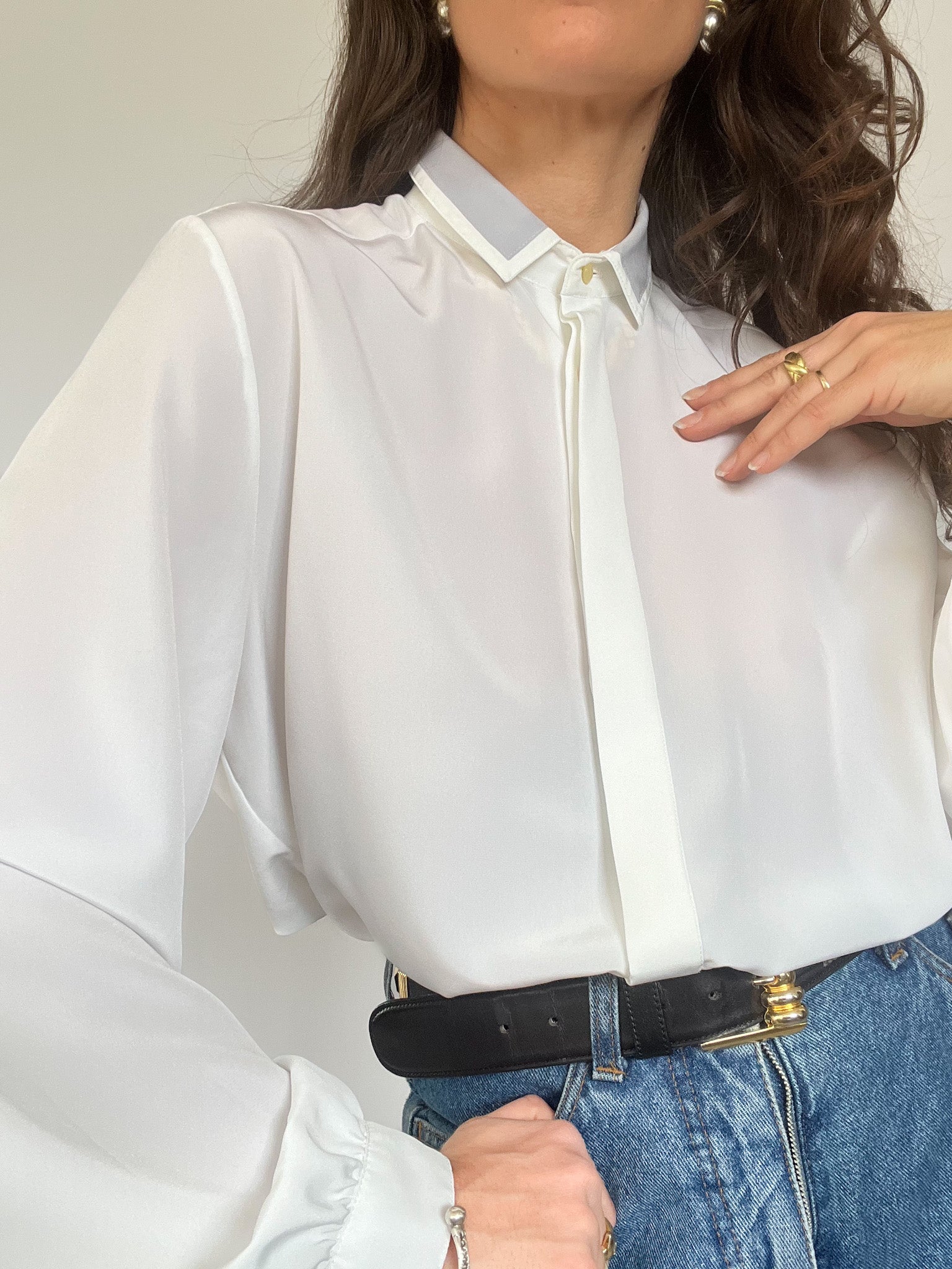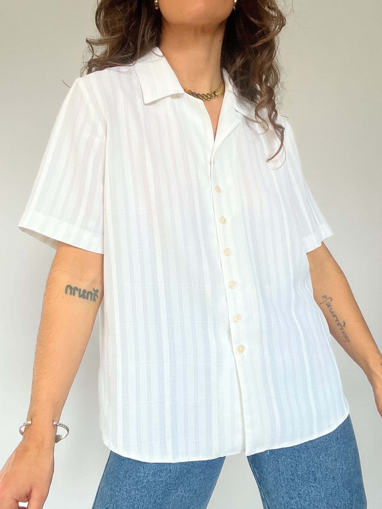Vintage Pink Shirt with Geometric Cut-Out Collar