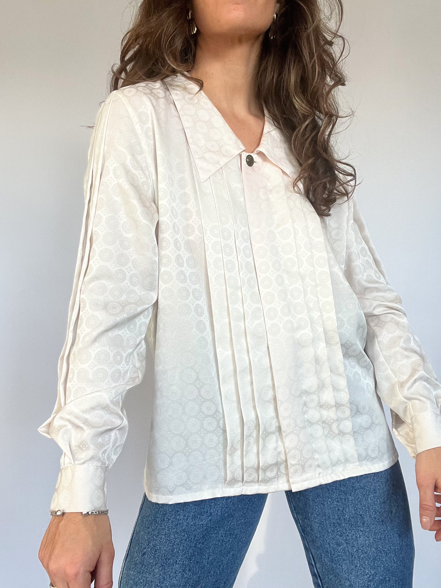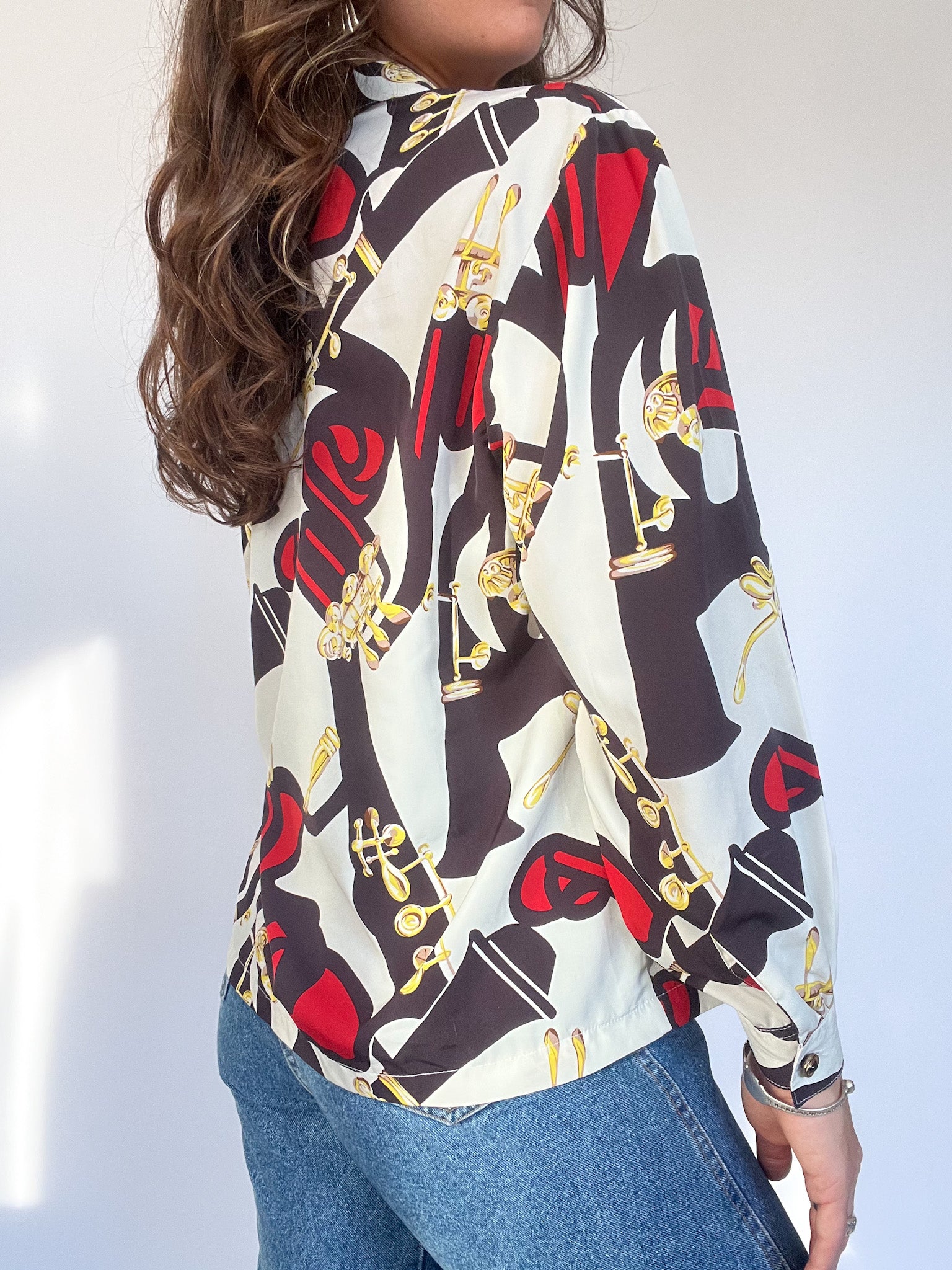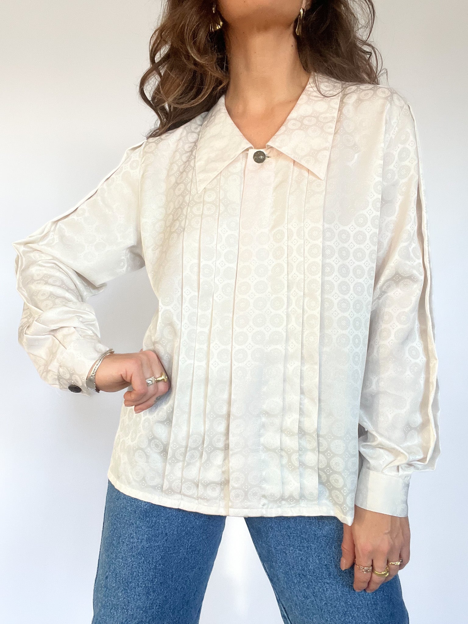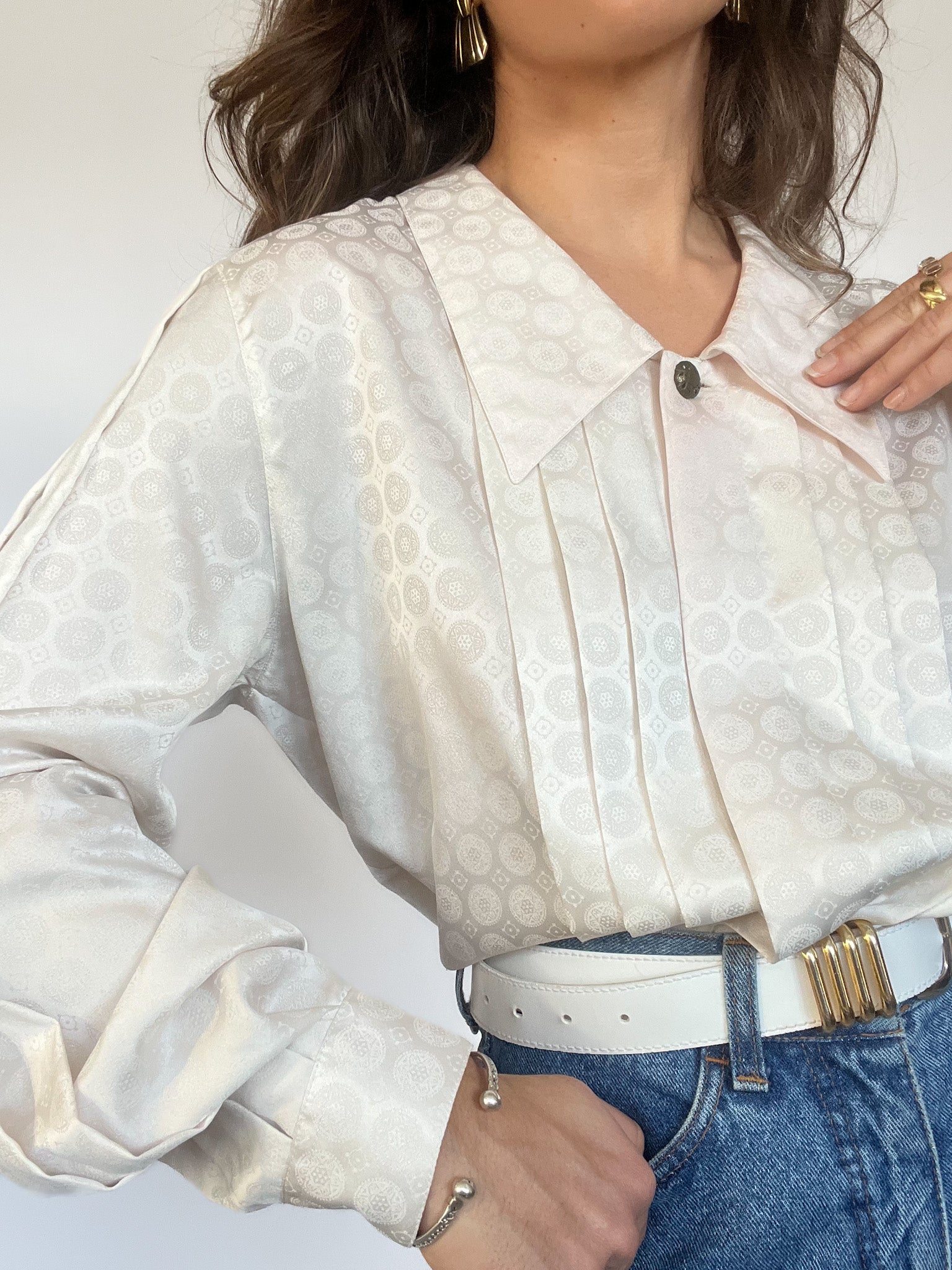 Vintage Taupe Silk Blouse with Bow Tie Detail