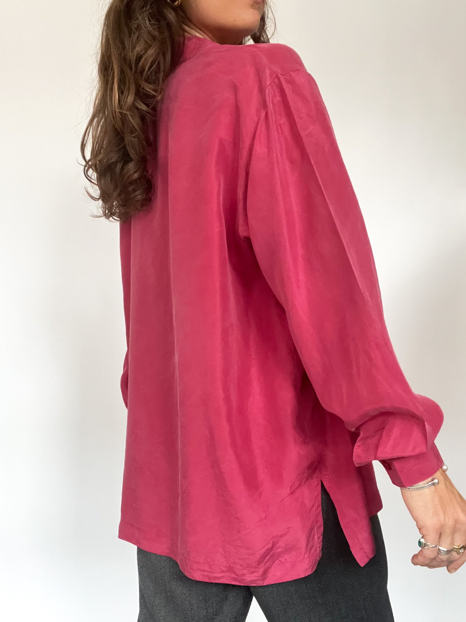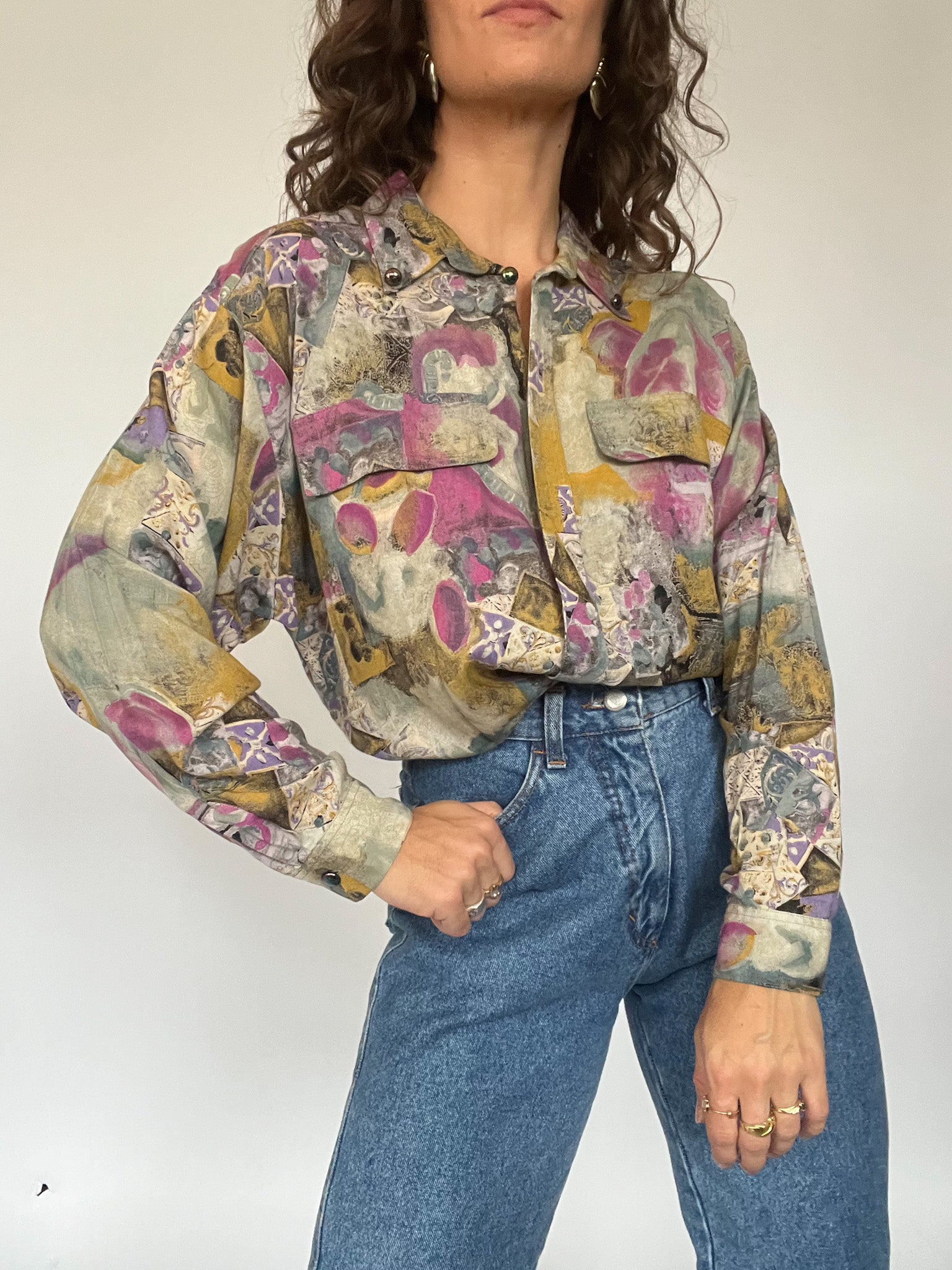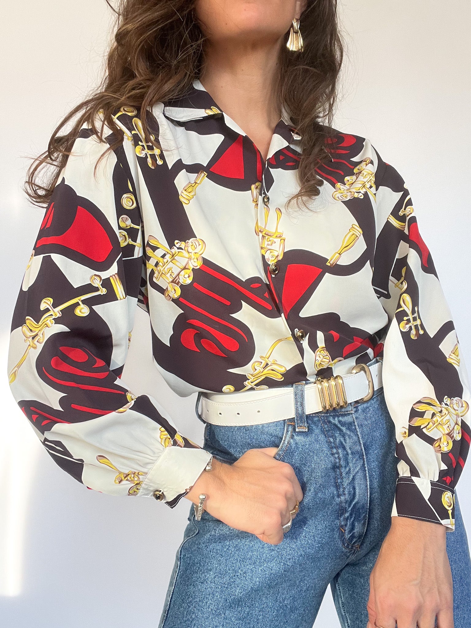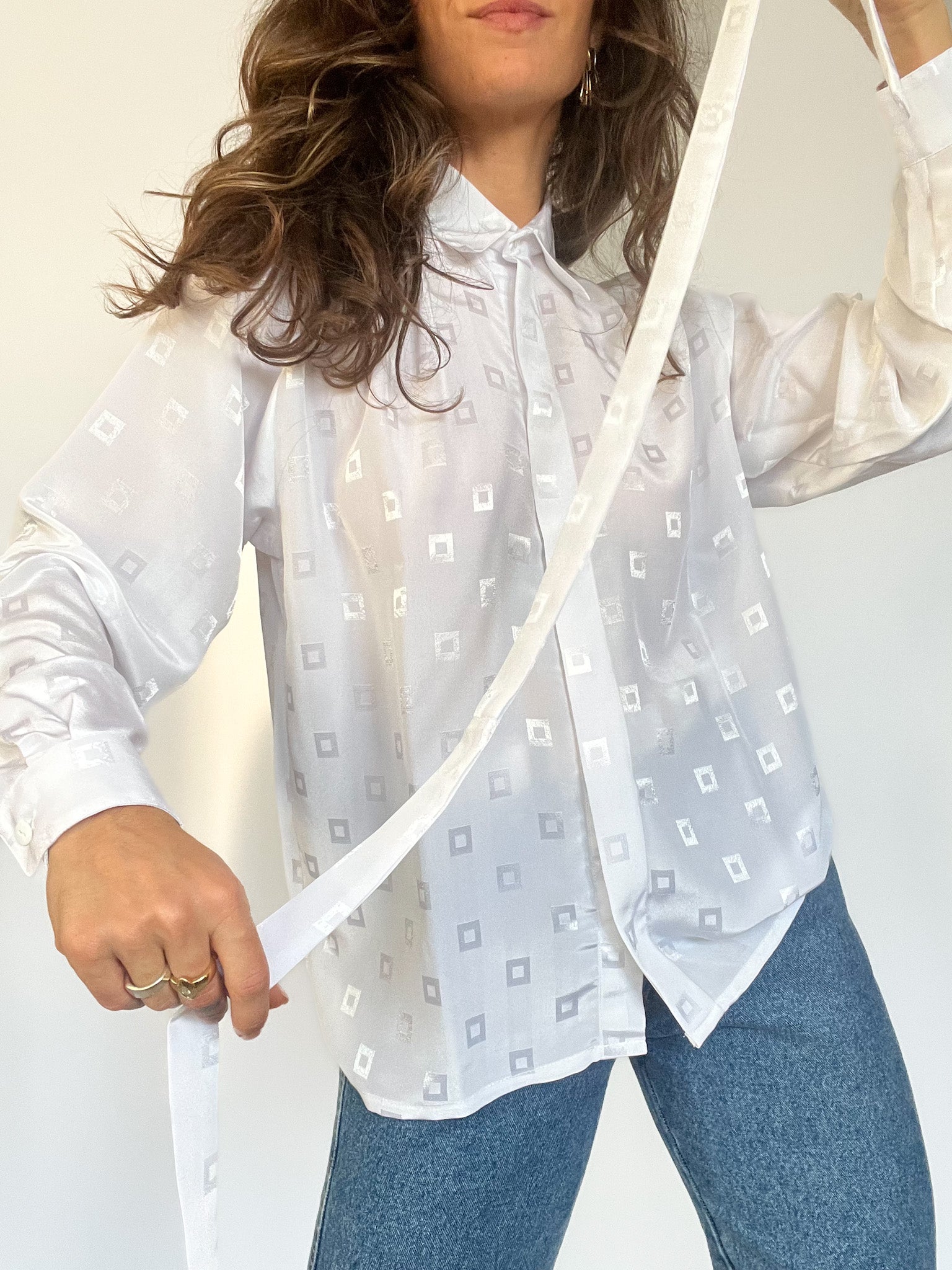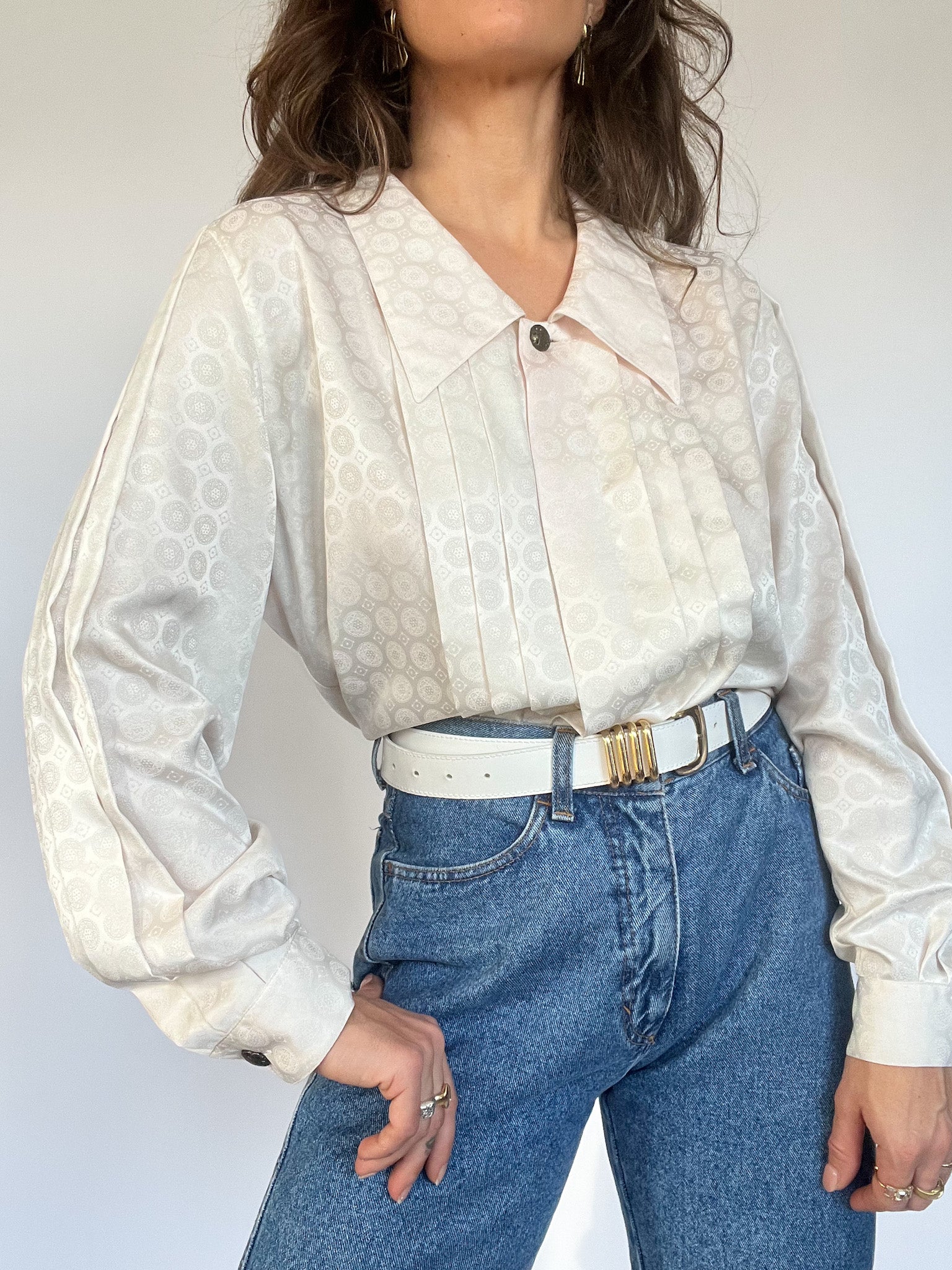 Vintage Taupe Silk Blouse with Bow Tie Detail