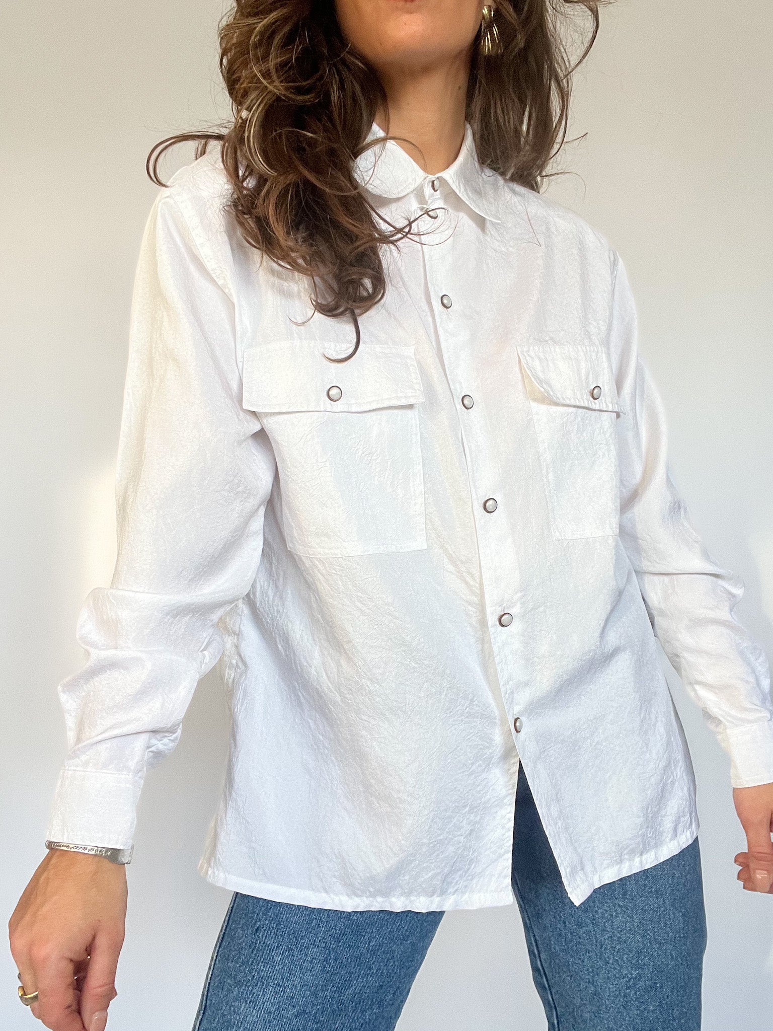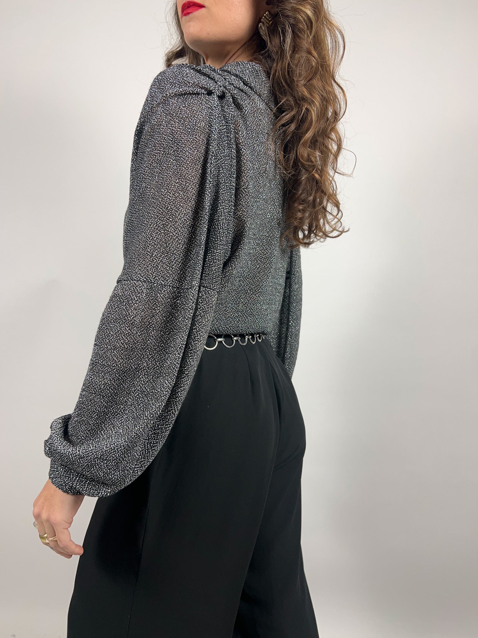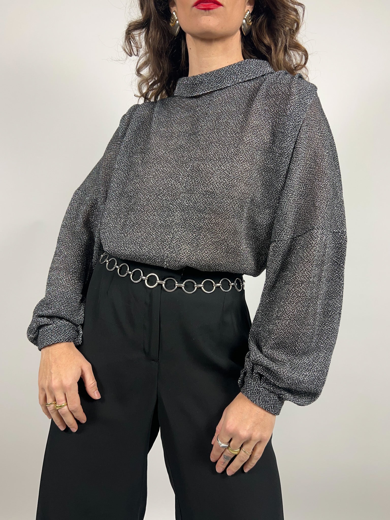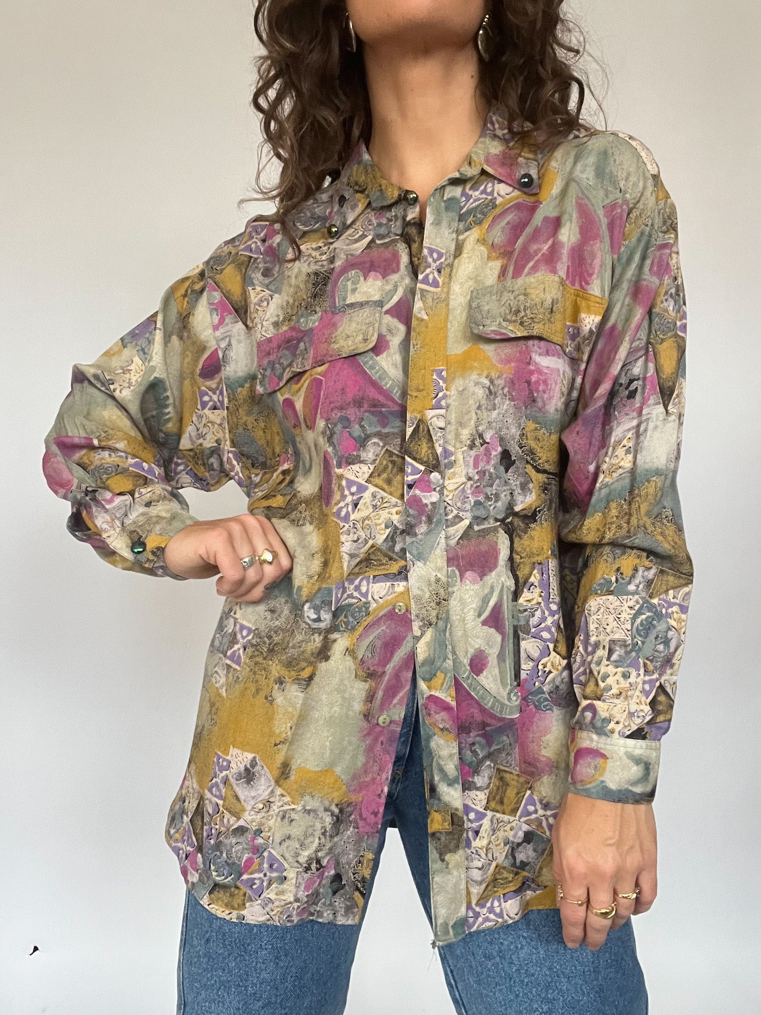 Vintage Taupe Silk Blouse with Bow Tie Detail
