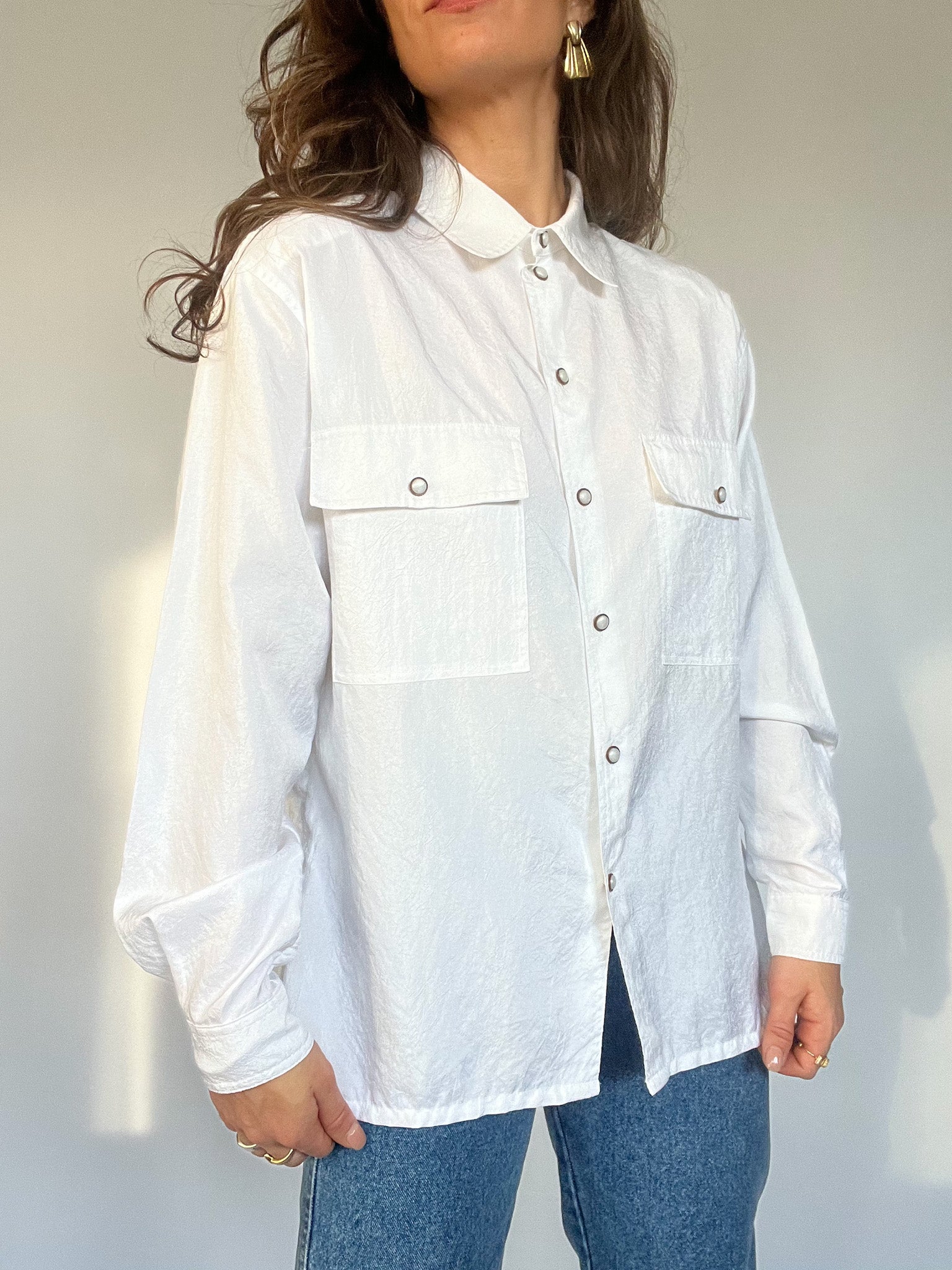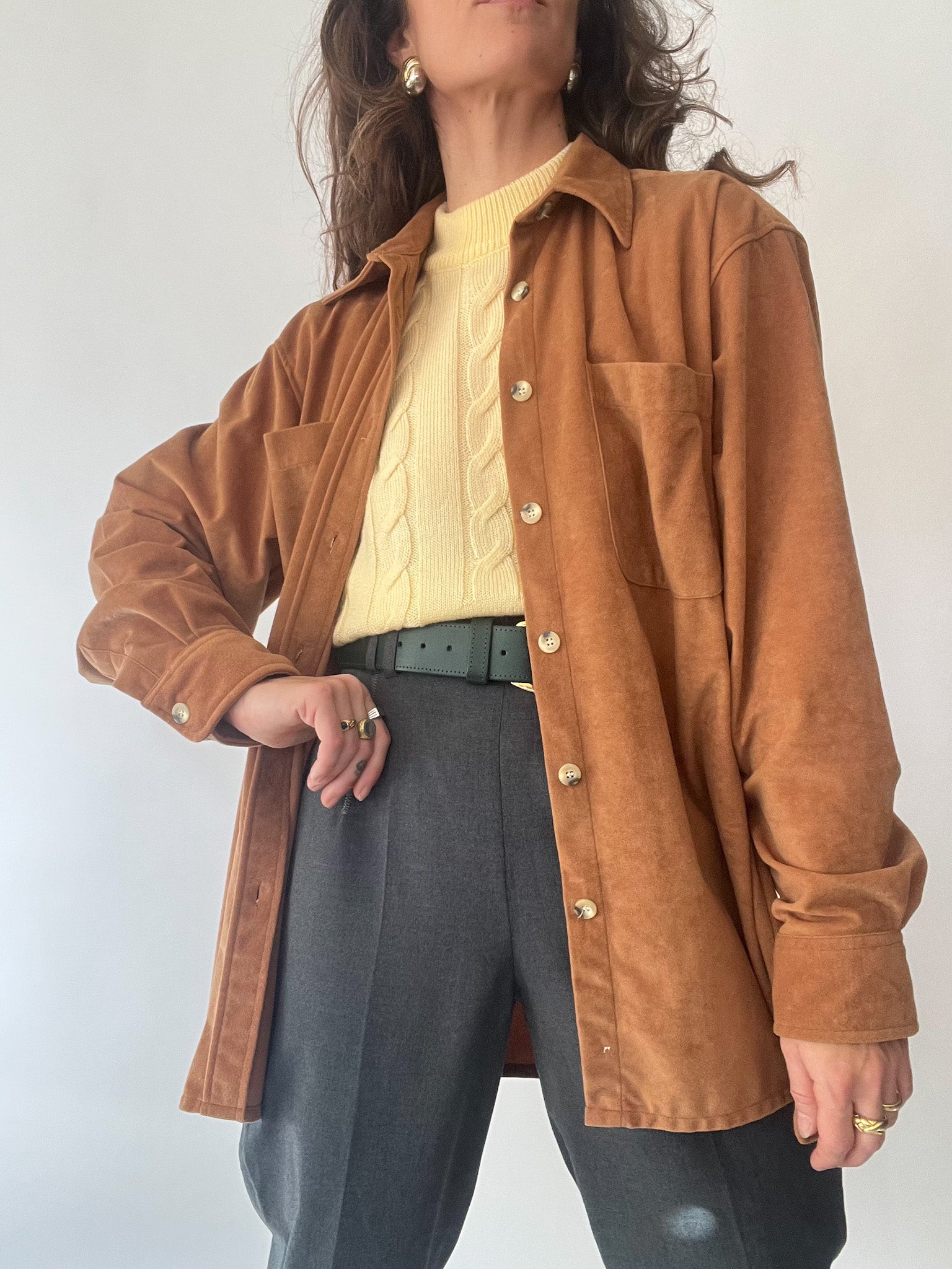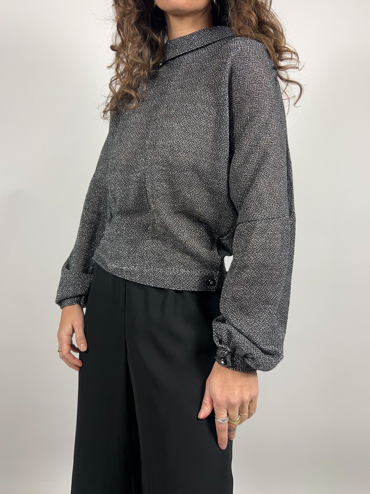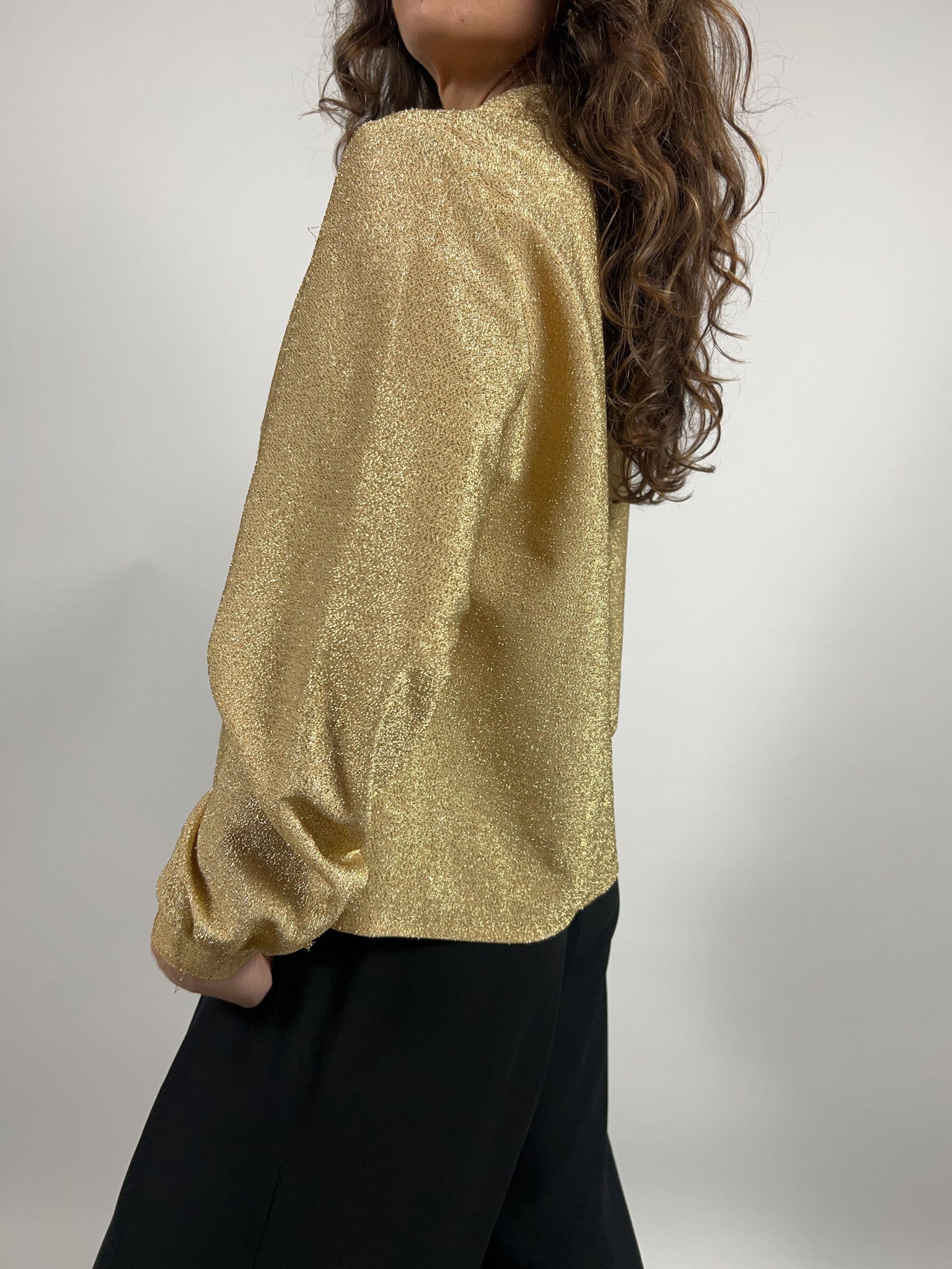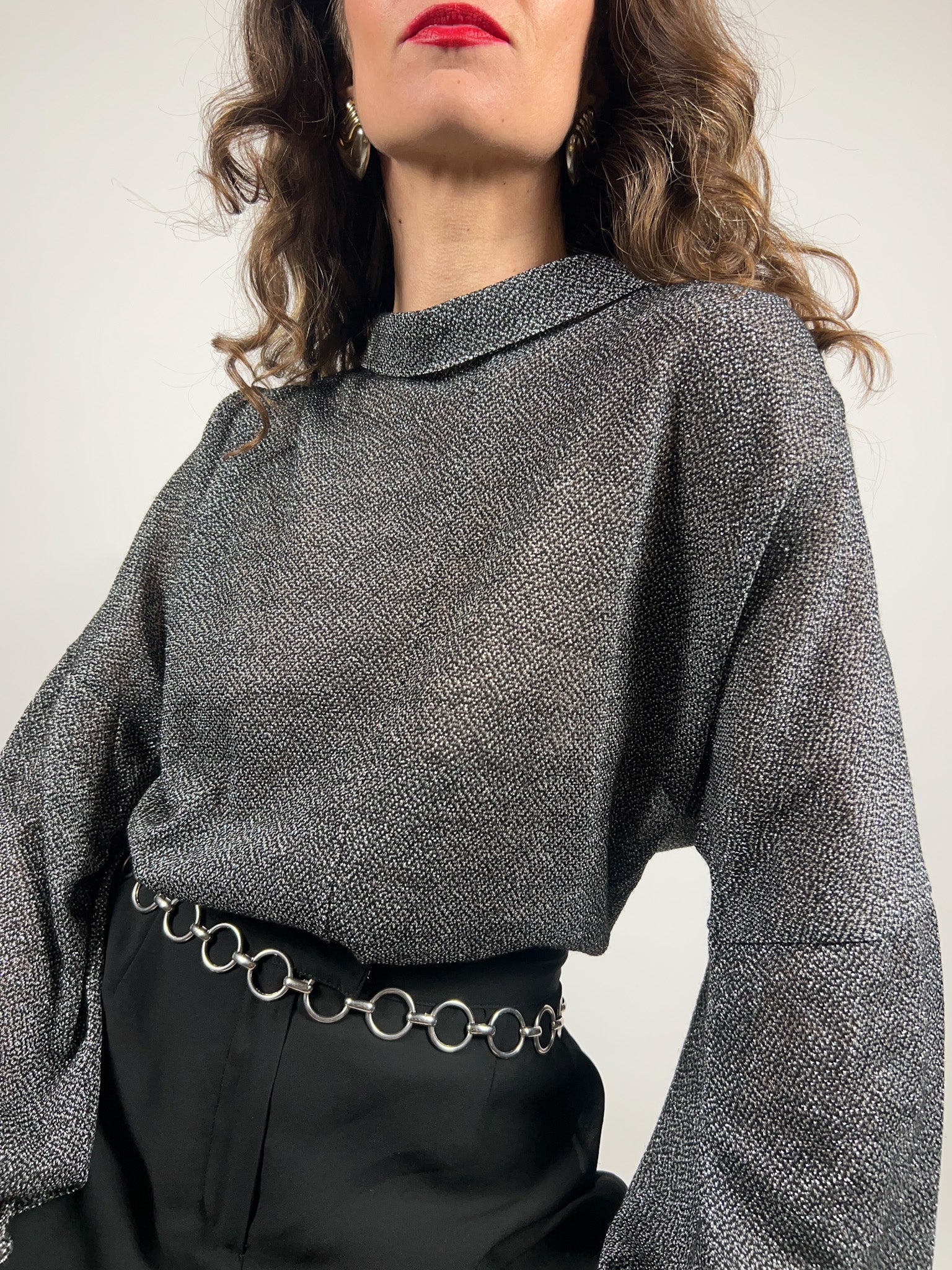 Vintage Taupe Silk Blouse with Bow Tie Detail