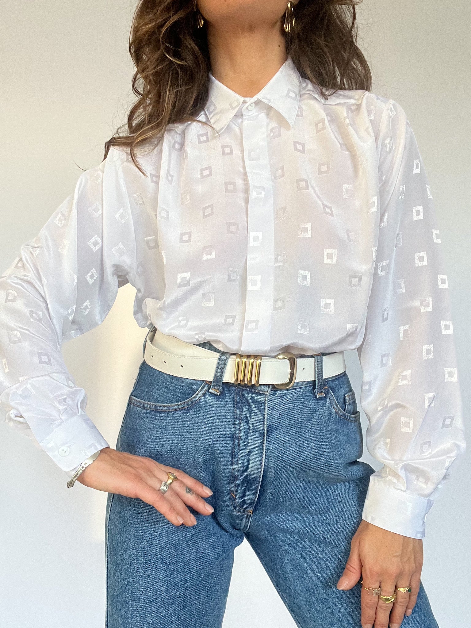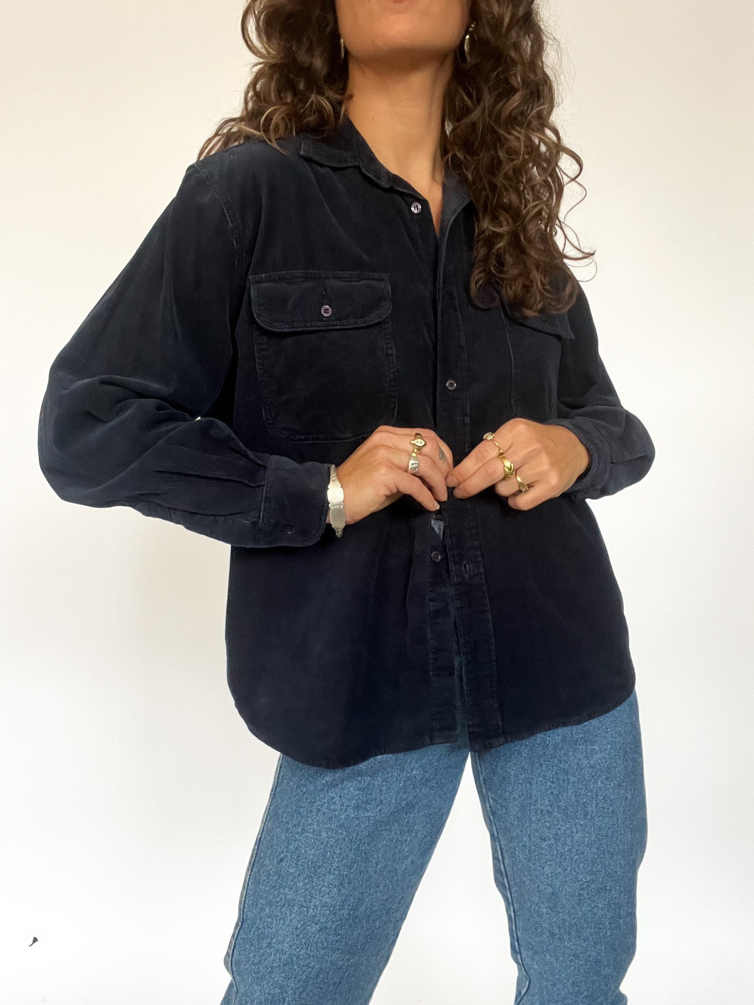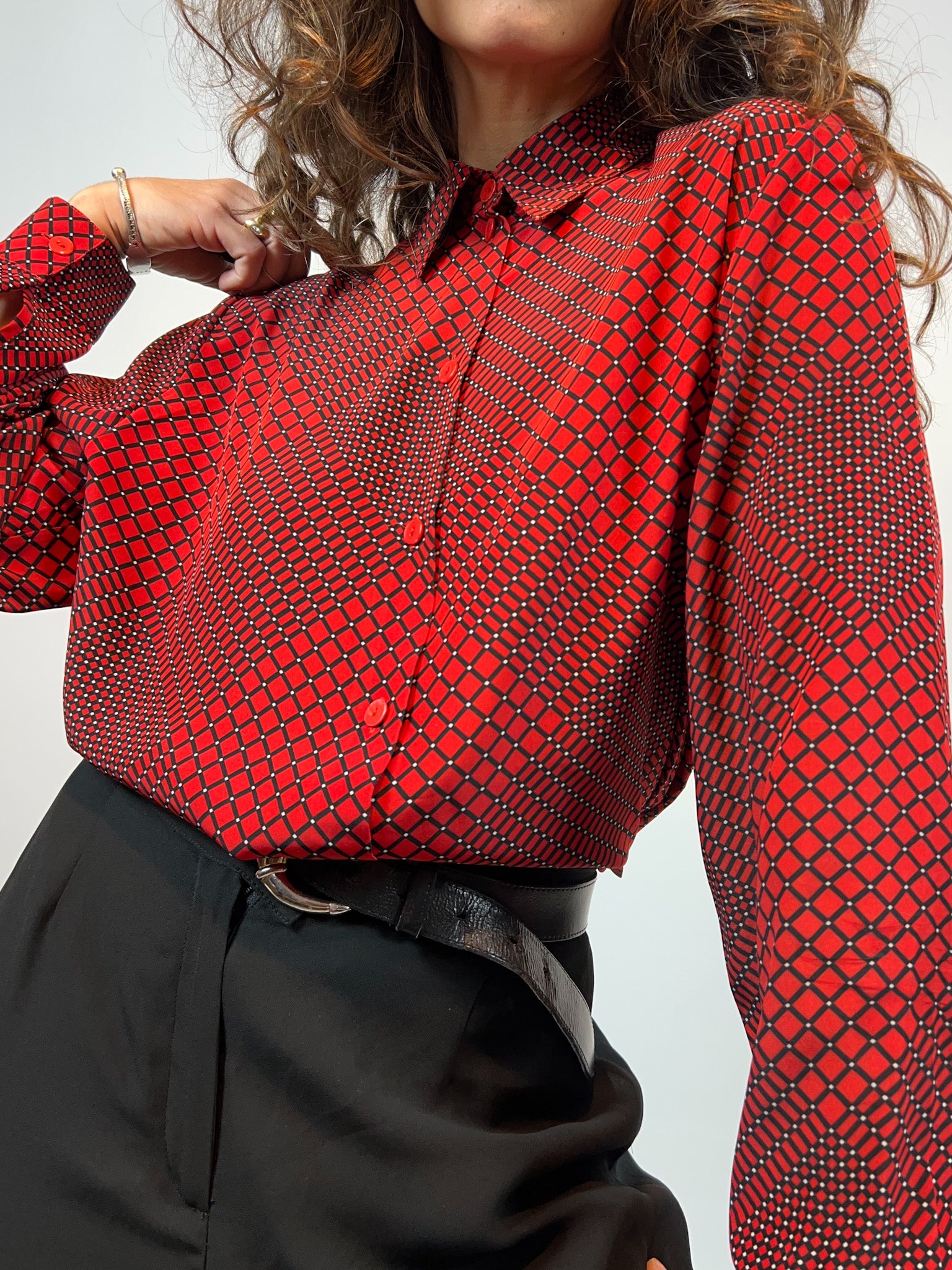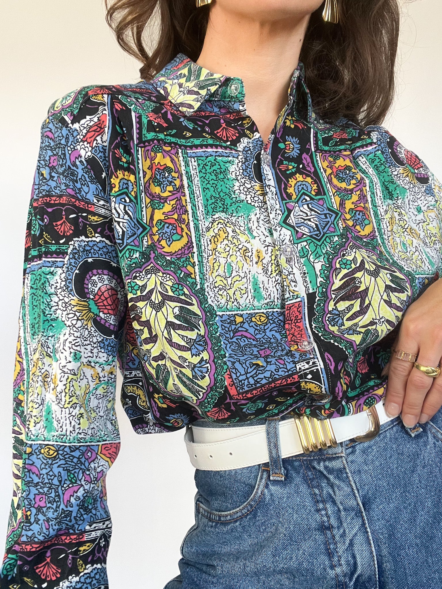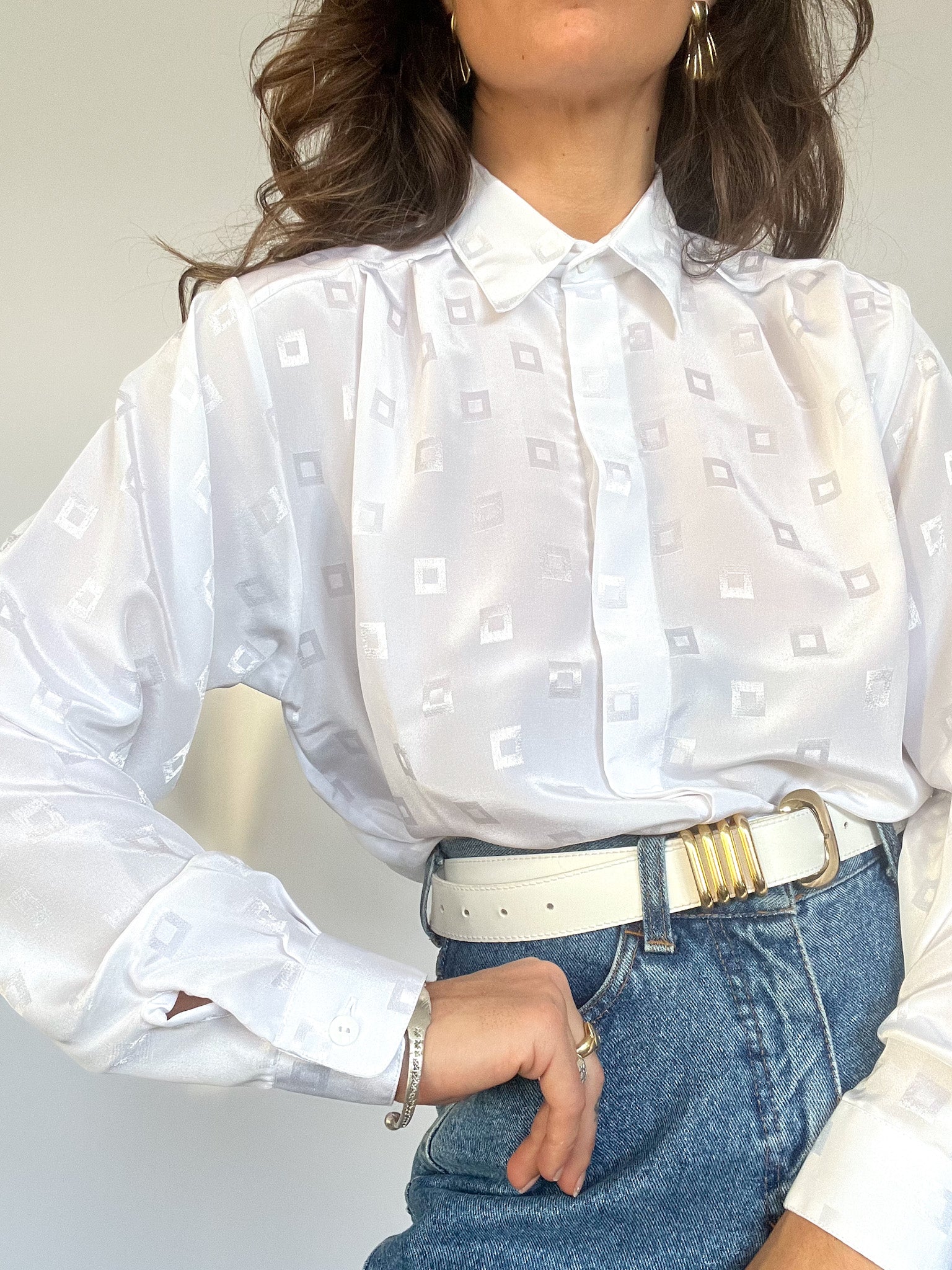 Vintage Royal Blue Satin Shirt with Floral Jacquard