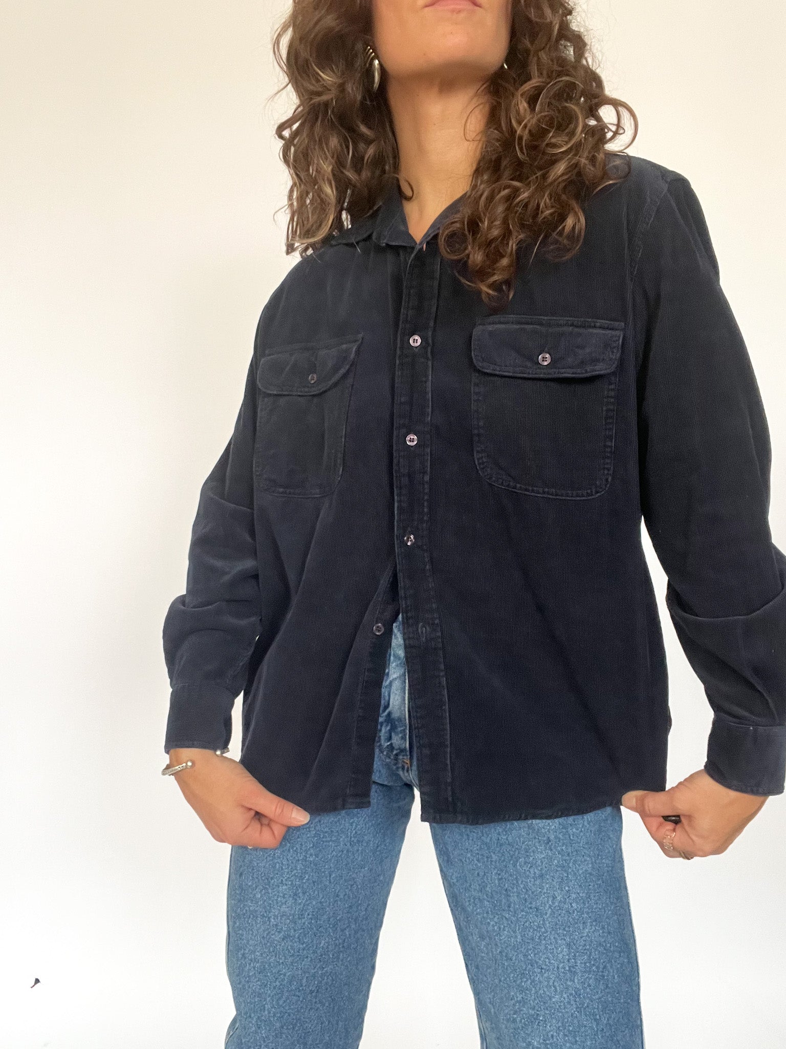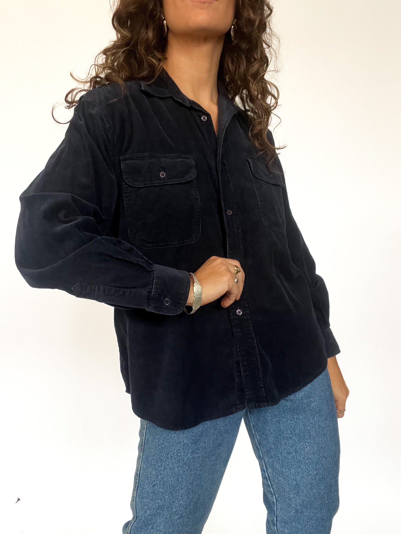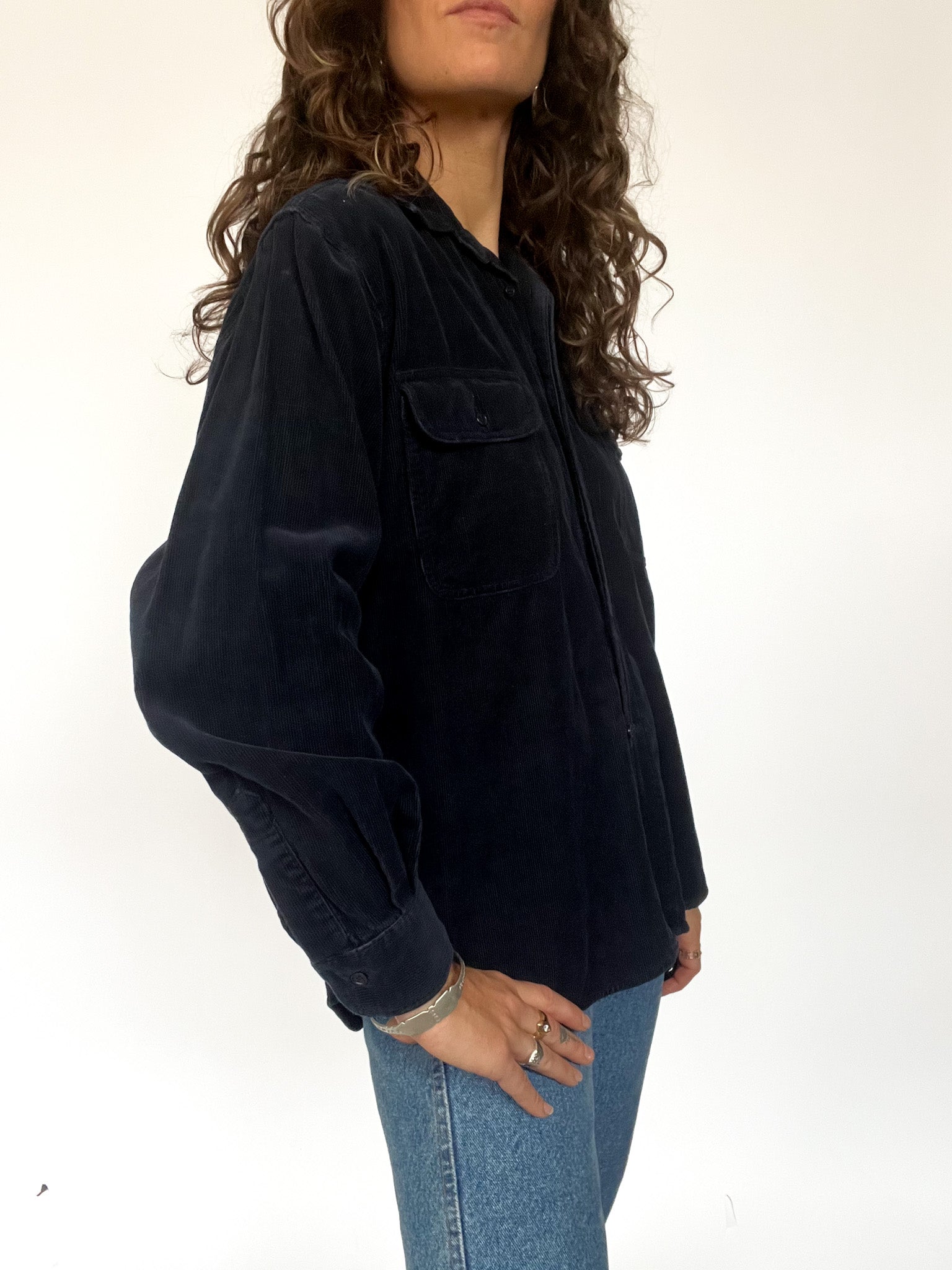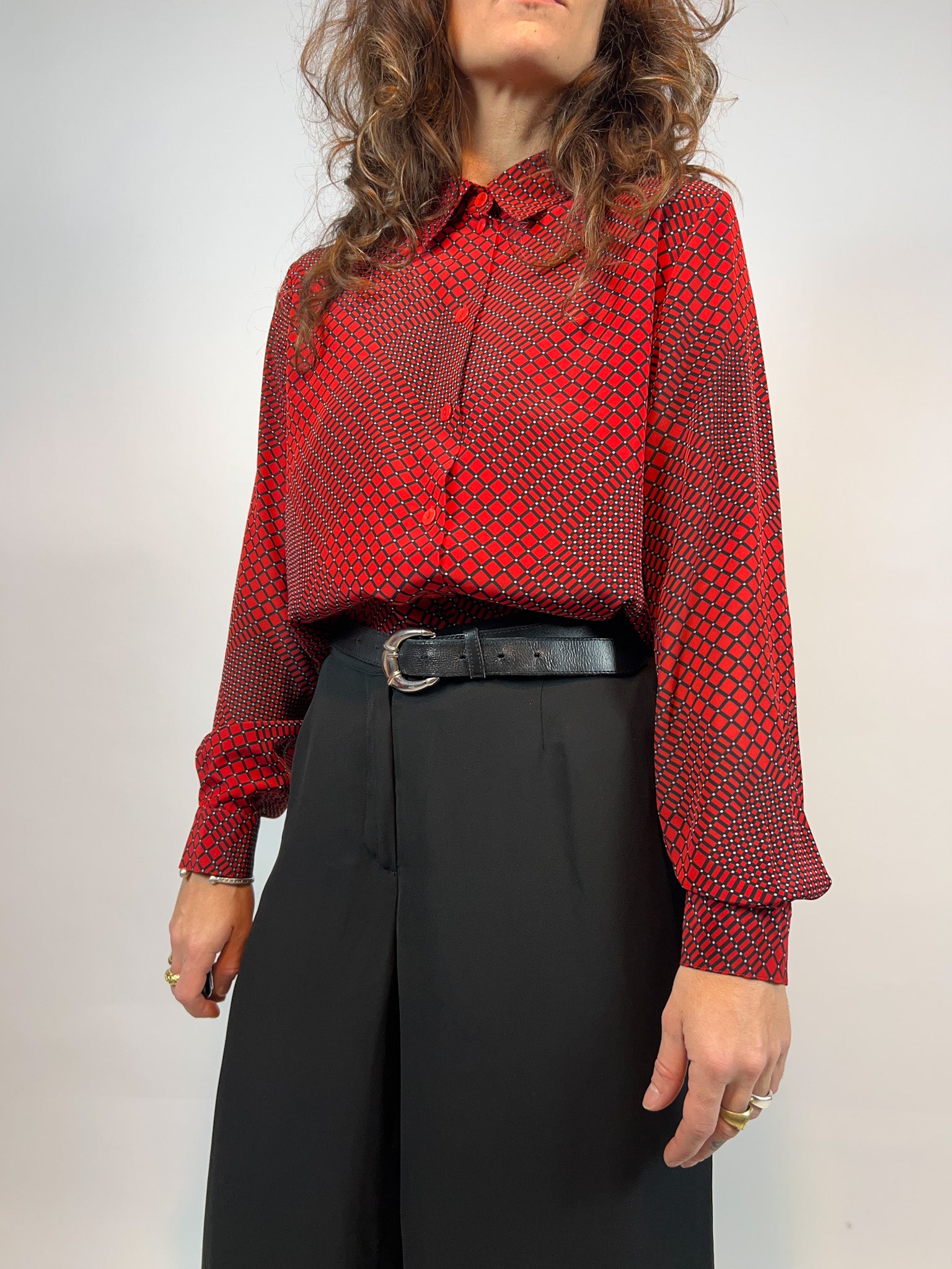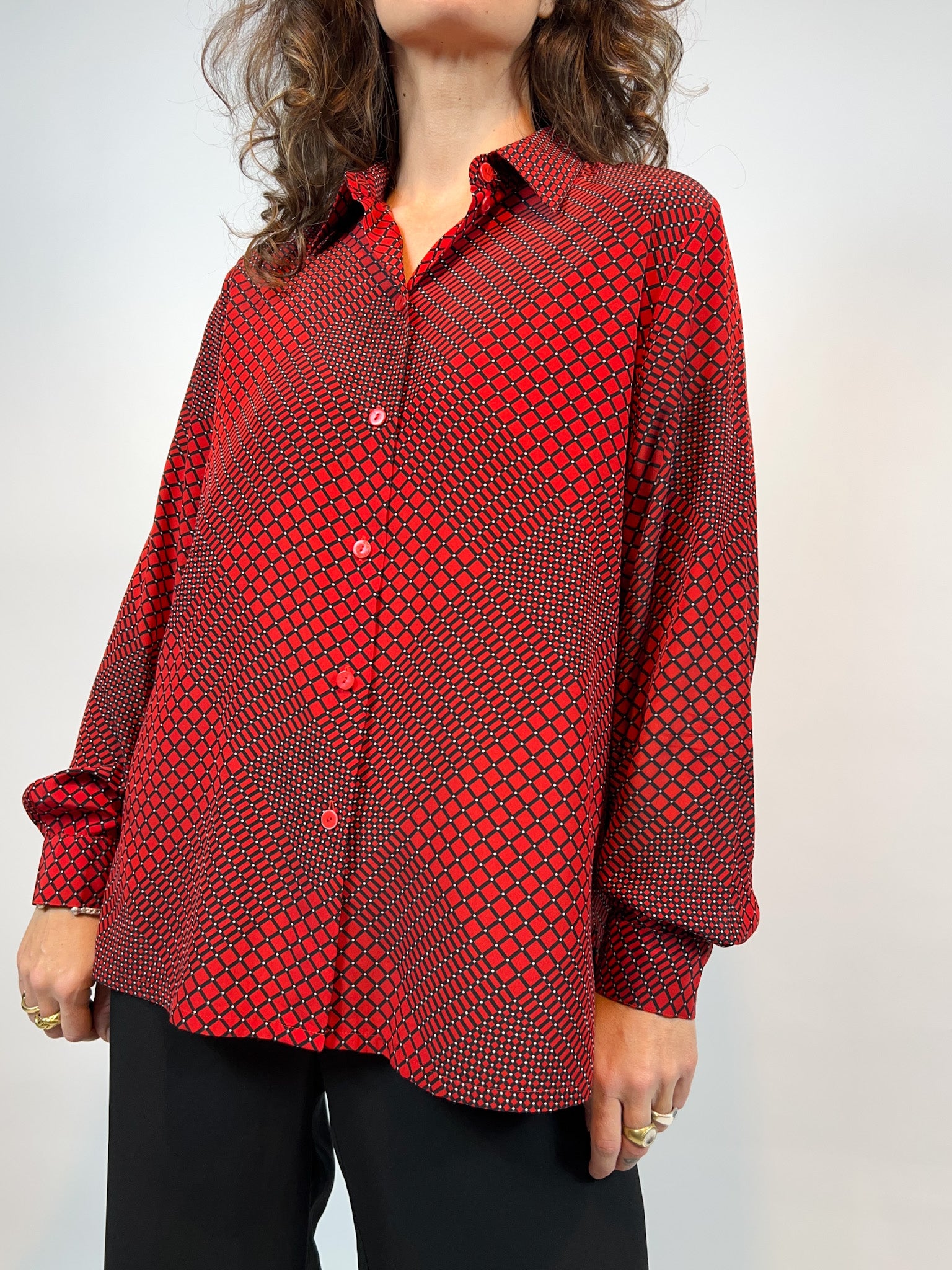 Vintage Royal Blue Satin Shirt with Floral Jacquard