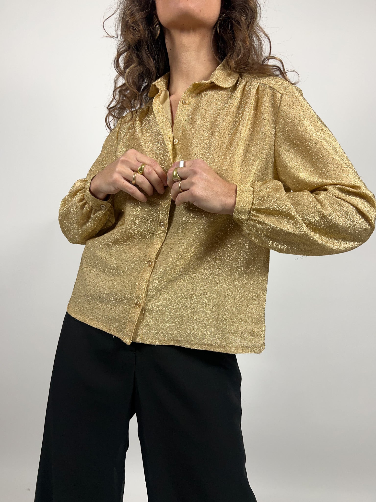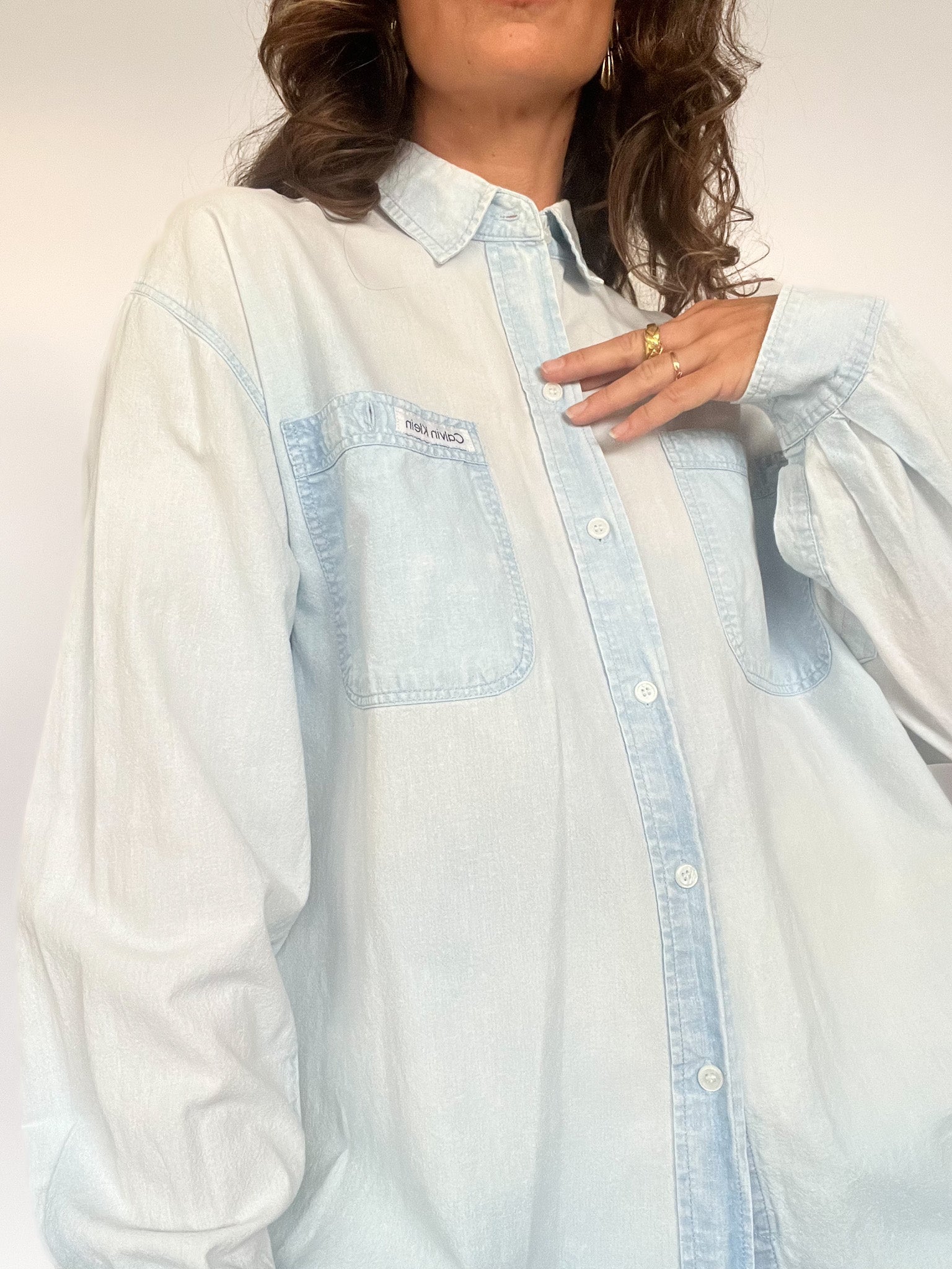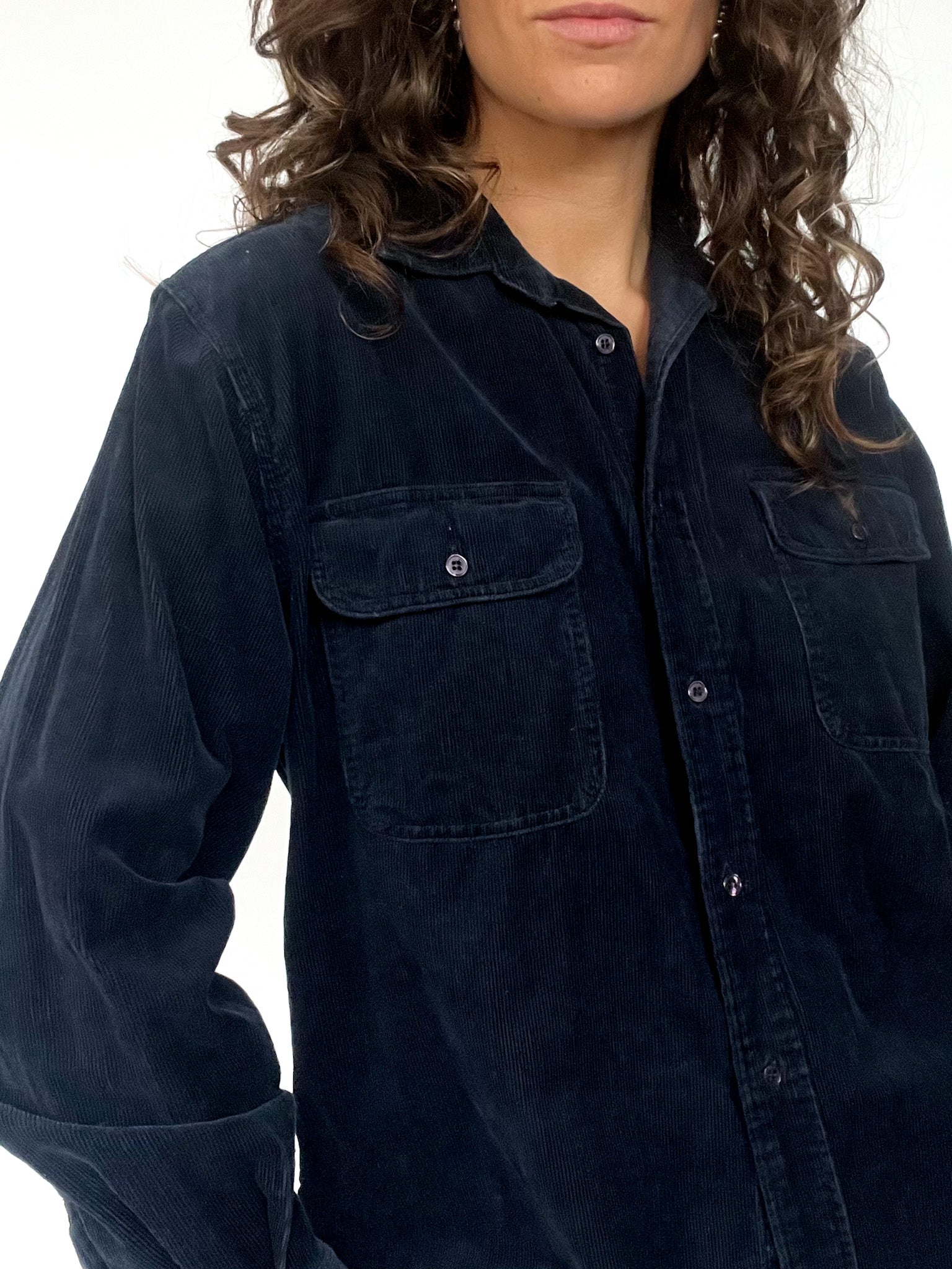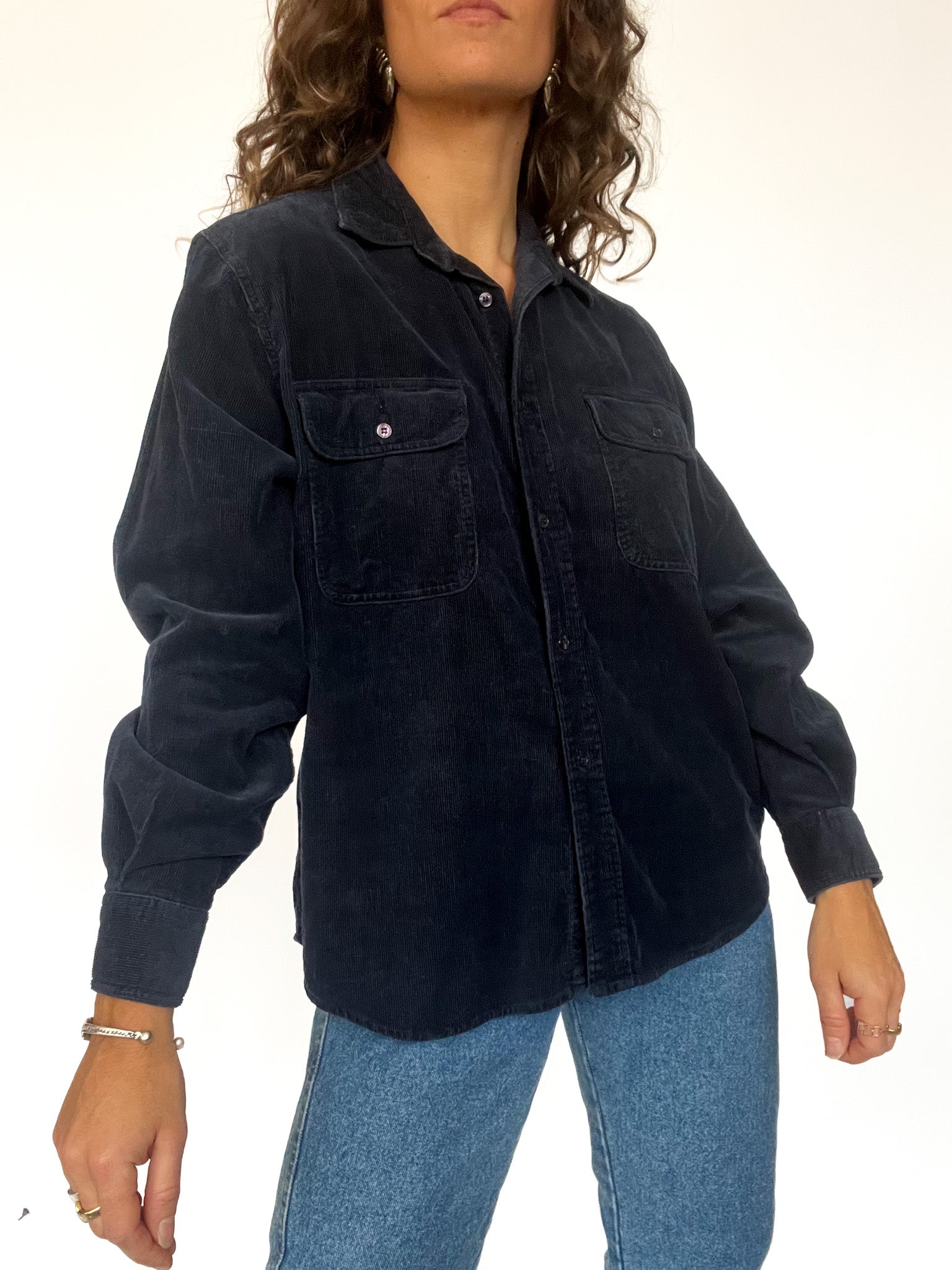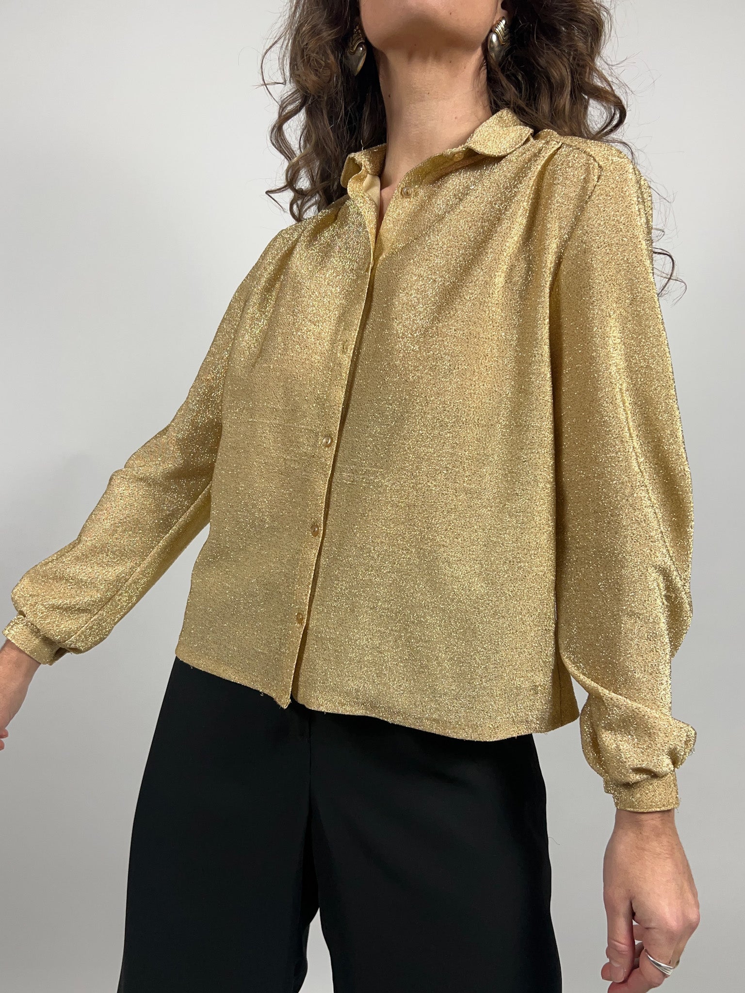 Vintage Royal Blue Satin Shirt with Floral Jacquard