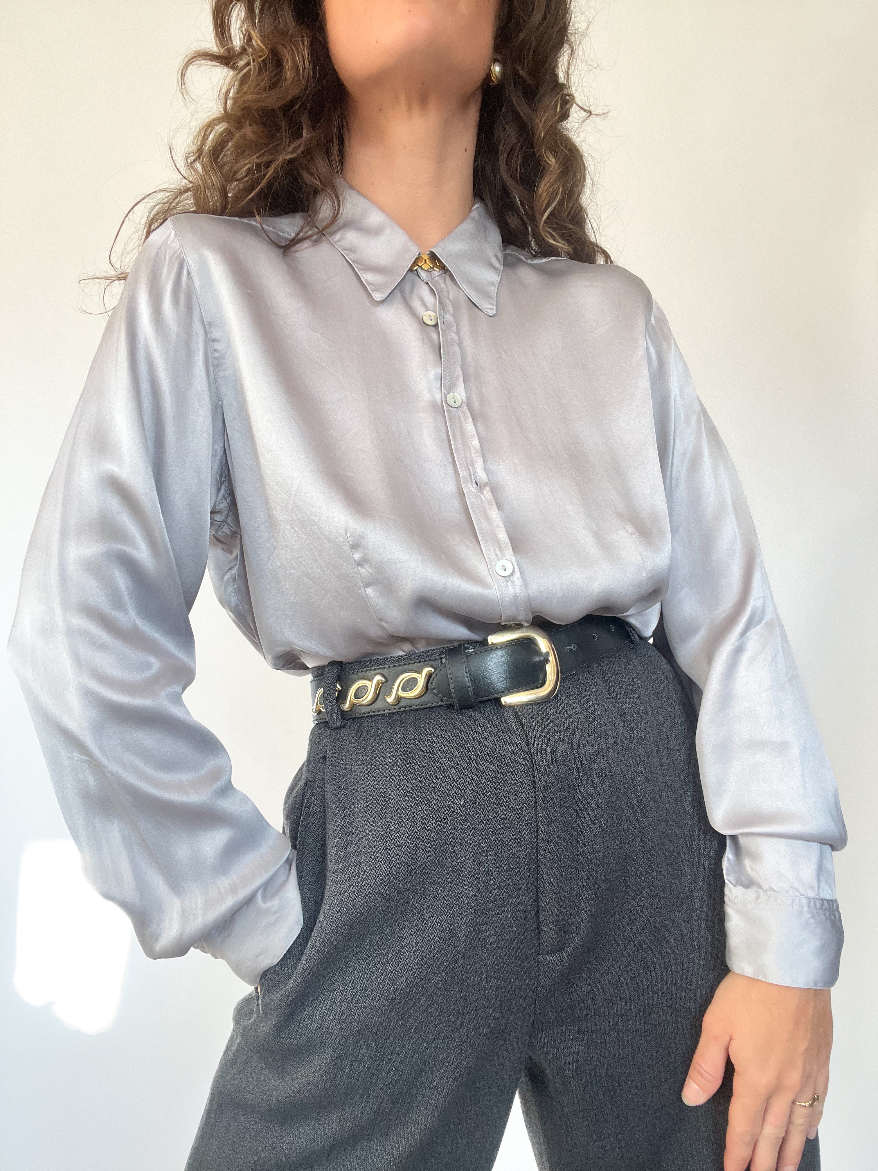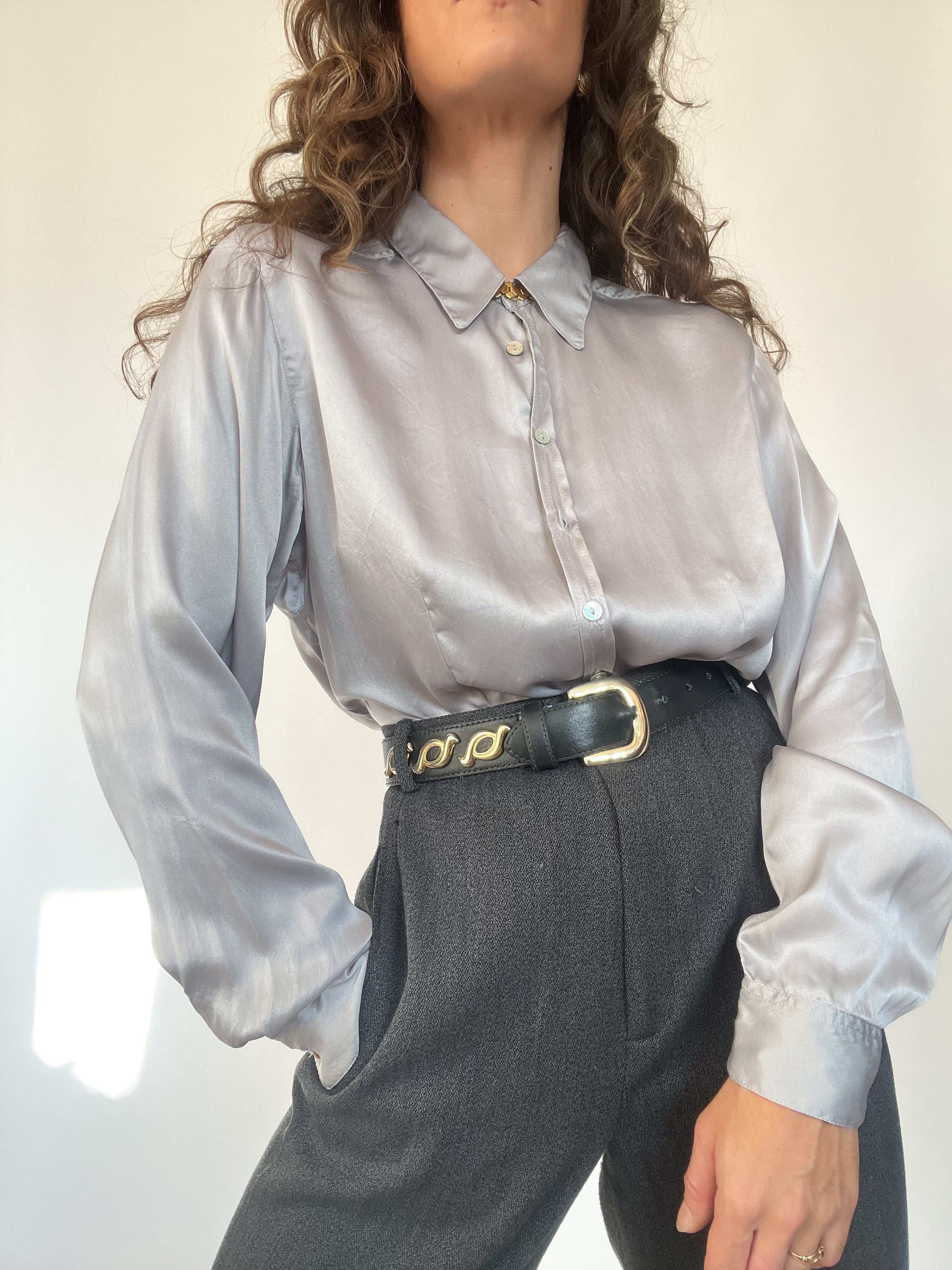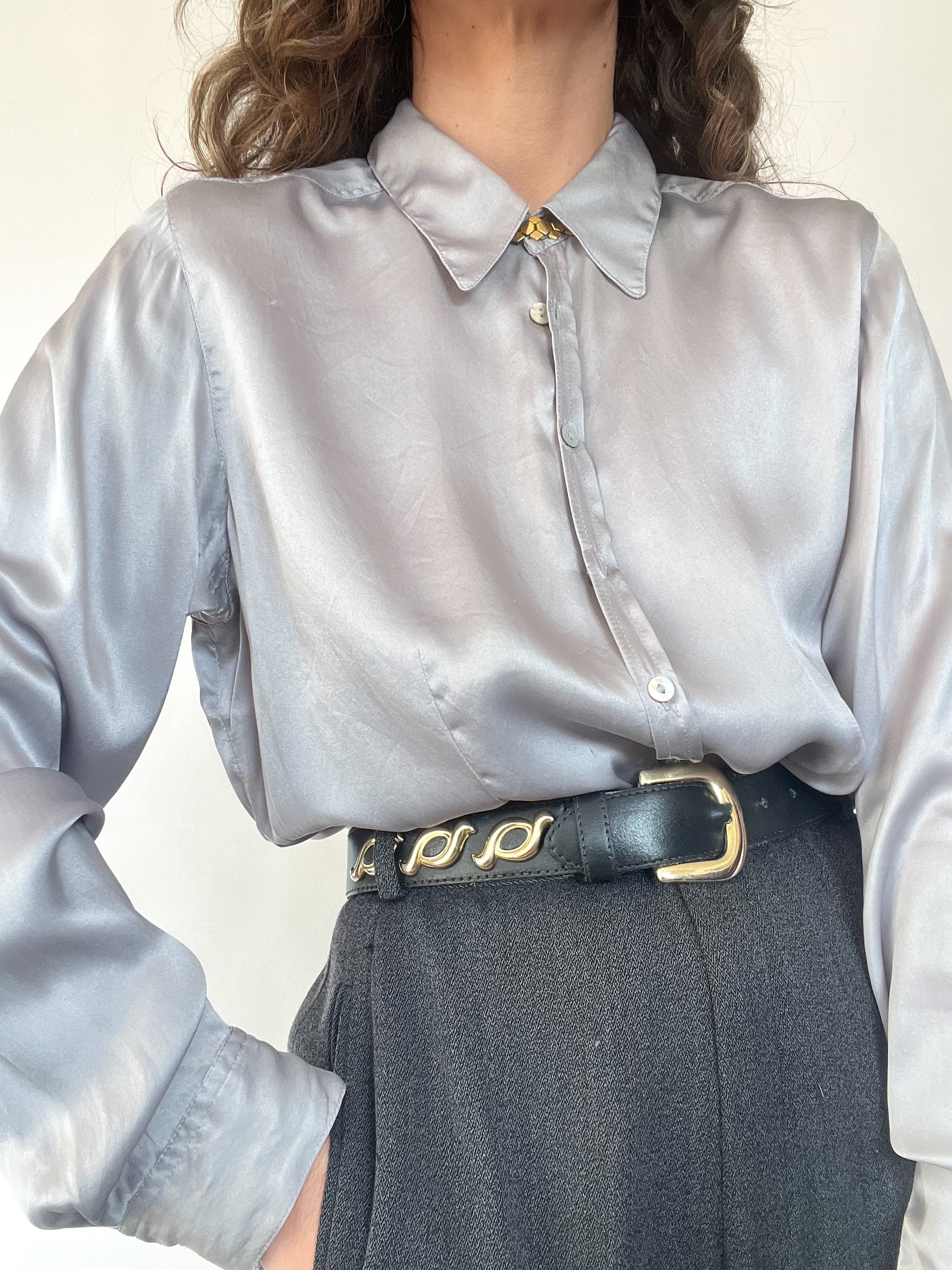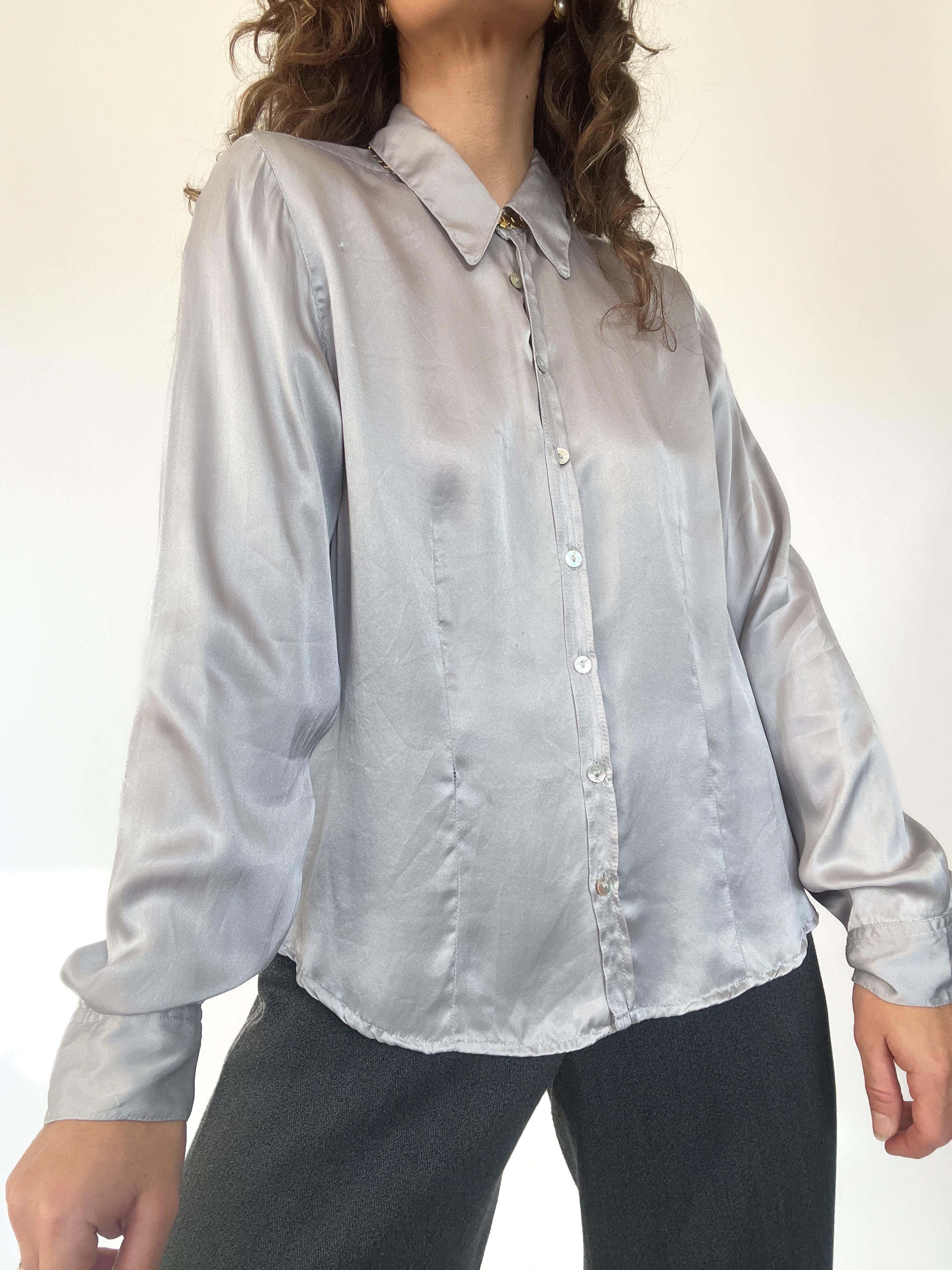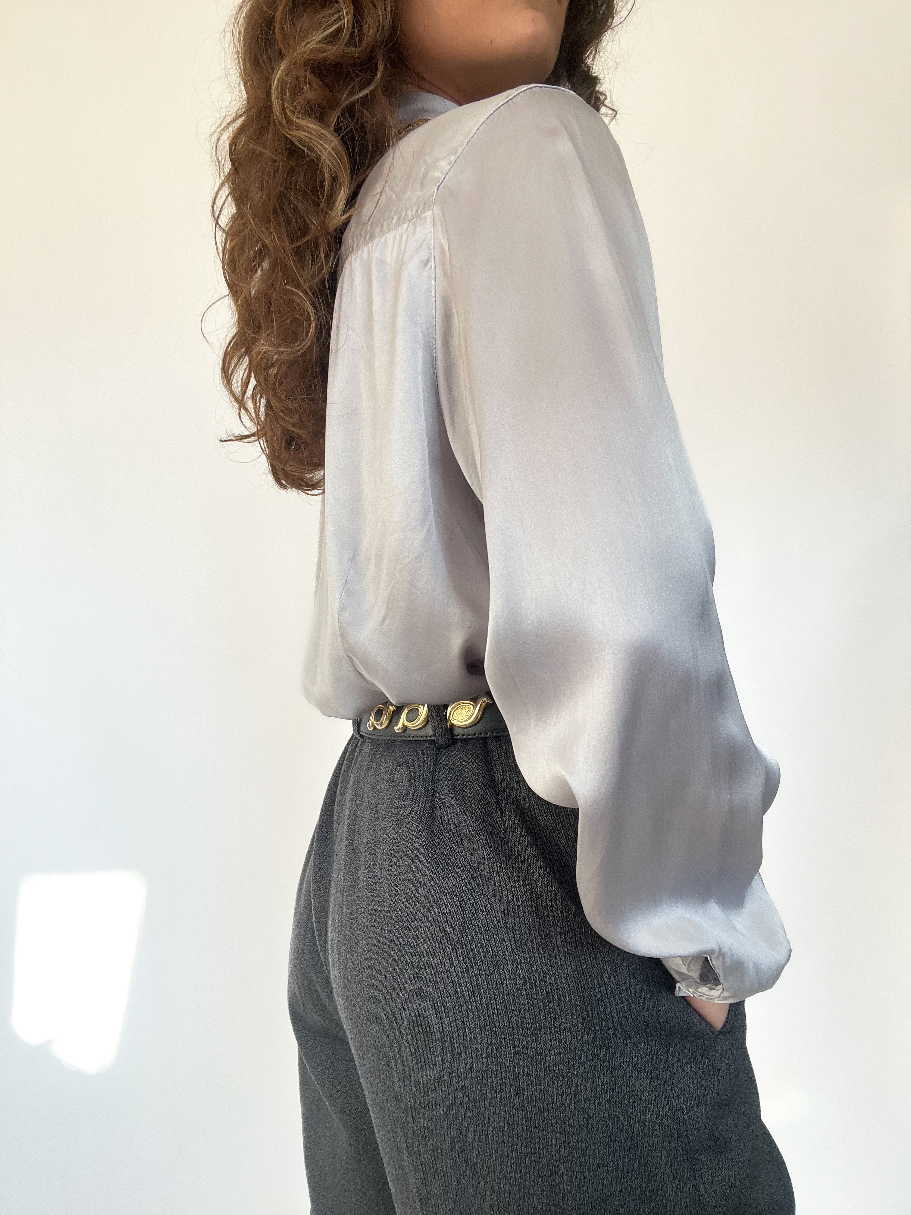 Vintage Gerard Darel Silver Silk Satin Shirt