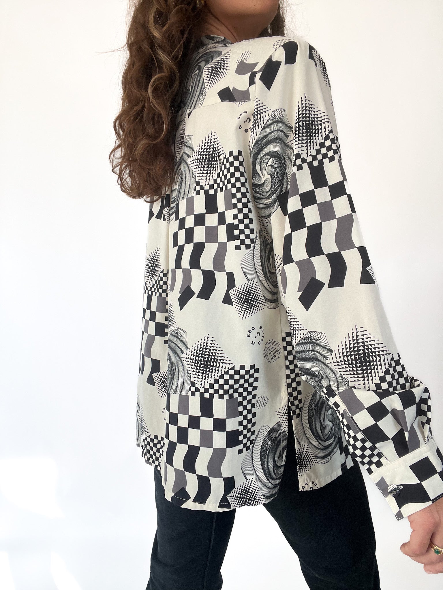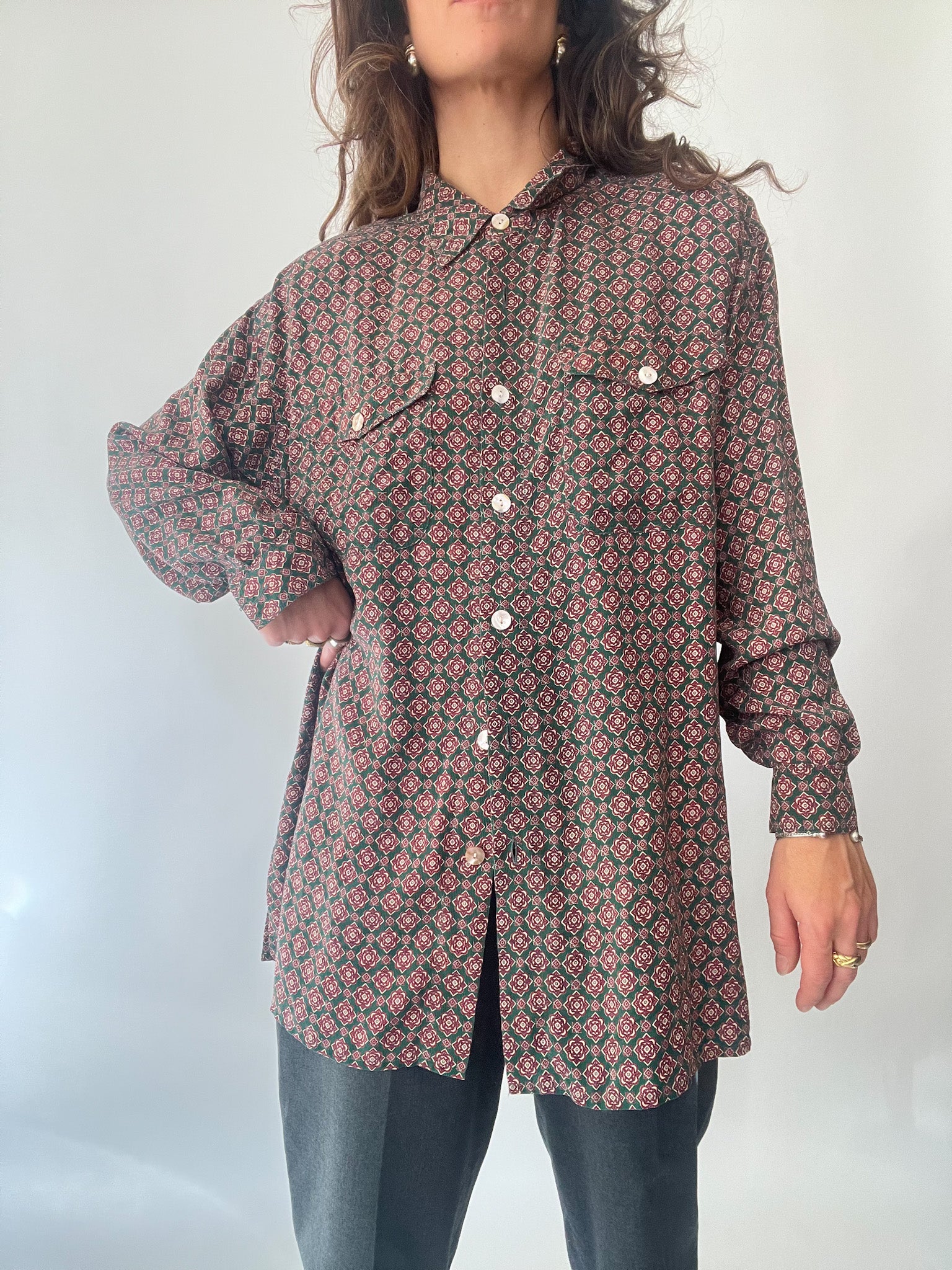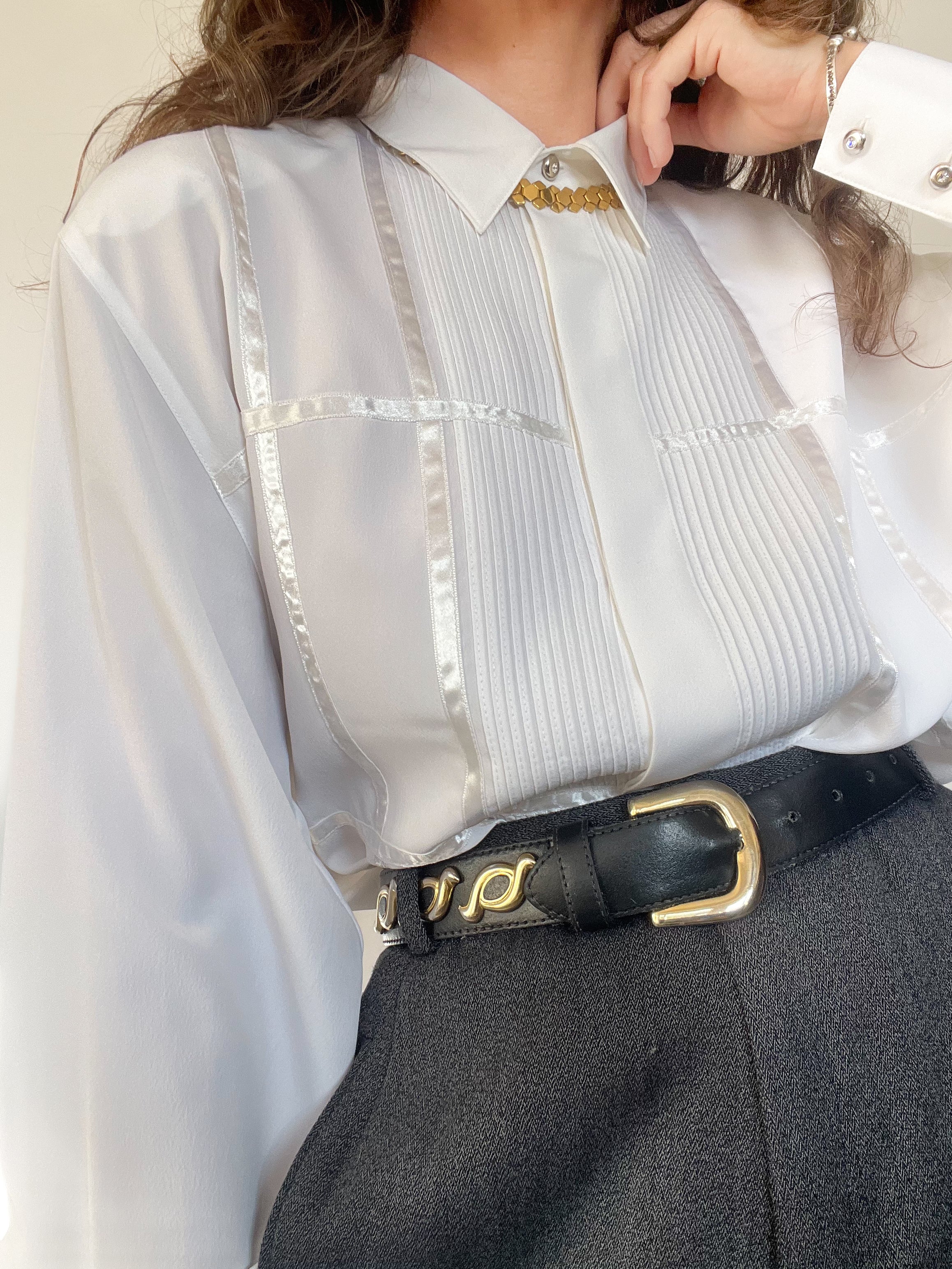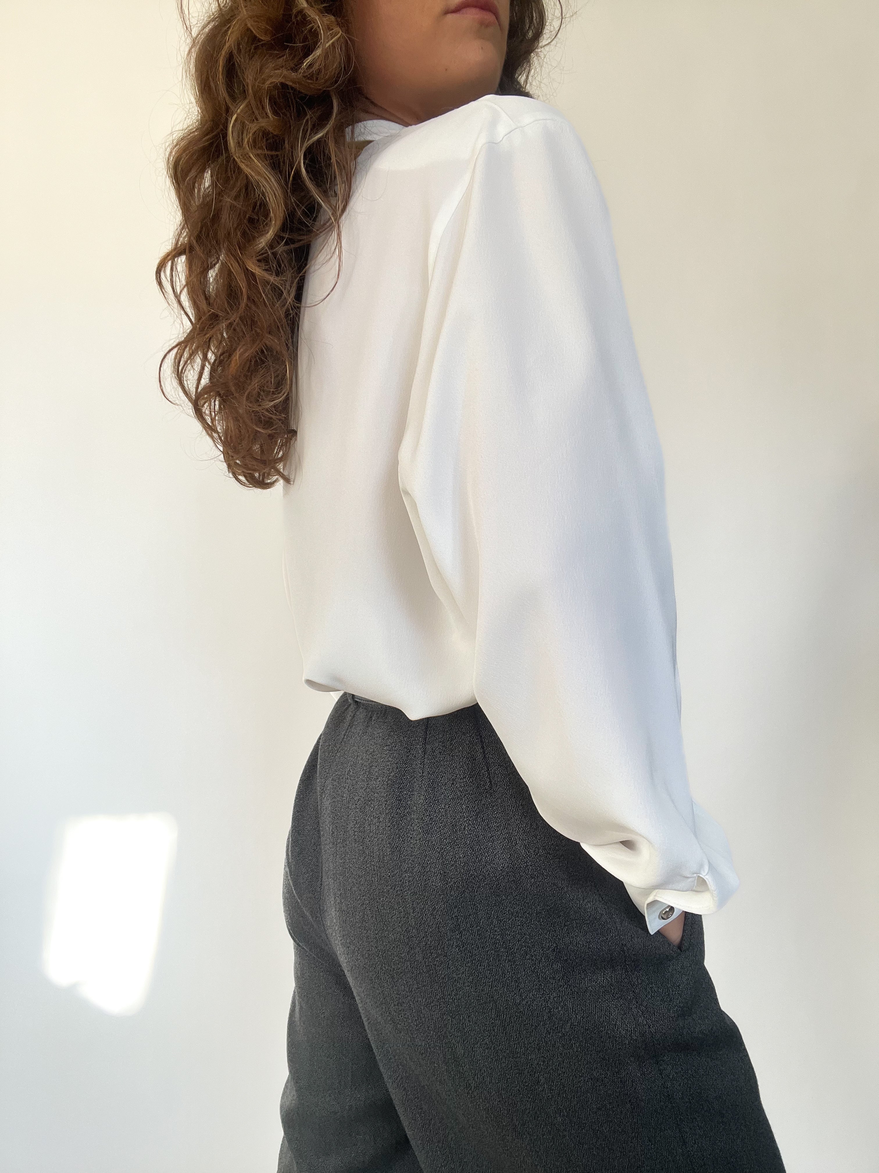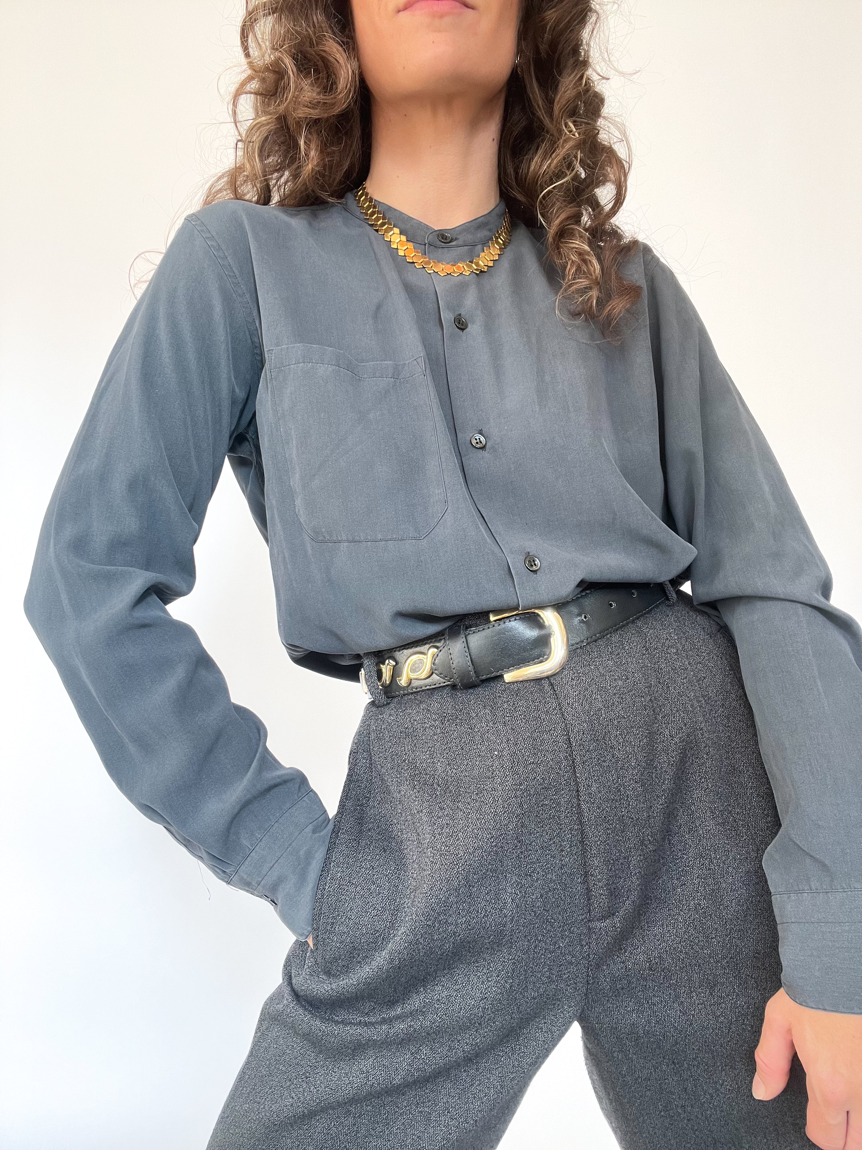 Vintage Gerard Darel Silver Silk Satin Shirt
