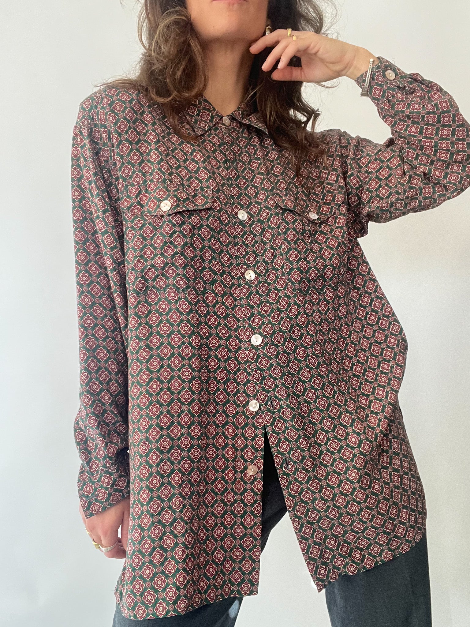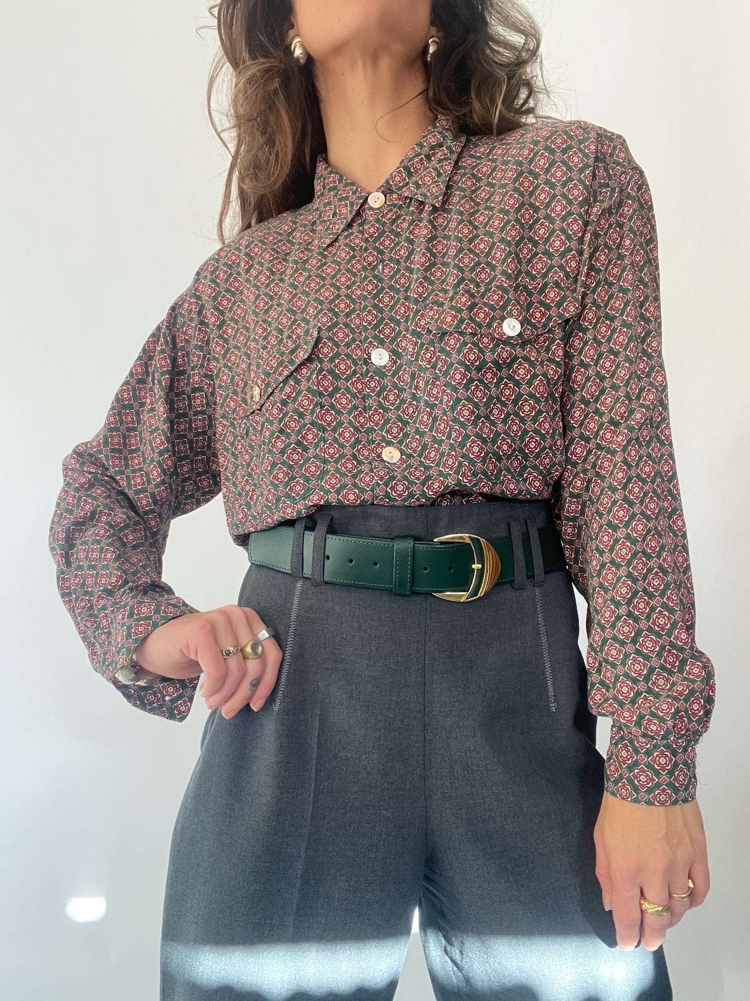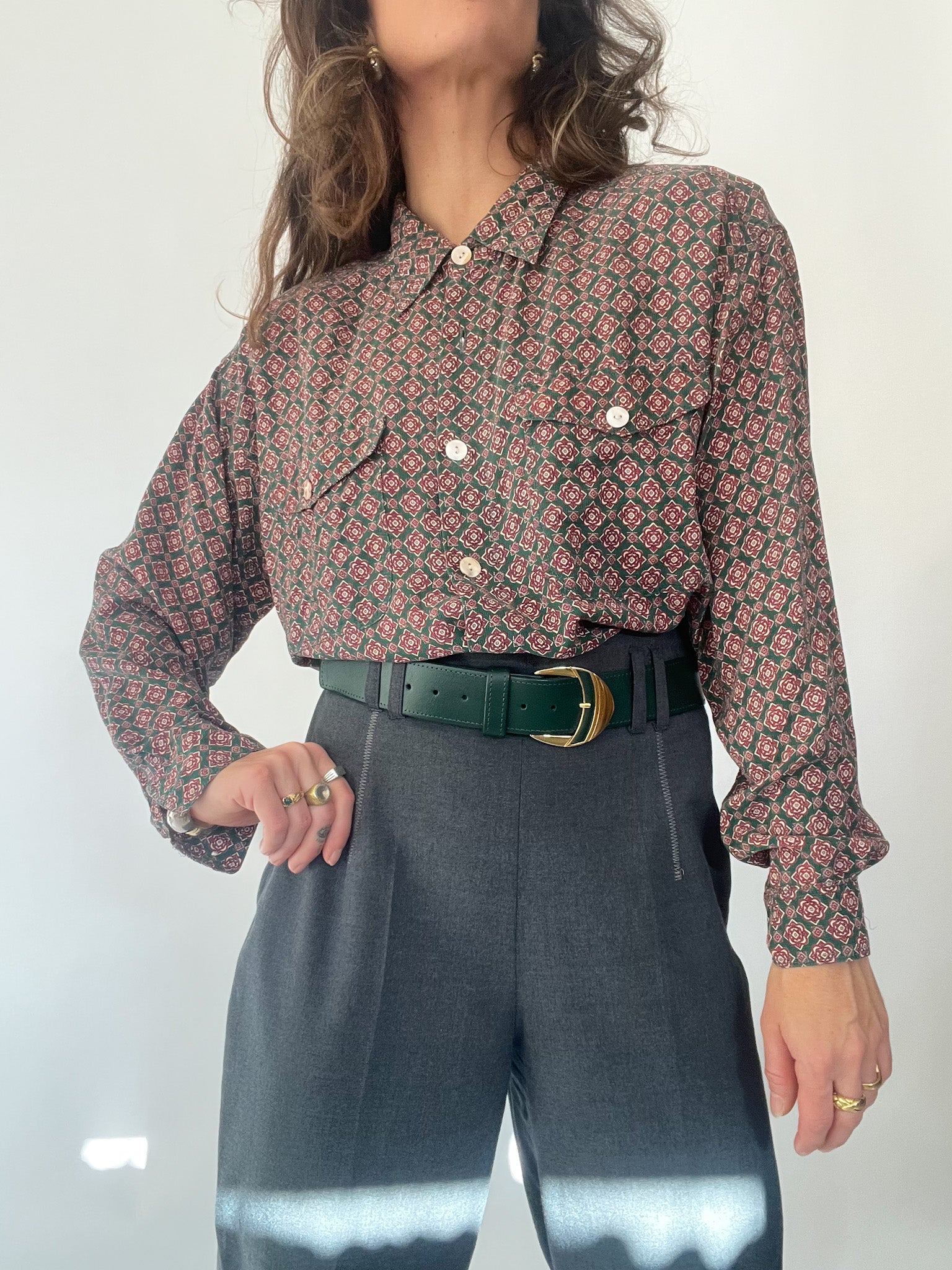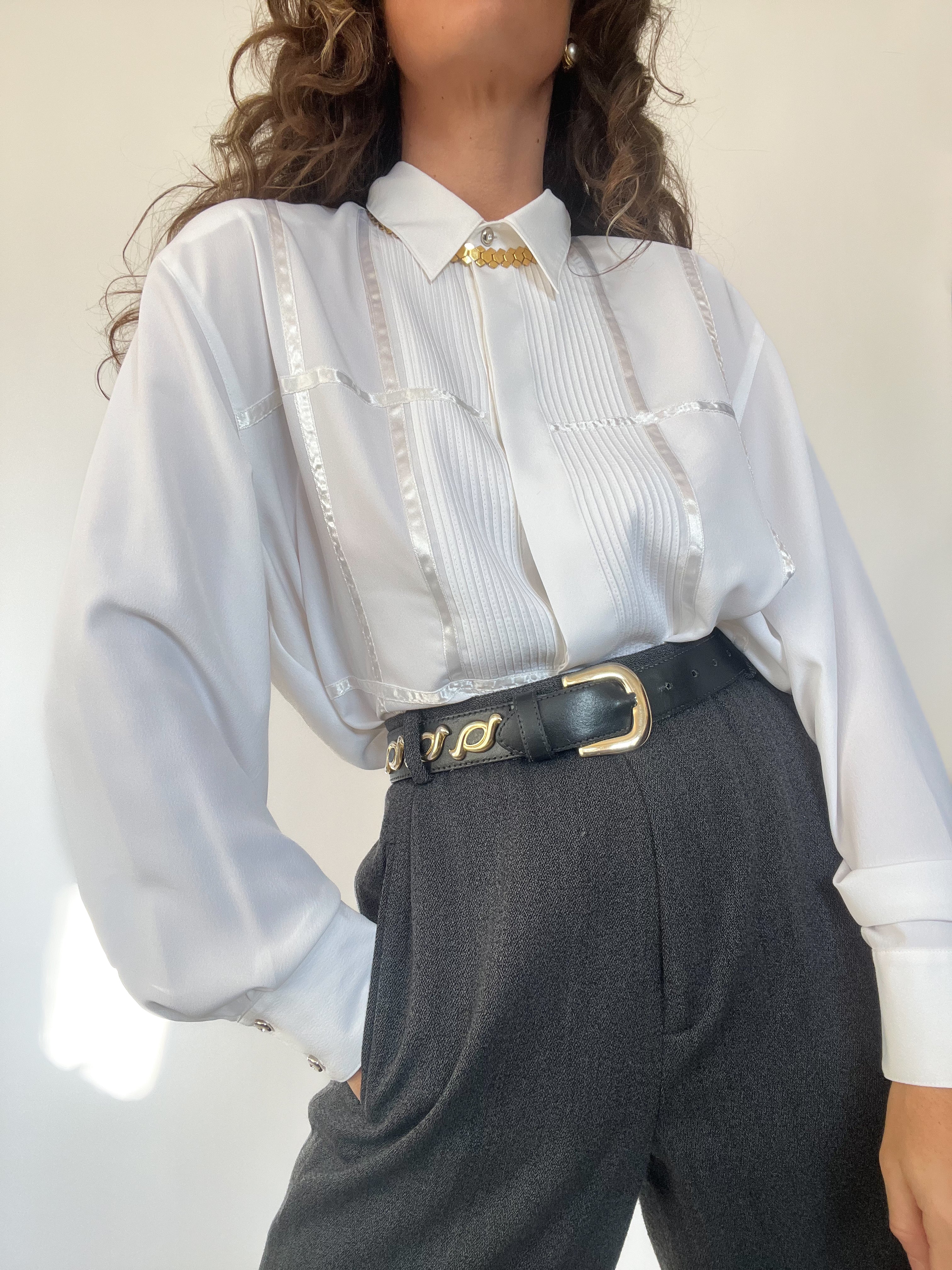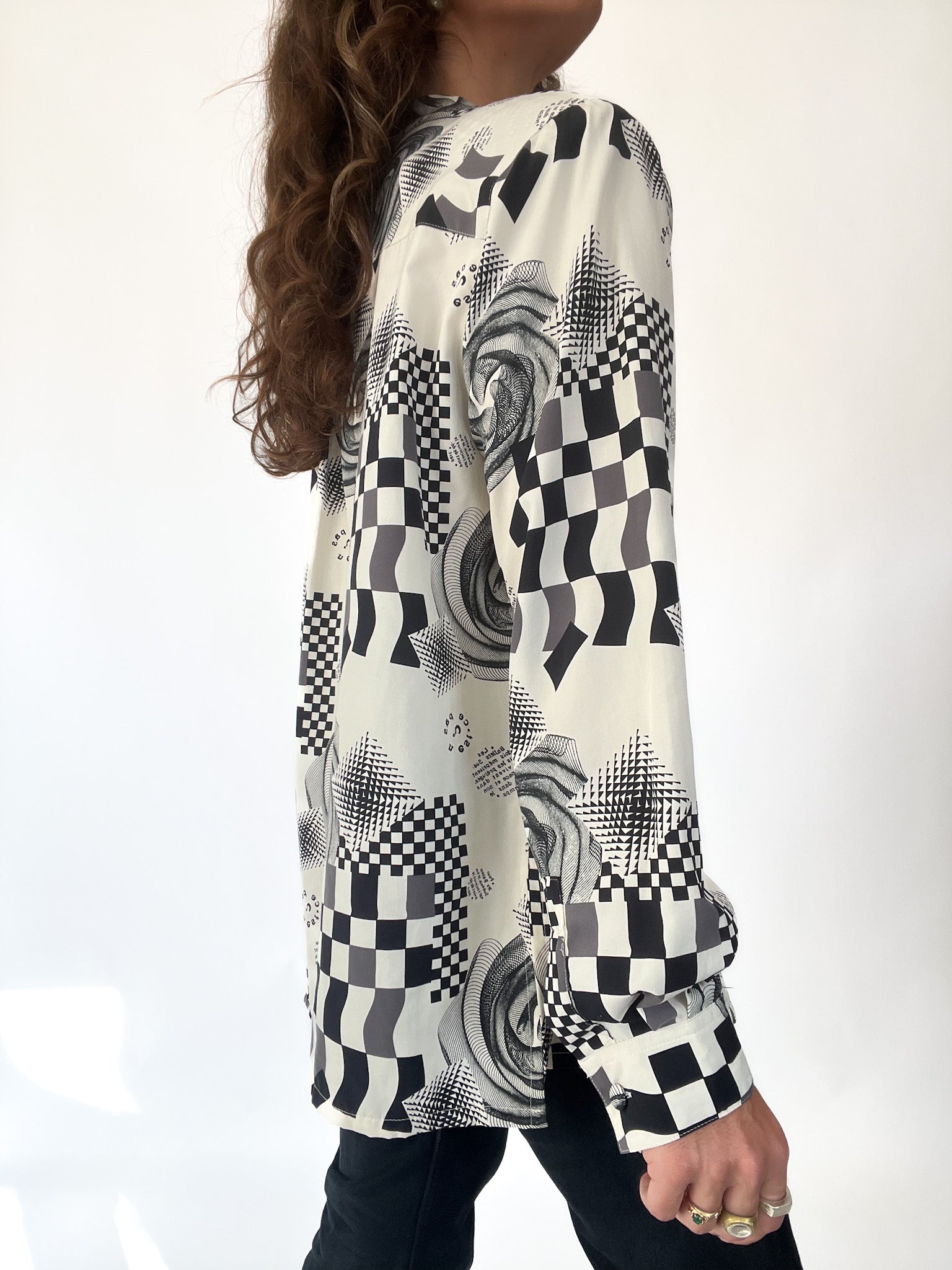 Vintage Gerard Darel Silver Silk Satin Shirt