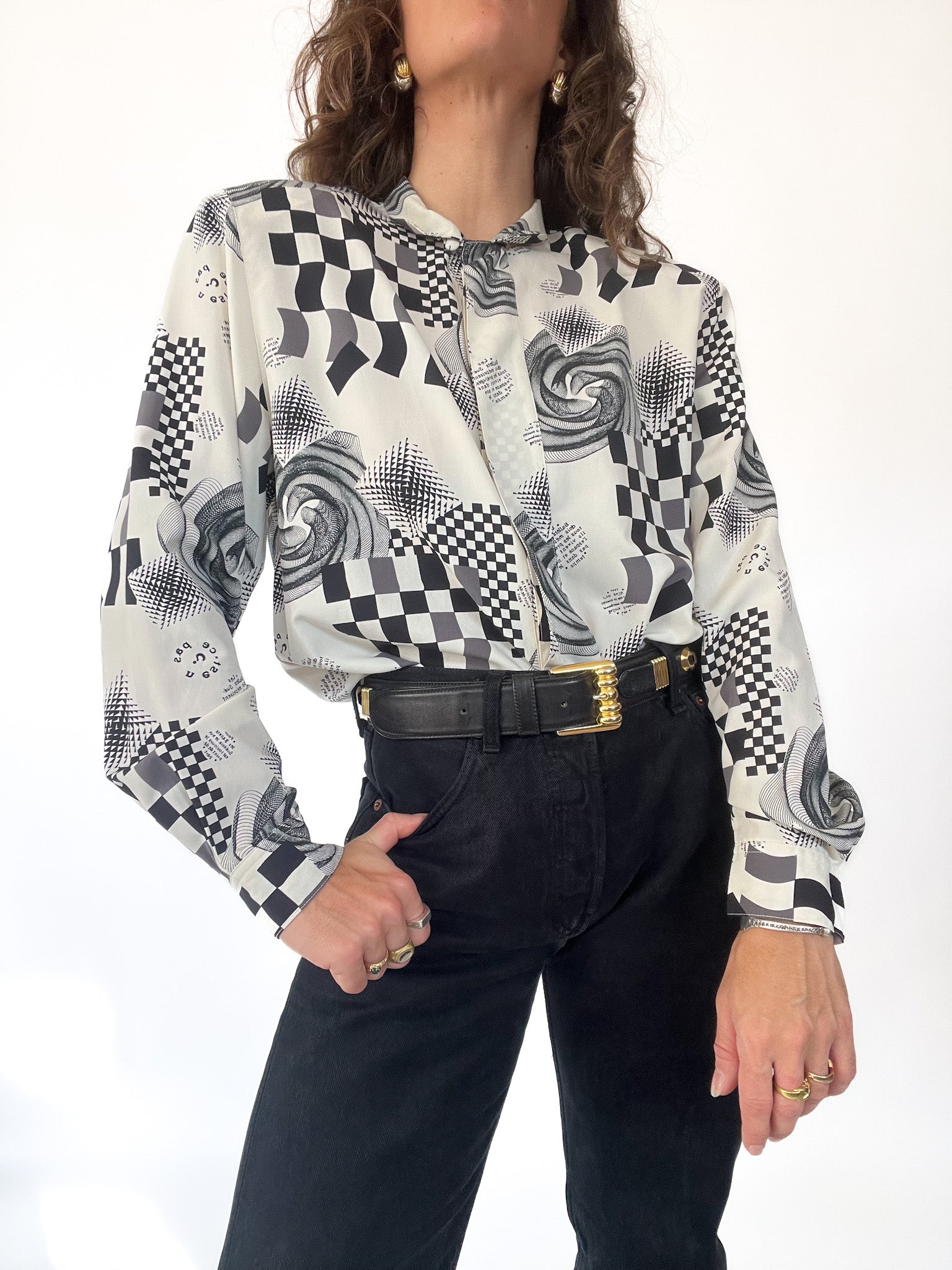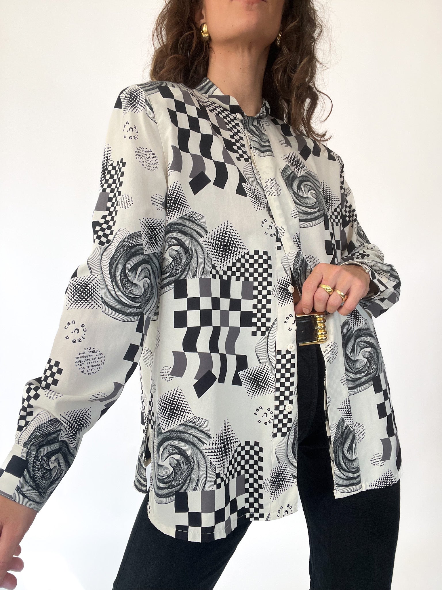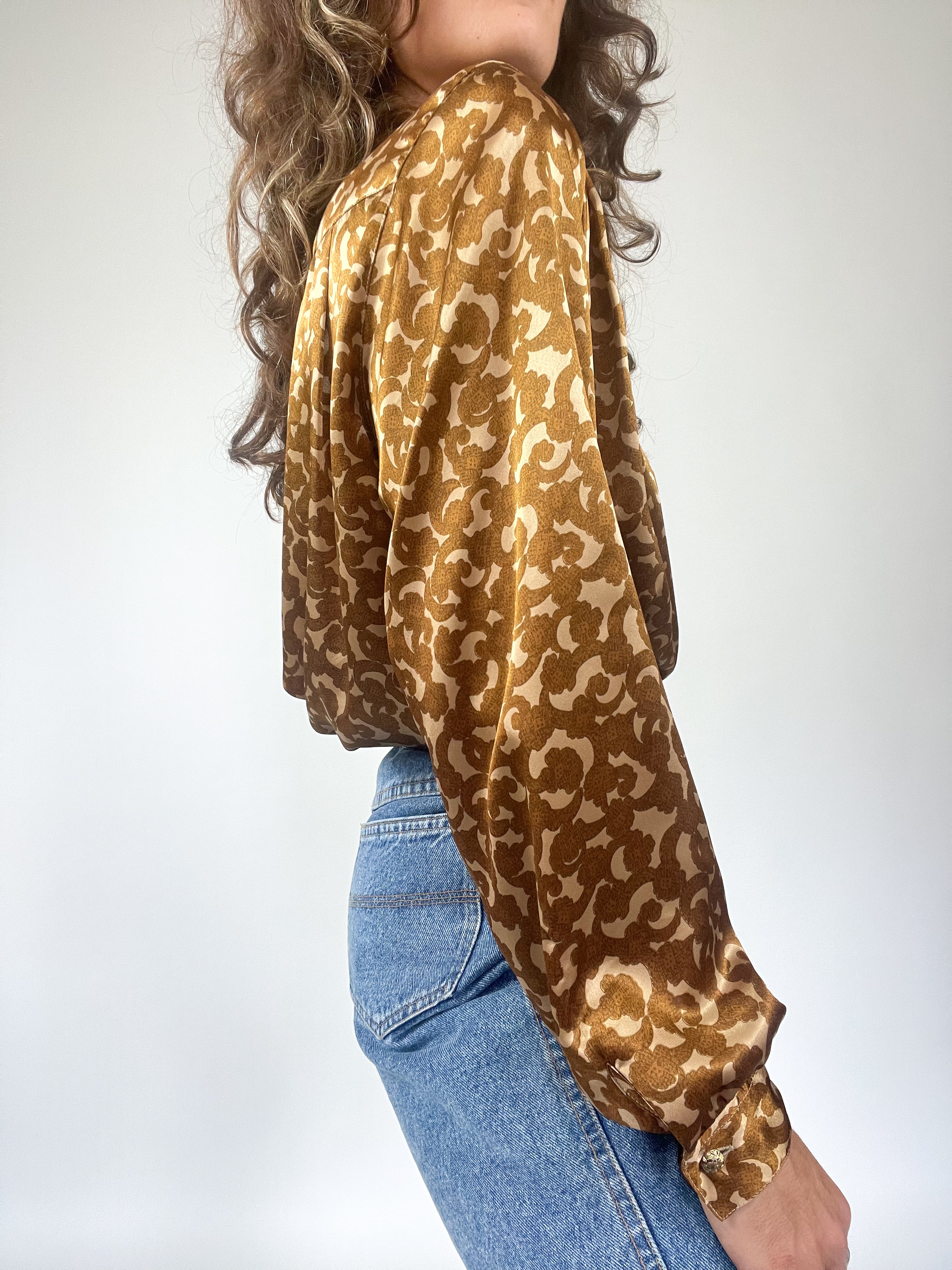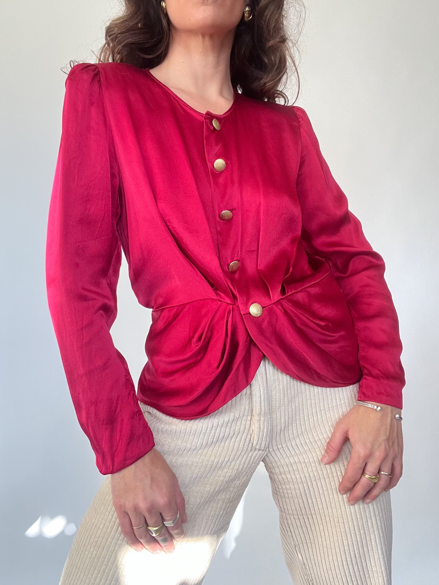 Vintage Gerard Darel Silver Silk Satin Shirt