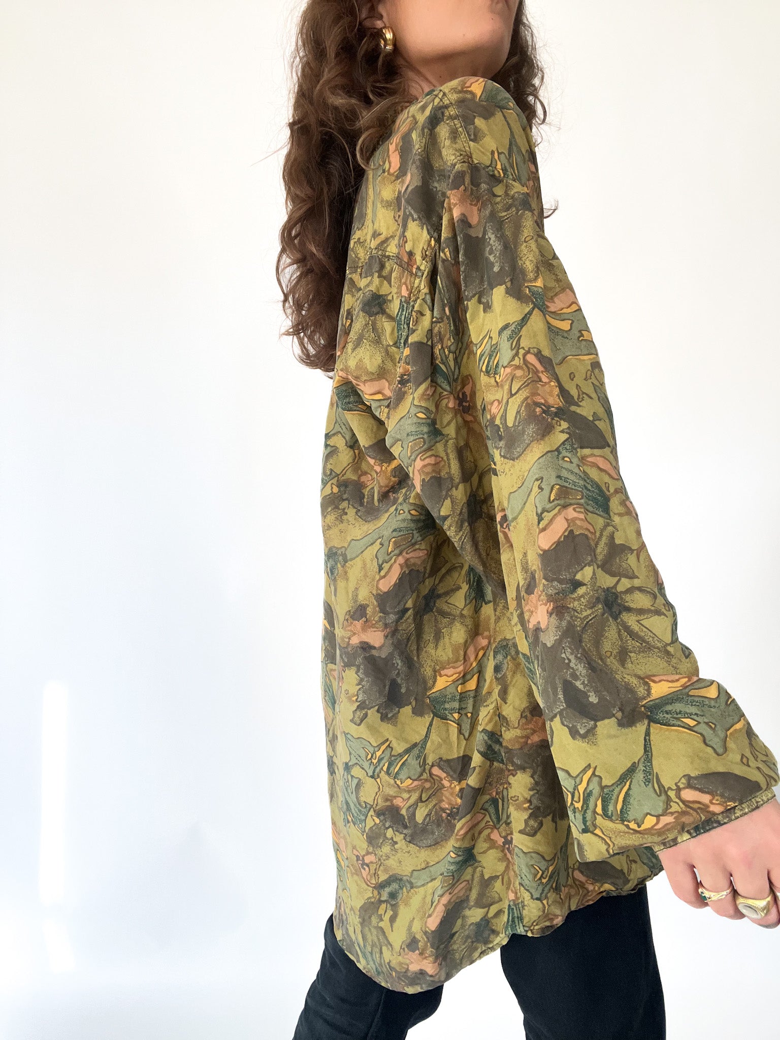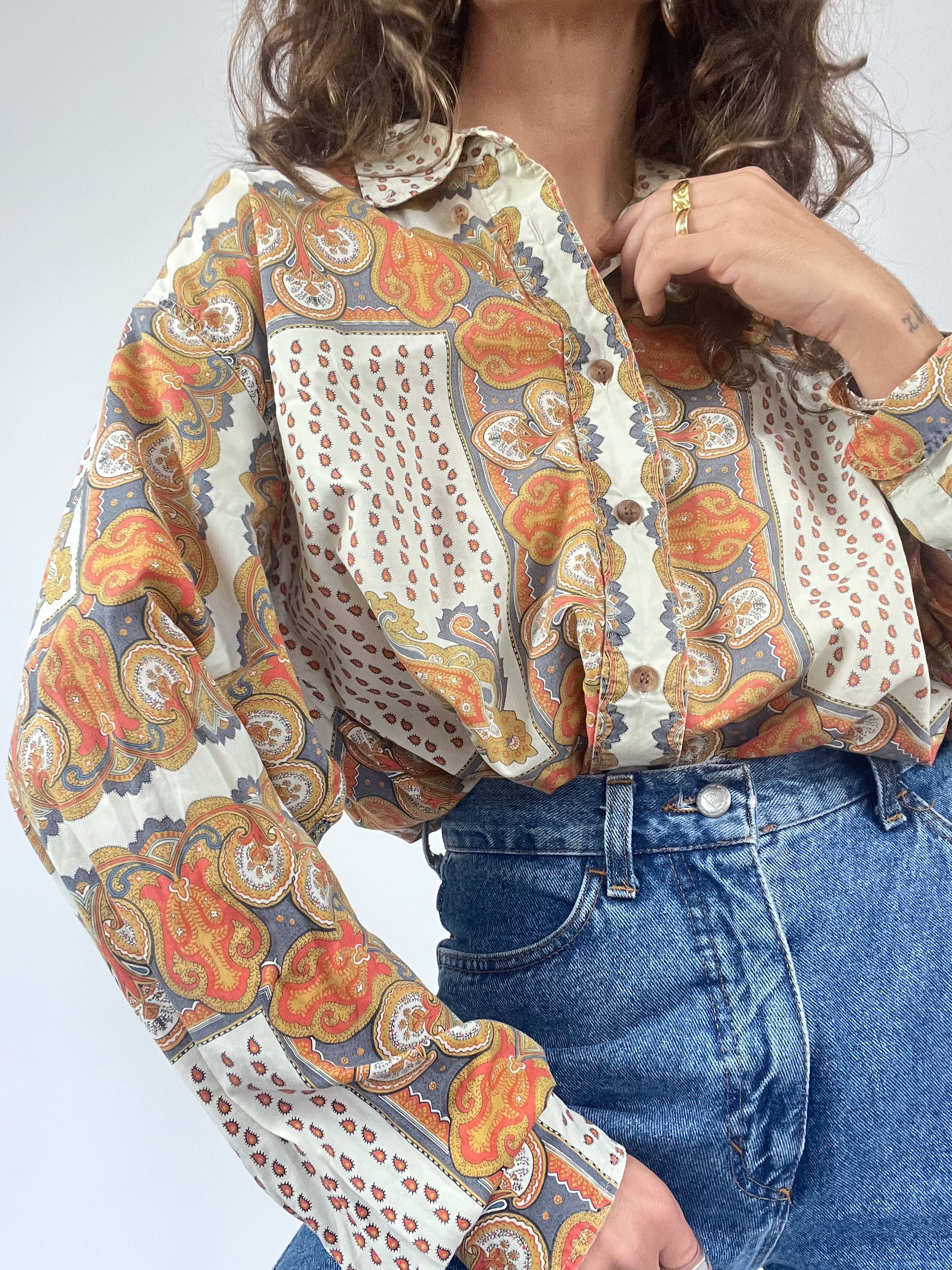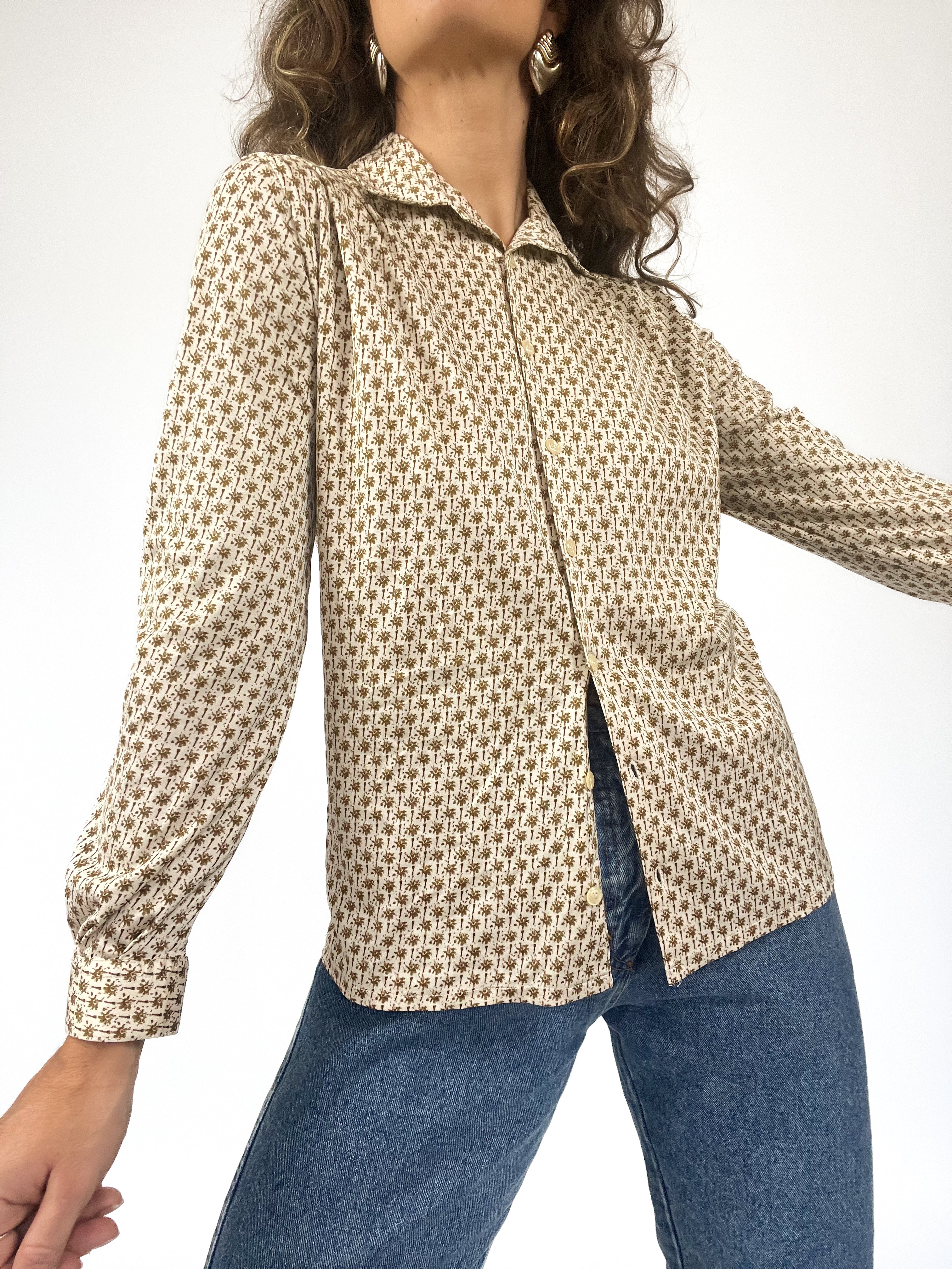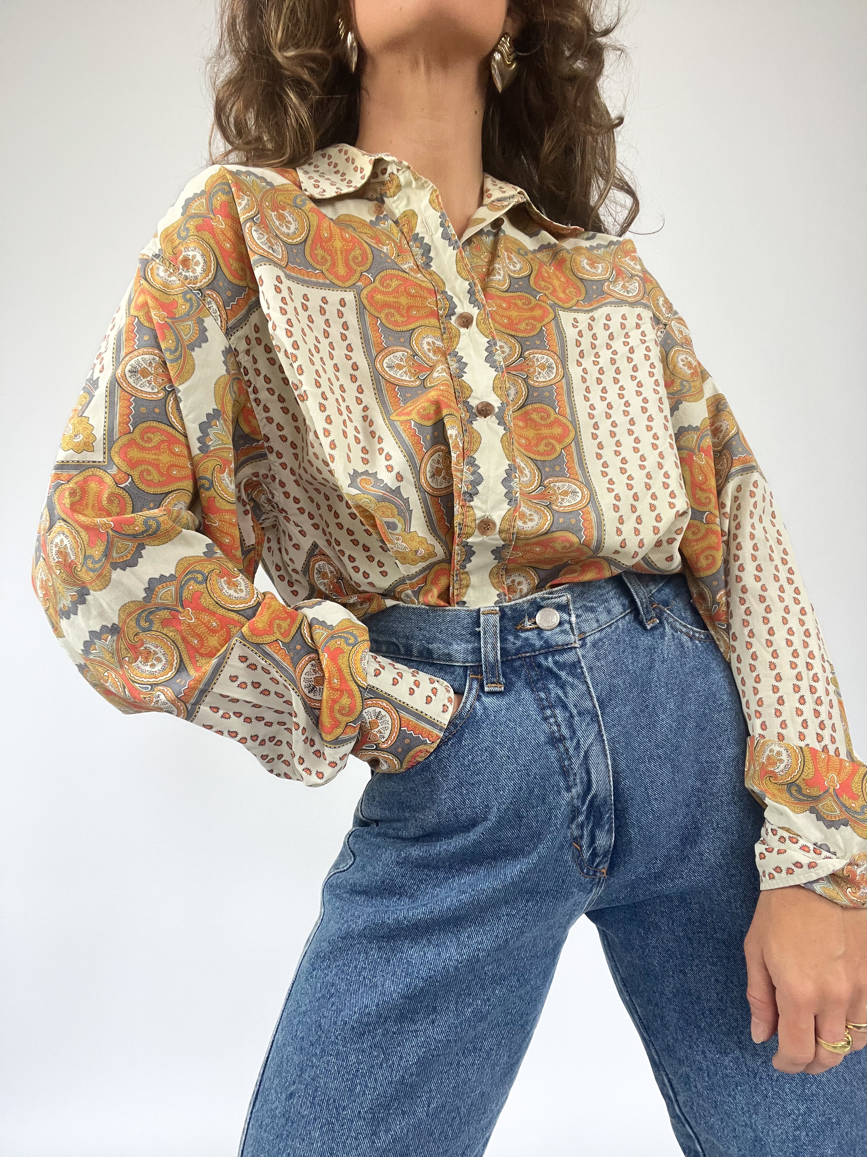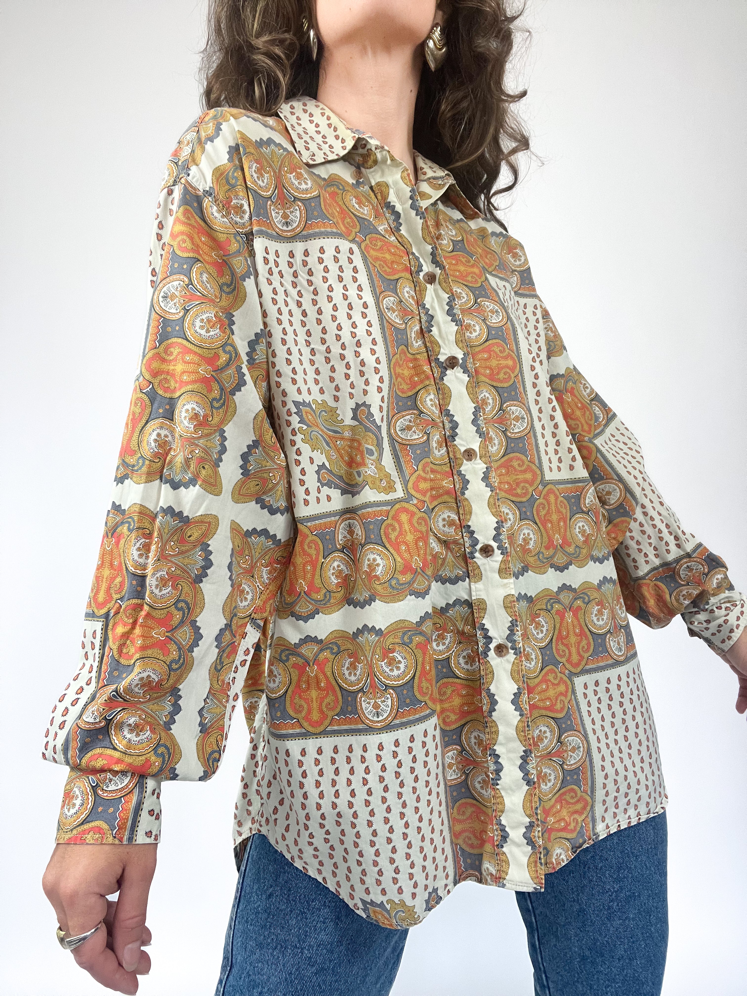 Vintage Gerard Darel Silver Silk Satin Shirt