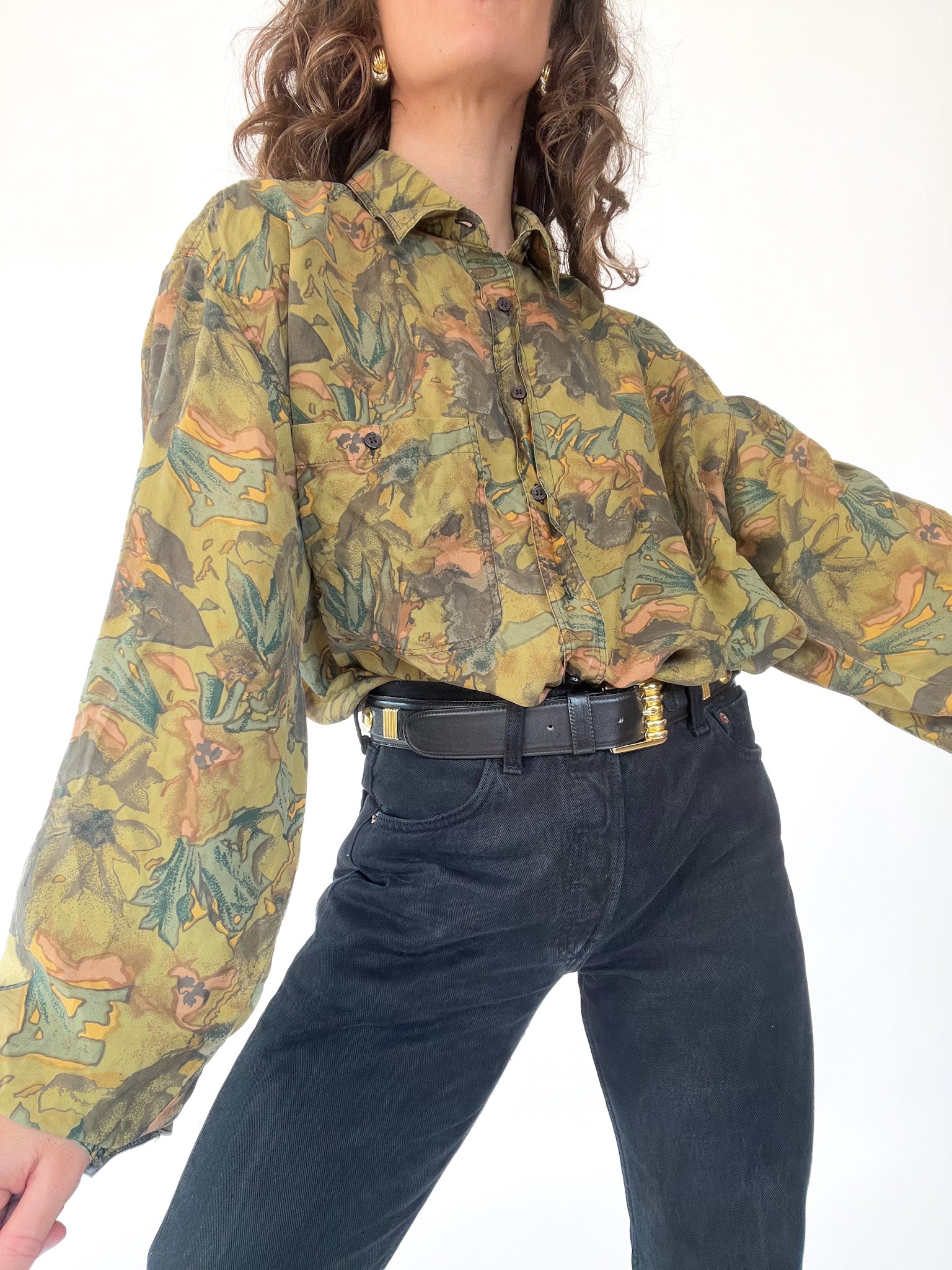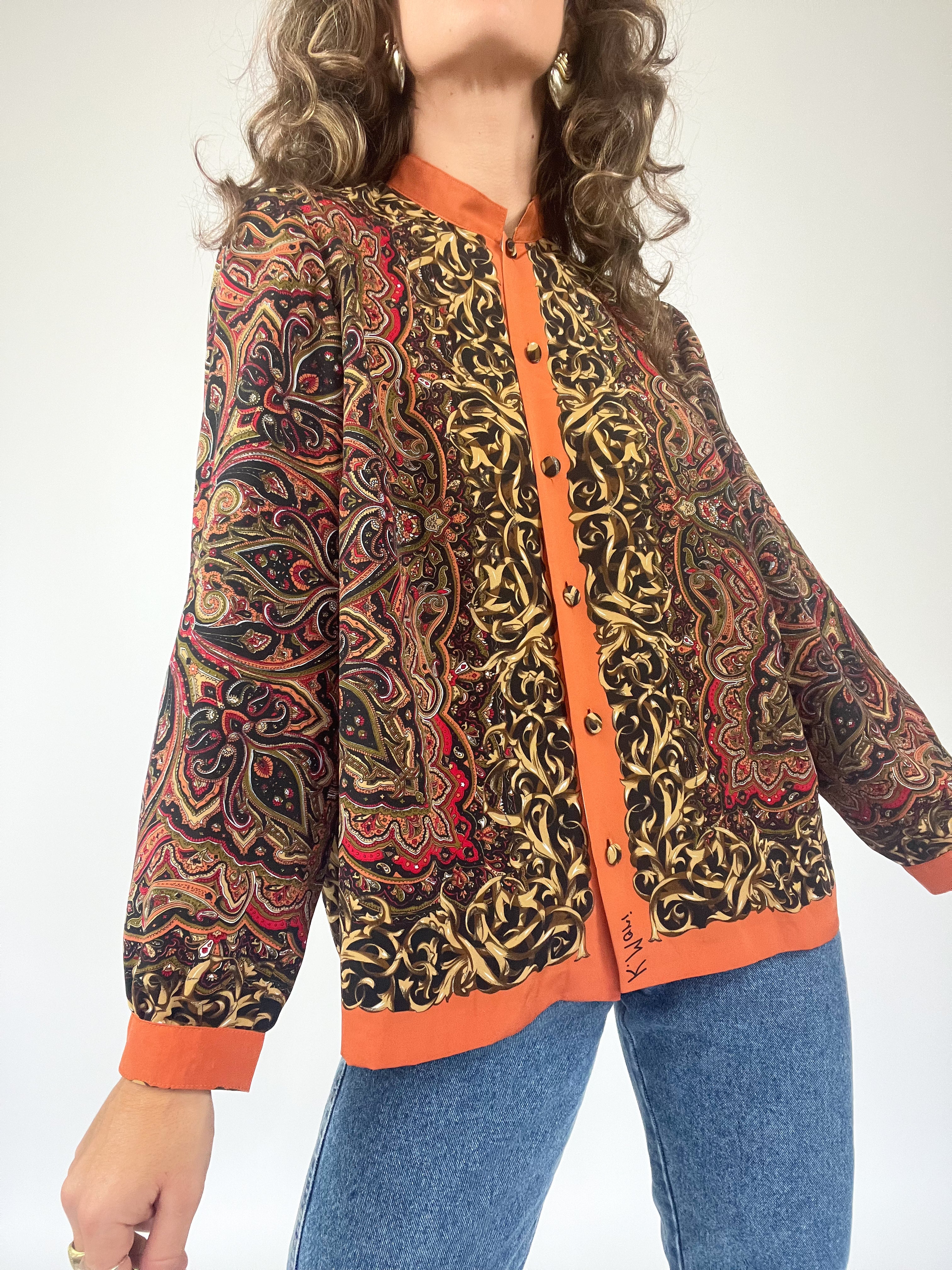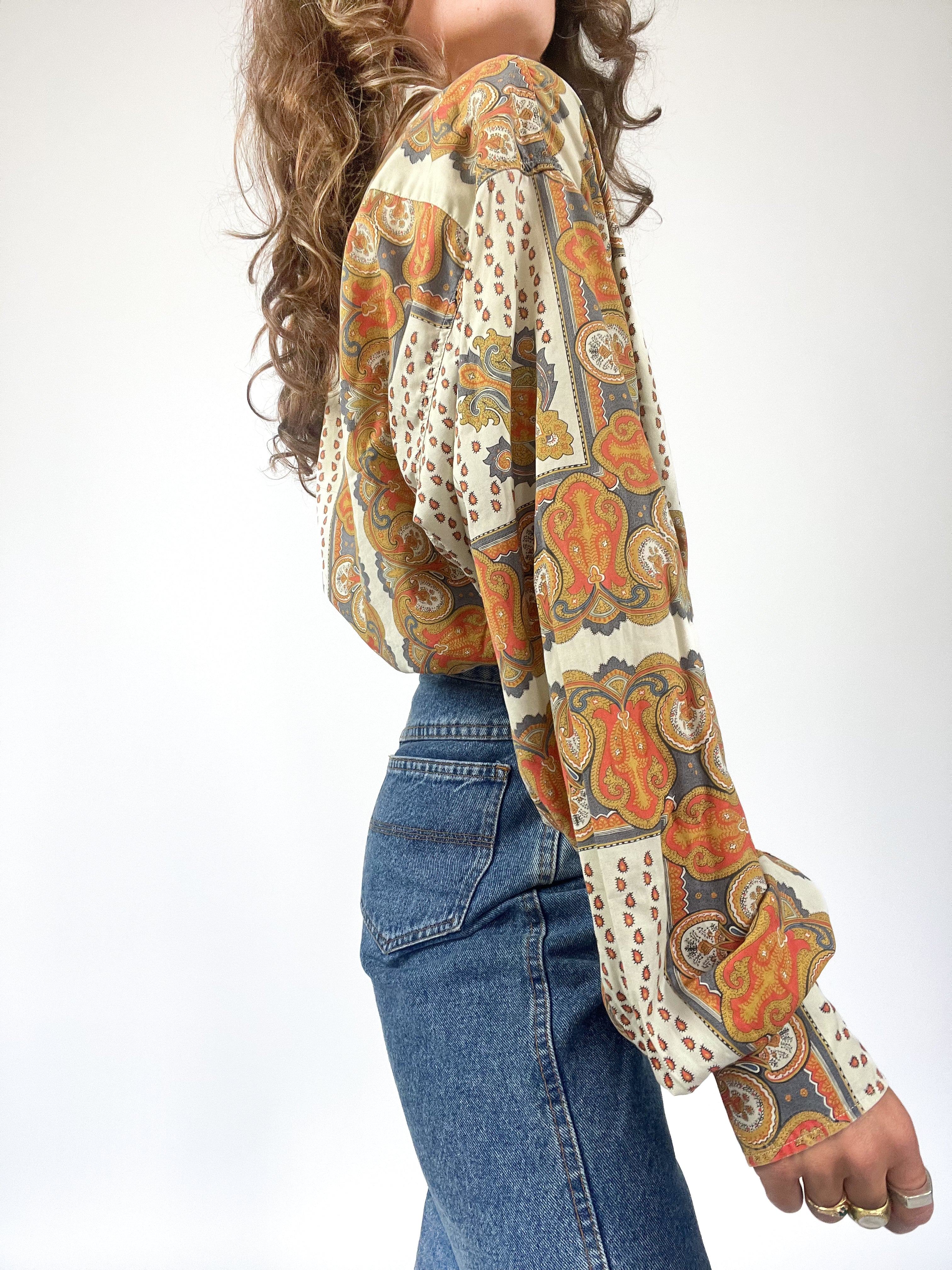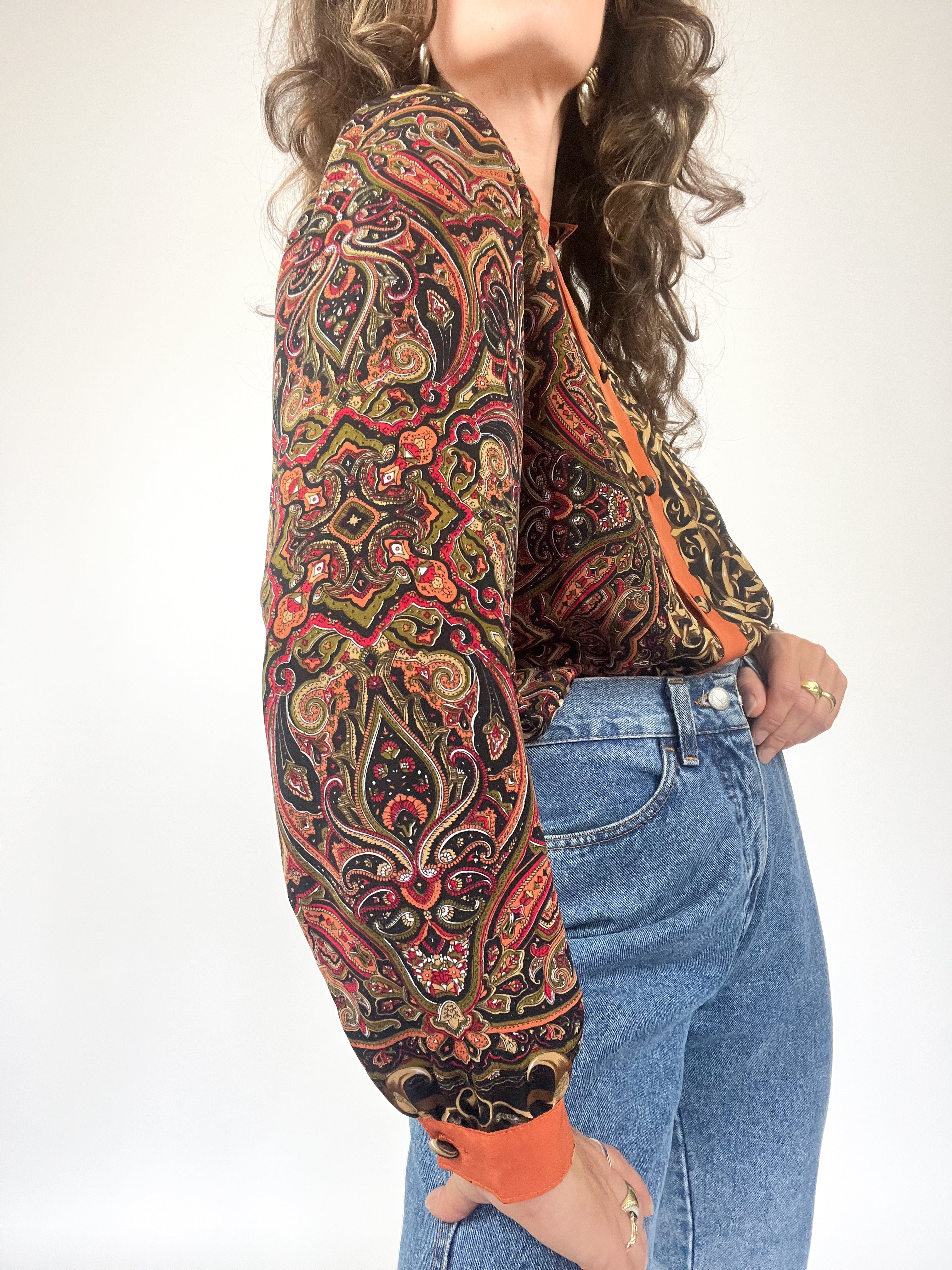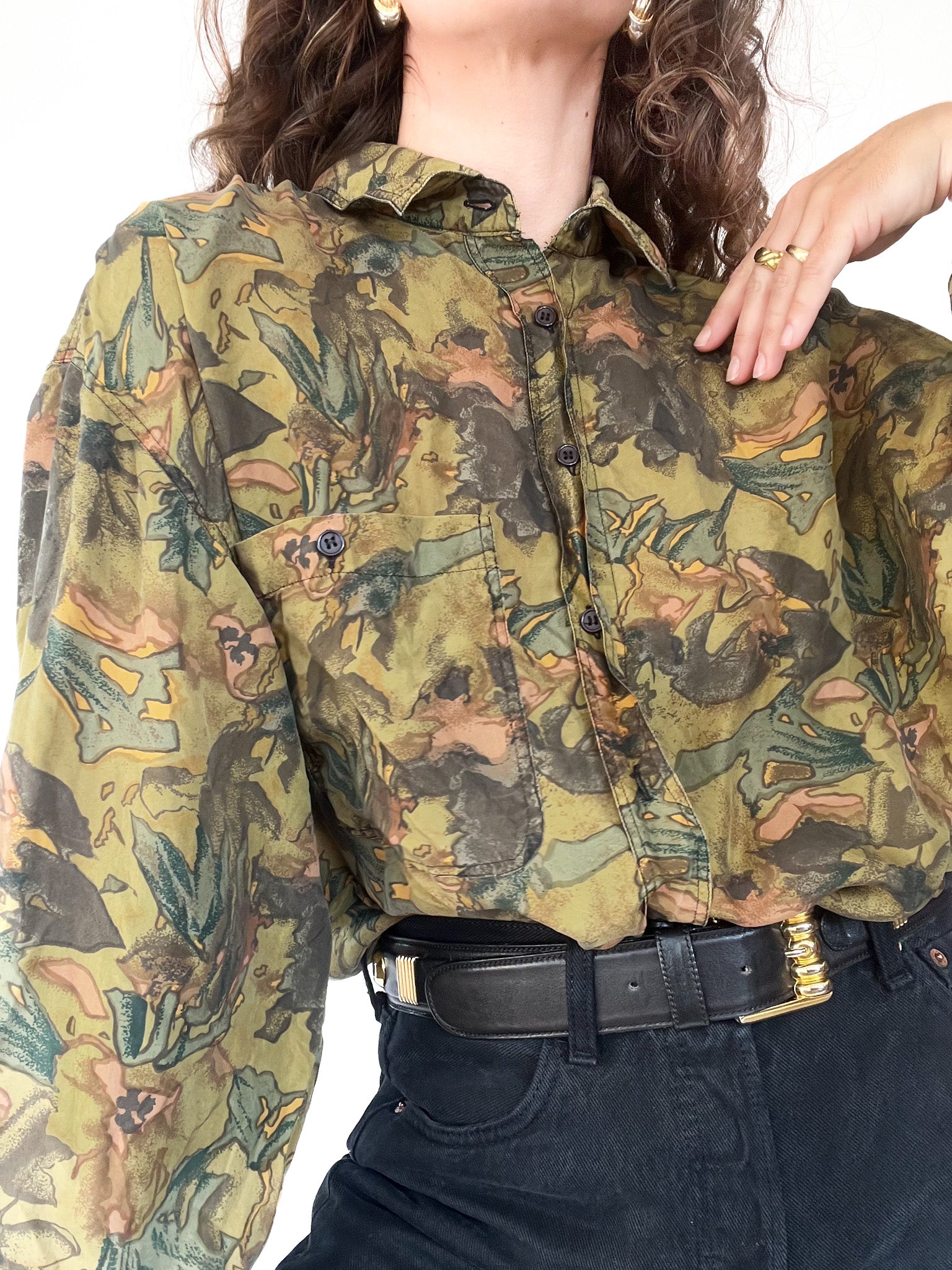 Vintage Gerard Darel Silver Silk Satin Shirt