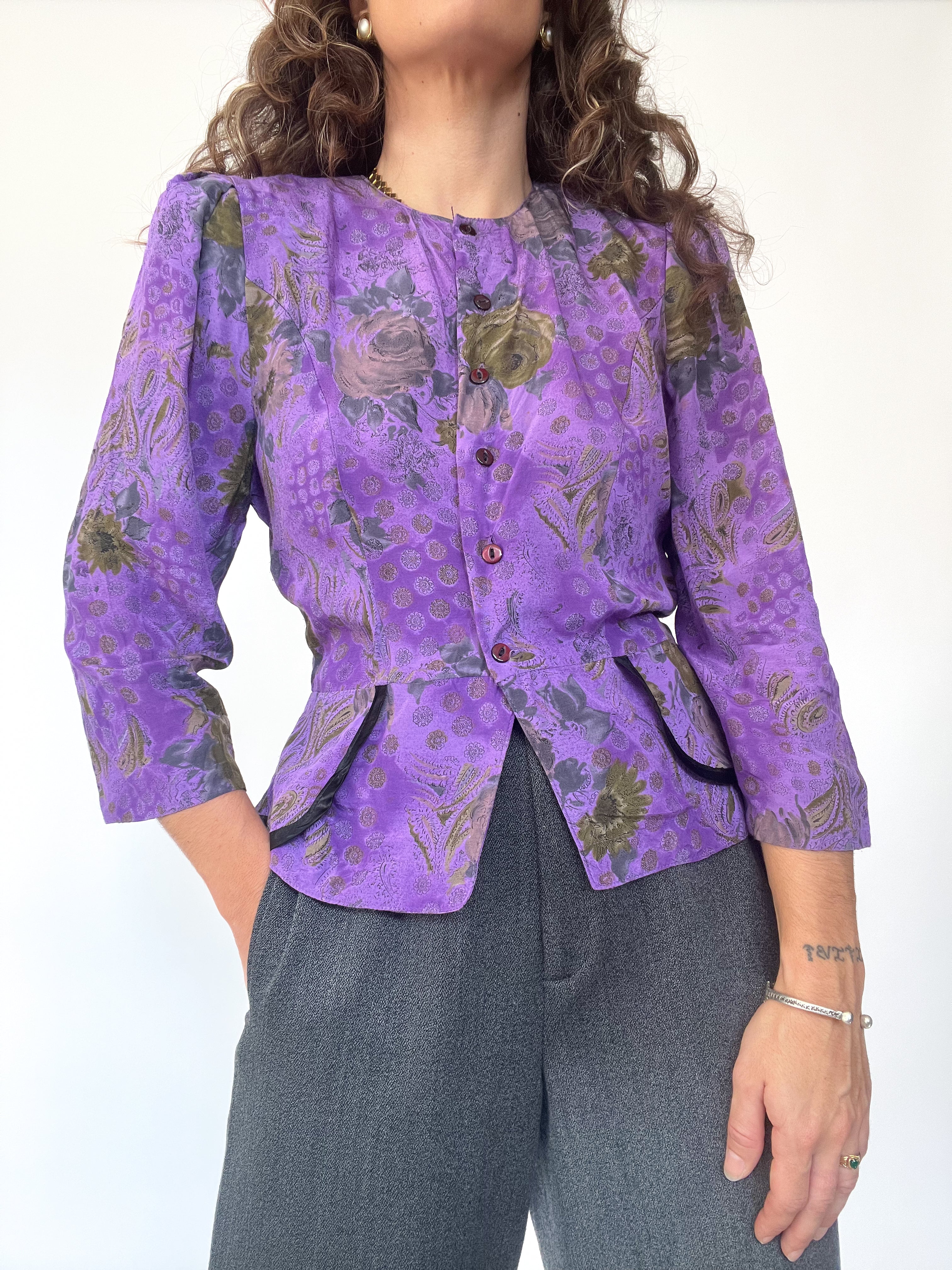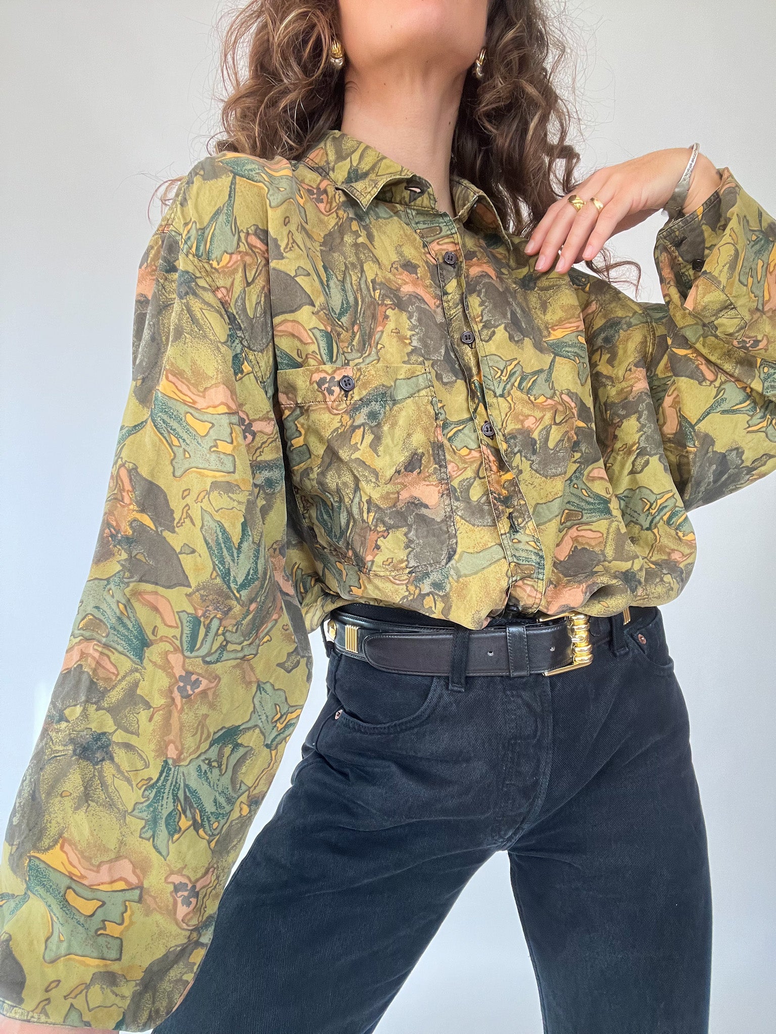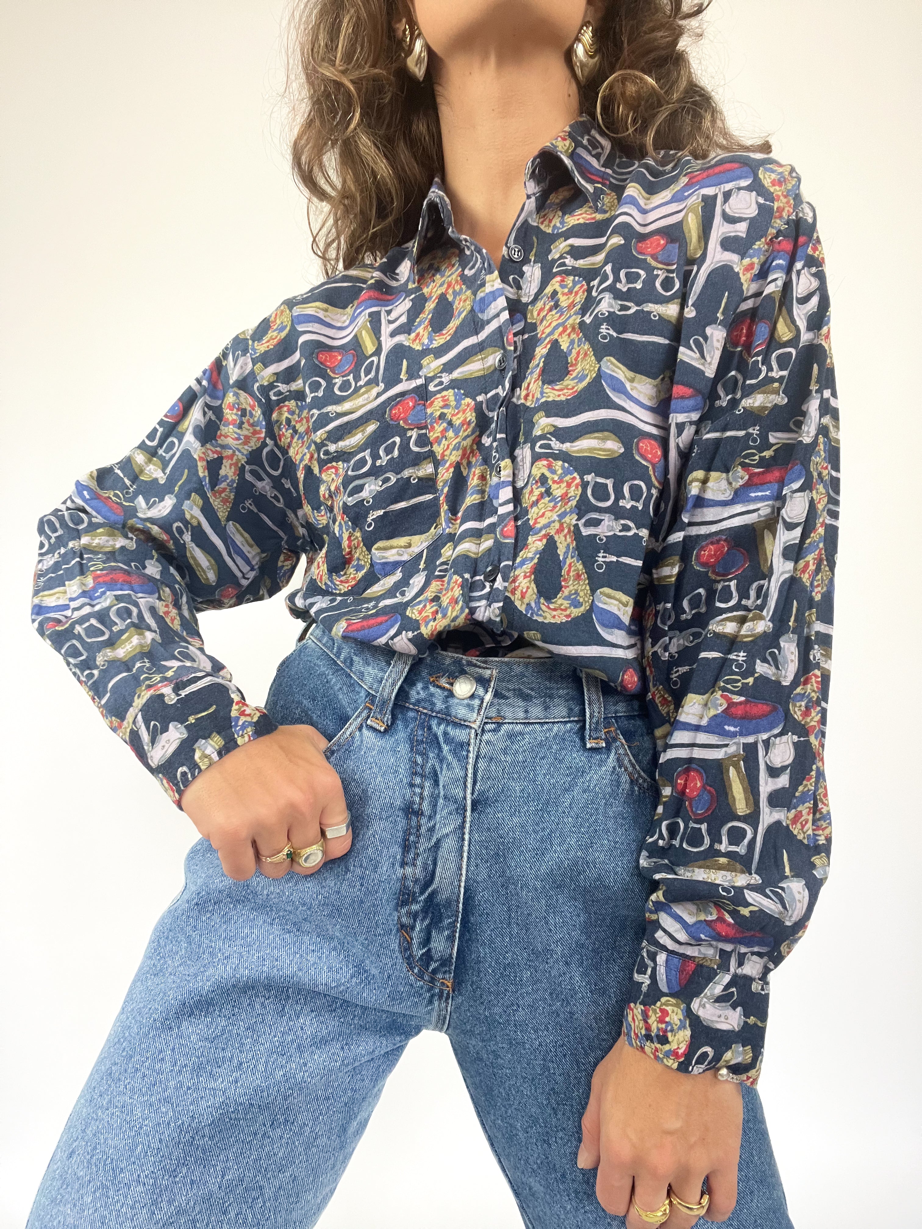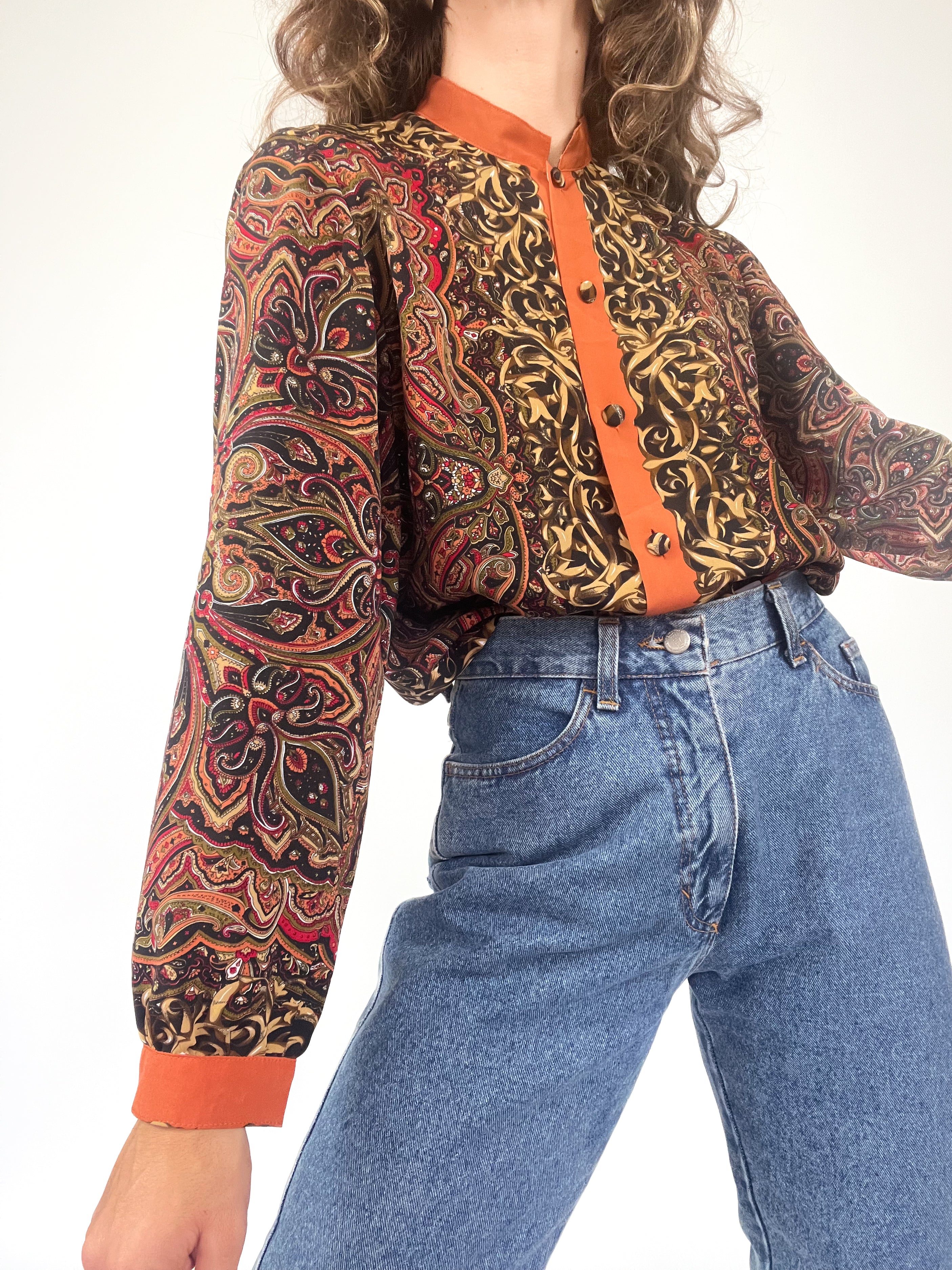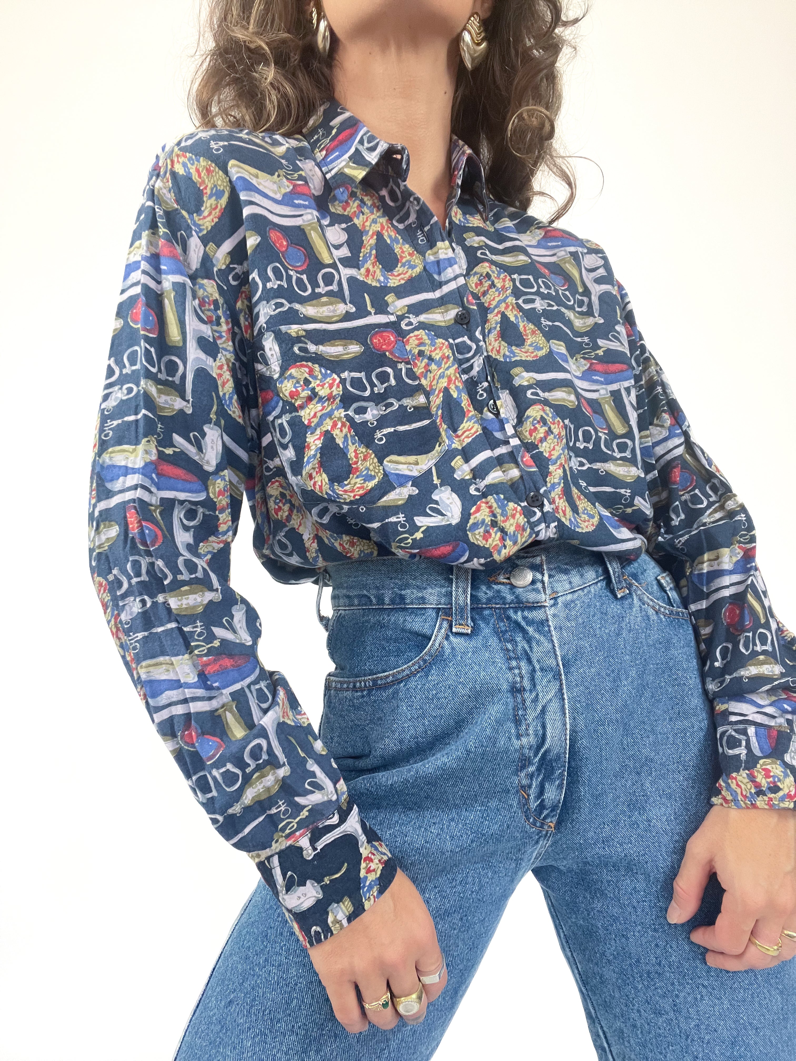 Vintage Gerard Darel Silver Silk Satin Shirt