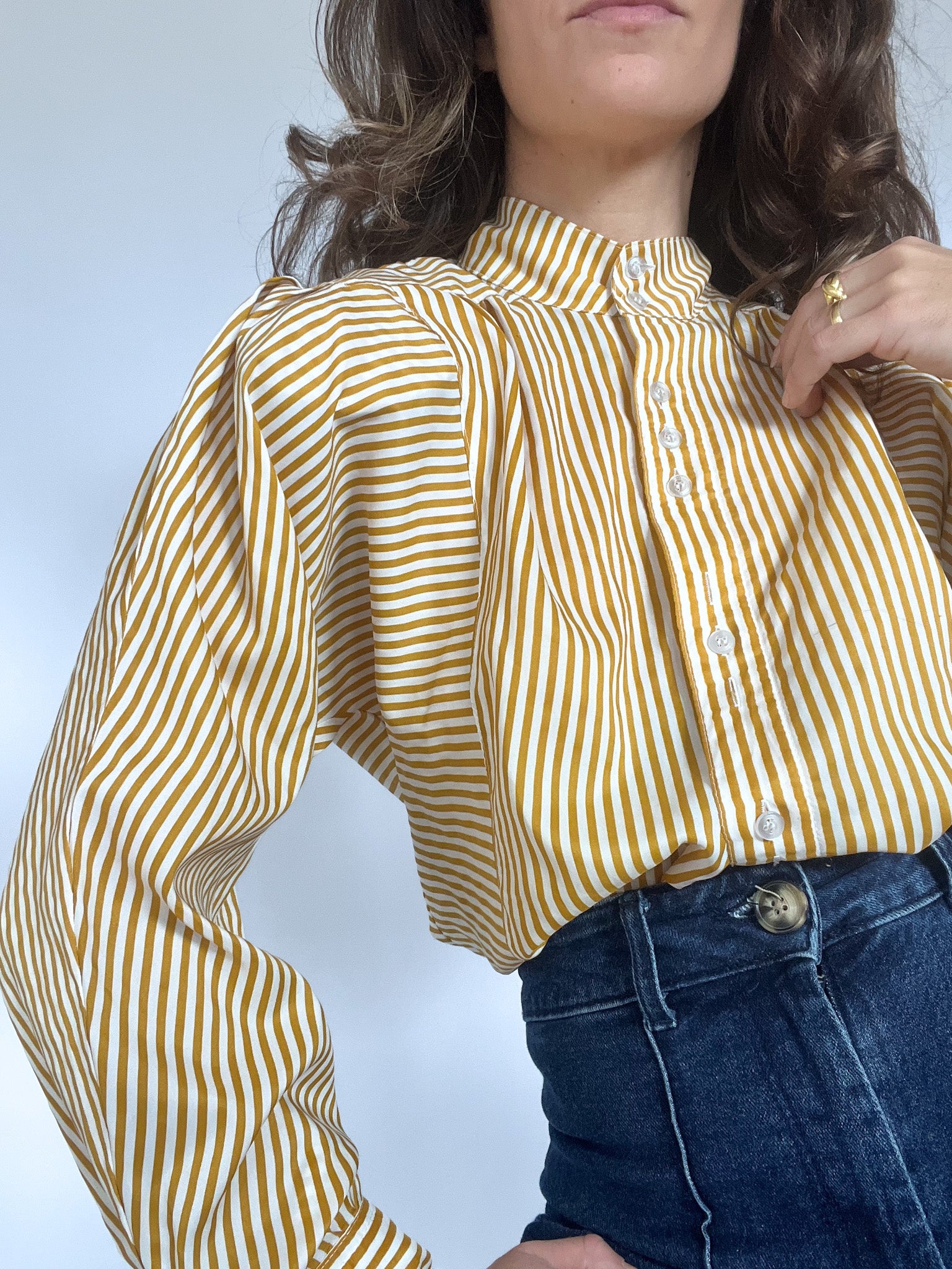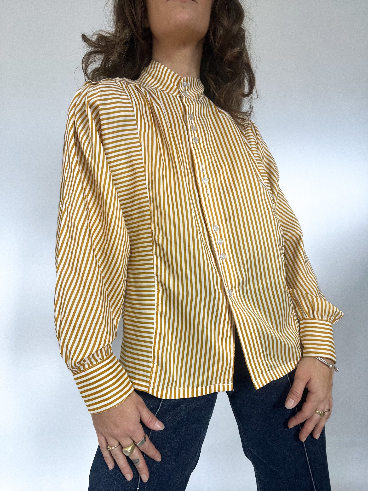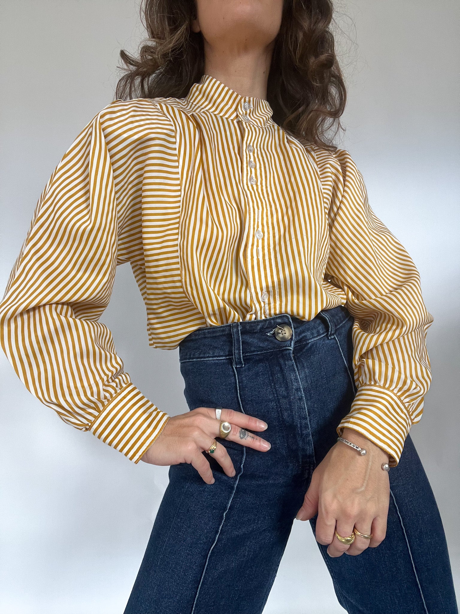 Vintage Striped Button-Up Shirt With Optional Bow Tie Detail