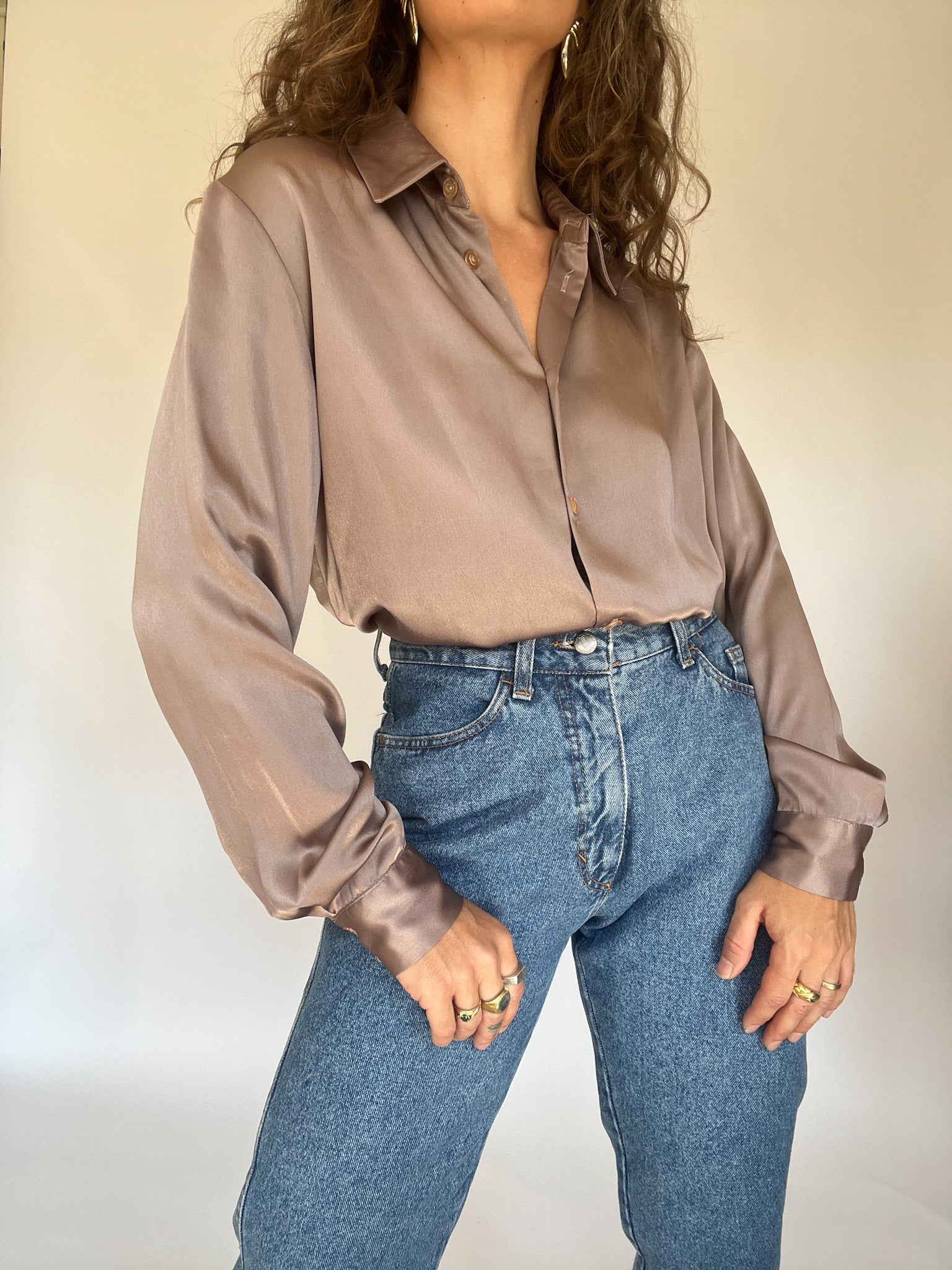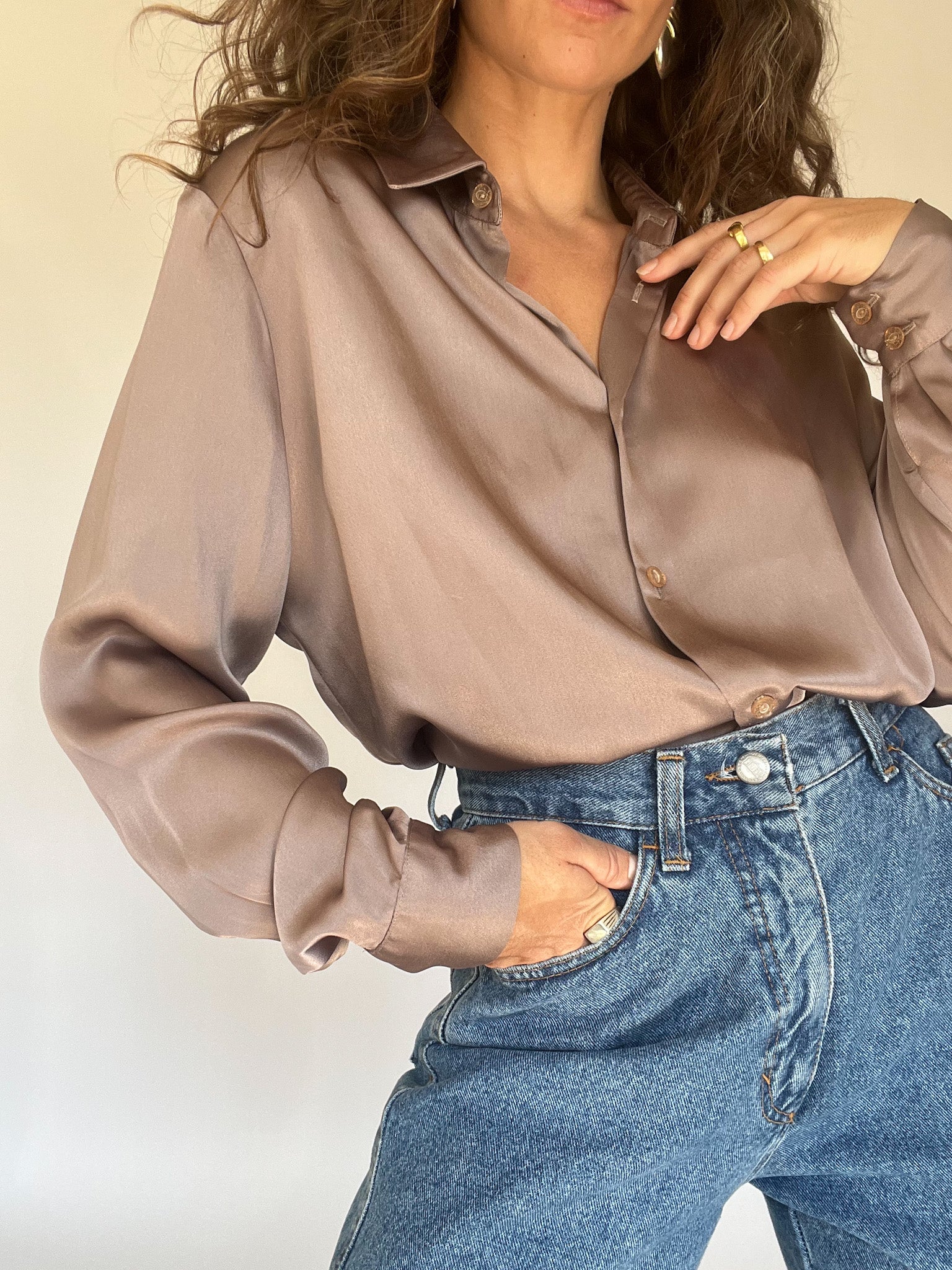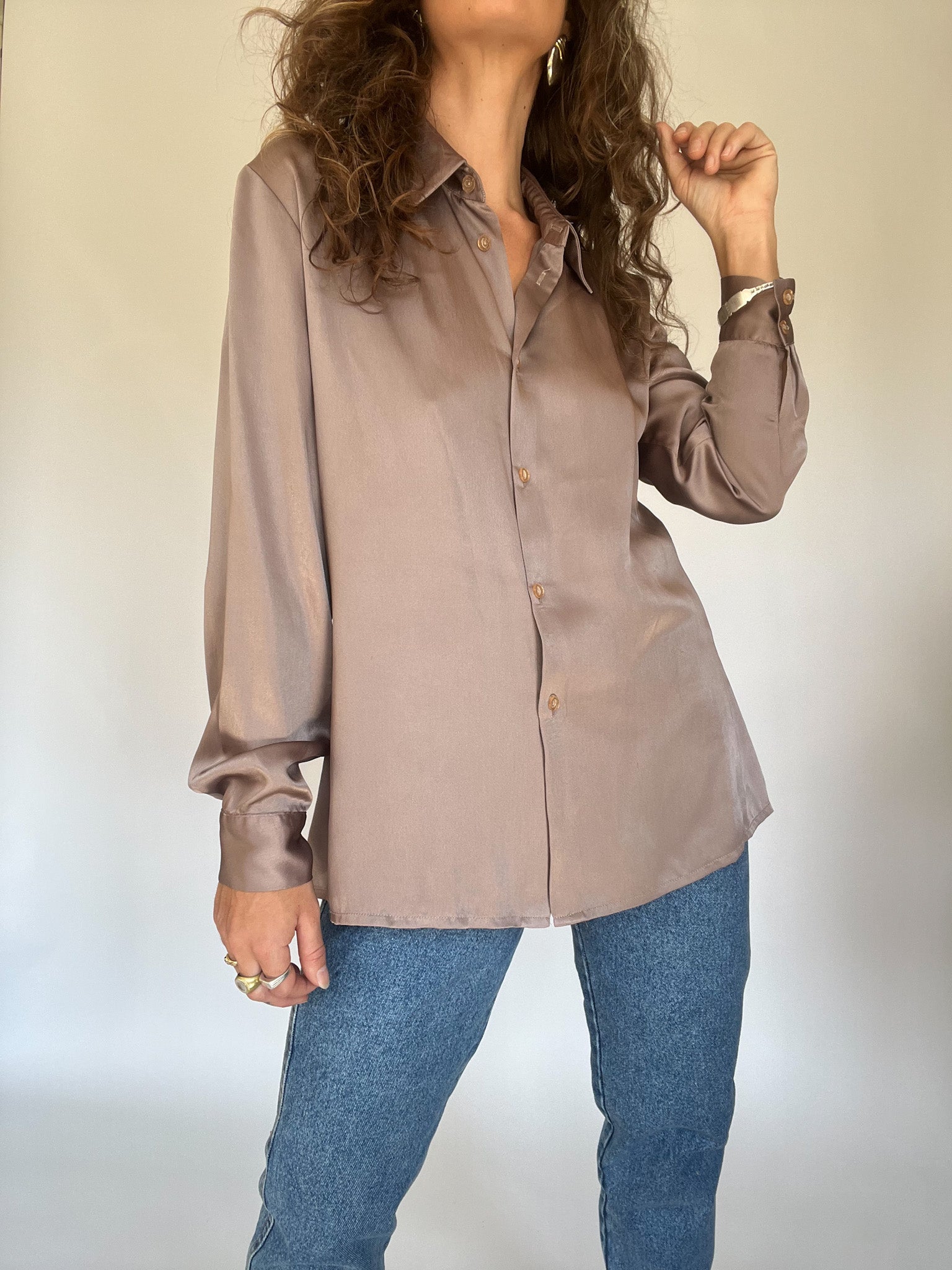 Vintage taupe satin shirt