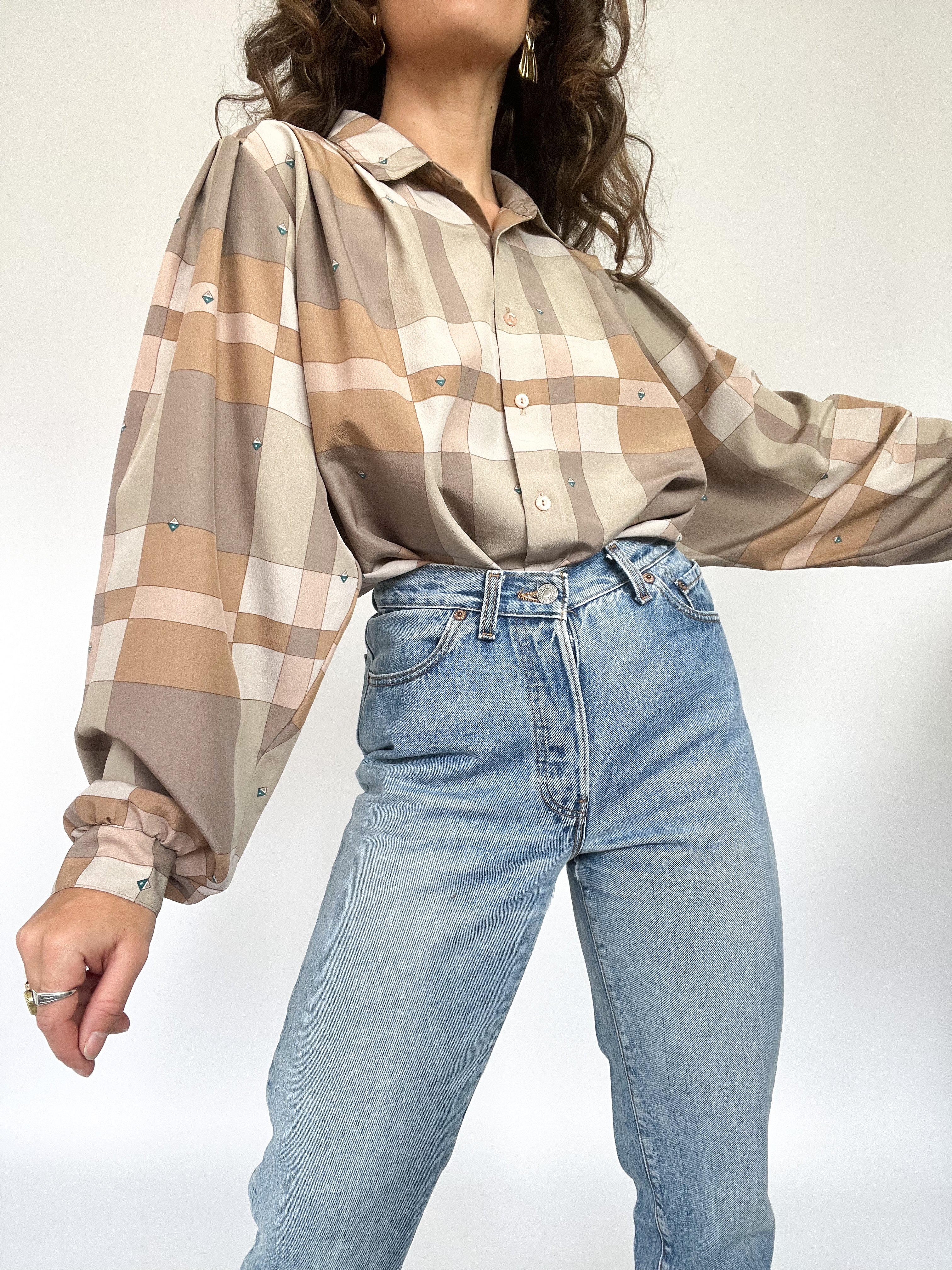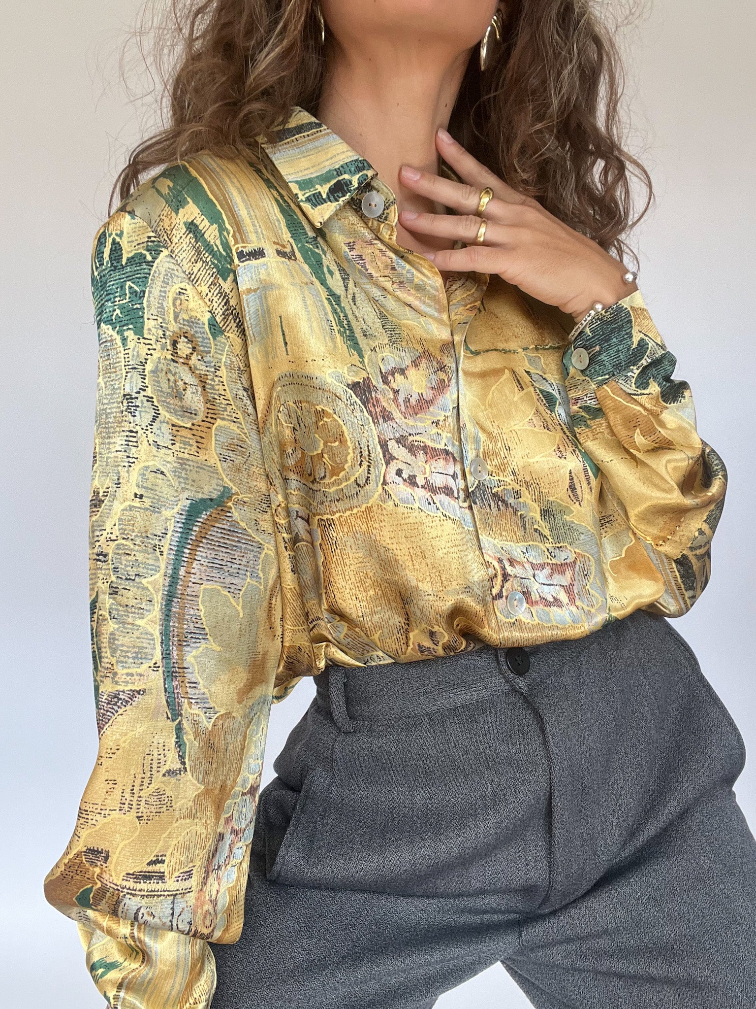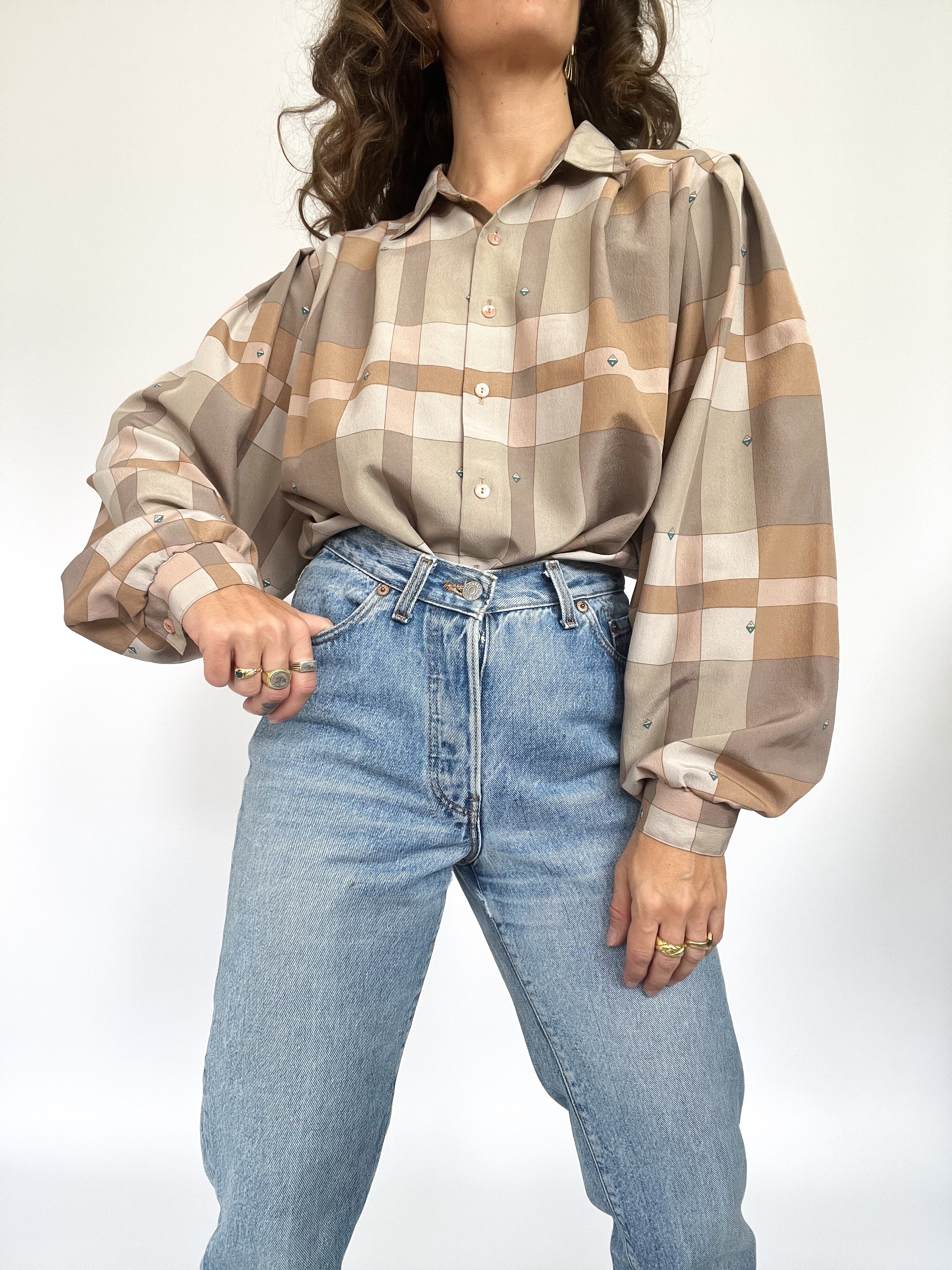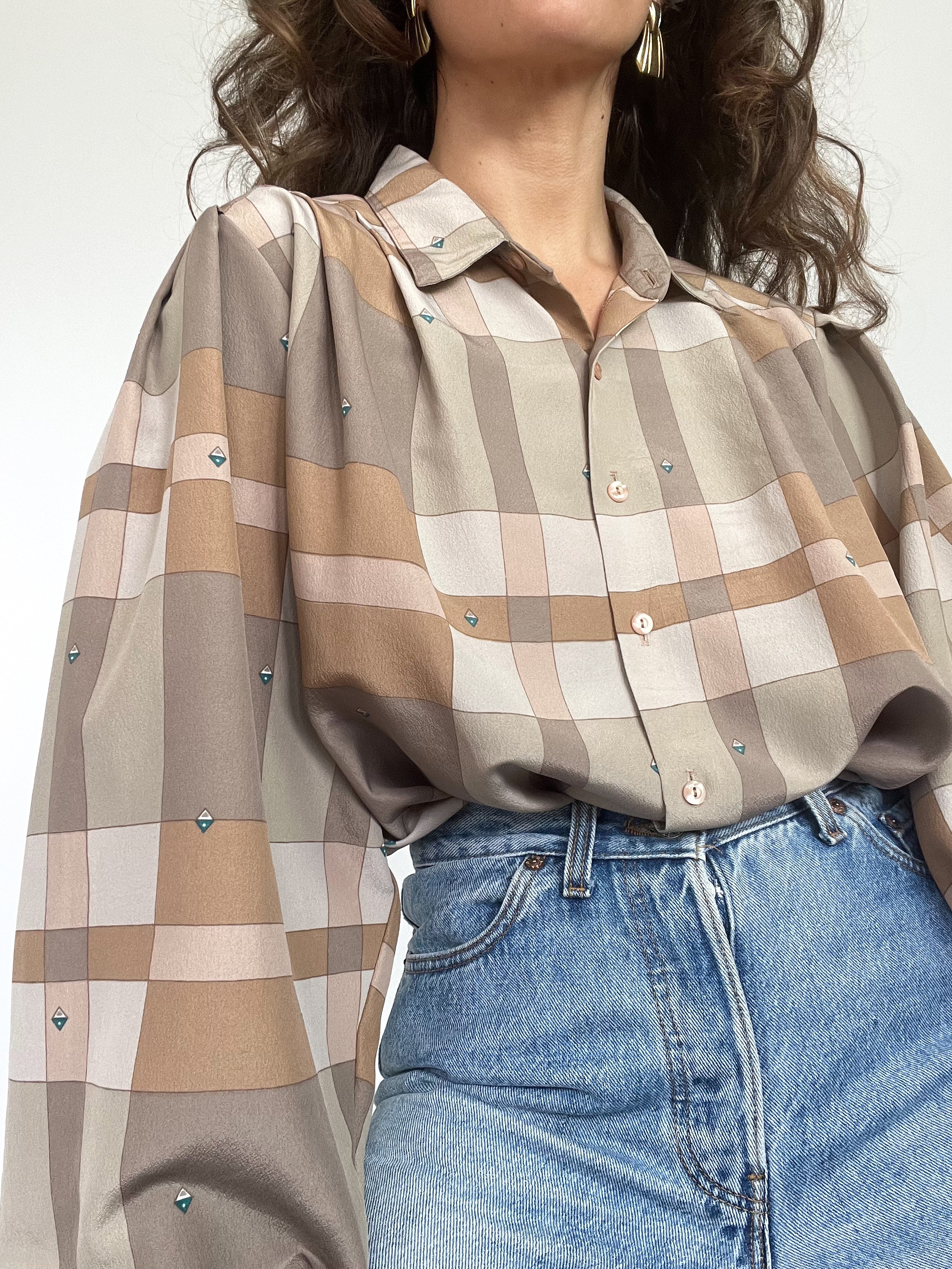 Vintage taupe satin shirt