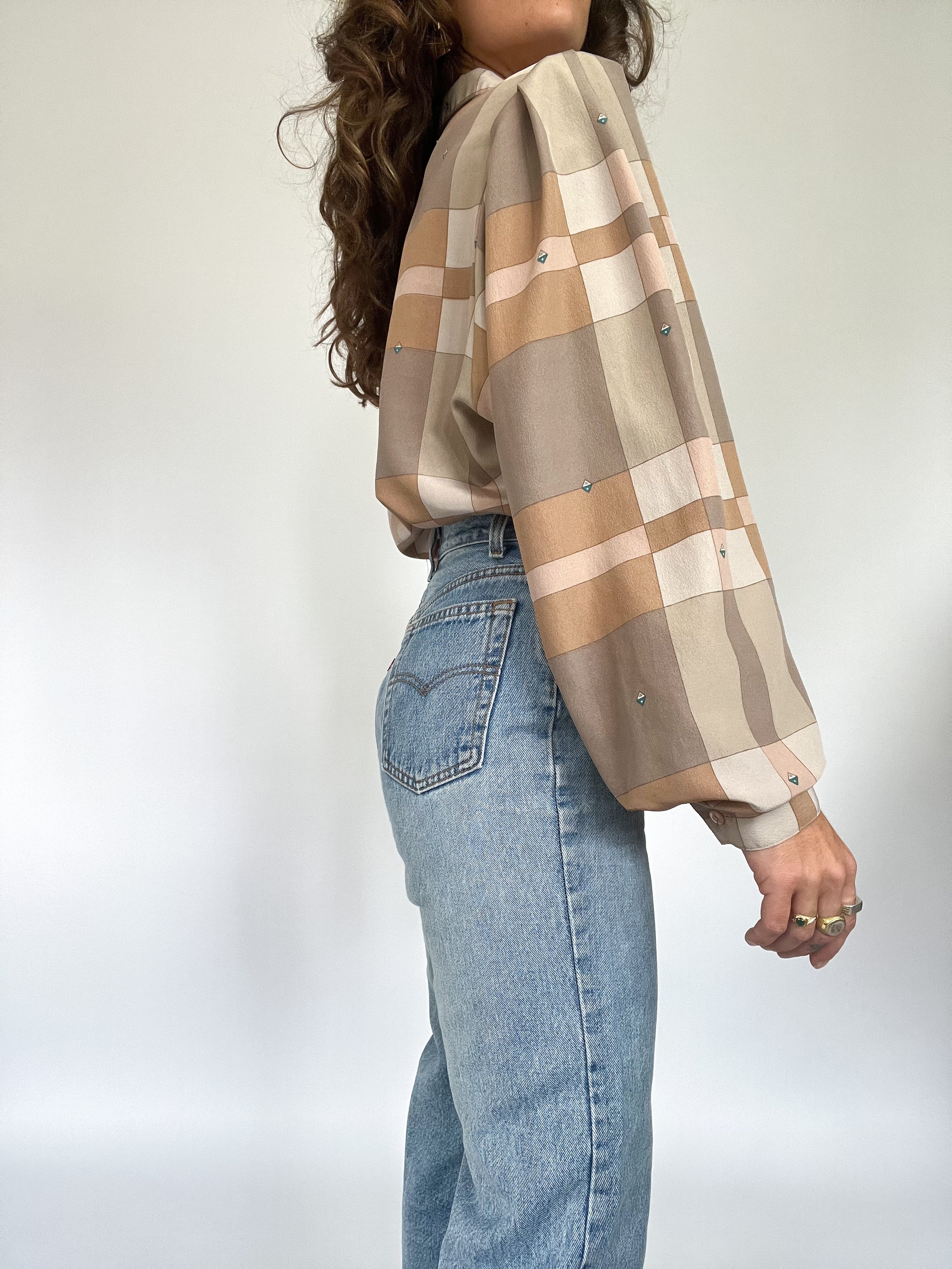Vintage Plaid Blouse with Embellishments