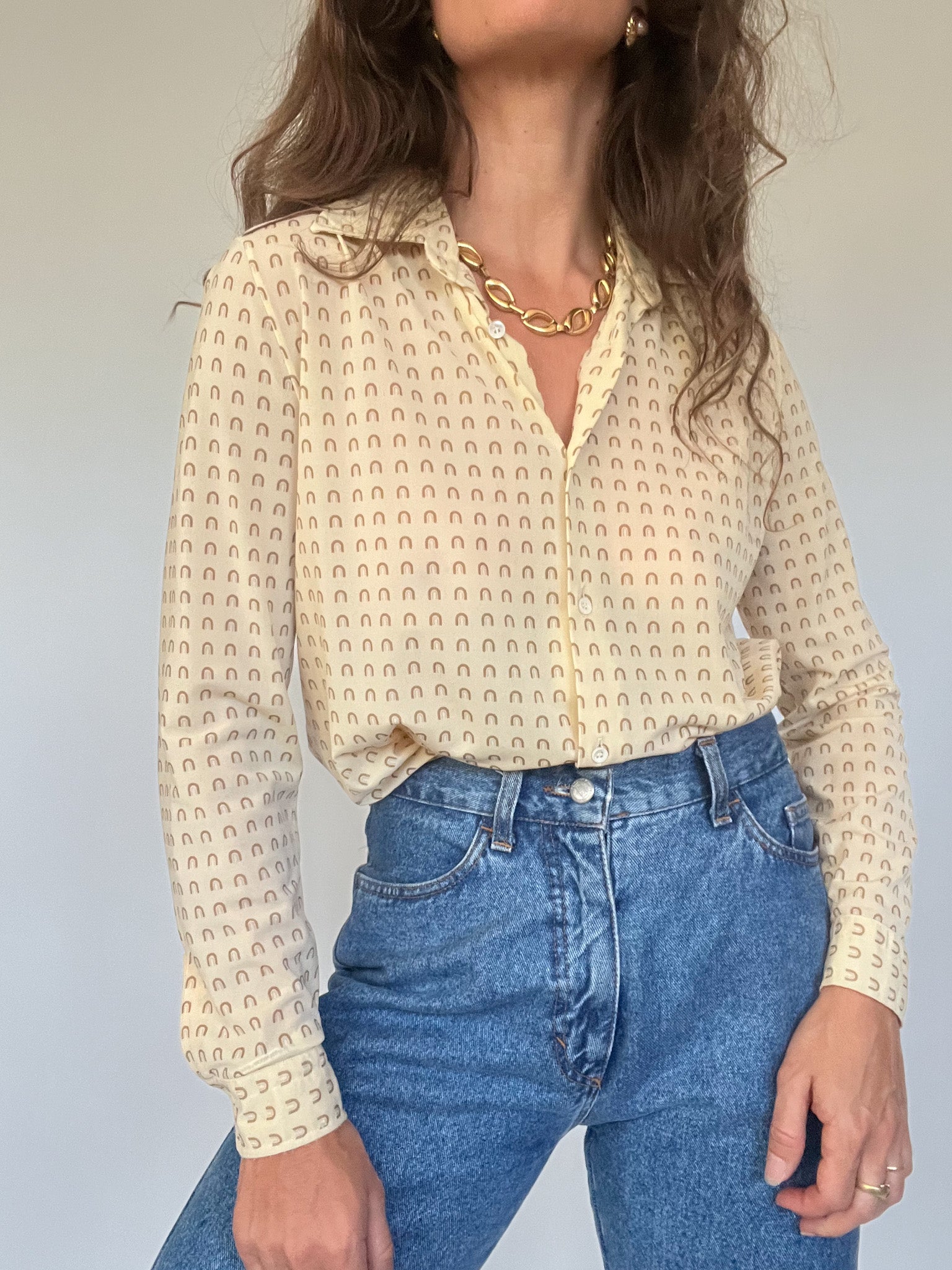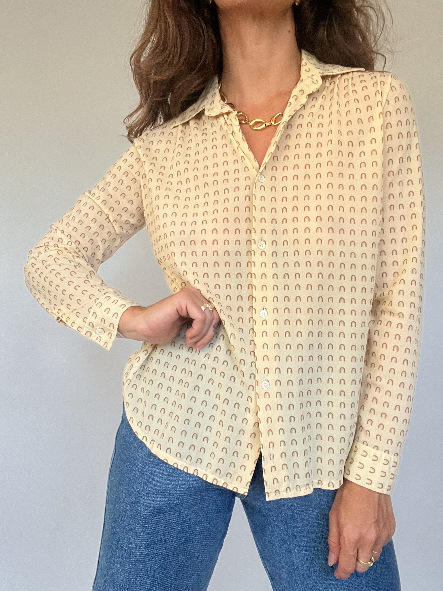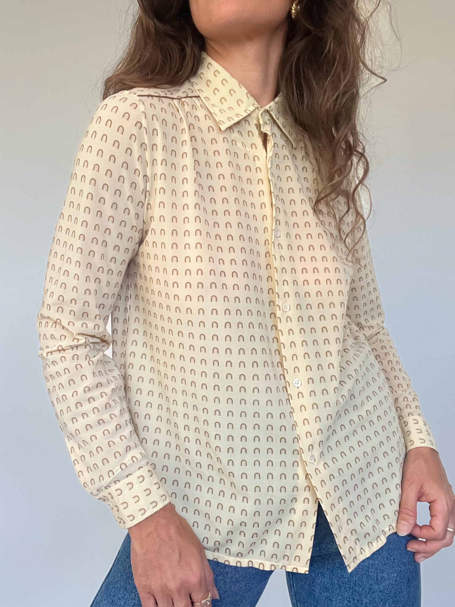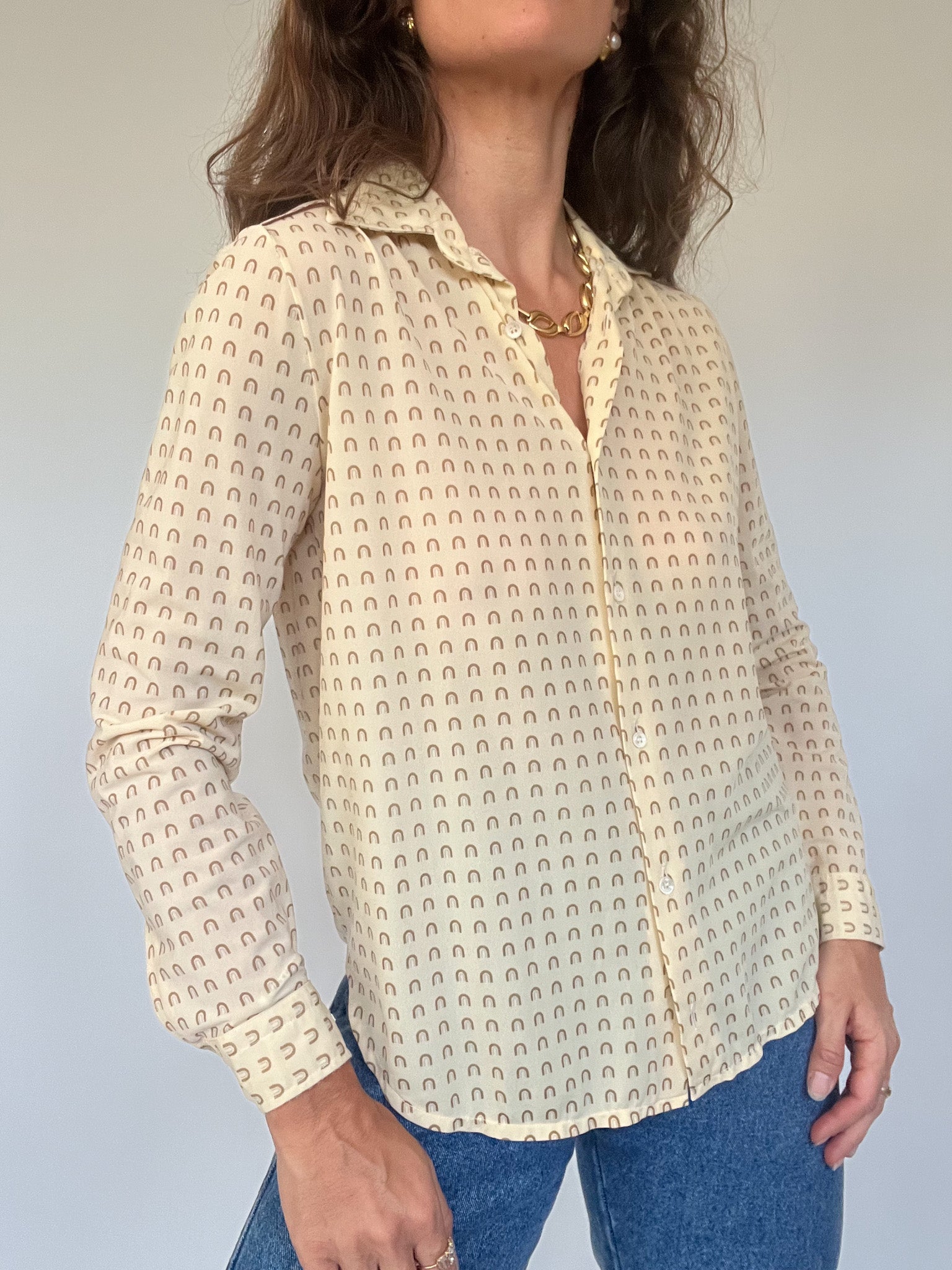 Vintage 90’s Cream Geometric Print Sheer Shirt