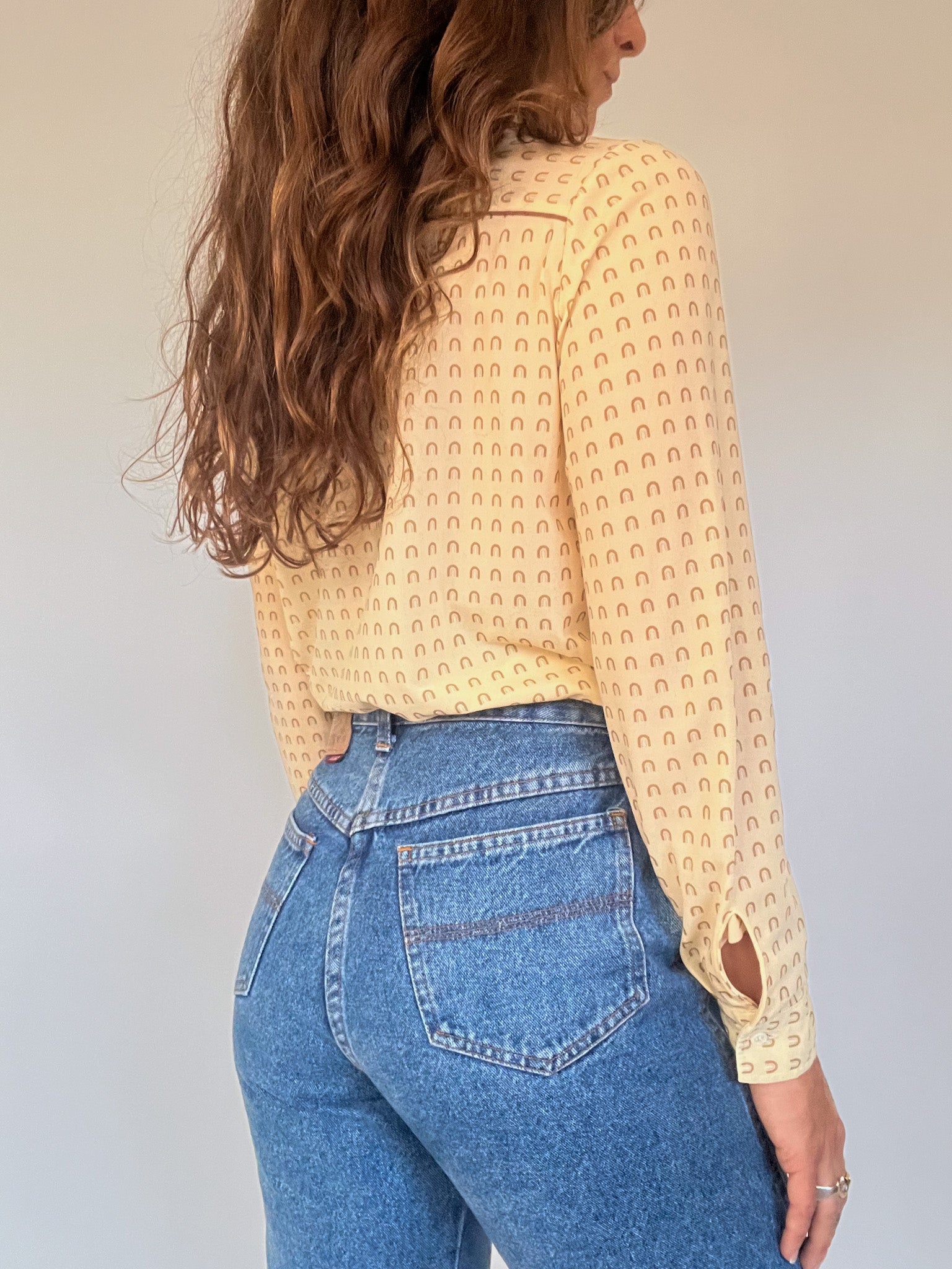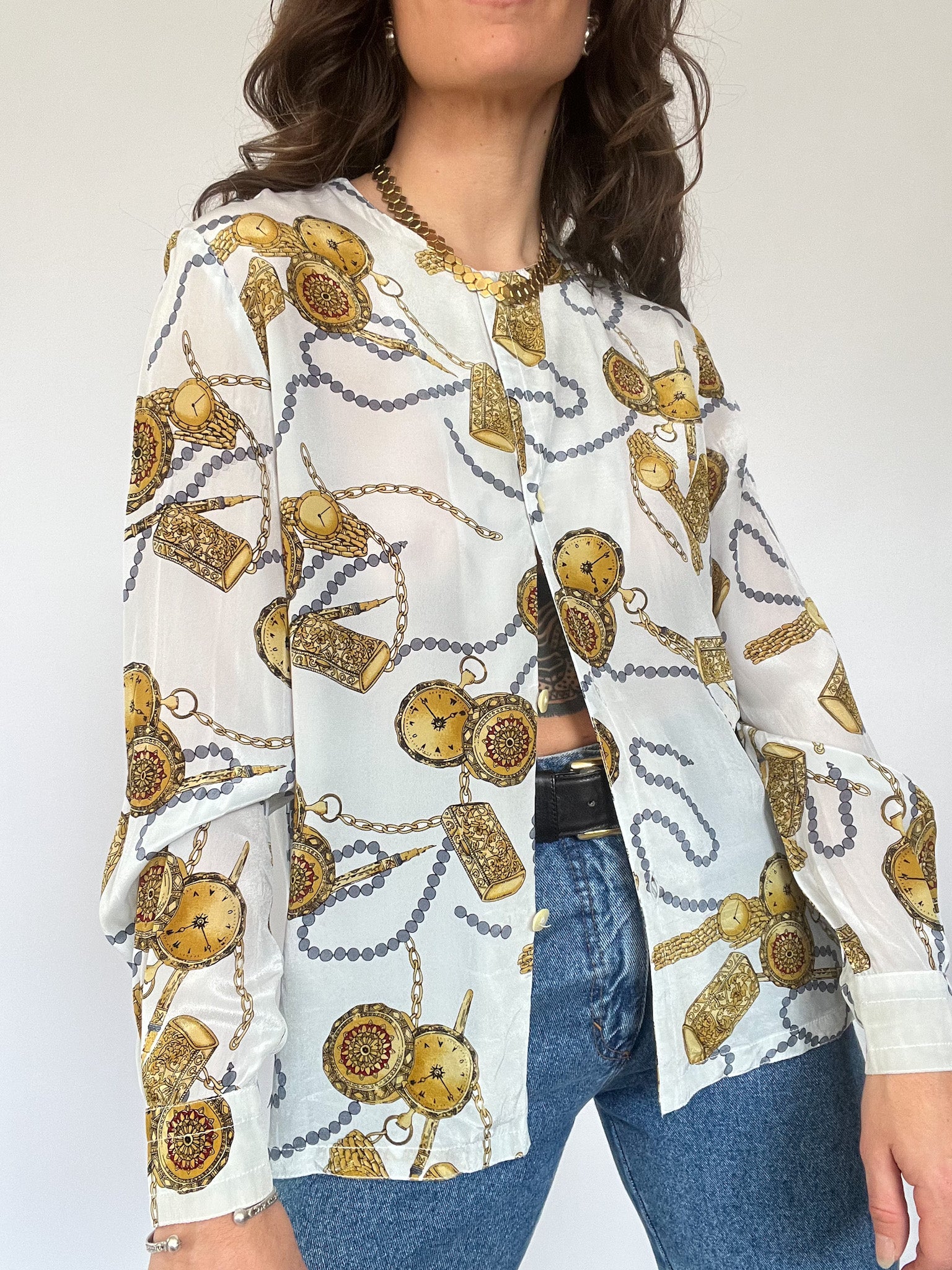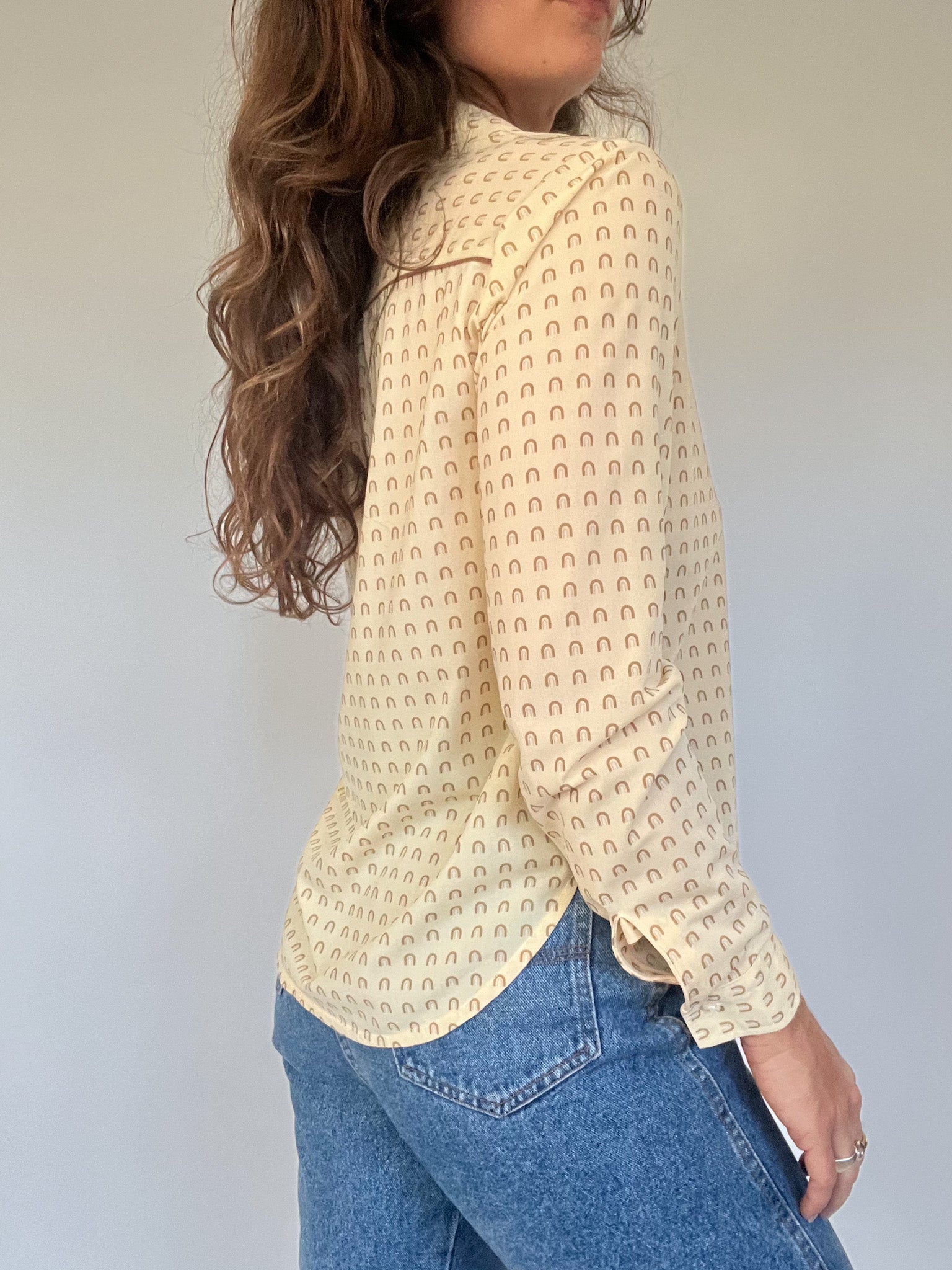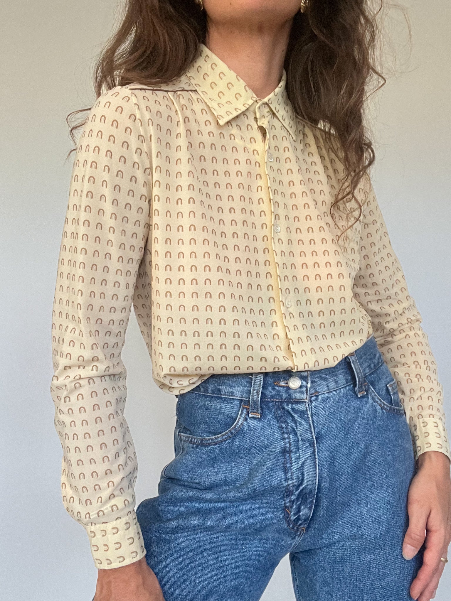 Vintage 90’s Cream Geometric Print Sheer Shirt