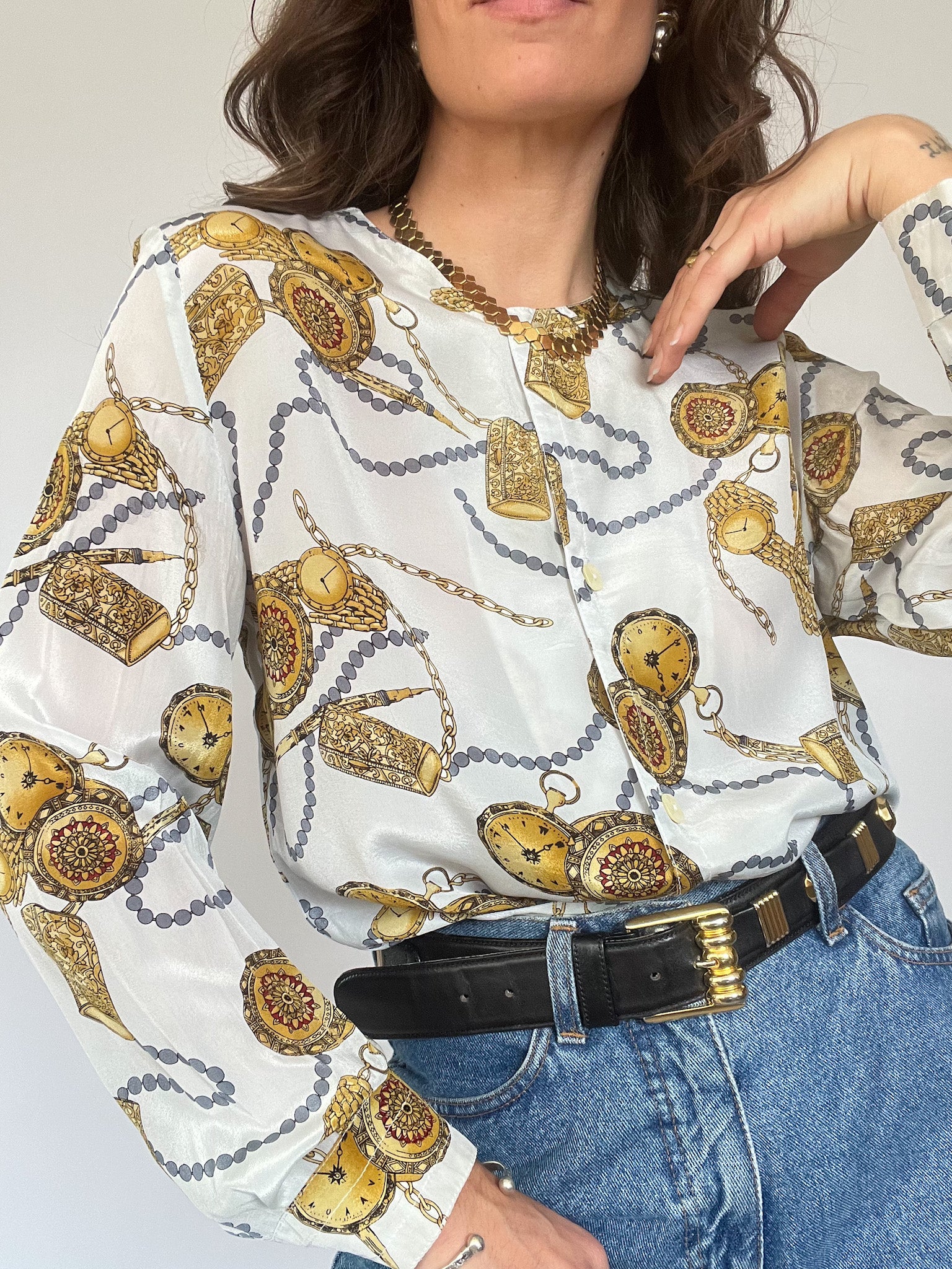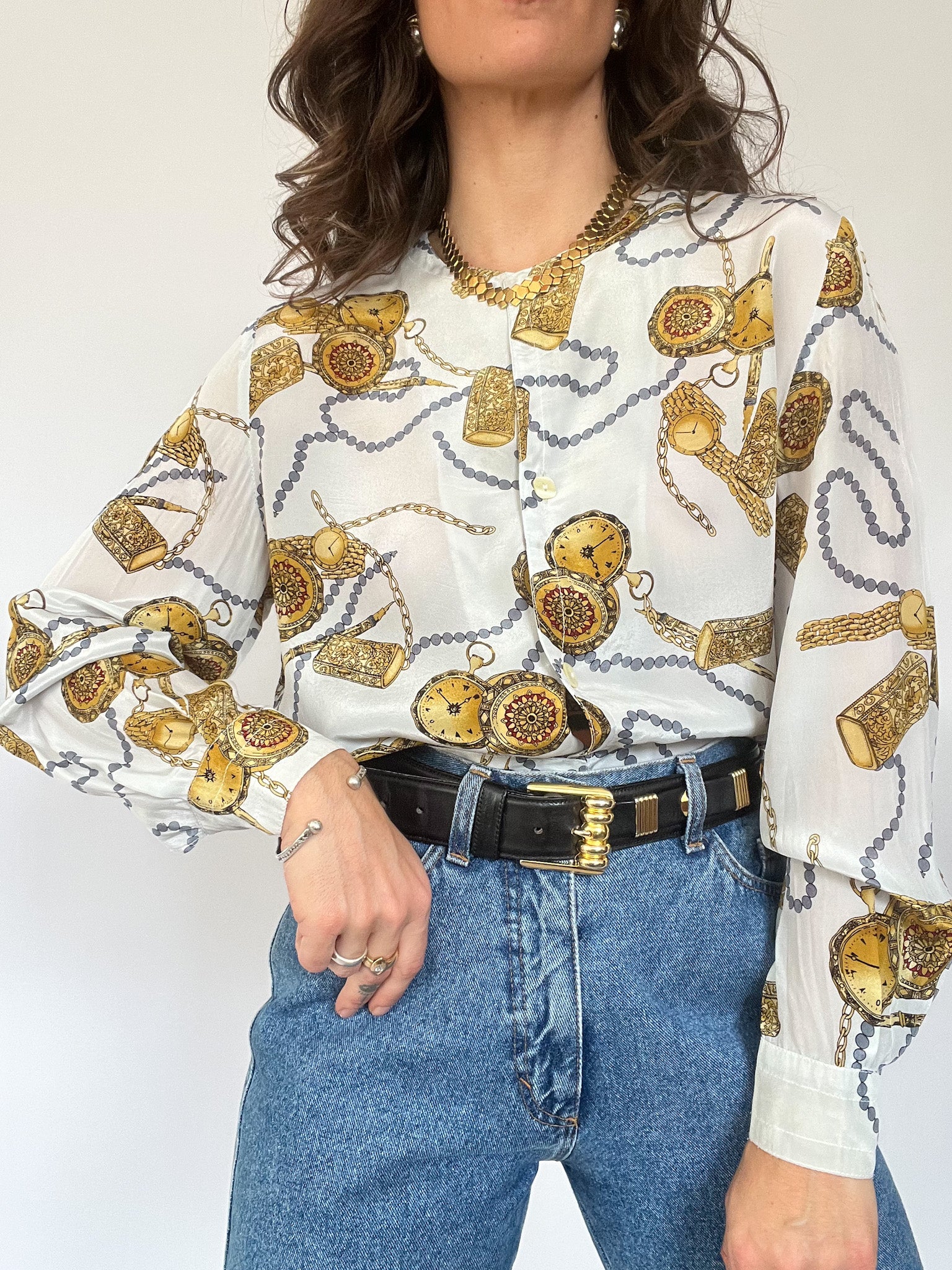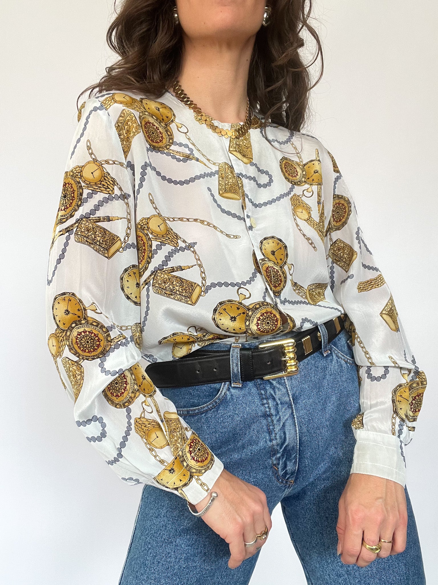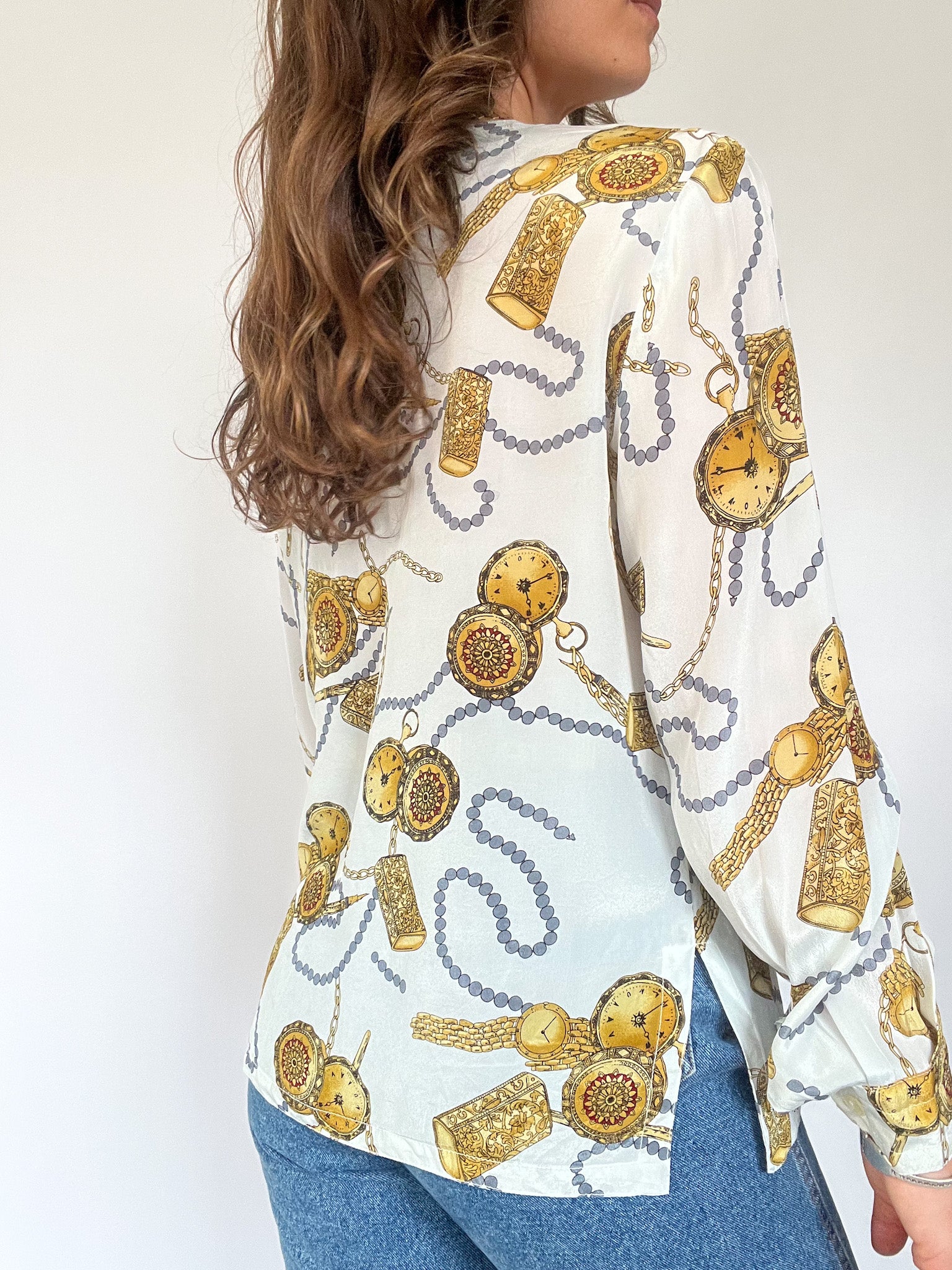 Vintage 90’s Cream Geometric Print Sheer Shirt