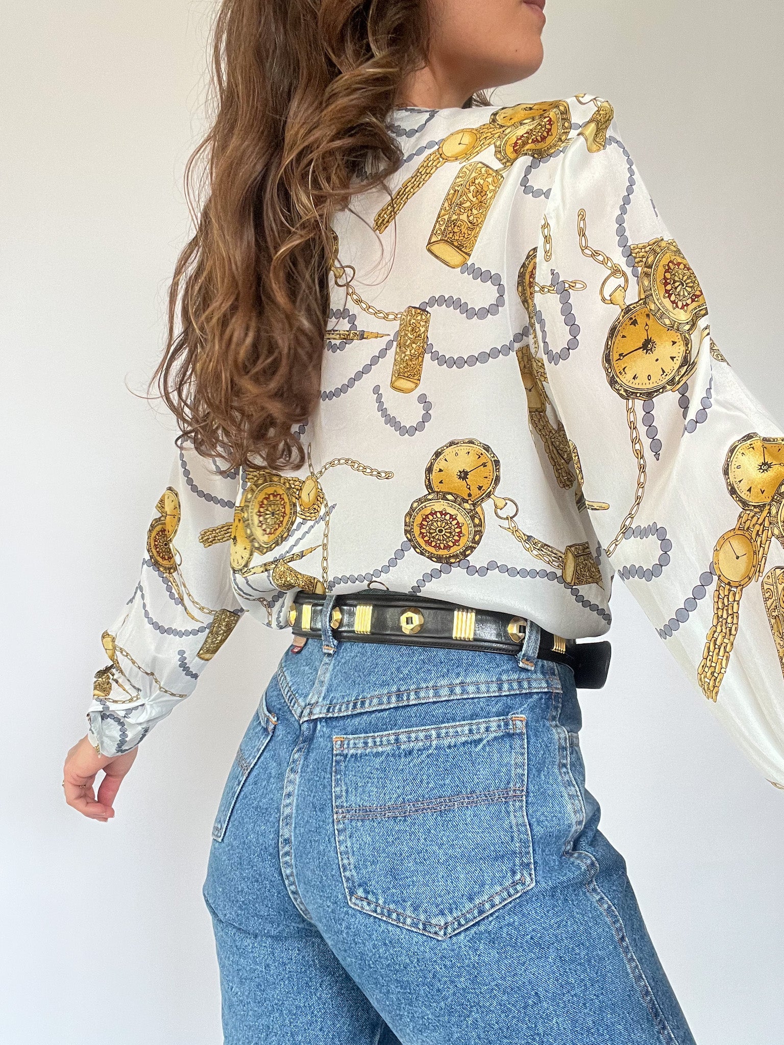 Vintage 90’s Black & Gold Sheer Patterned Shirt