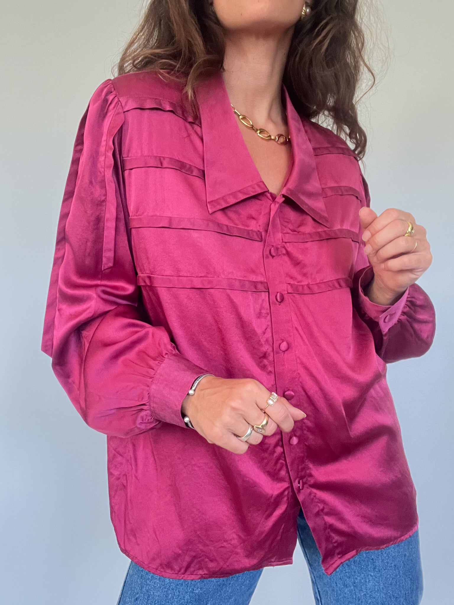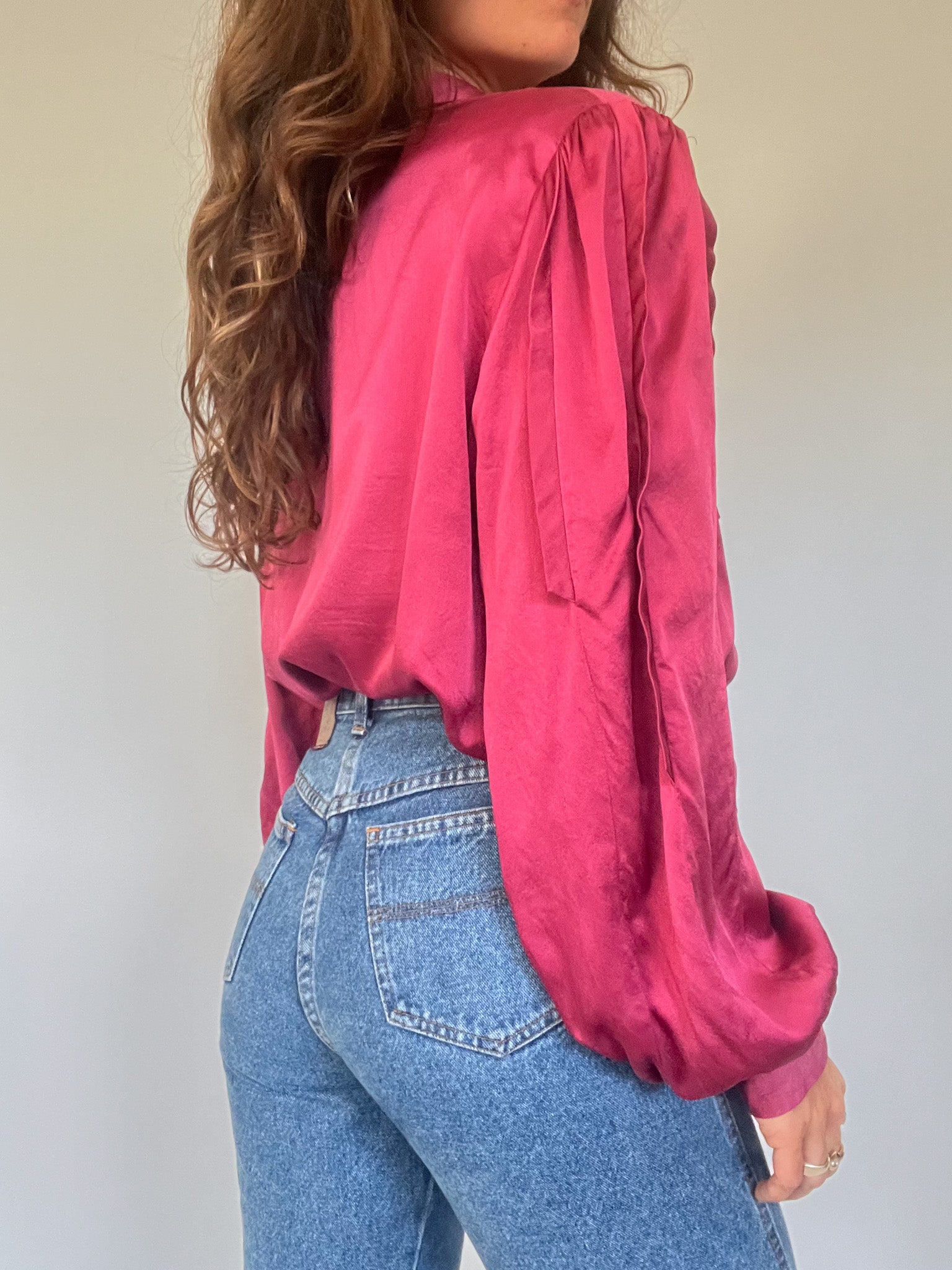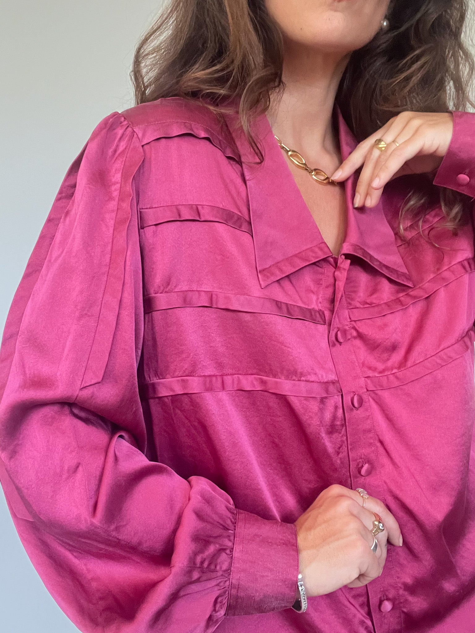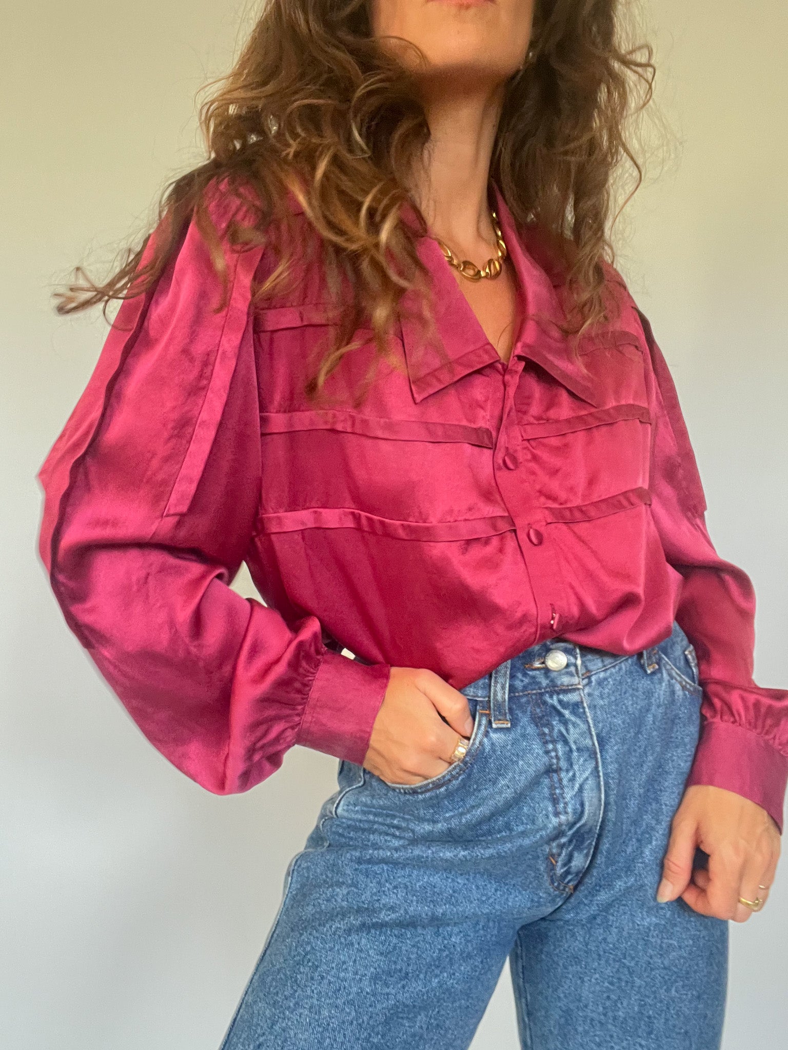 Vintage 90’s Fuchsia Silk Blouse with Pleated Details