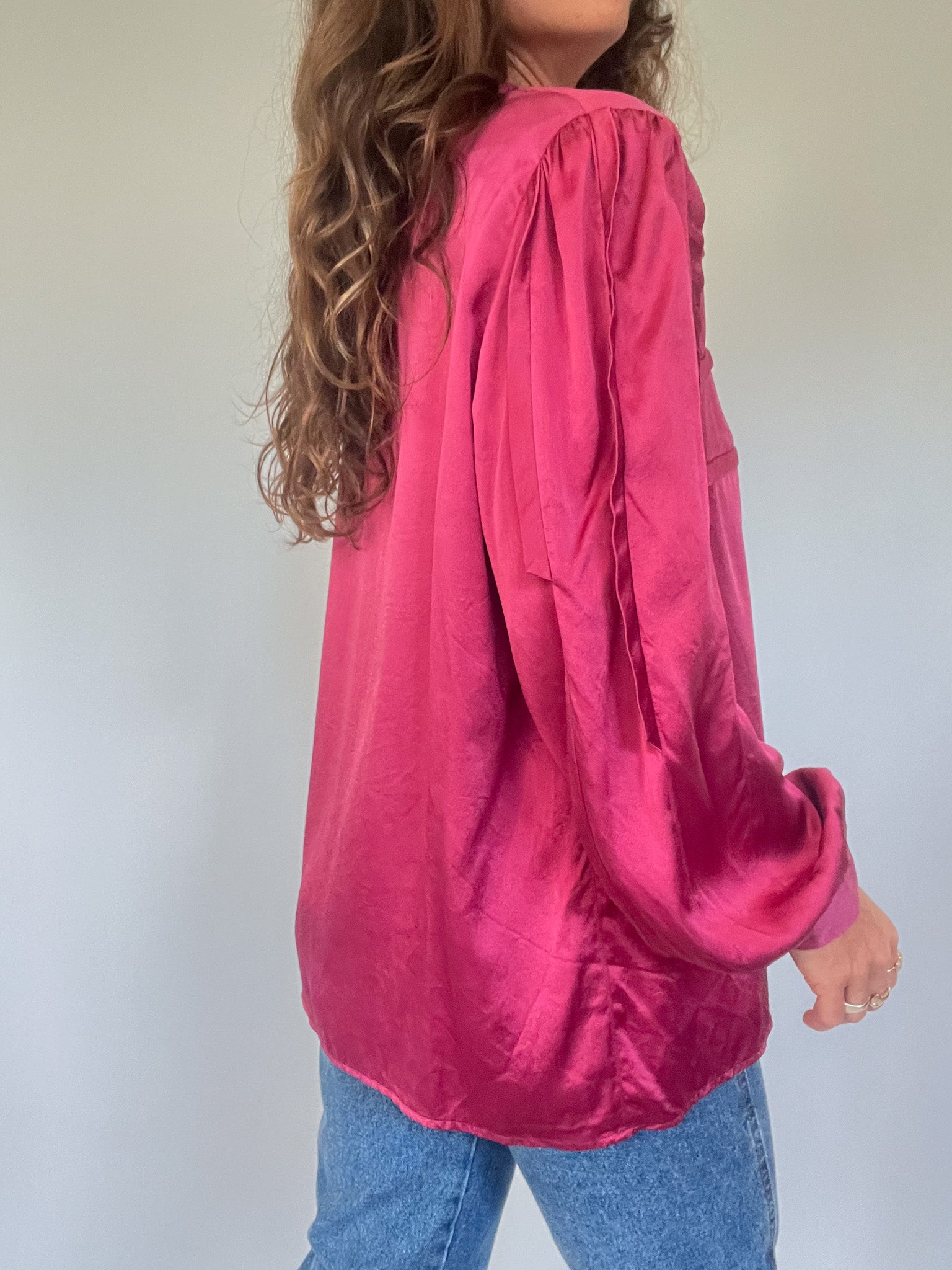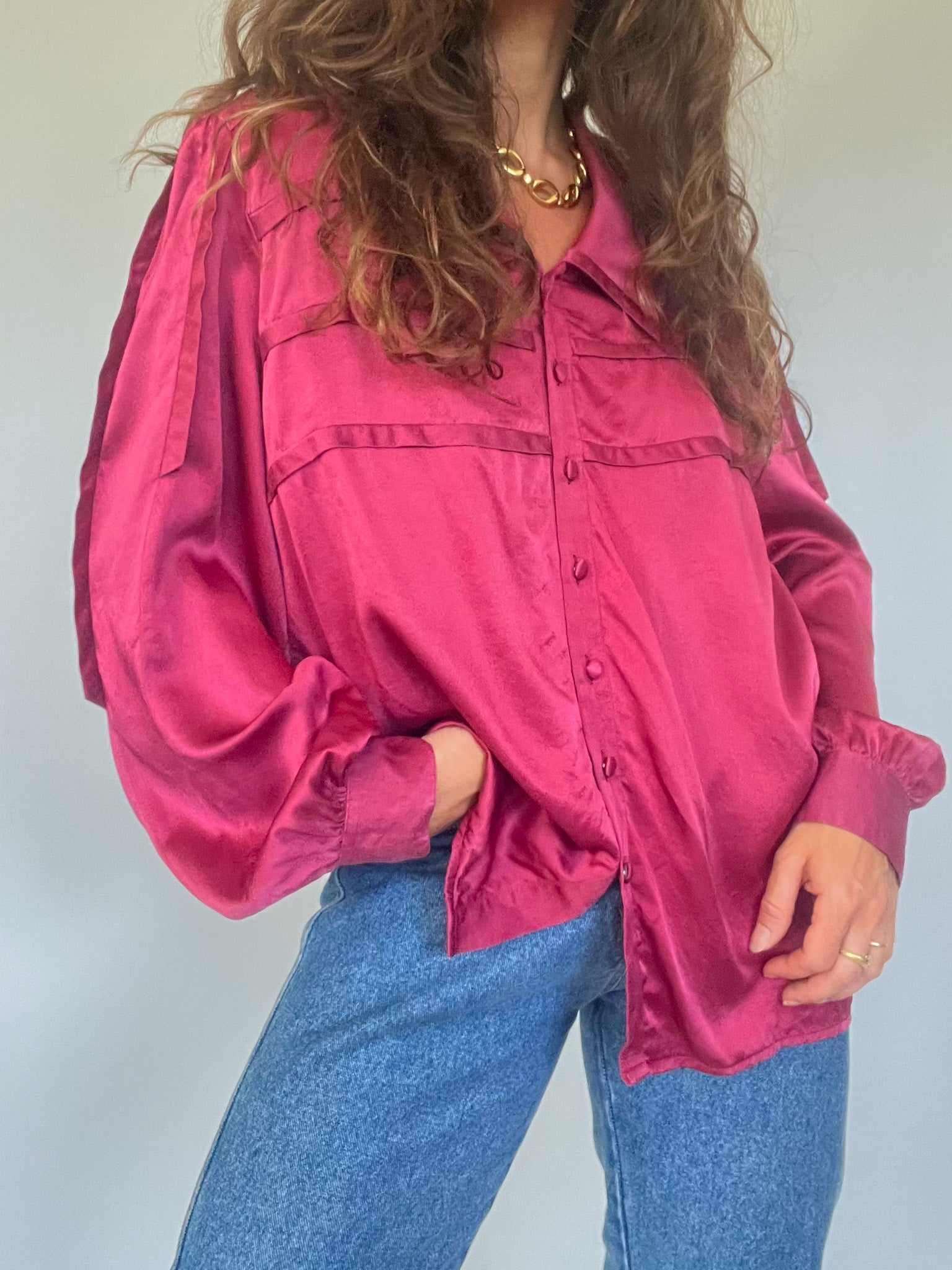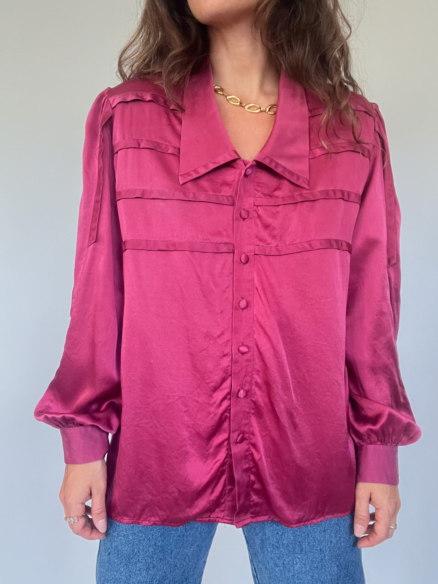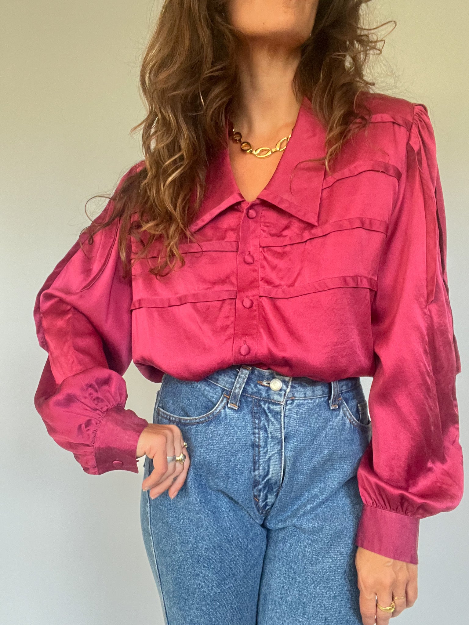 Vintage 90’s Fuchsia Silk Blouse with Pleated Details