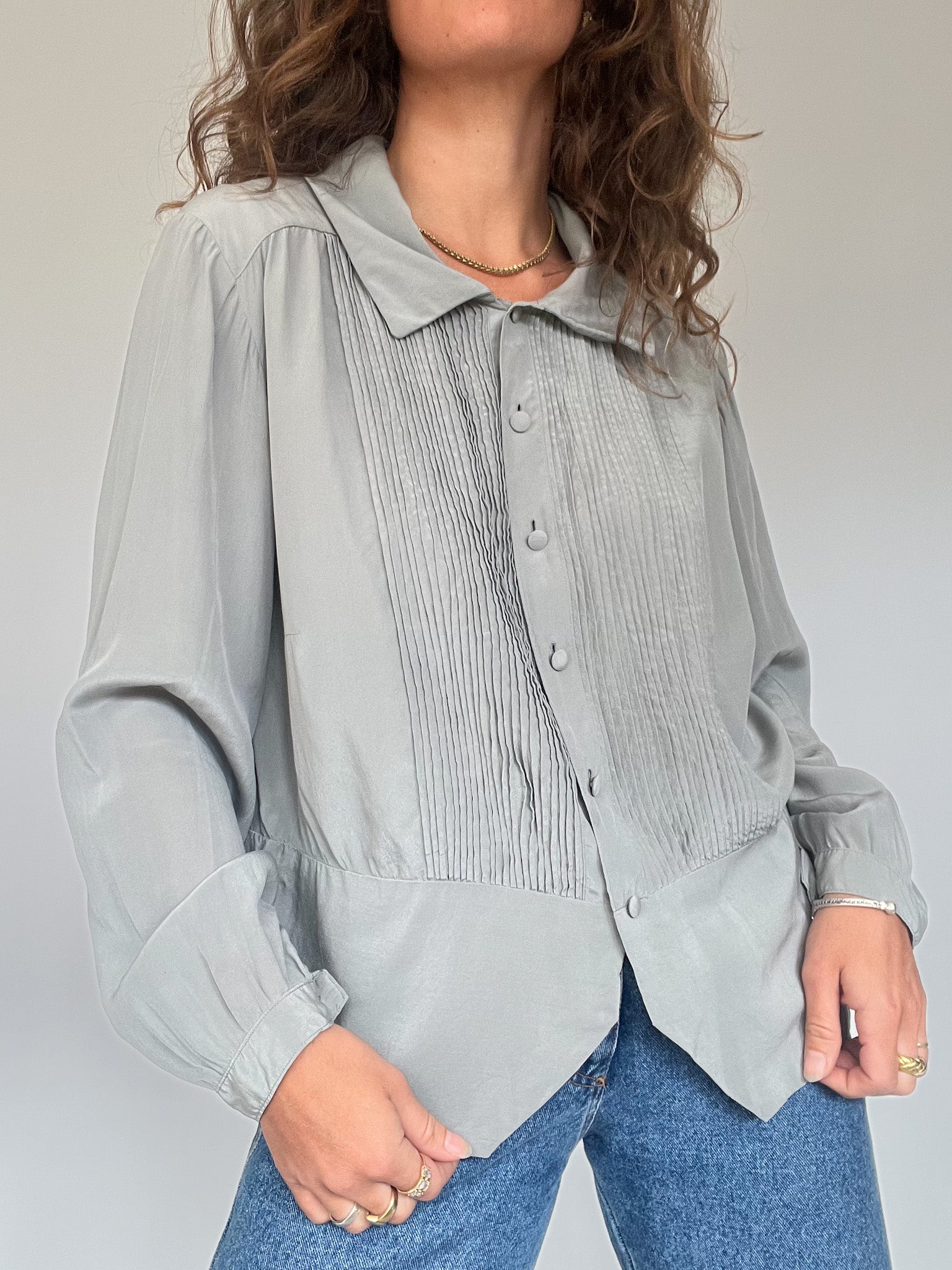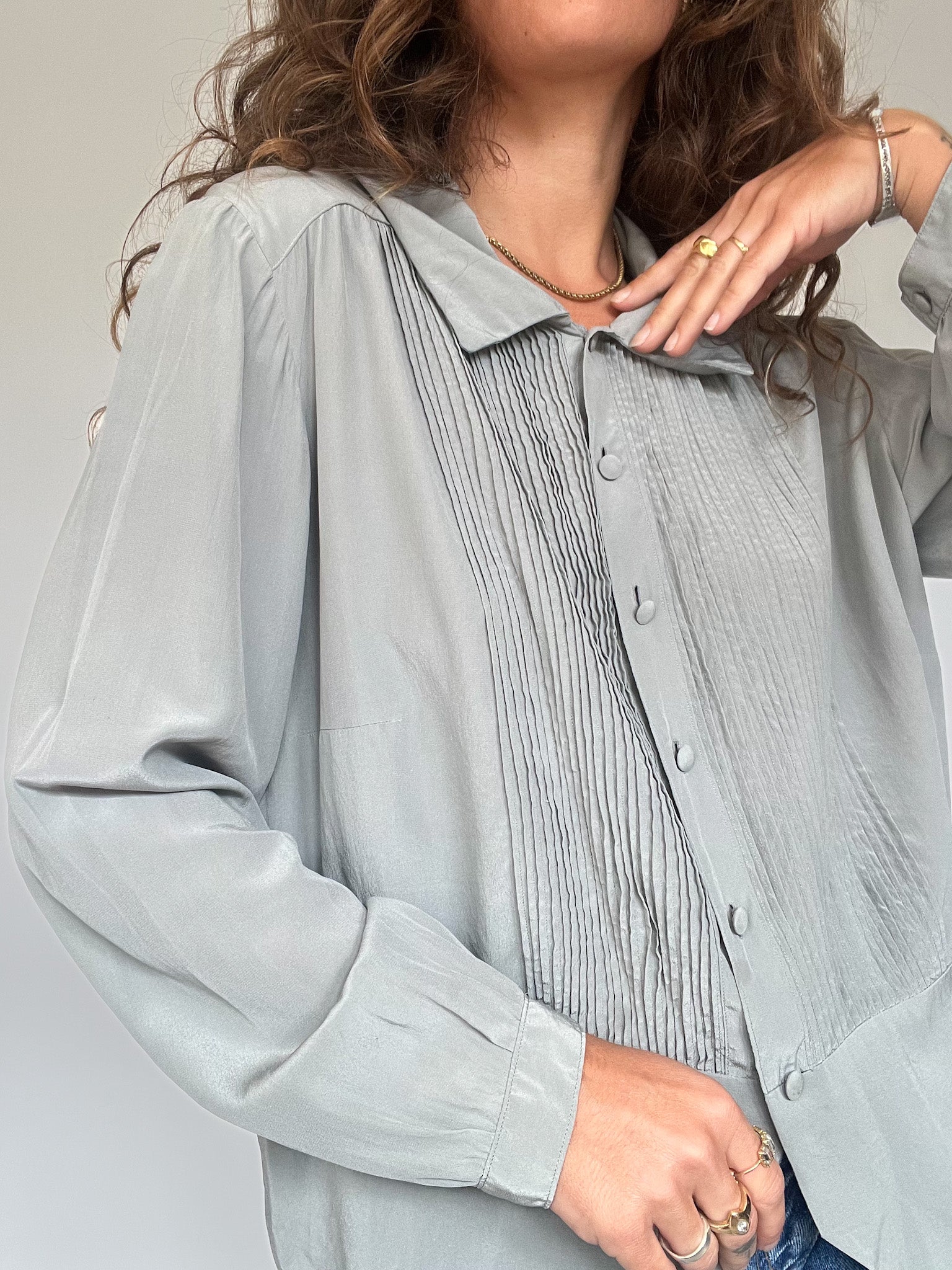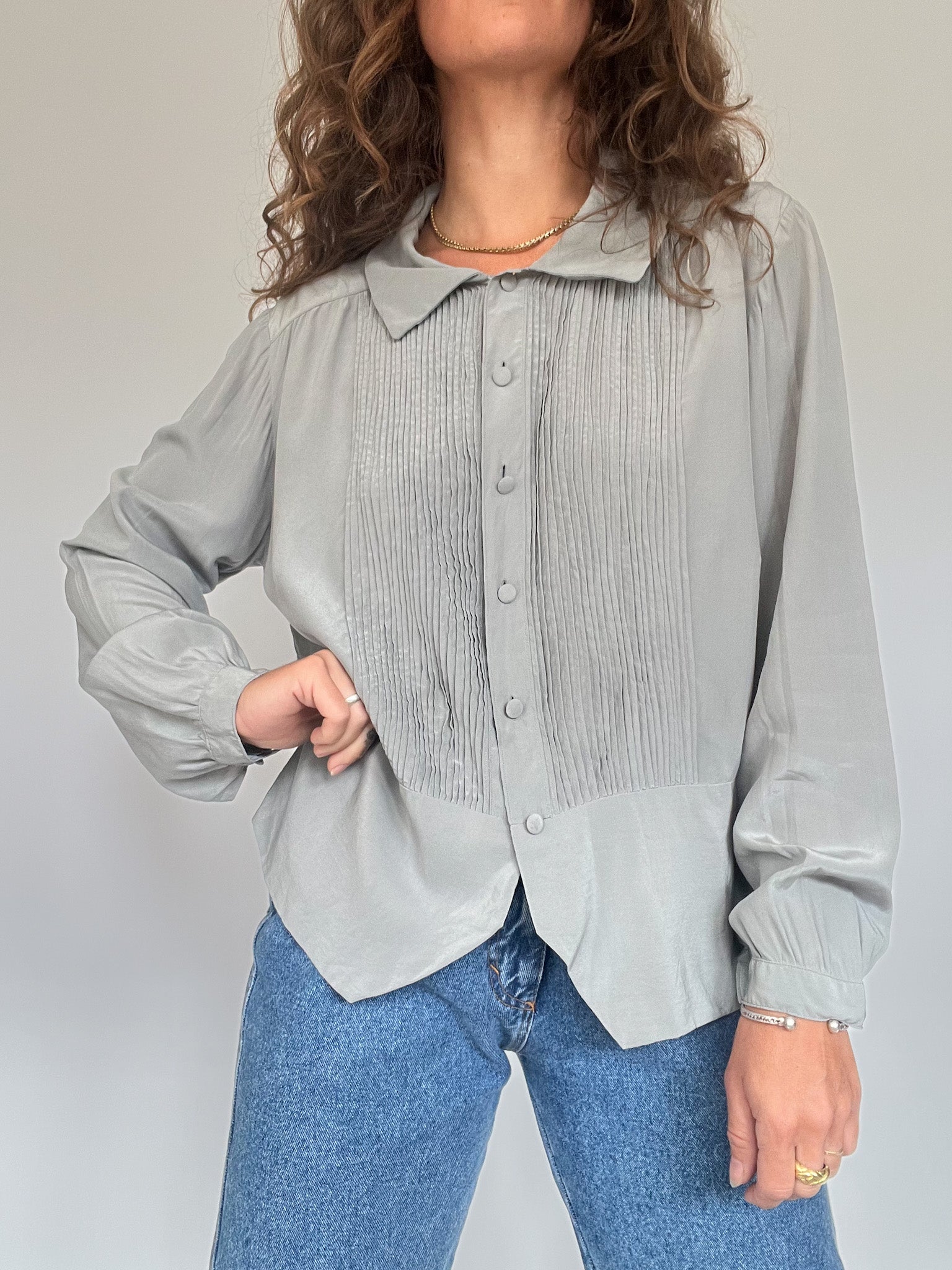 Vintage 80’s Grey Silk Blouse with Pleated Front