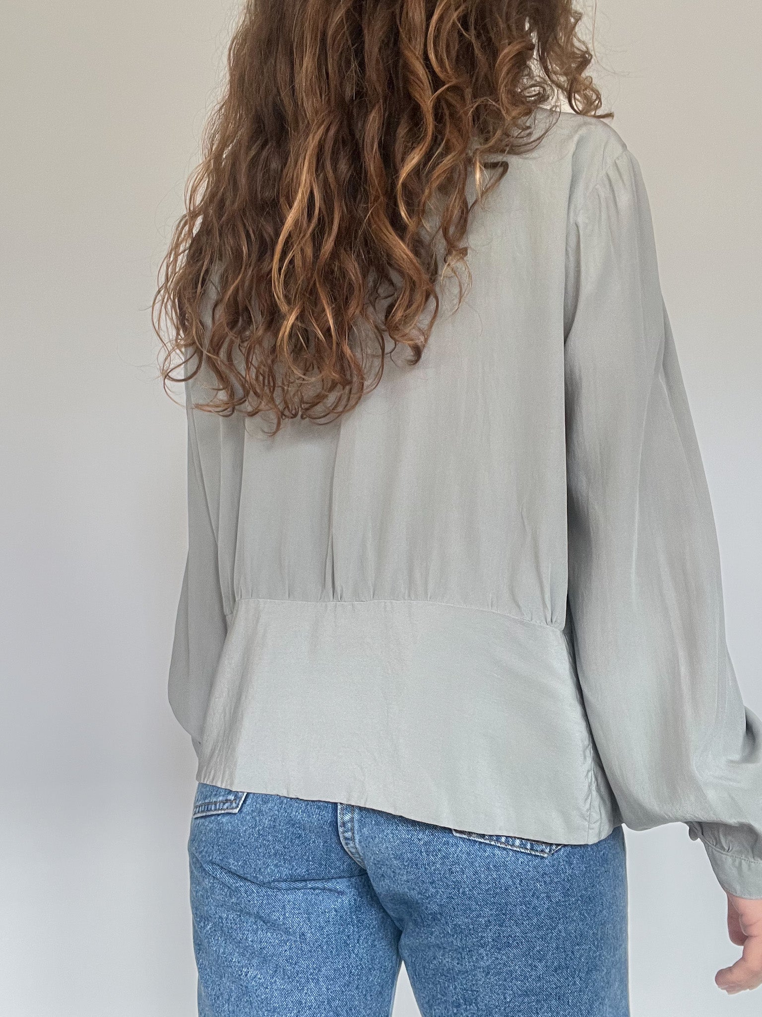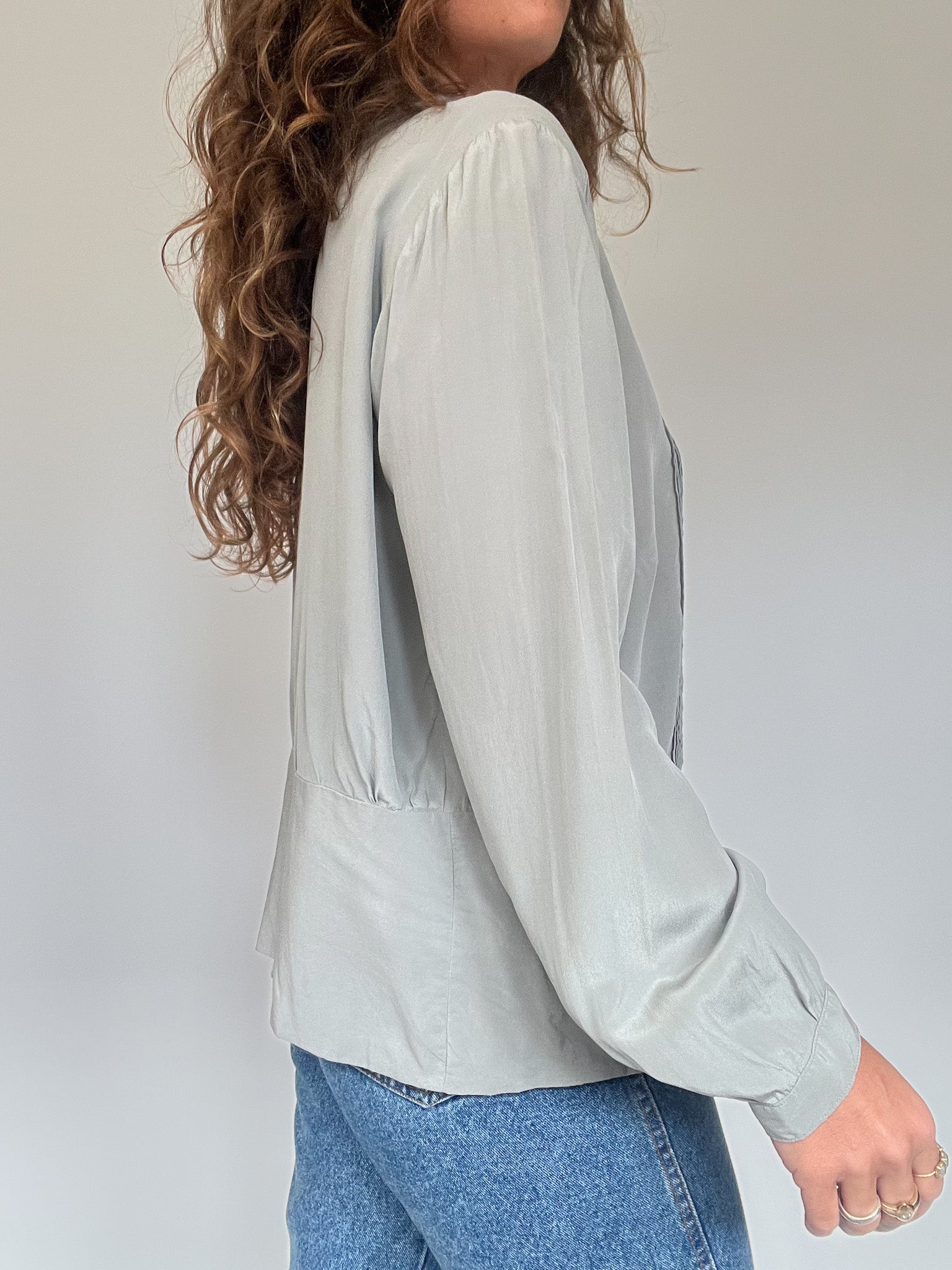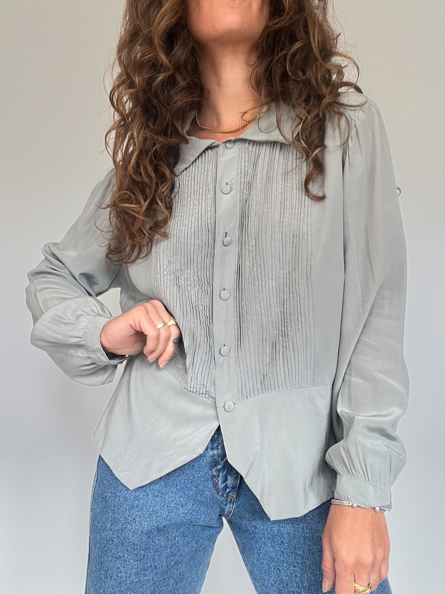 Vintage 80’s Grey Silk Blouse with Pleated Front