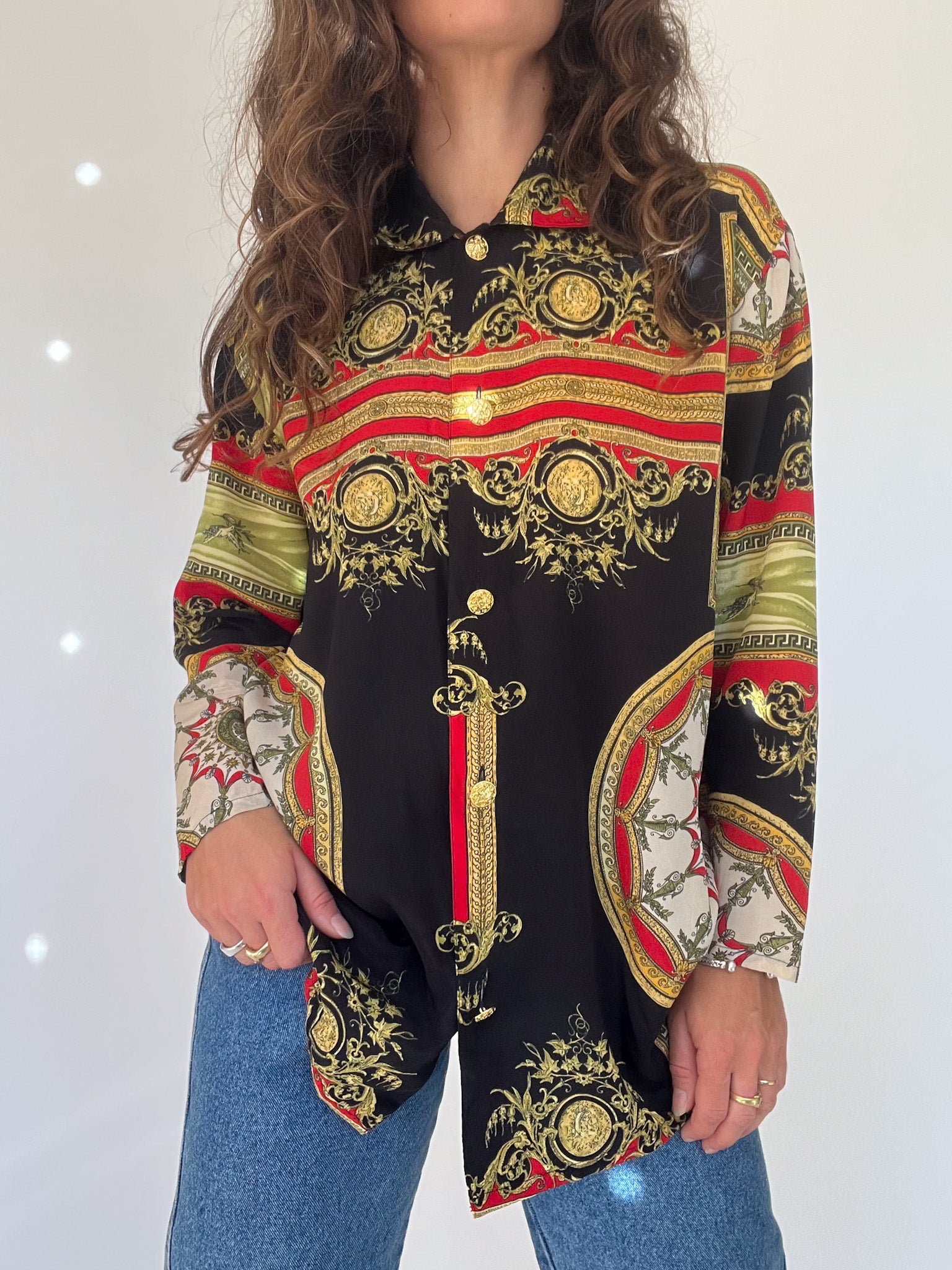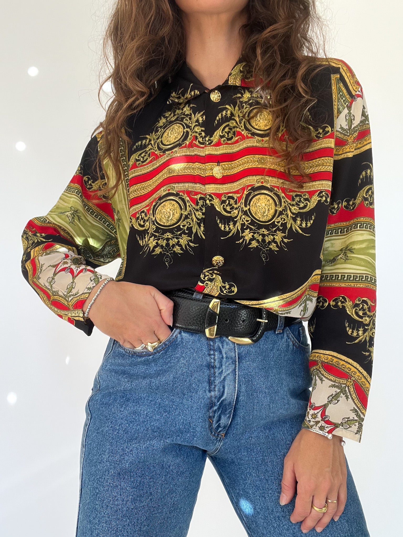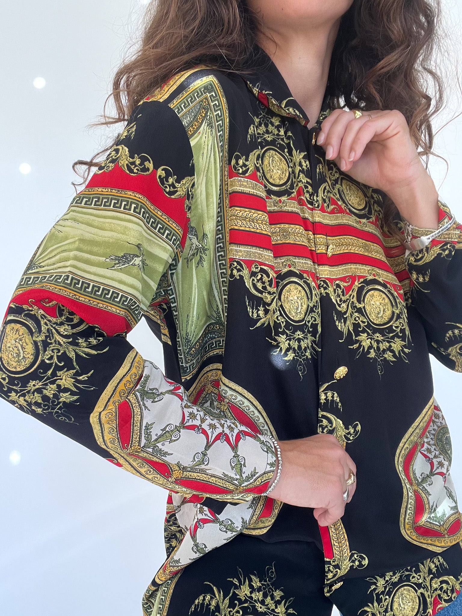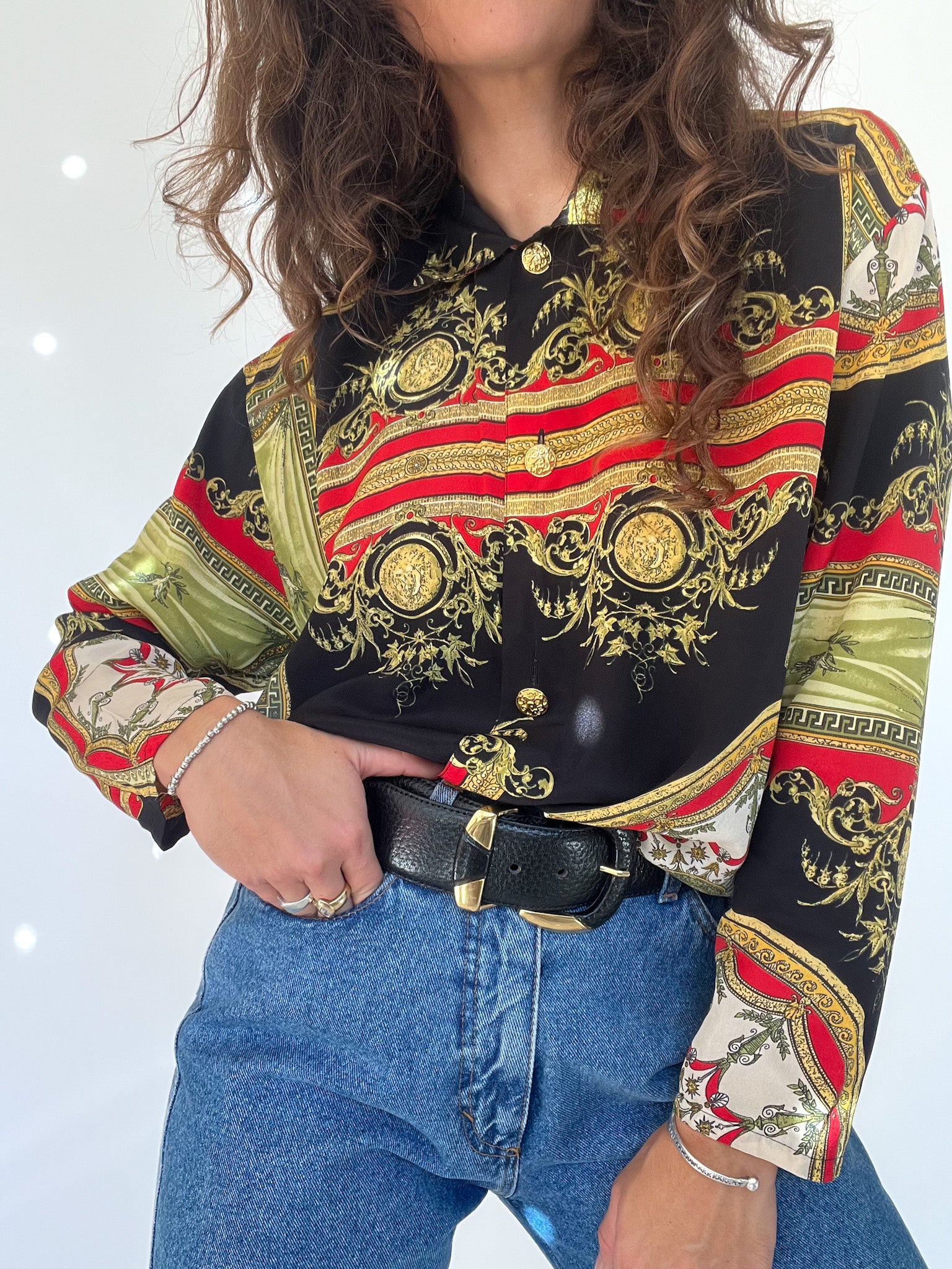 Vintage 90’s Baroque Black & Red Silk-Blend Shirt