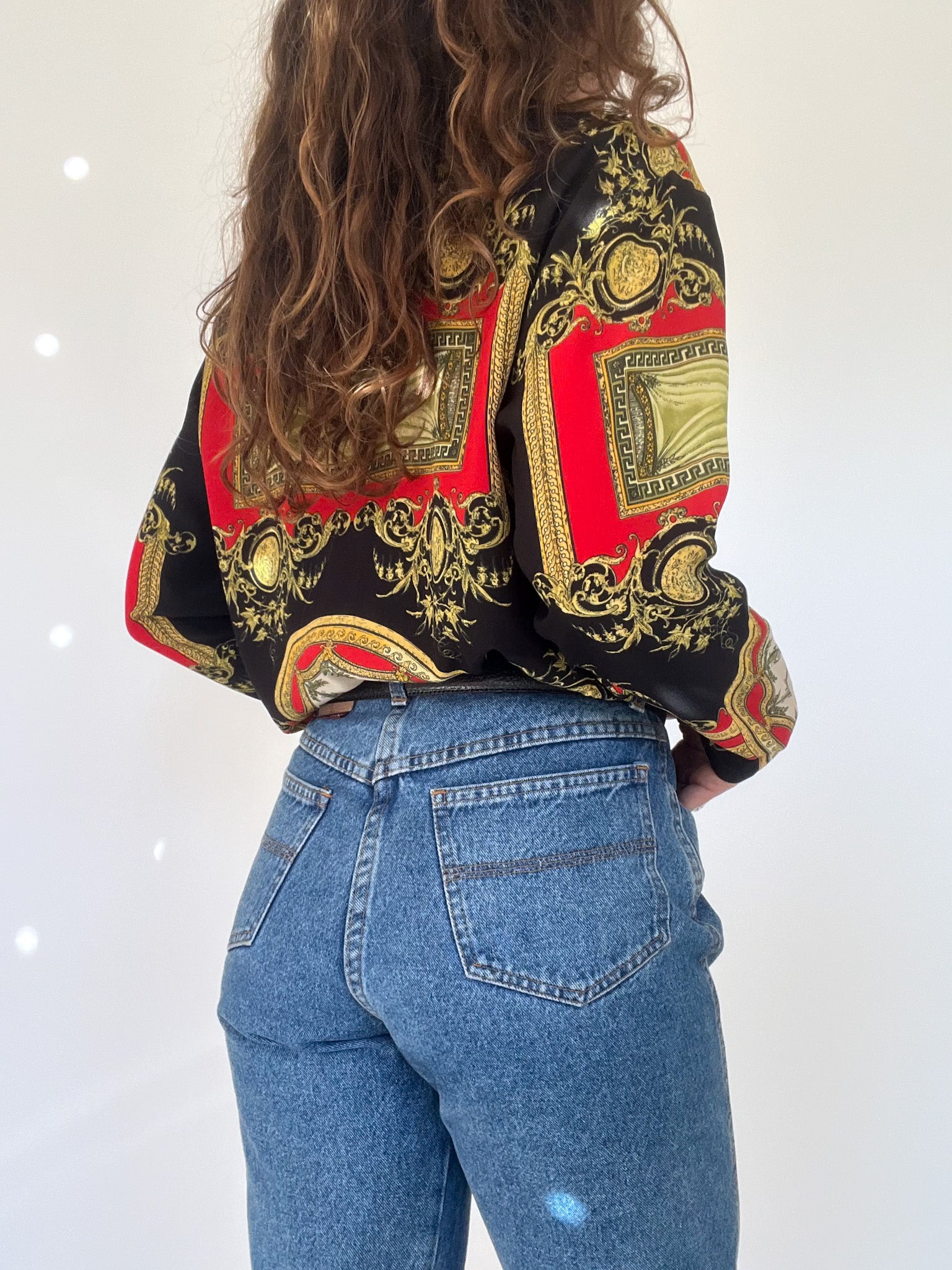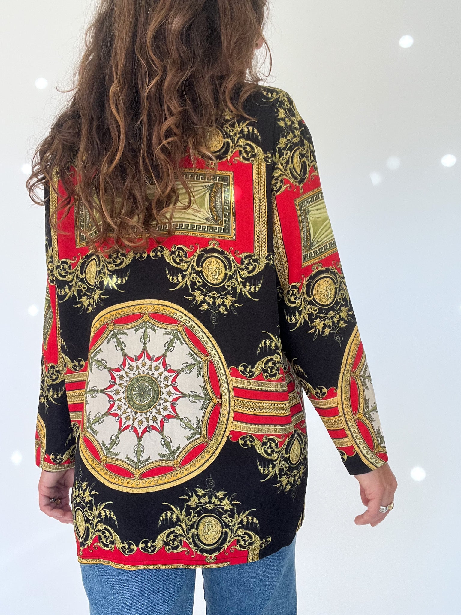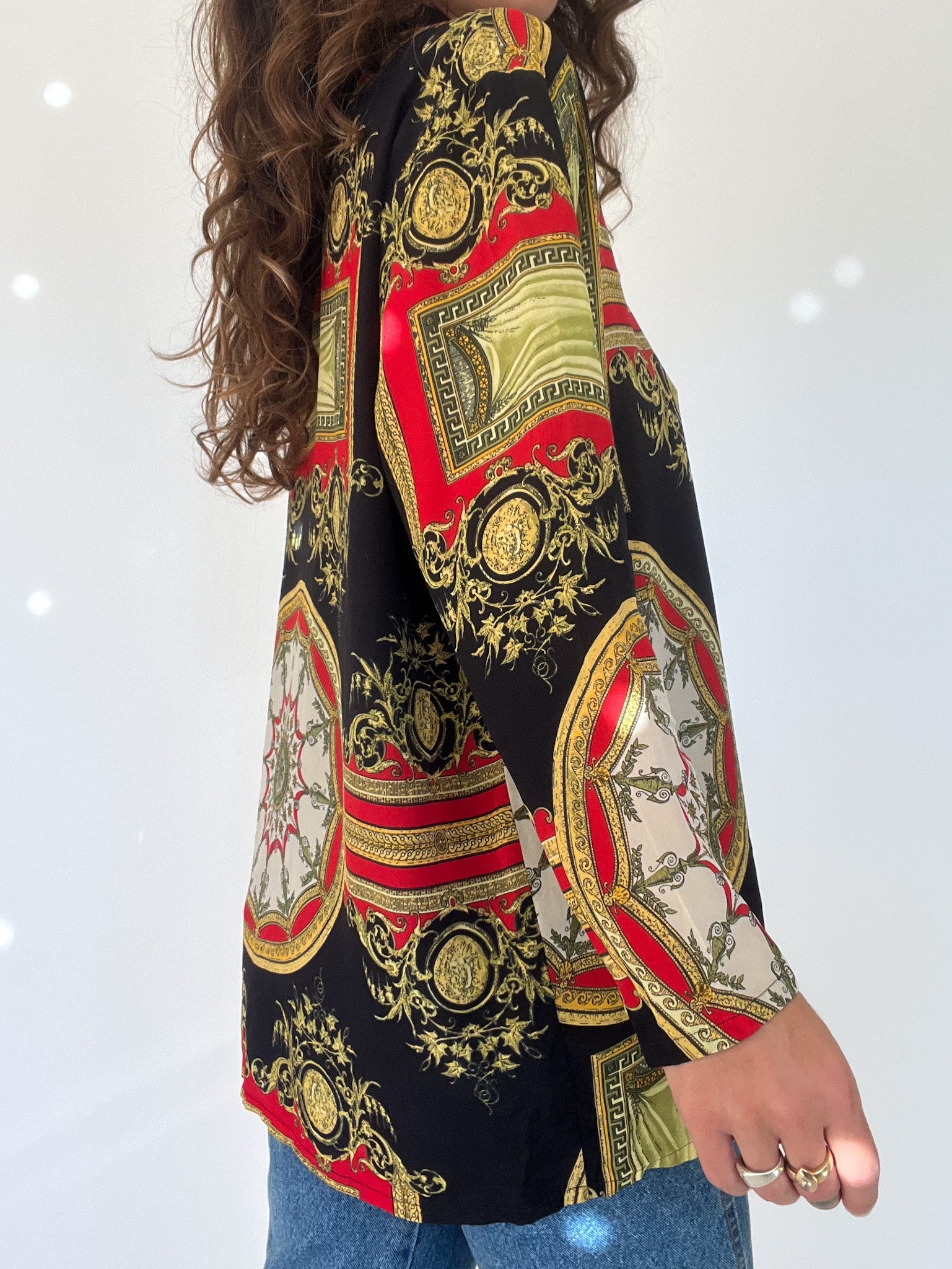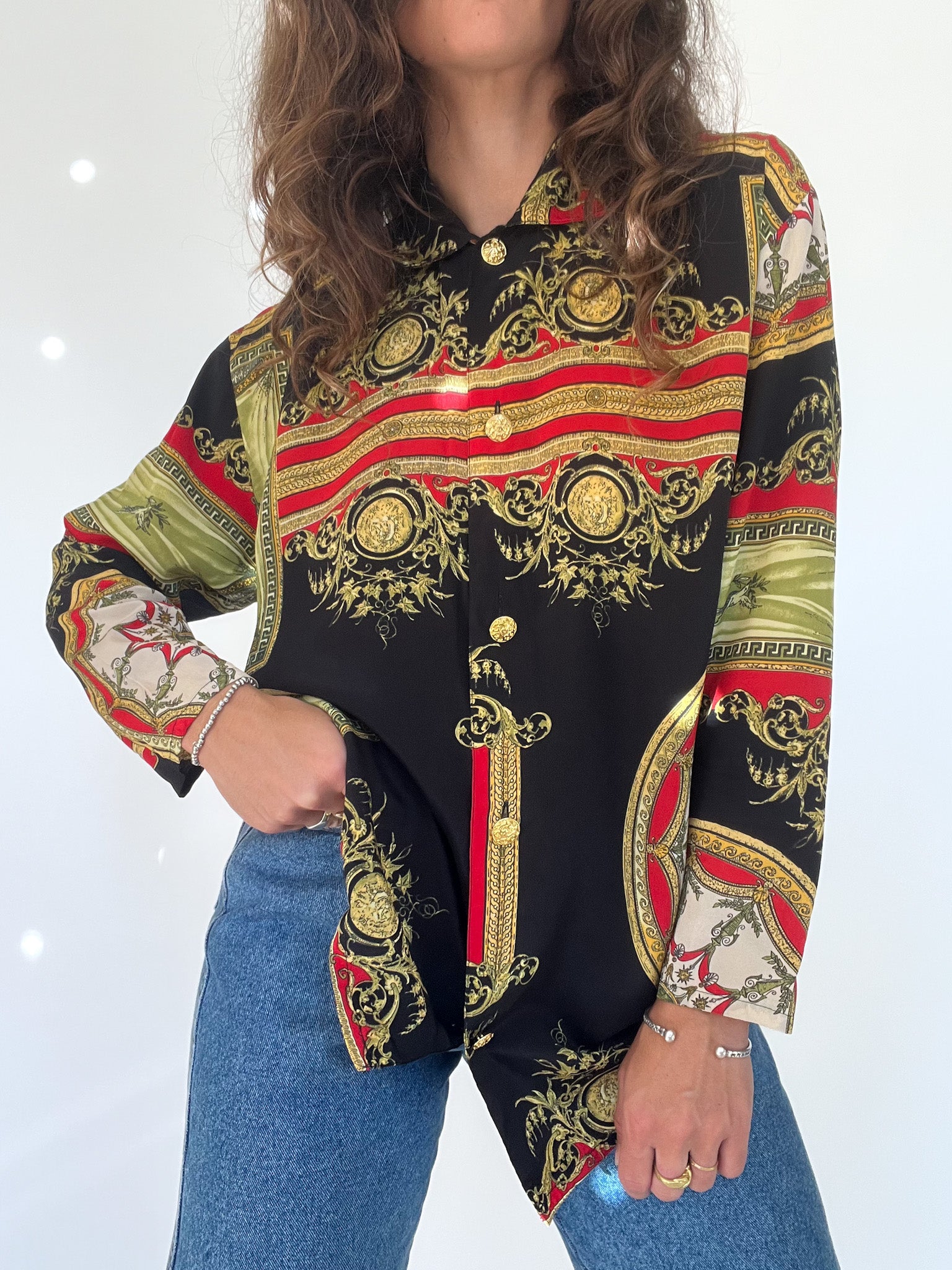 Vintage 90’s Baroque Black & Red Silk-Blend Shirt
