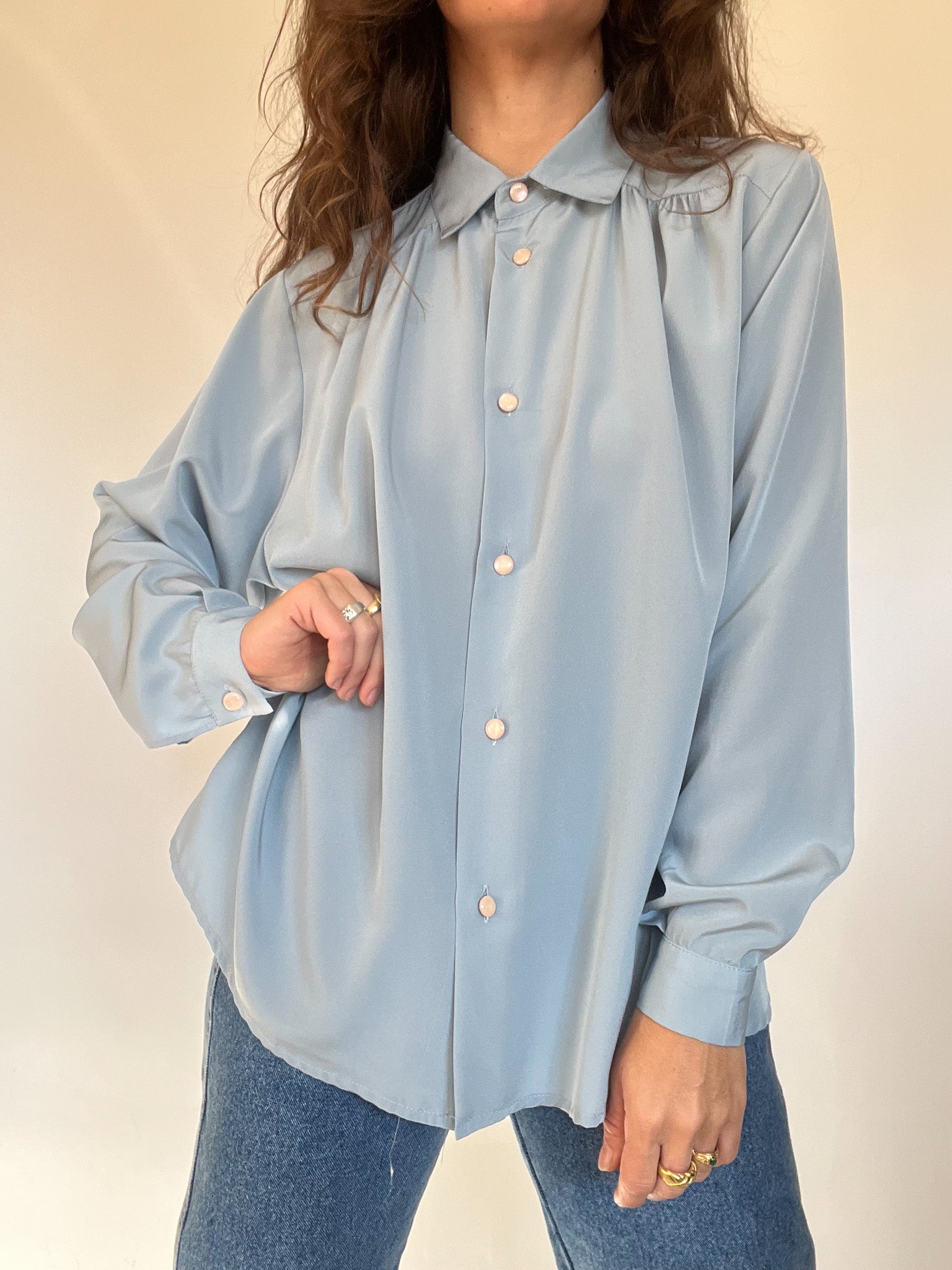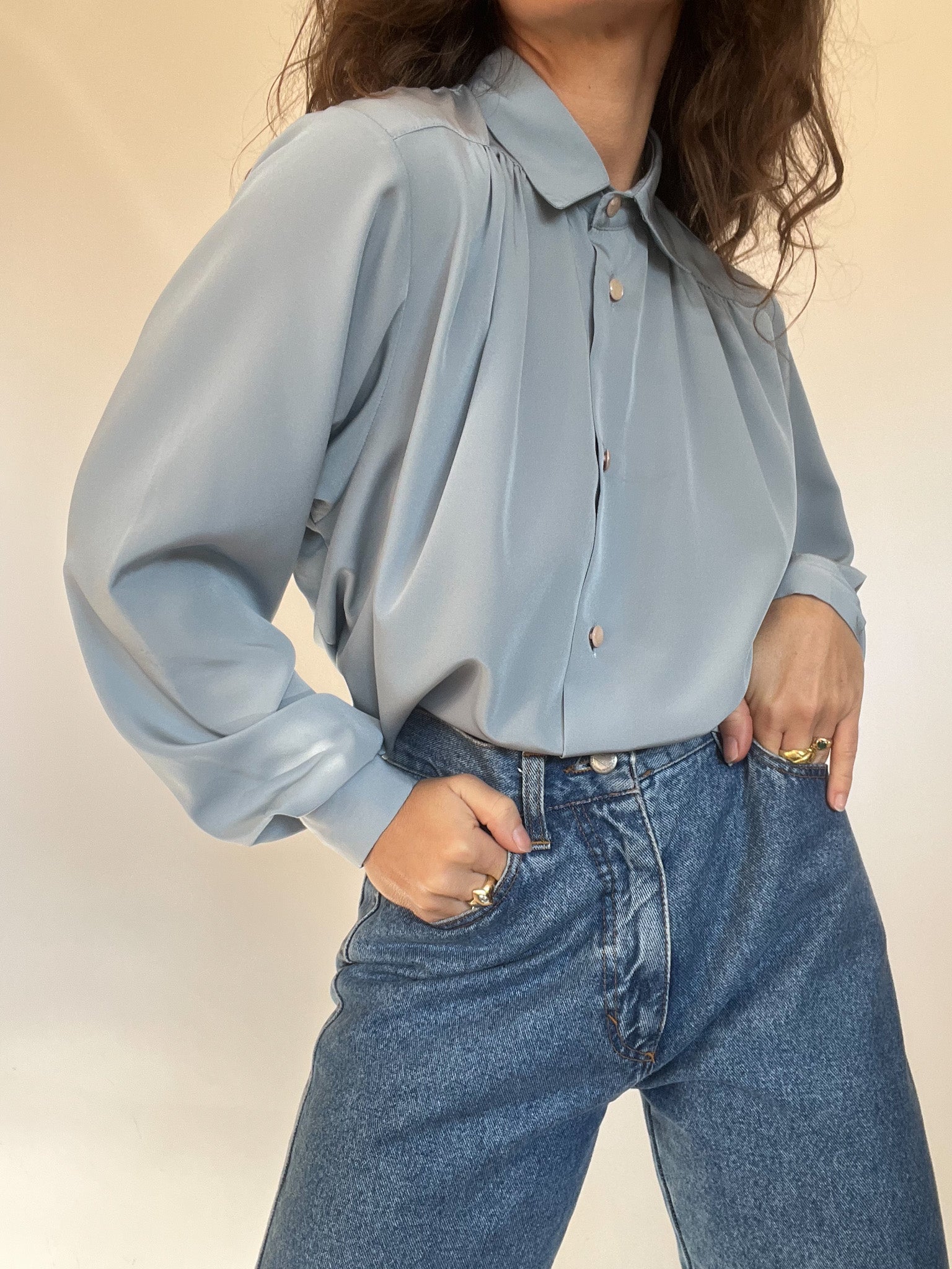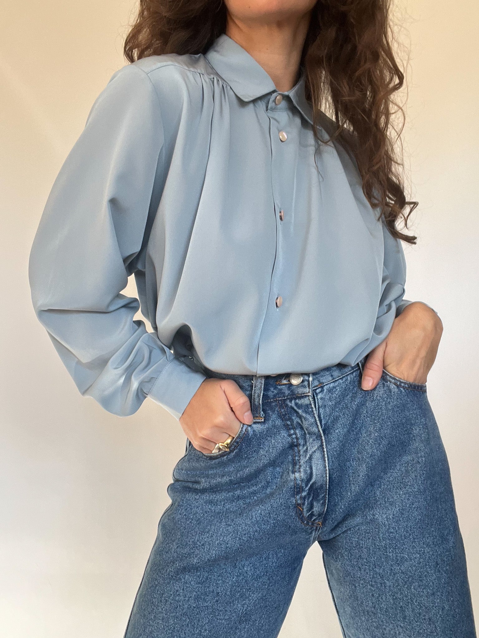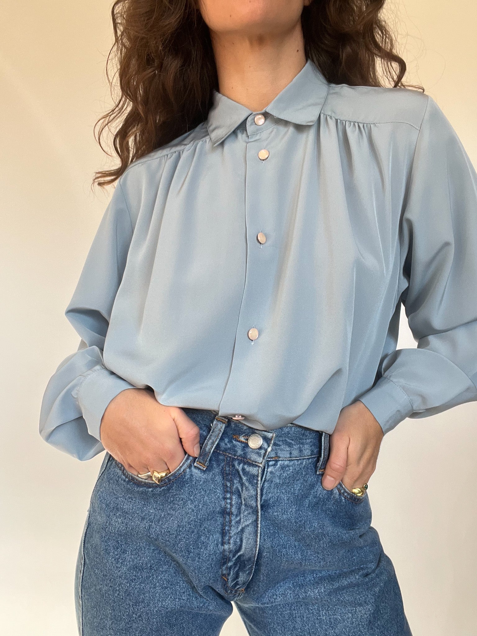 Vintage 80’s Dusty Blue Button-Up Blouse