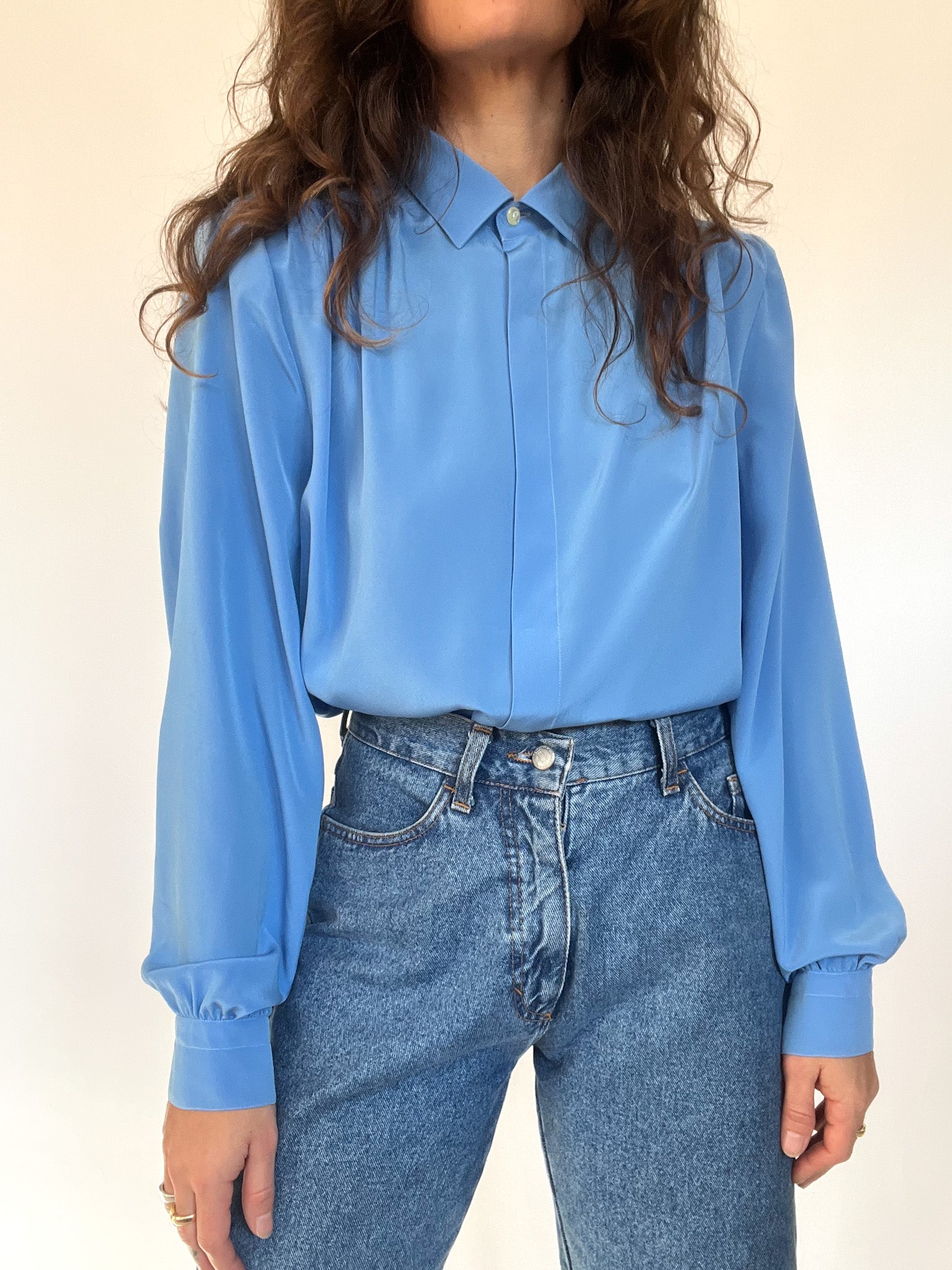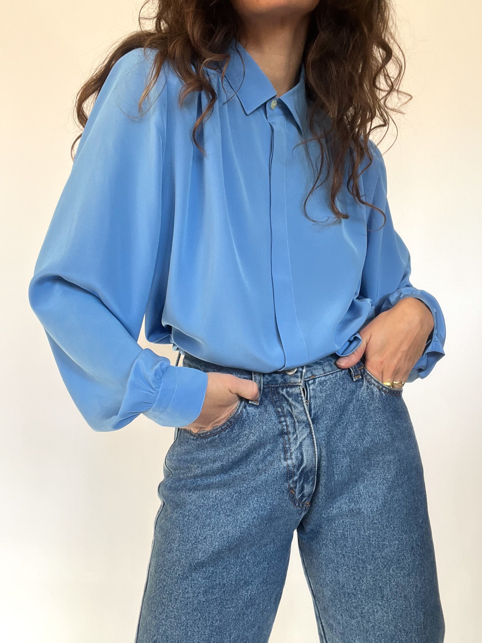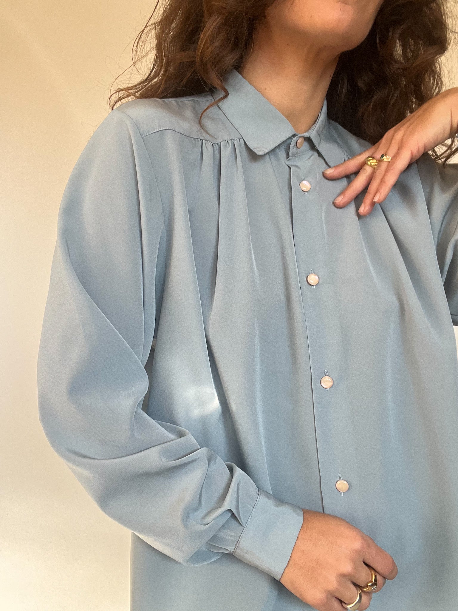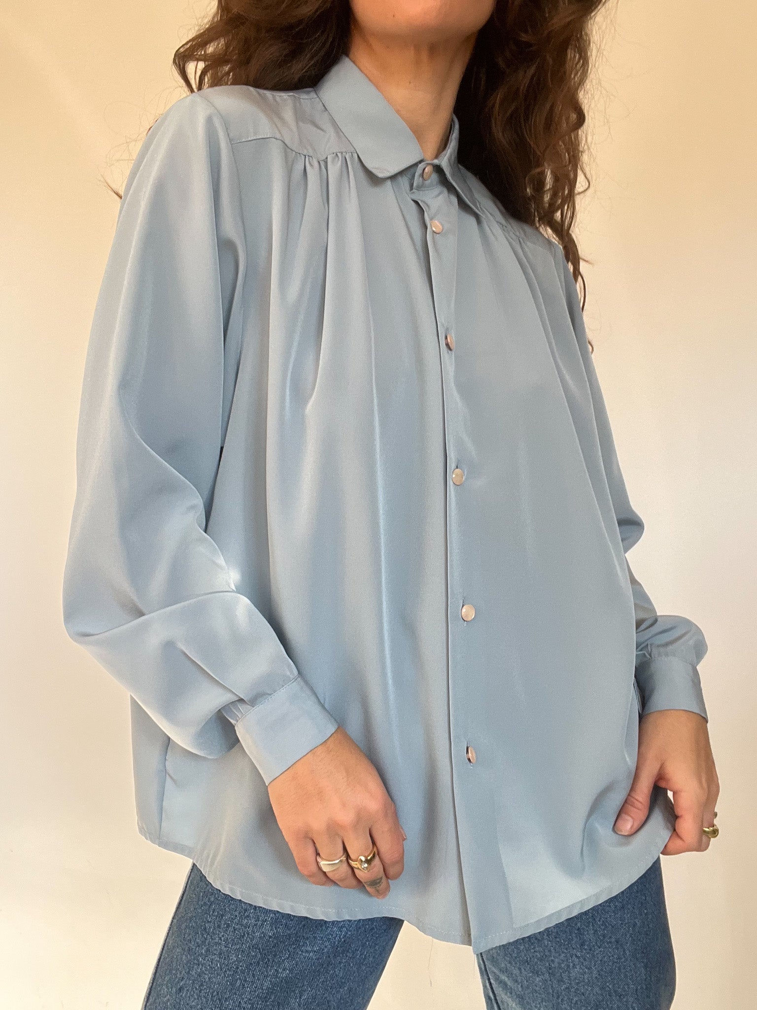 Vintage 80’s Dusty Blue Button-Up Blouse
