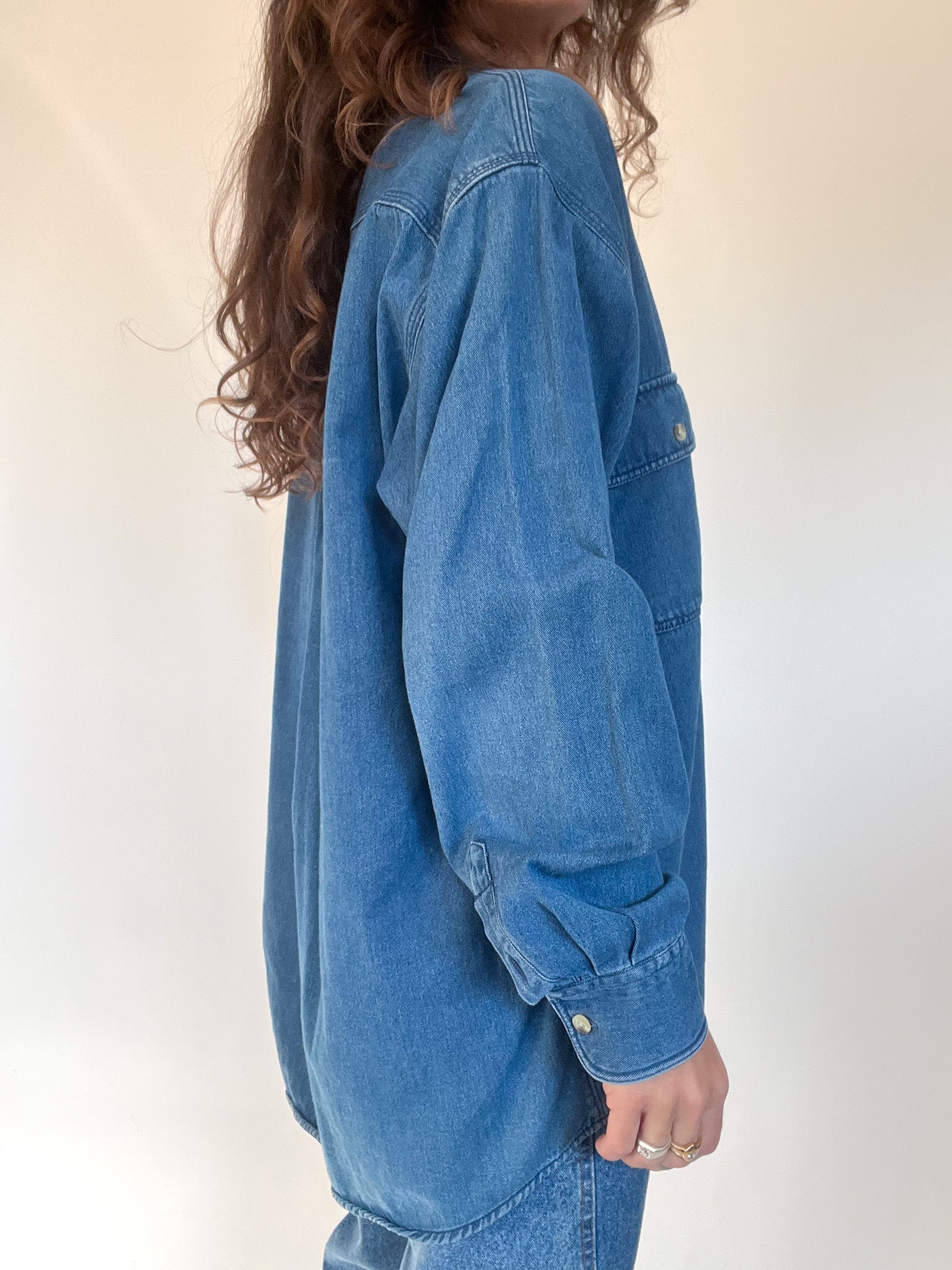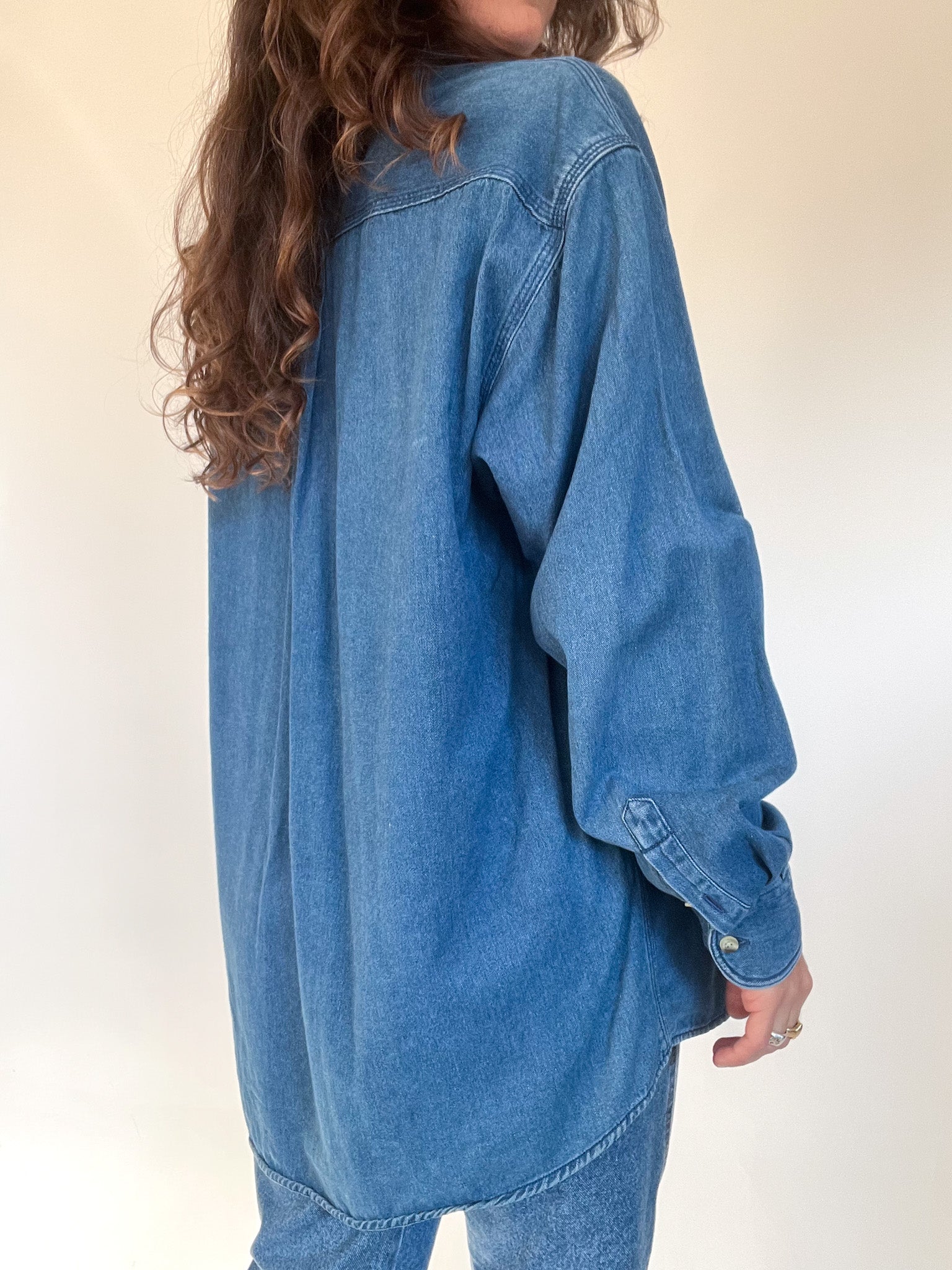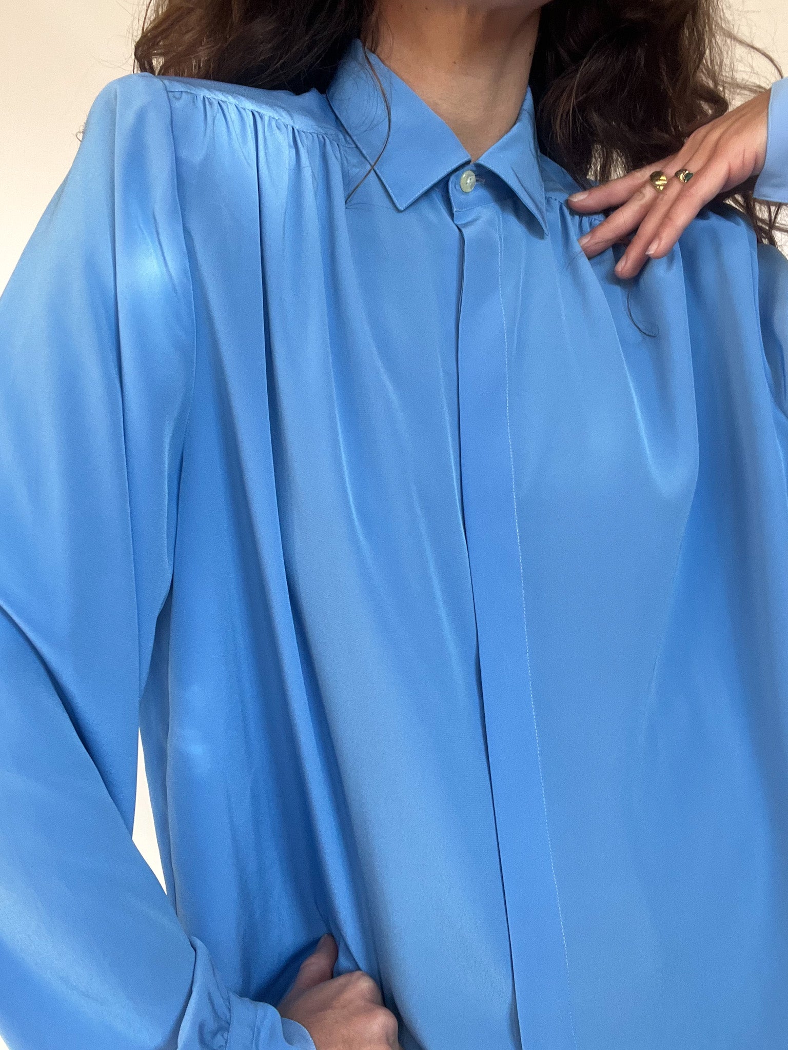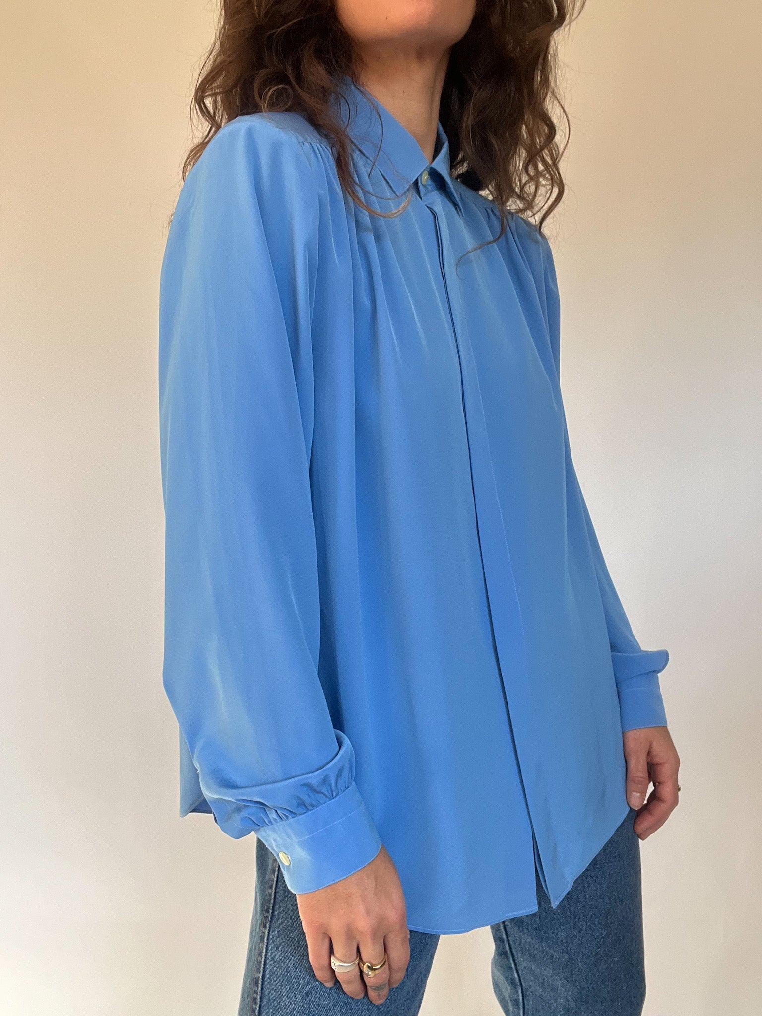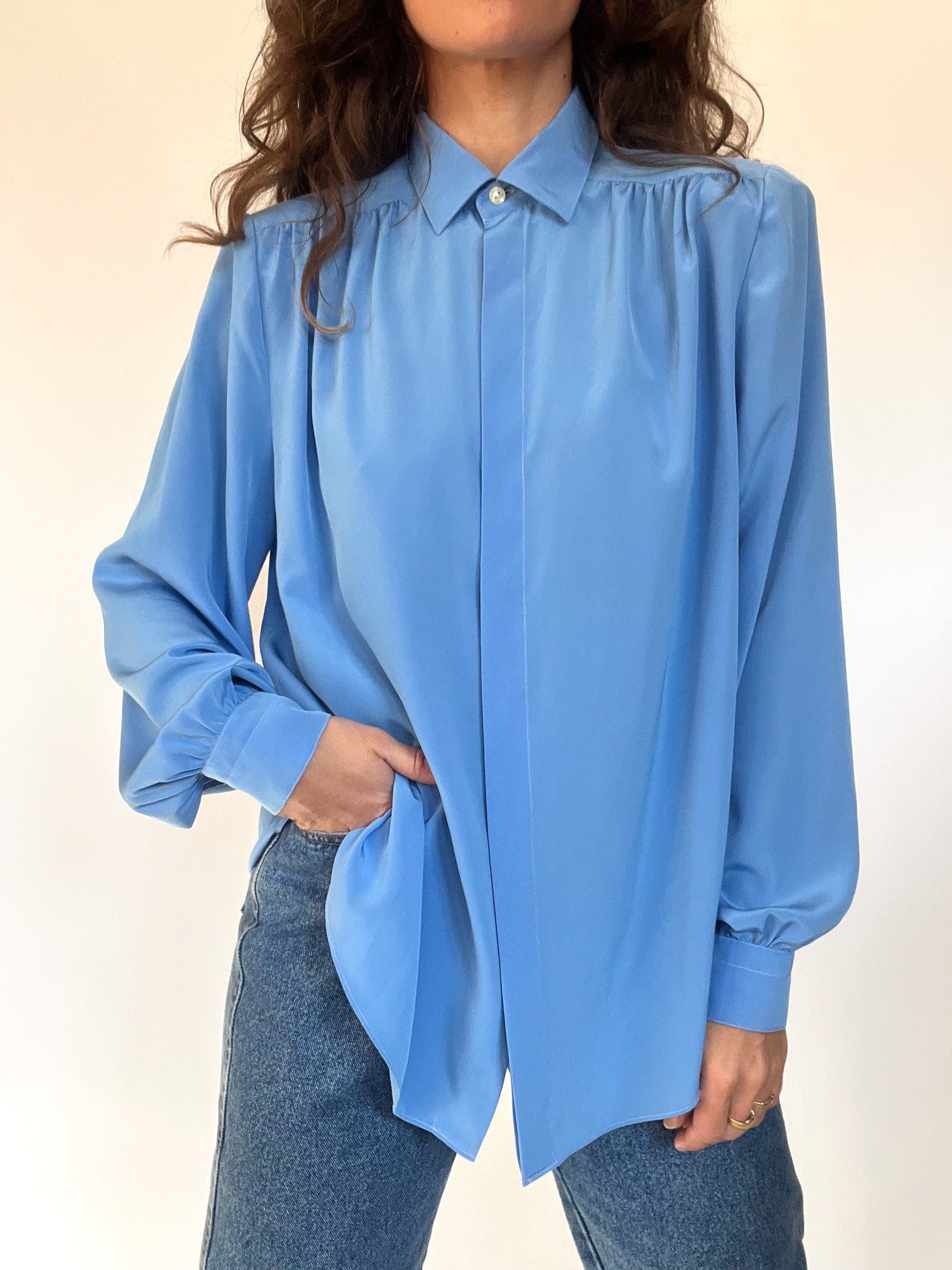 Vintage 80’s Dusty Blue Button-Up Blouse