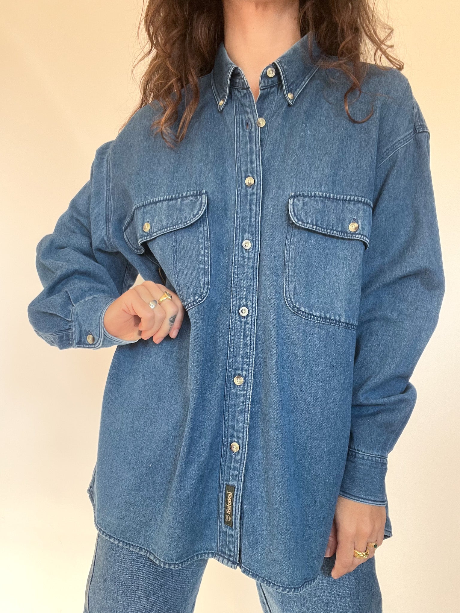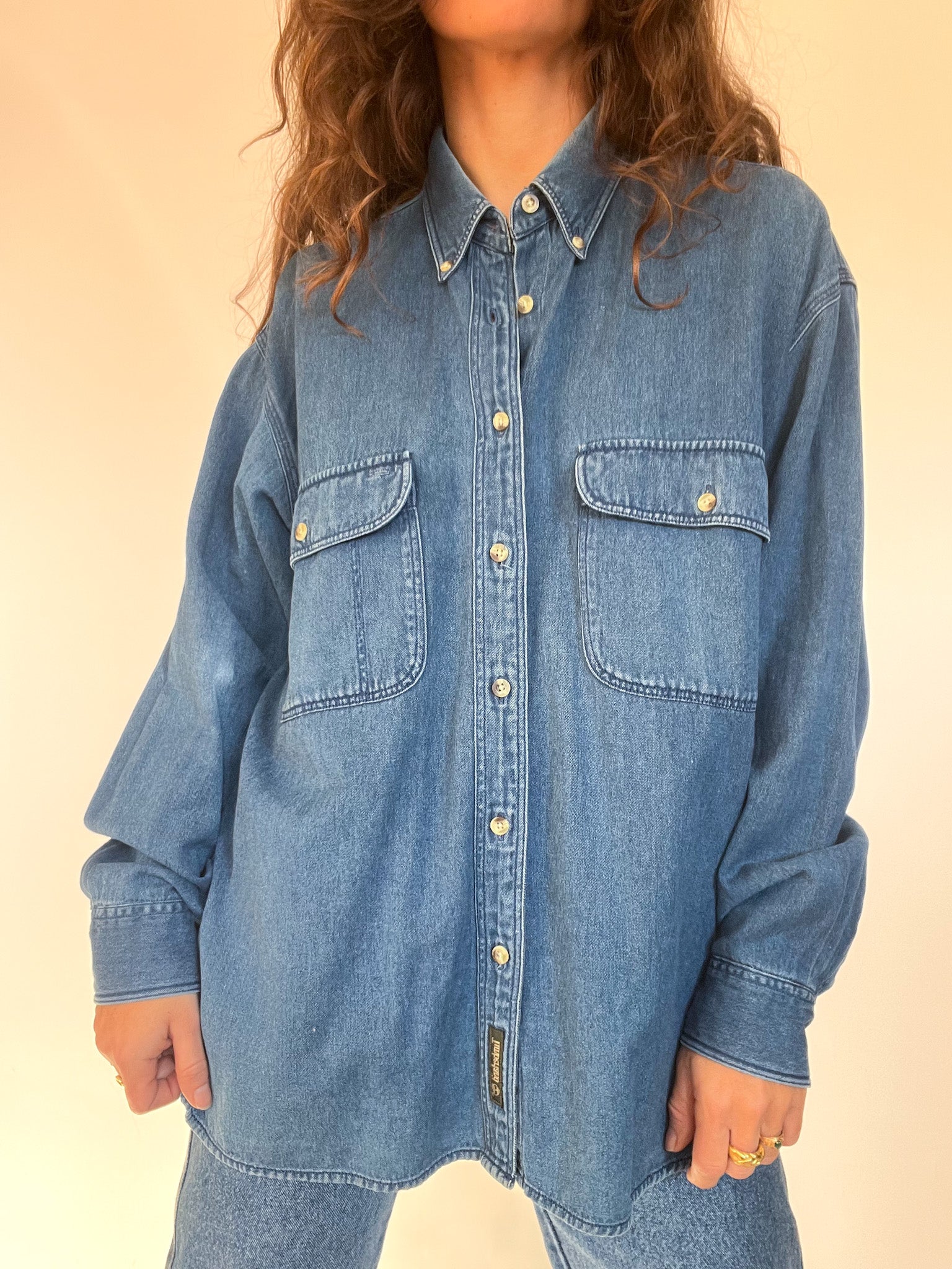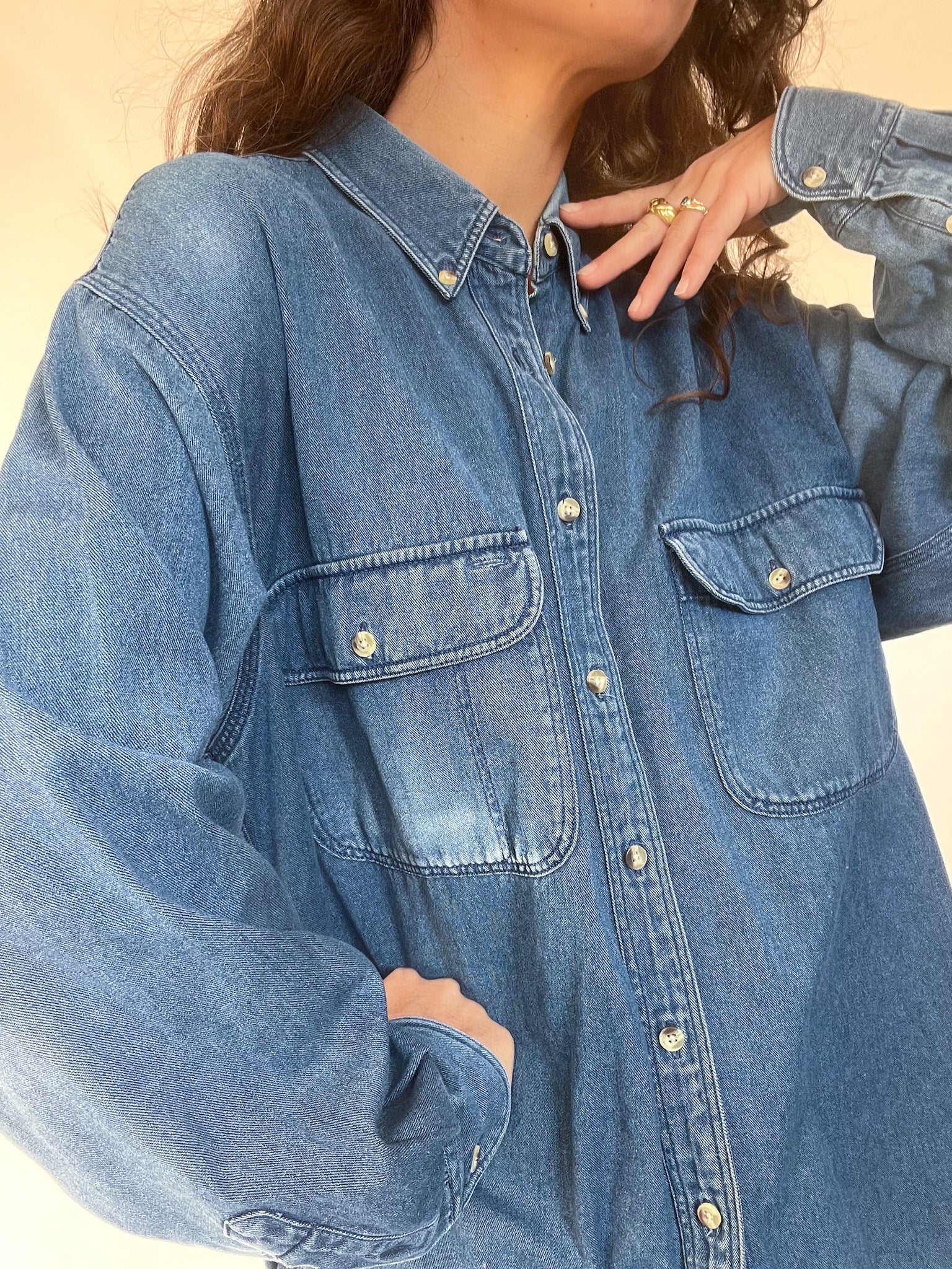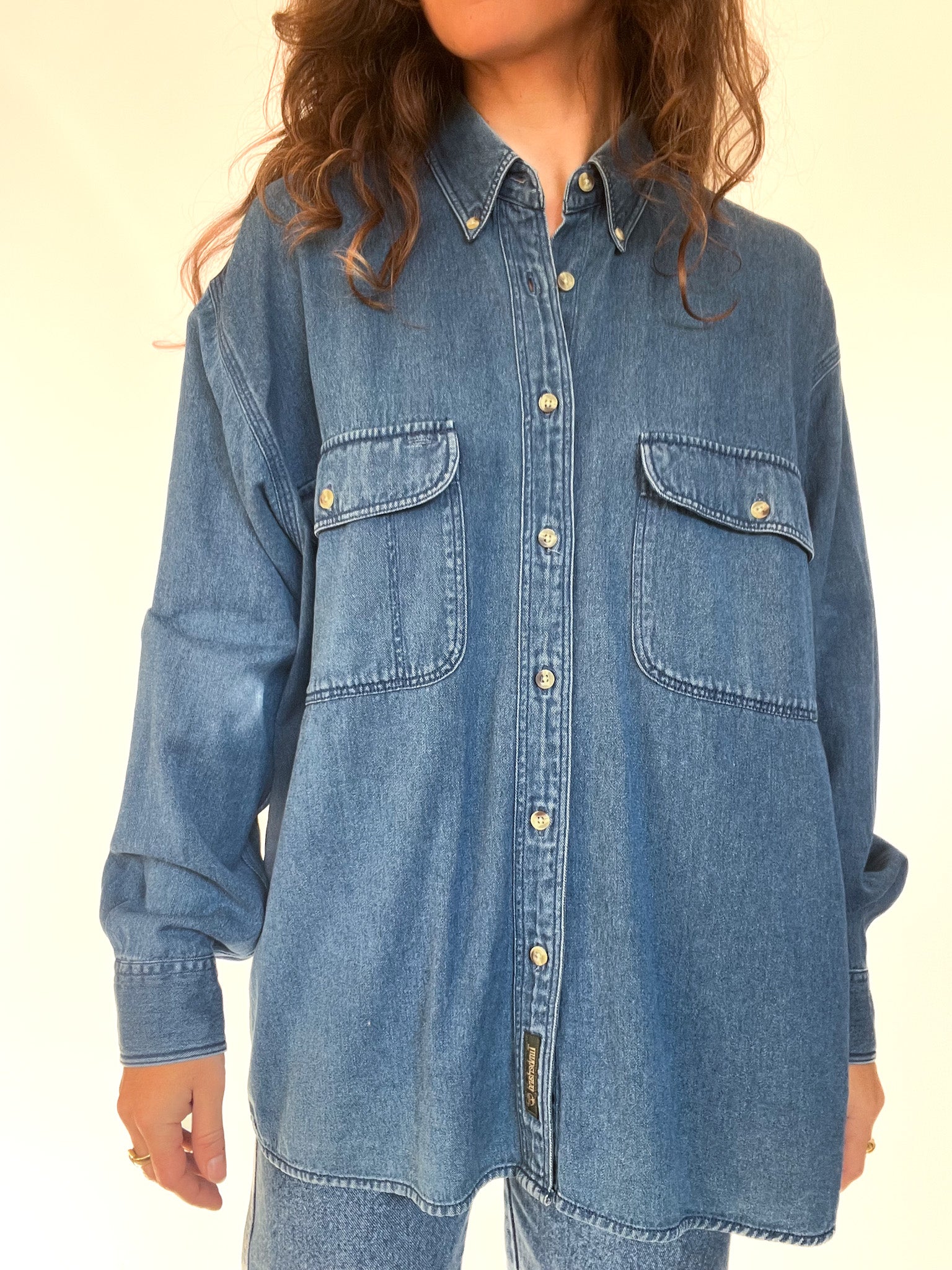 Vintage 80’s Dusty Blue Button-Up Blouse