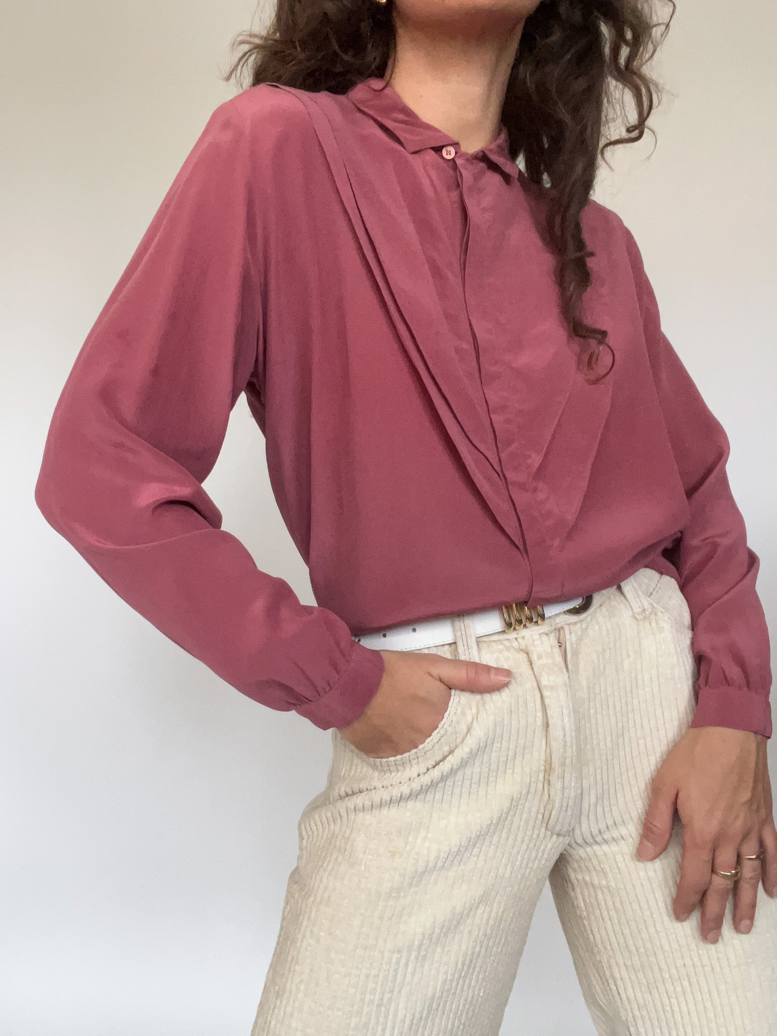 Vintage 90’s Dusty Rose Silk Draped Blouse