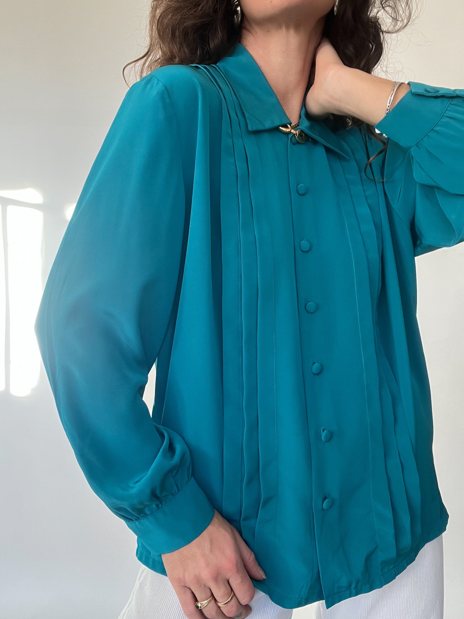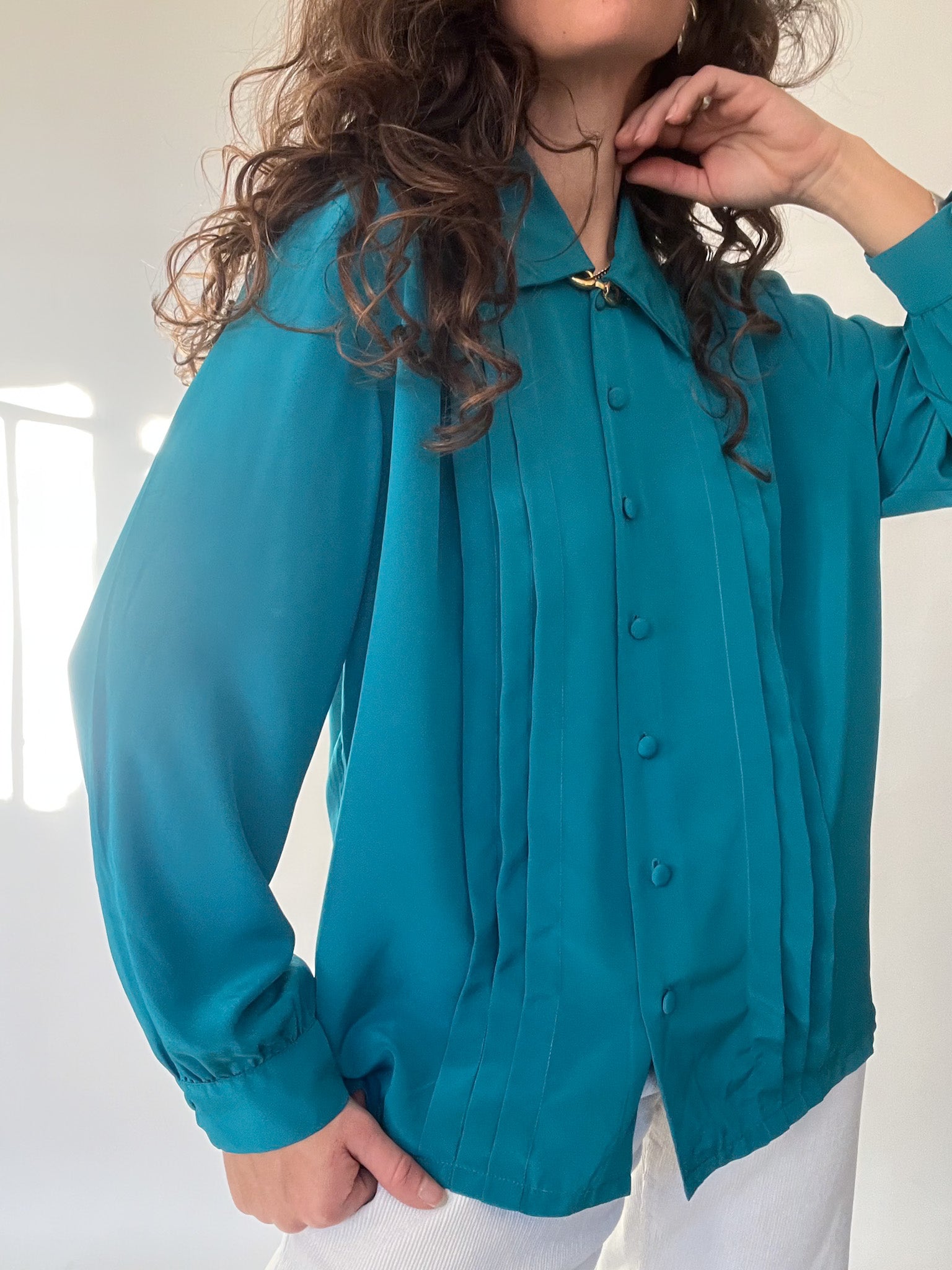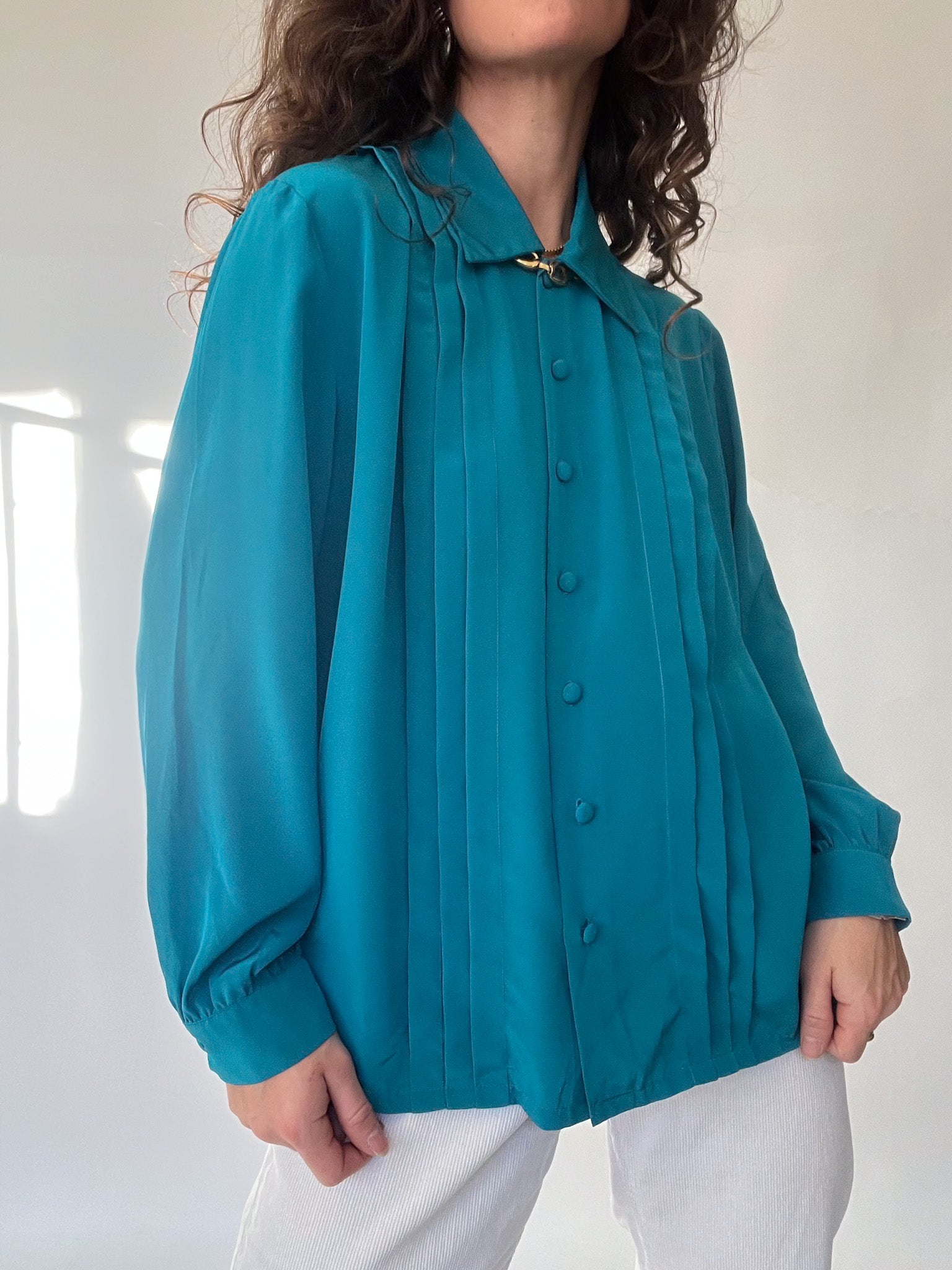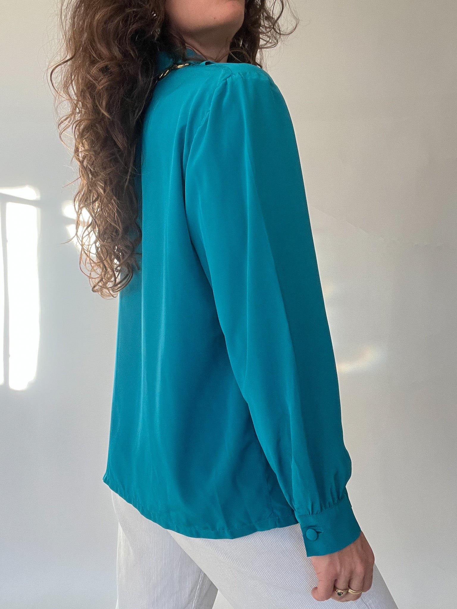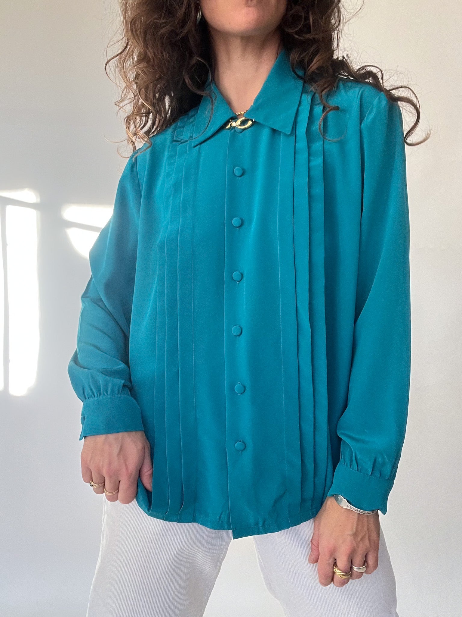 Vintage 80’s Teal Minimalist Button-Down Blouse
