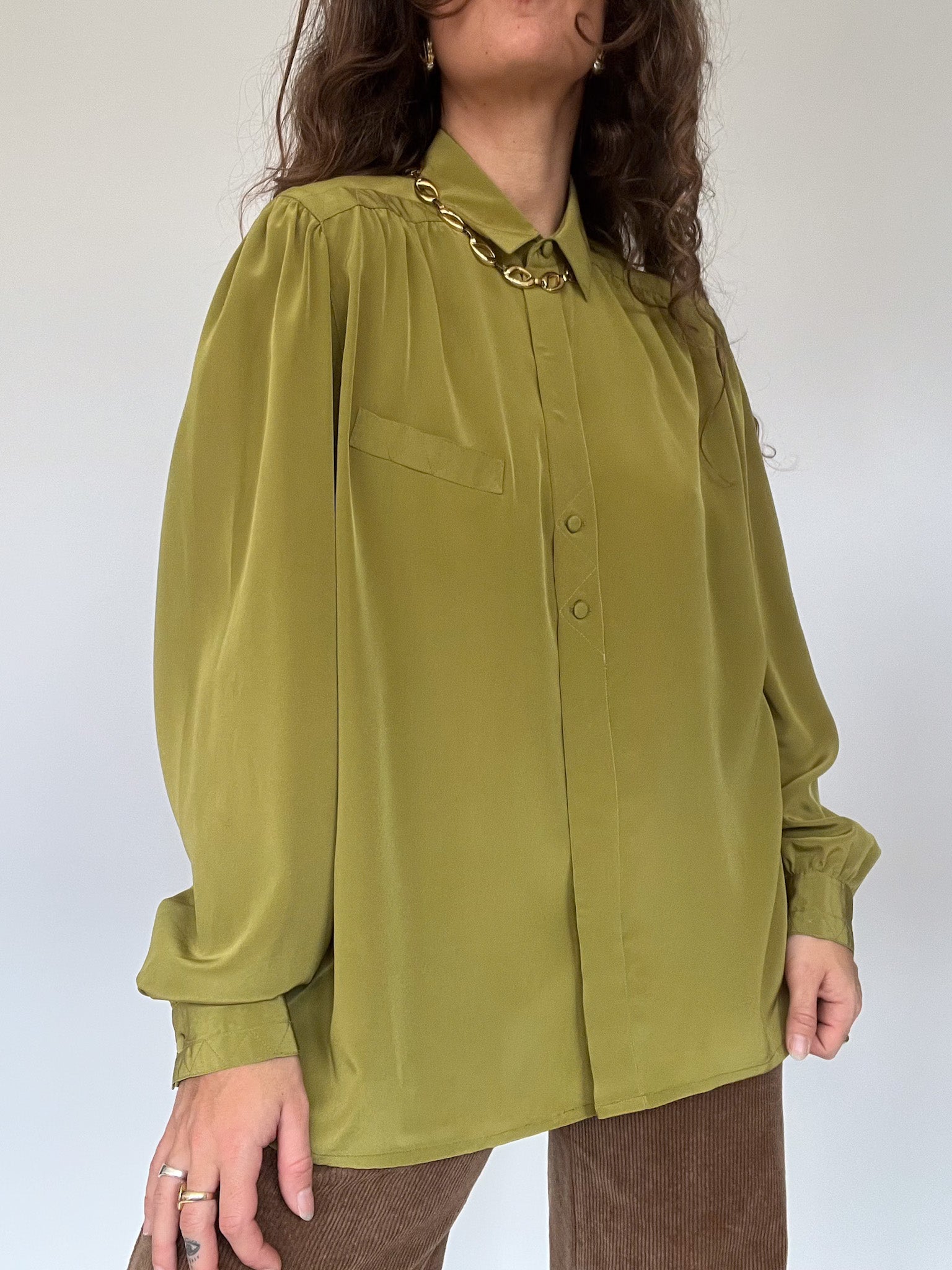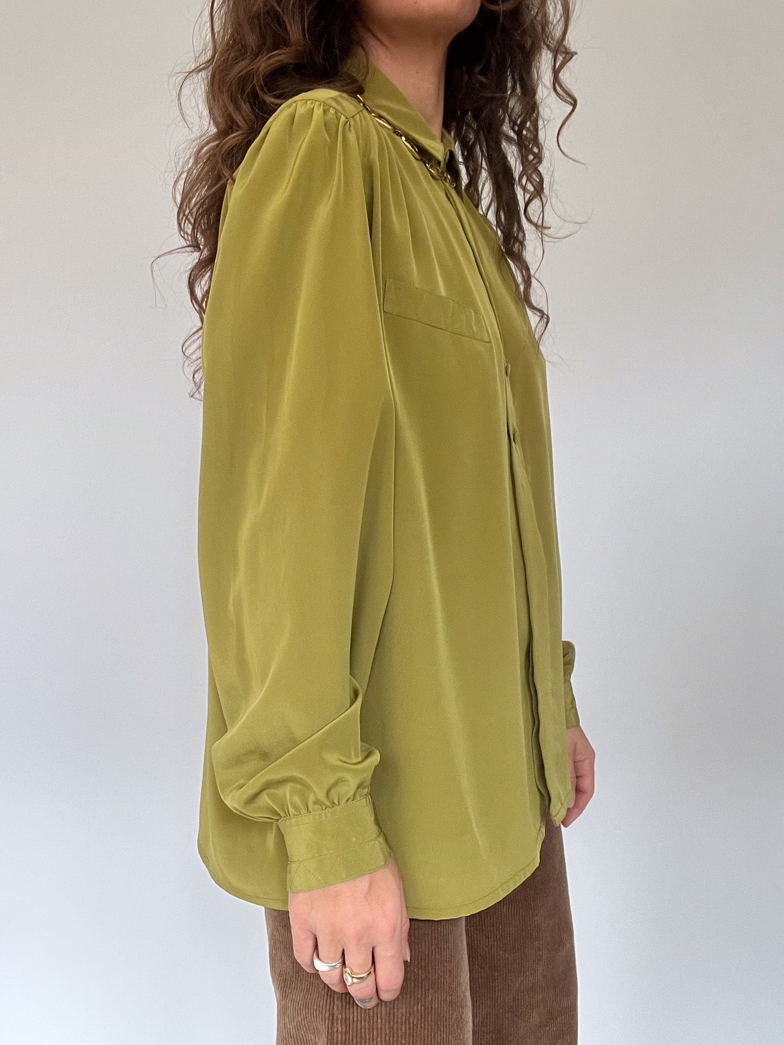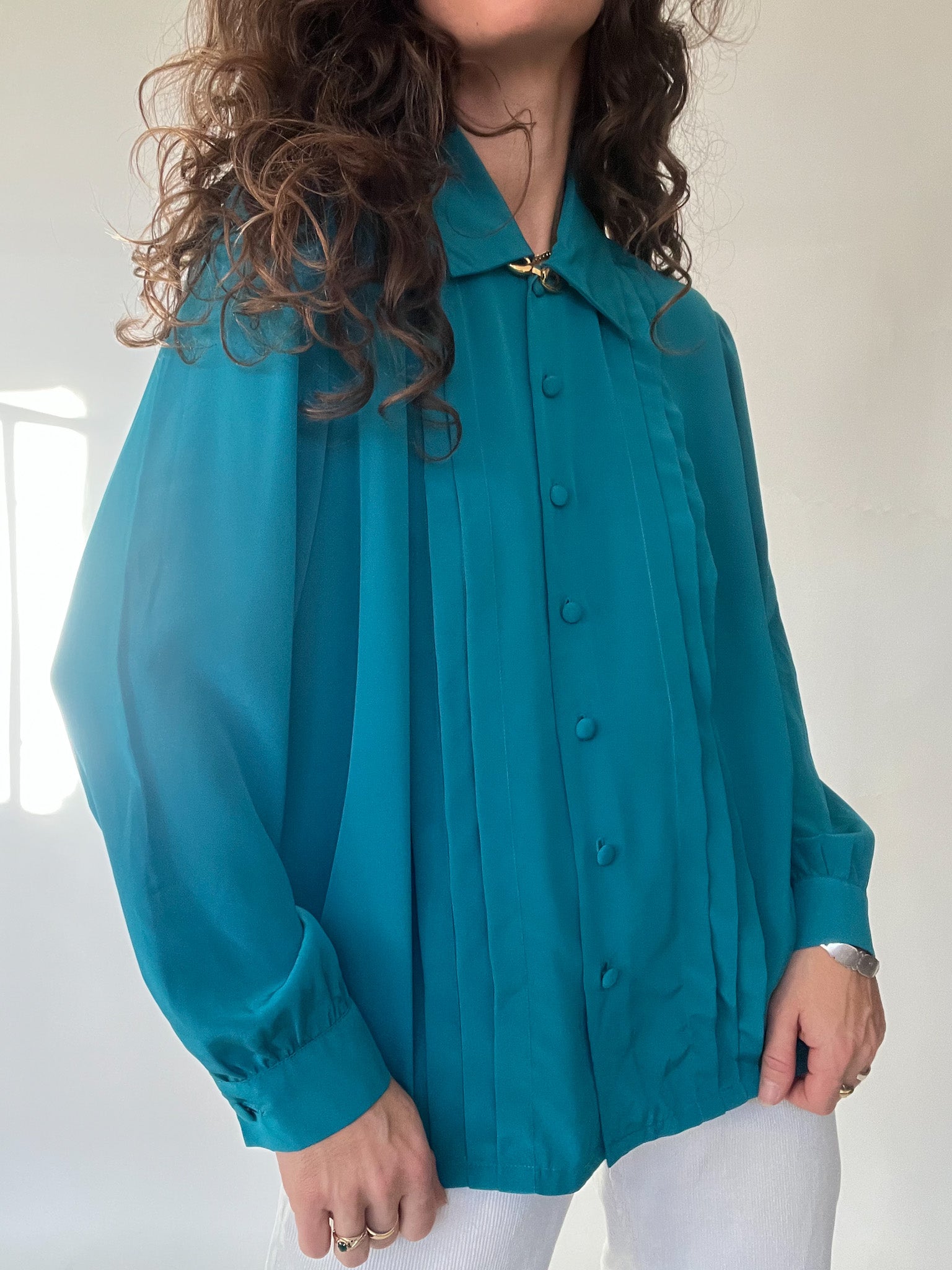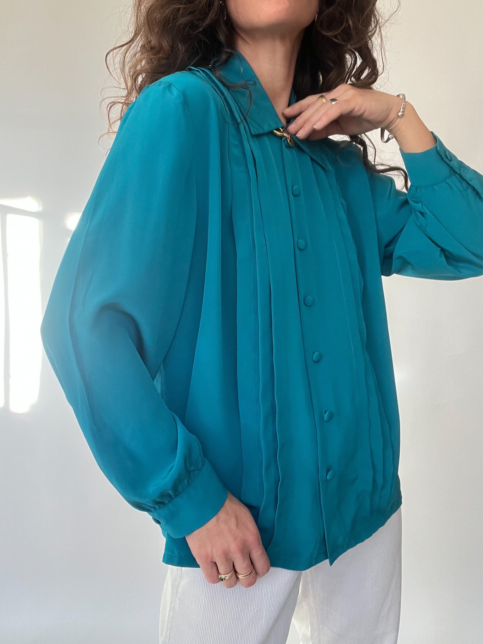 Vintage 80’s Teal Minimalist Button-Down Blouse