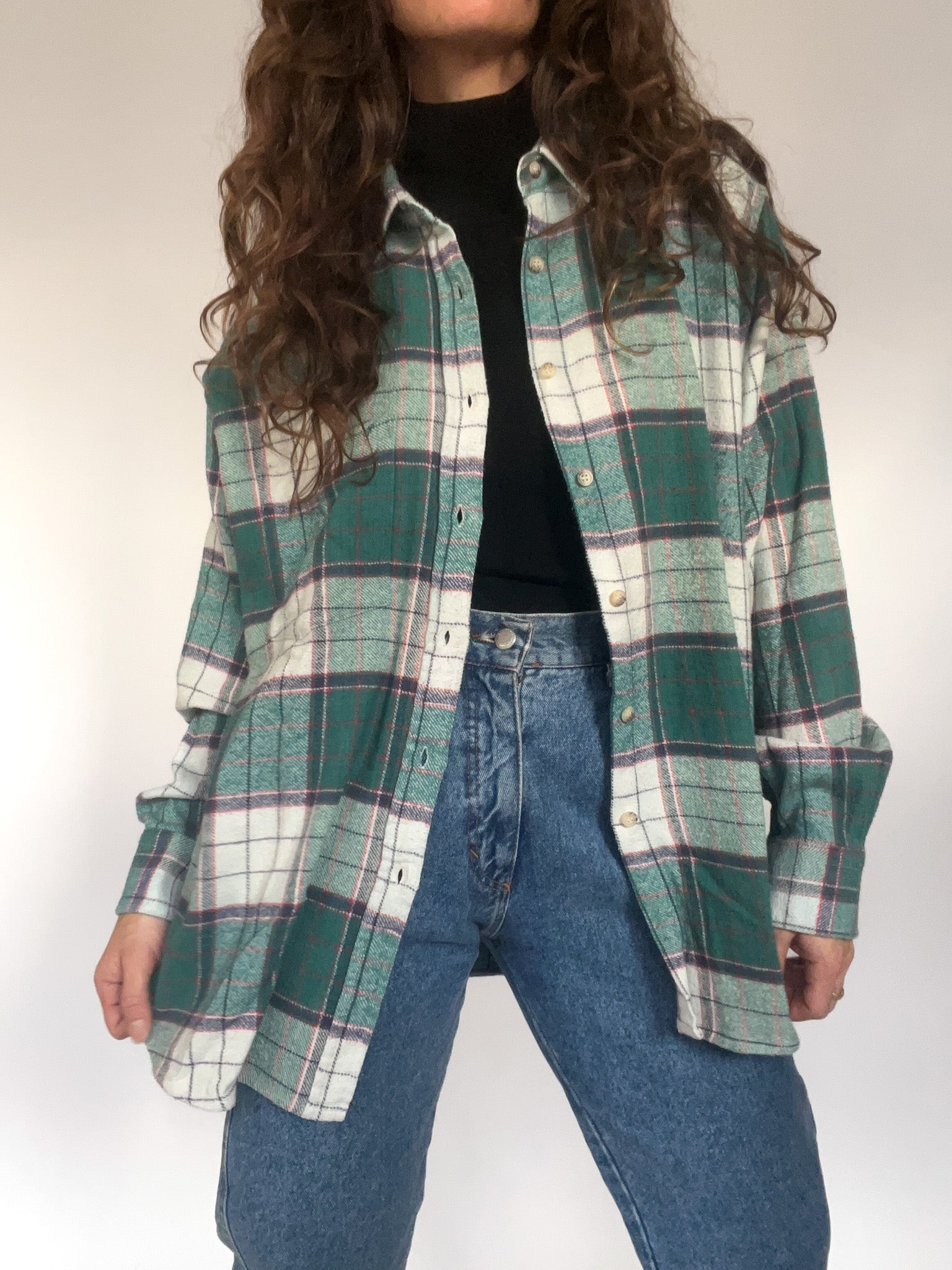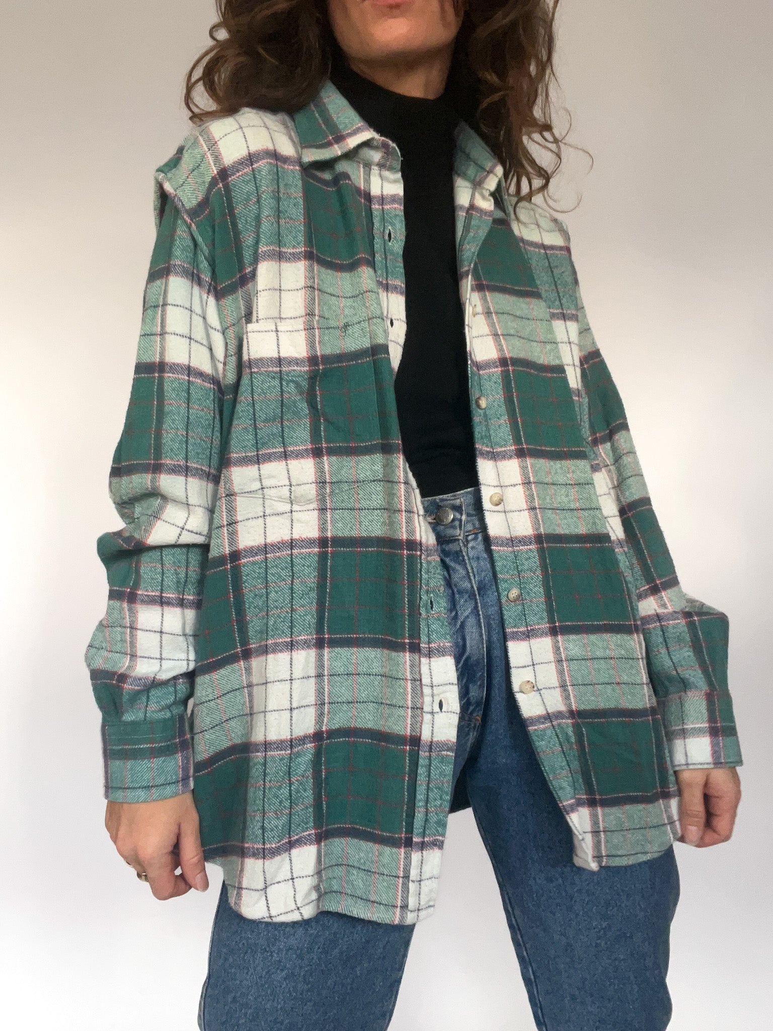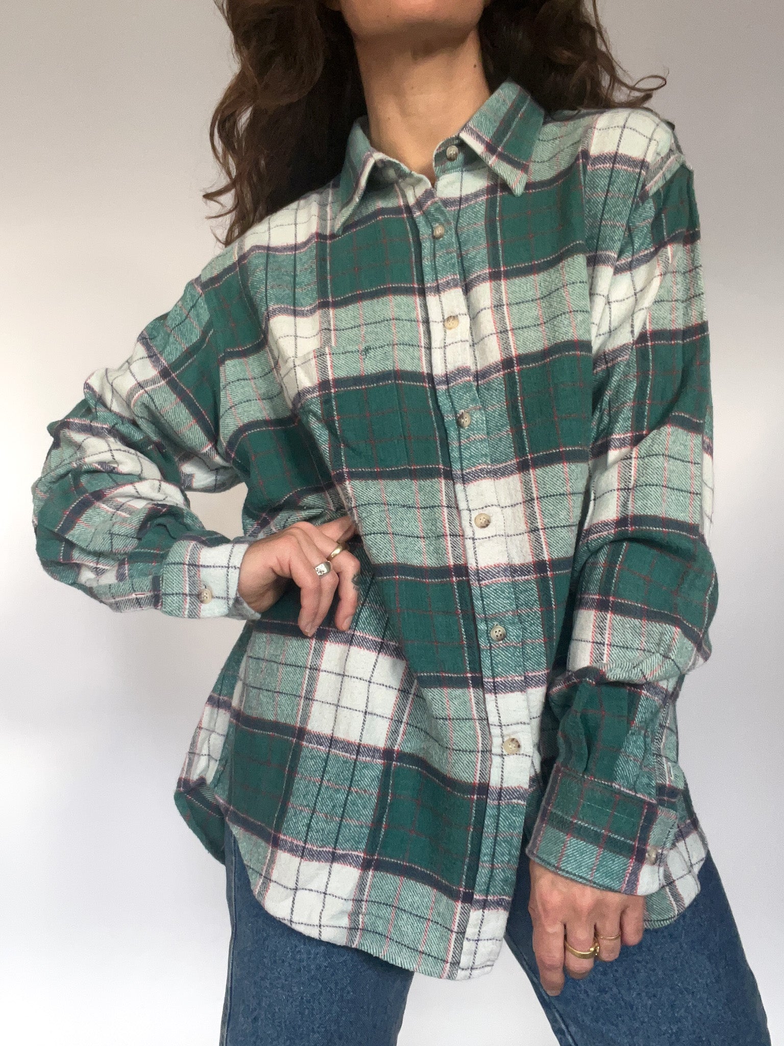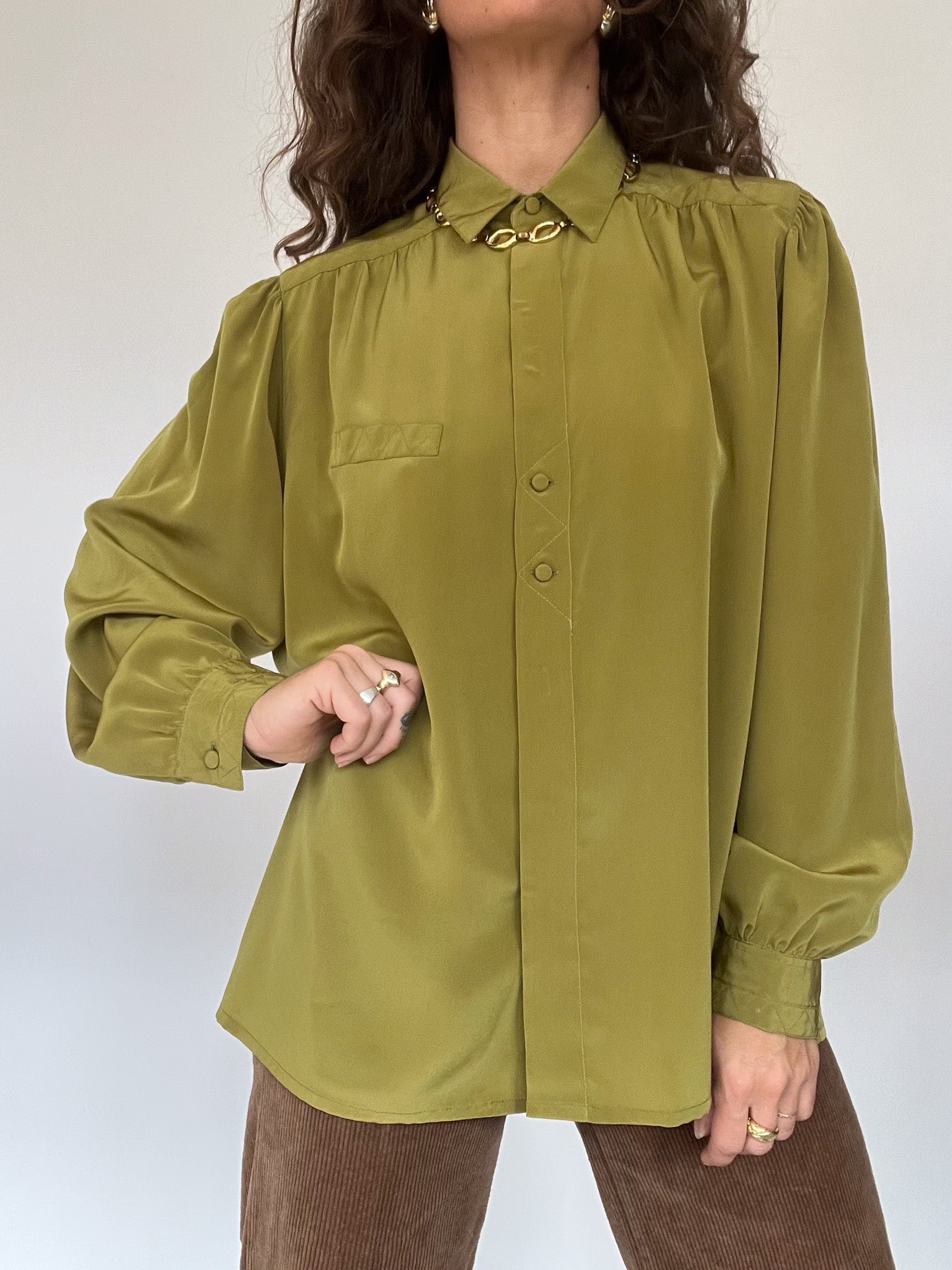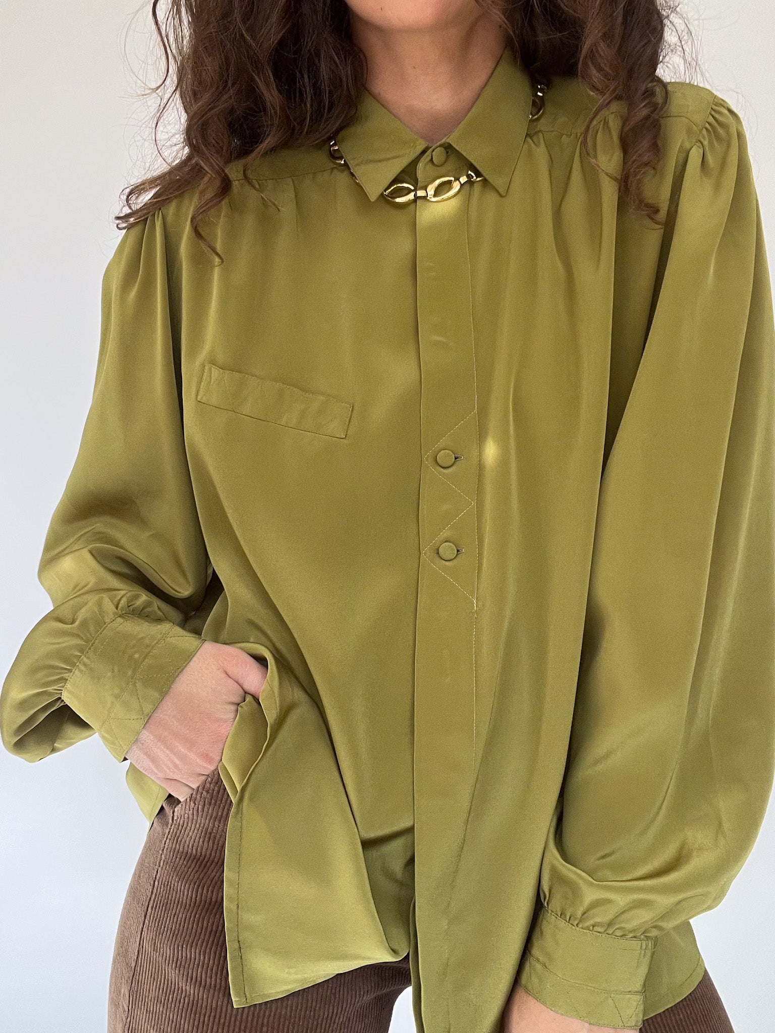 Vintage 80’s Teal Minimalist Button-Down Blouse