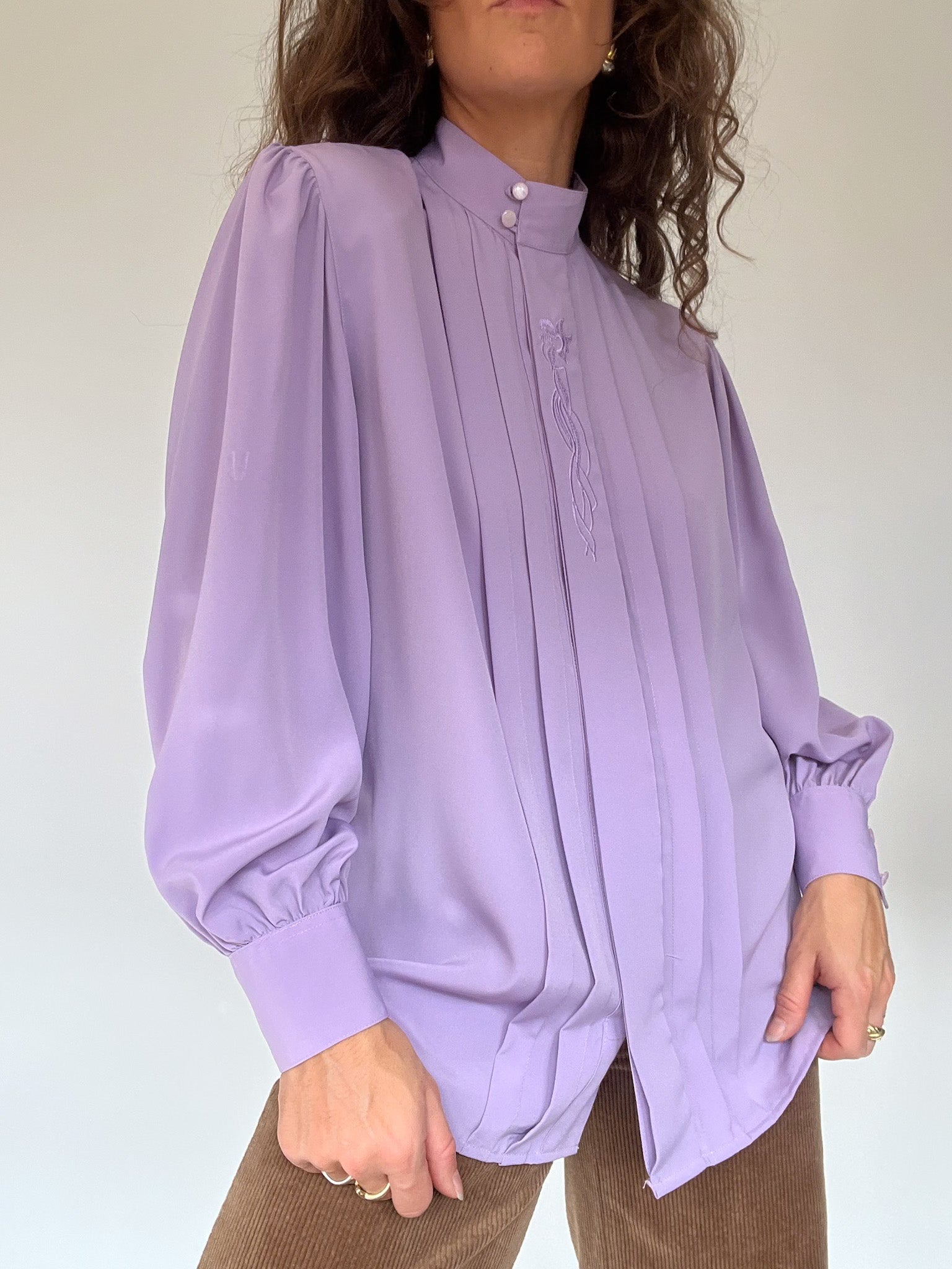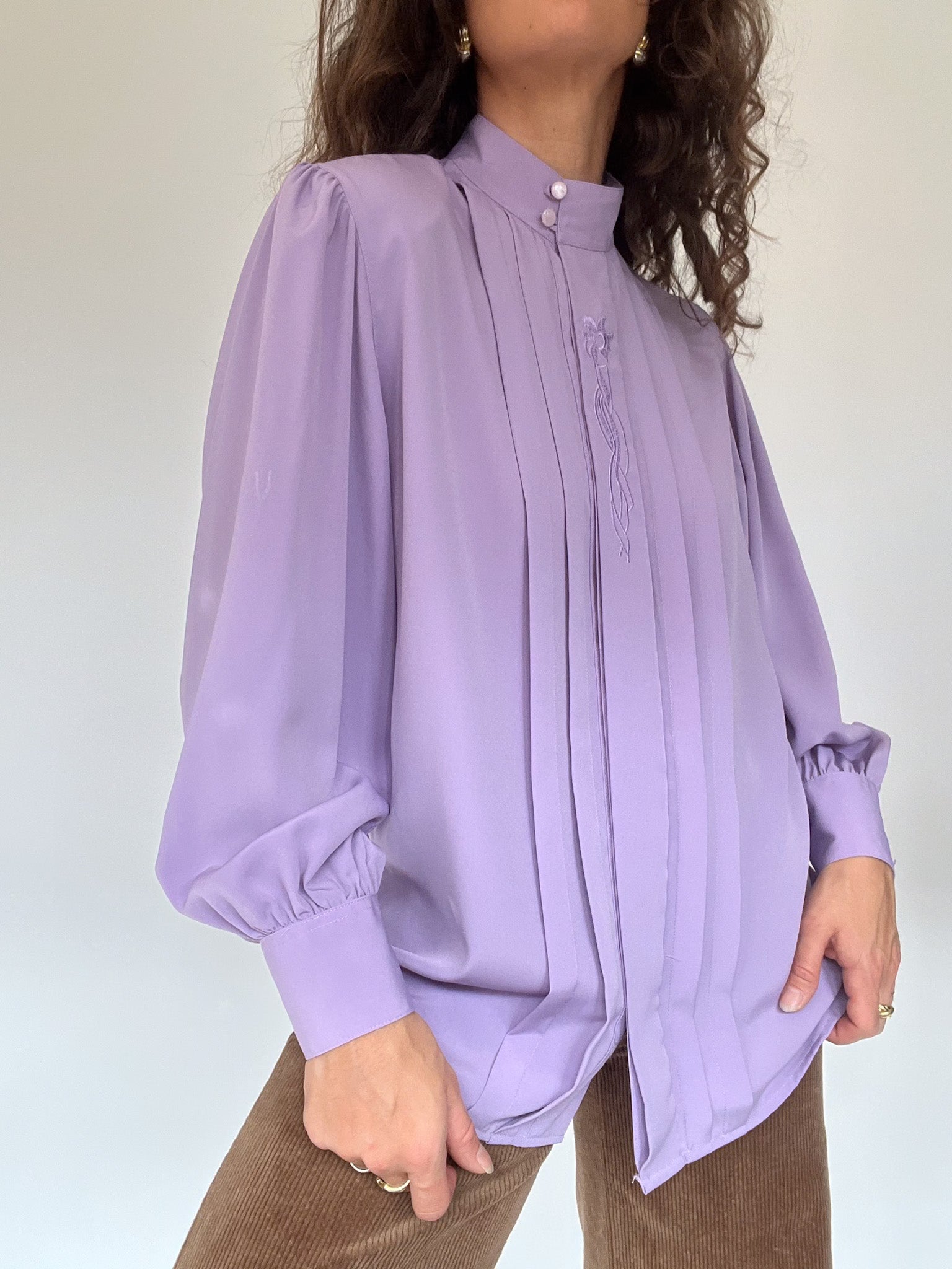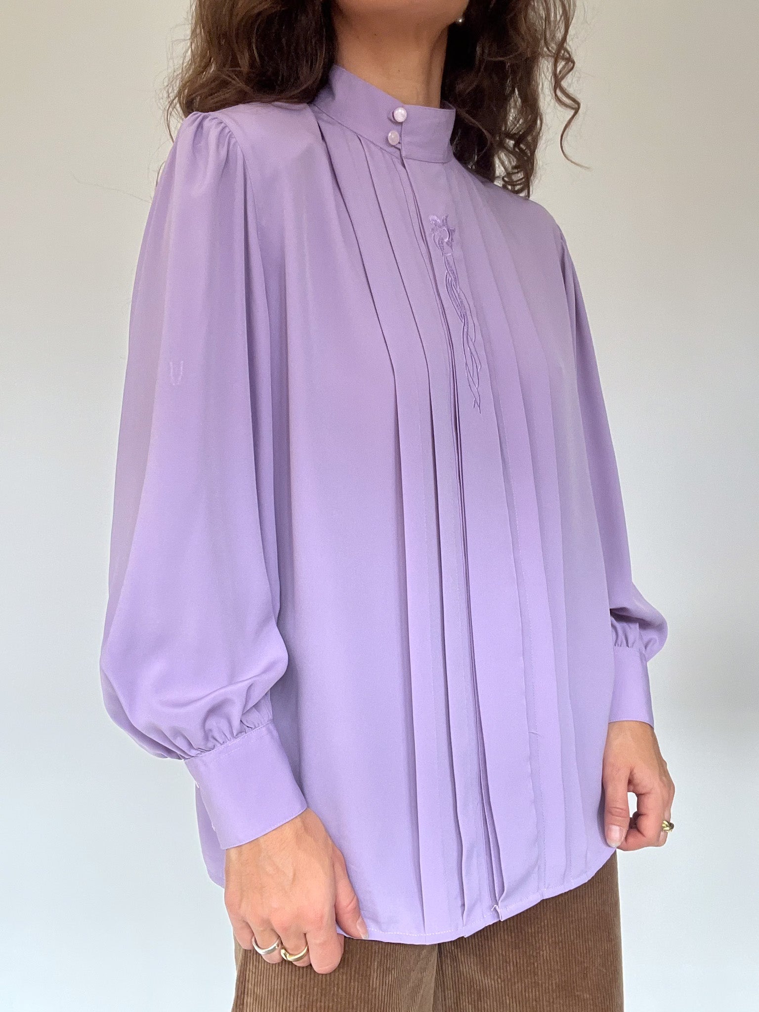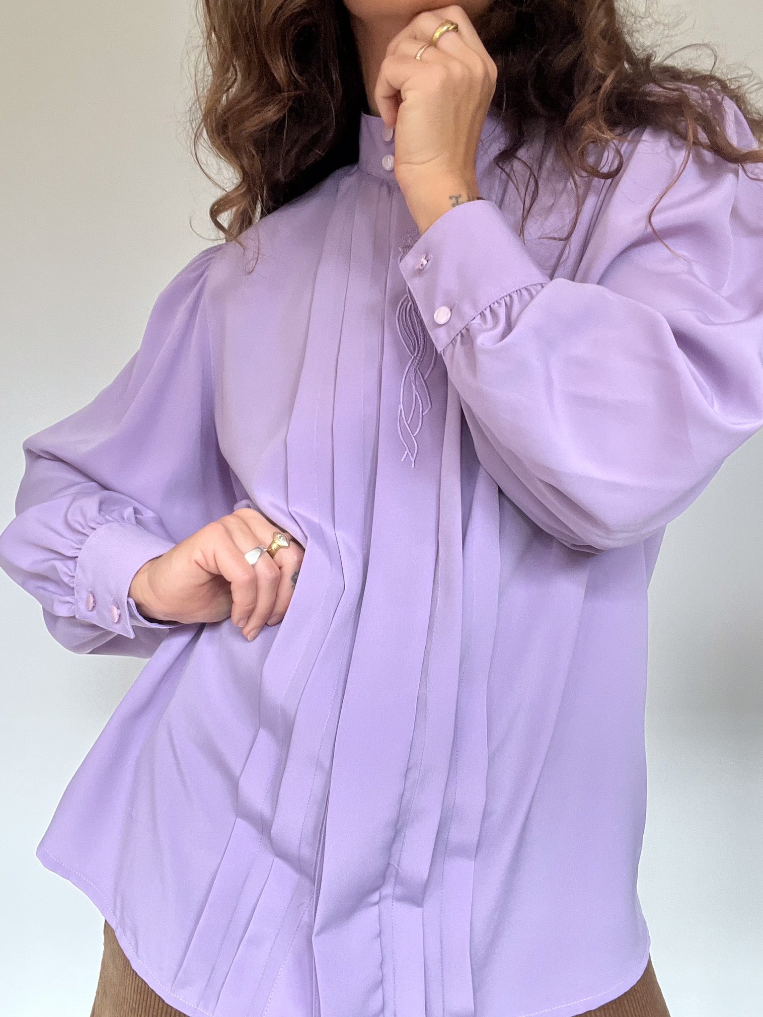 Vintage 80’s Lilac Pleated High-Neck Blouse
