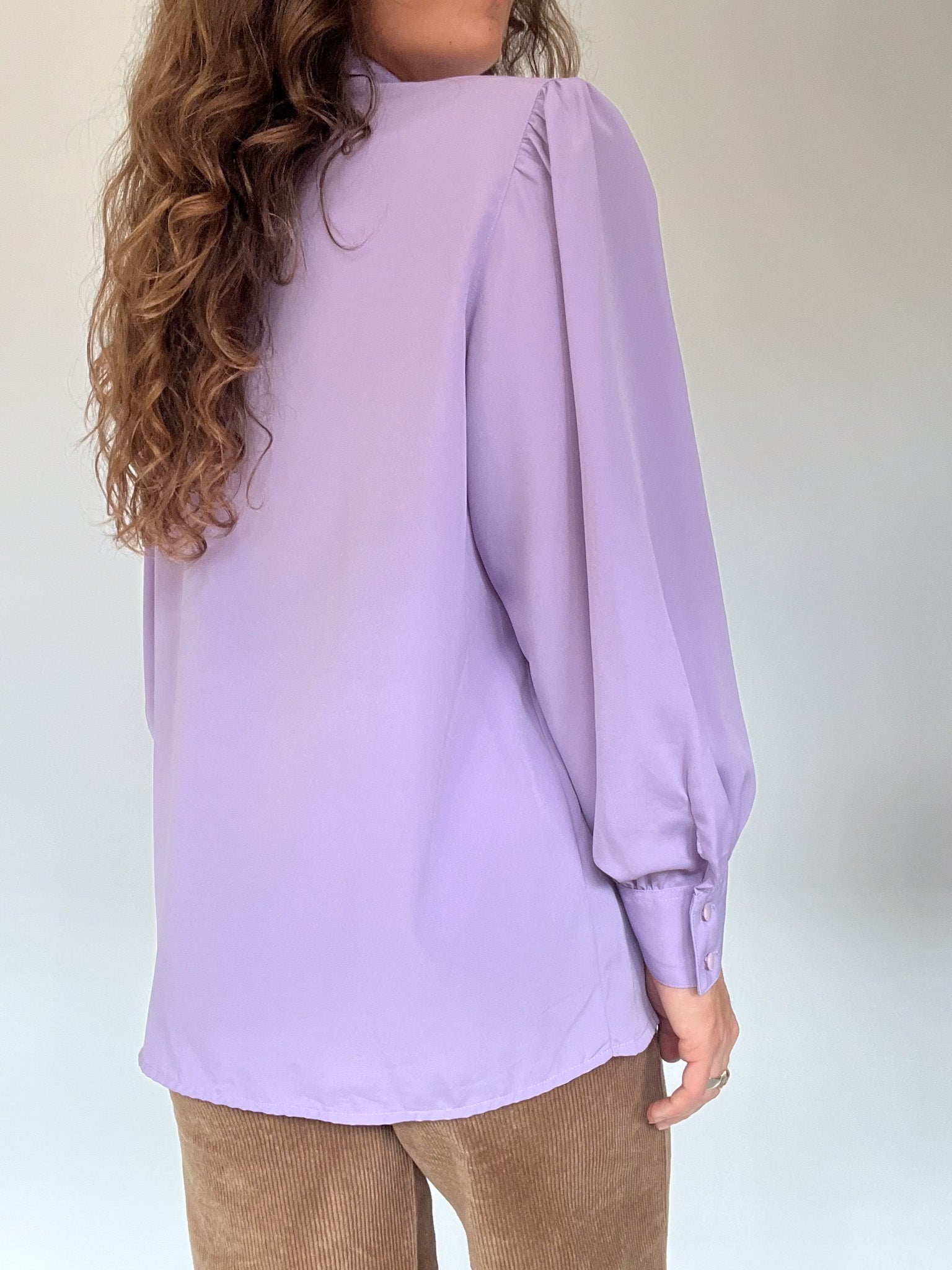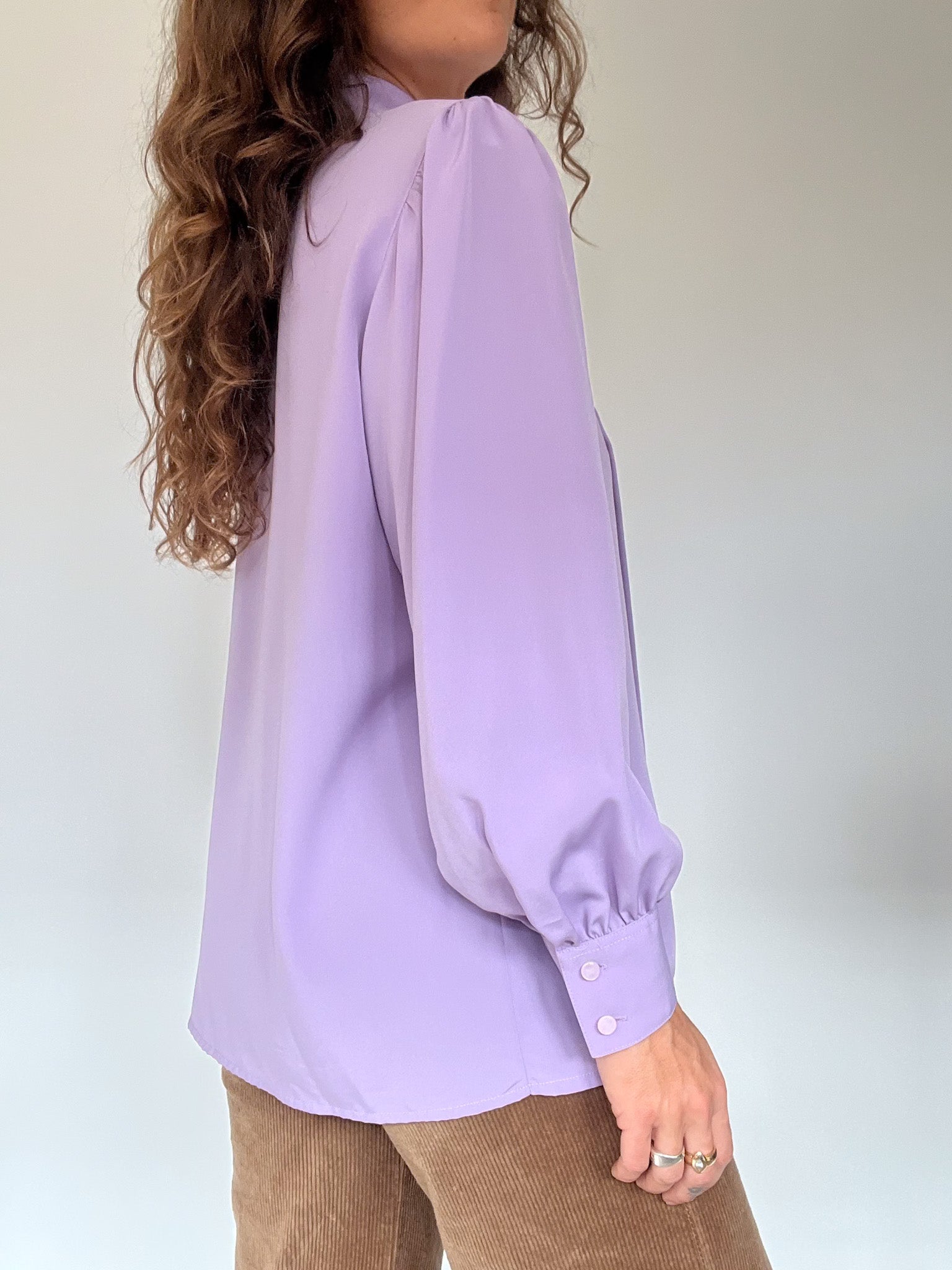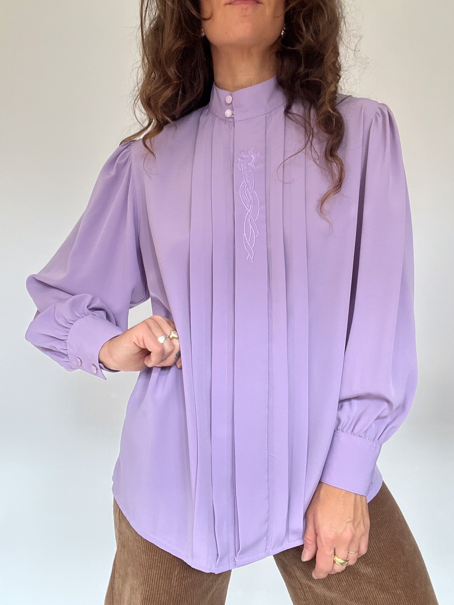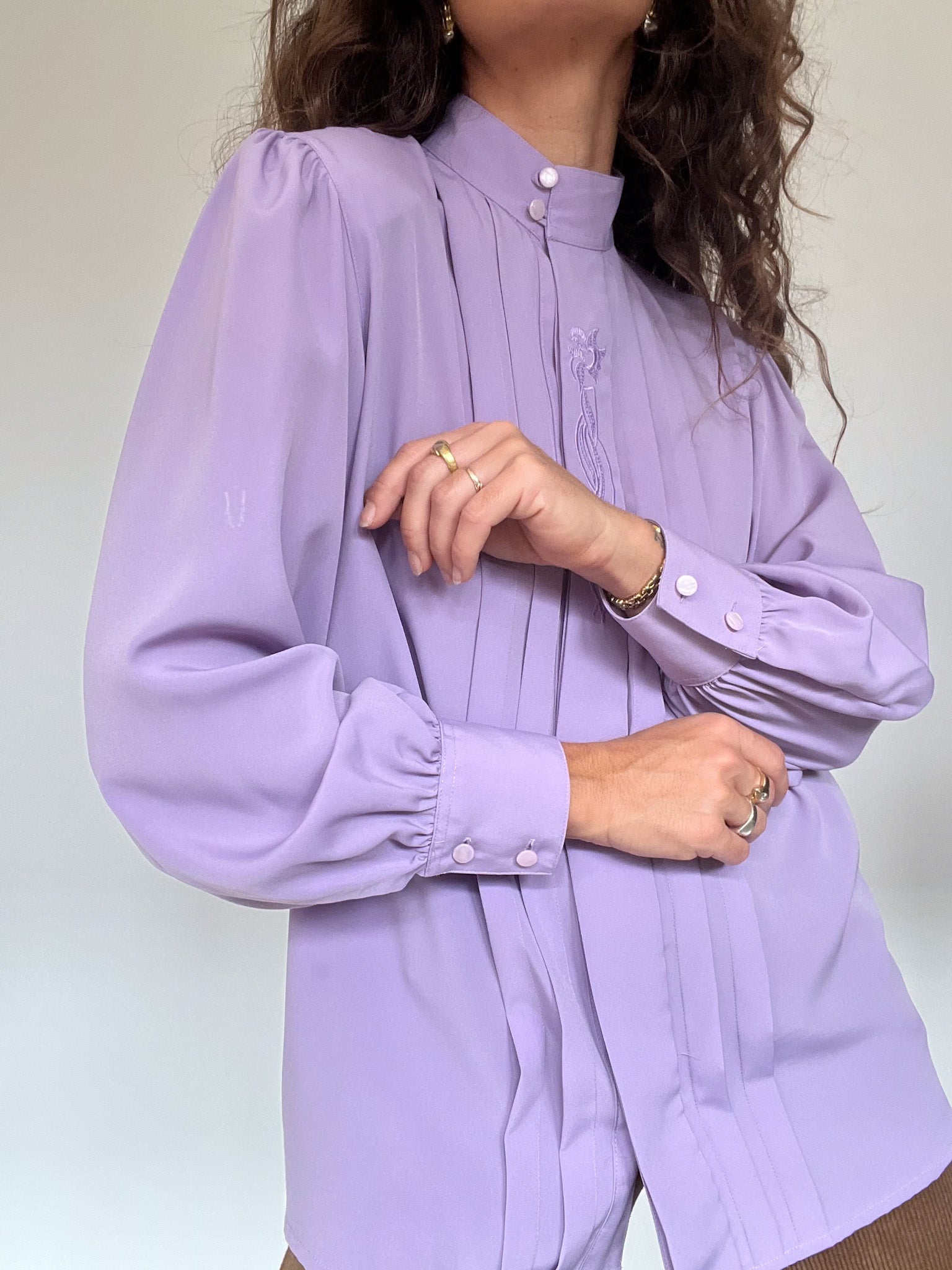 Vintage 80’s Lilac Pleated High-Neck Blouse