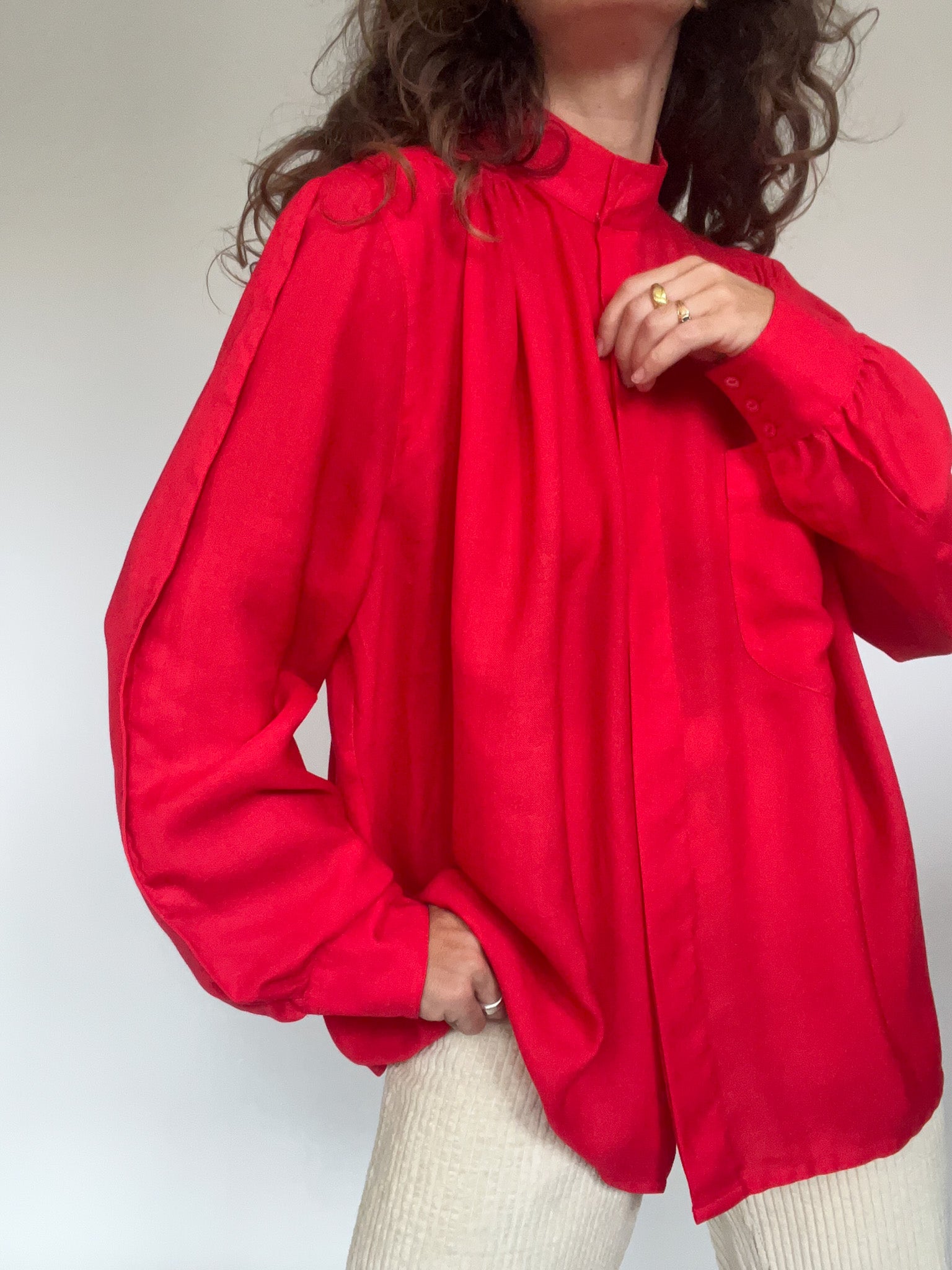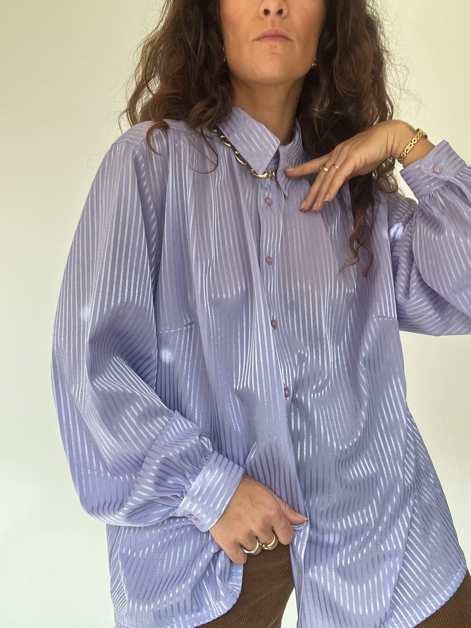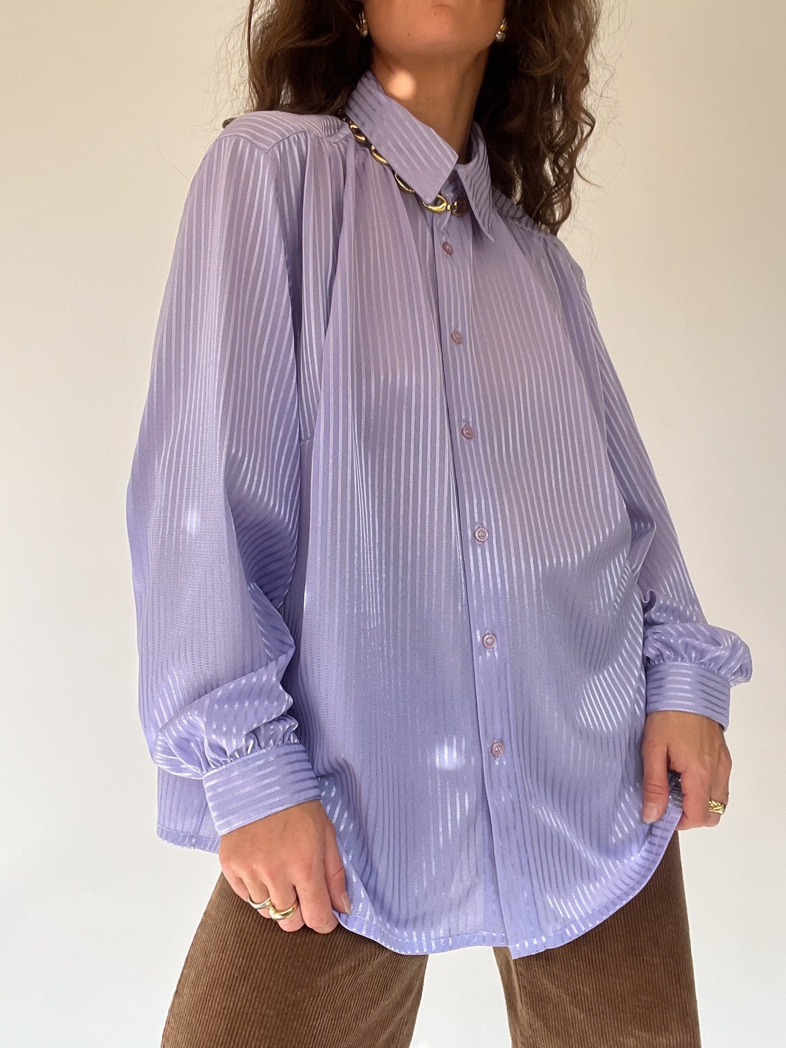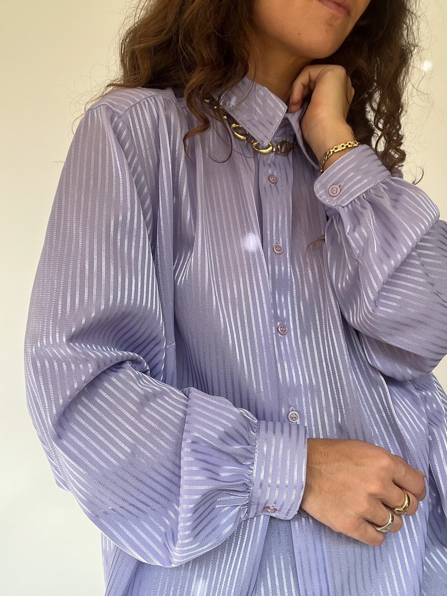 Vintage 80’s Lilac Pleated High-Neck Blouse