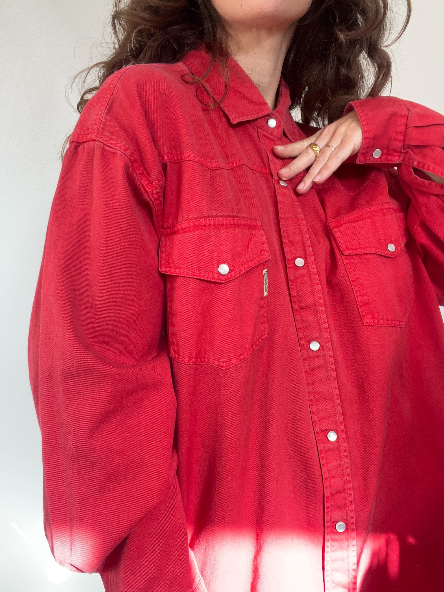 Vintage 90’s Black Embroidered Cotton Shirt-Jacket