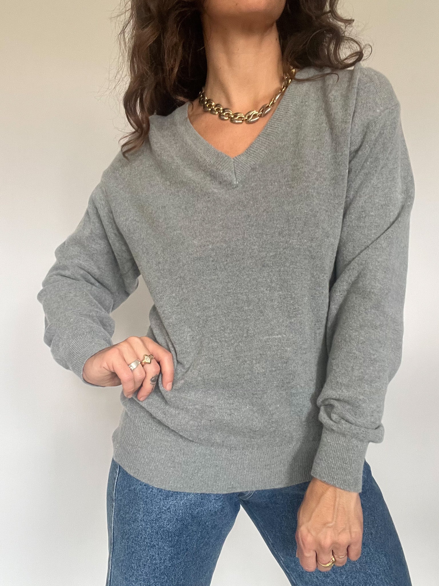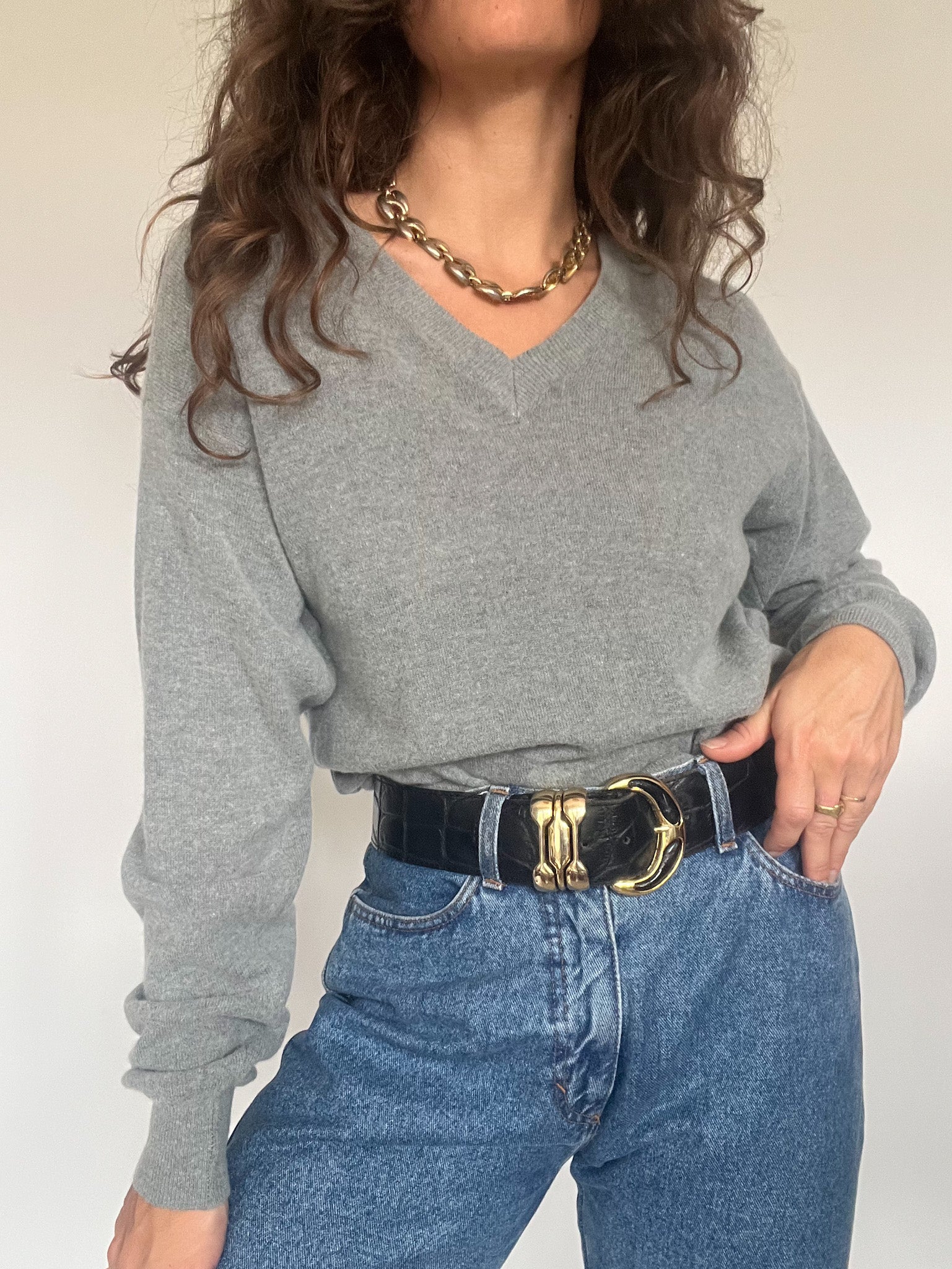 Vintage 90’s Black Merino Wool V-Neck Sweater