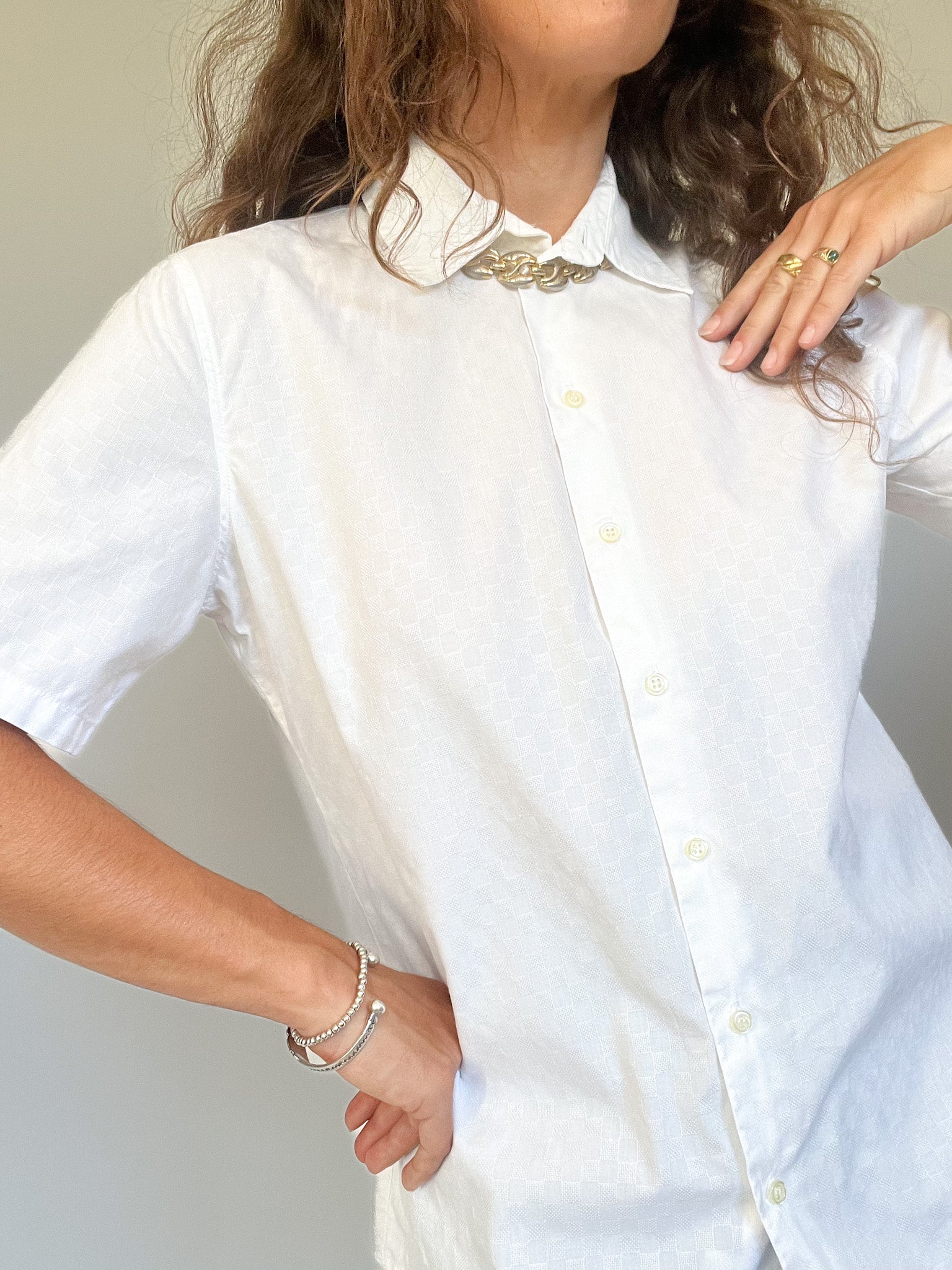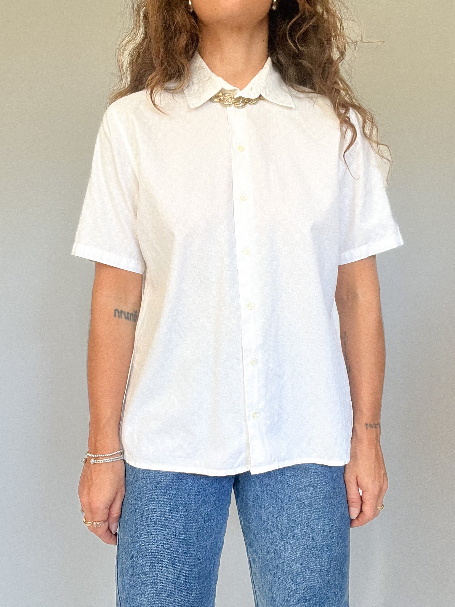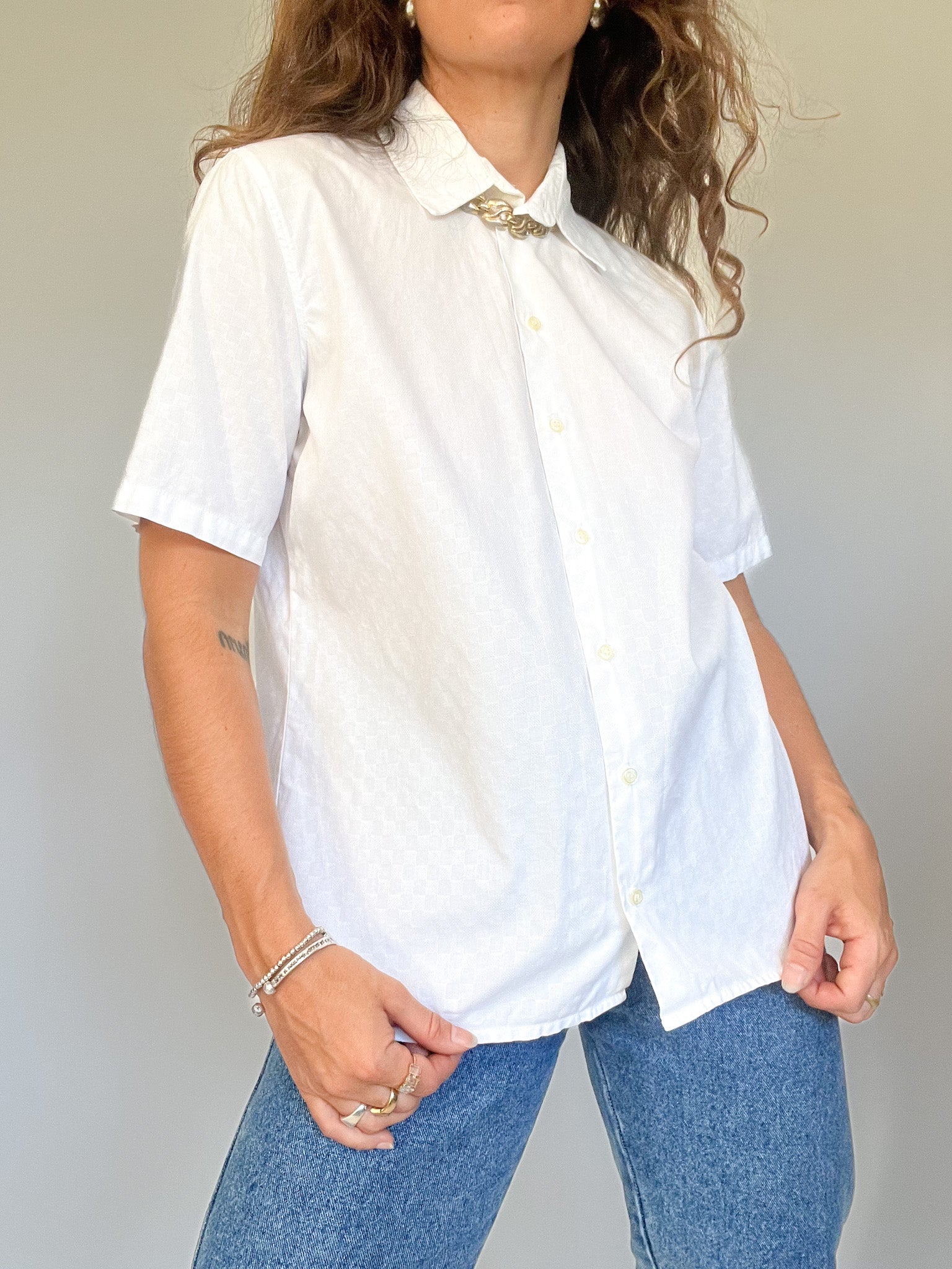 Vintage 90’s White Cotton Short Sleeve Shirt by Olivier Grant