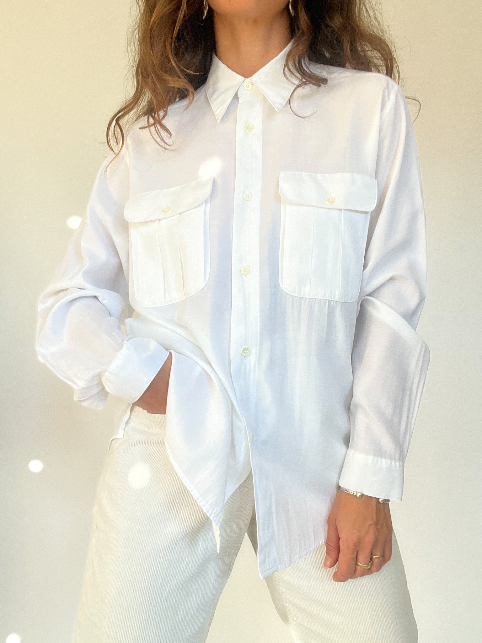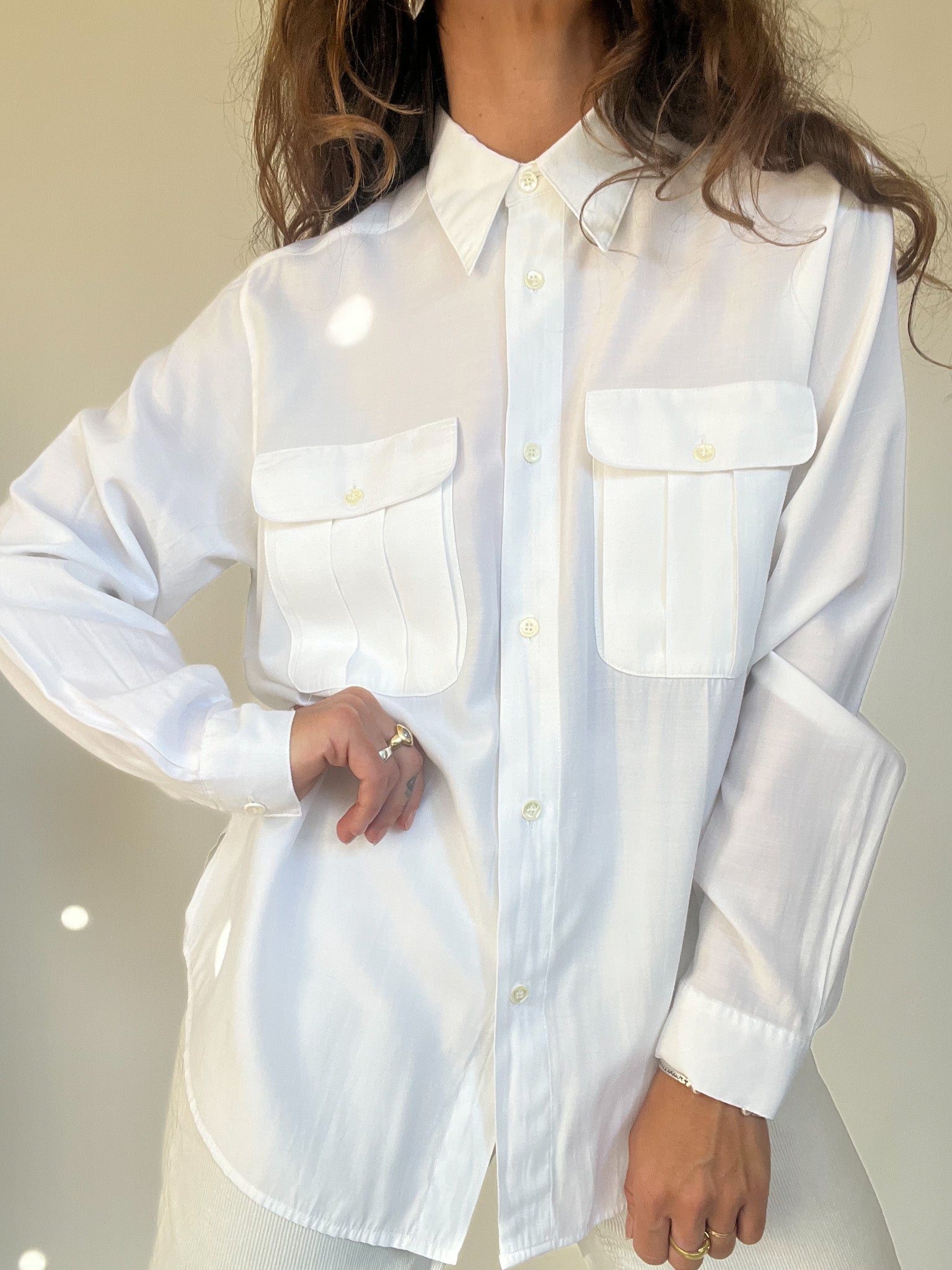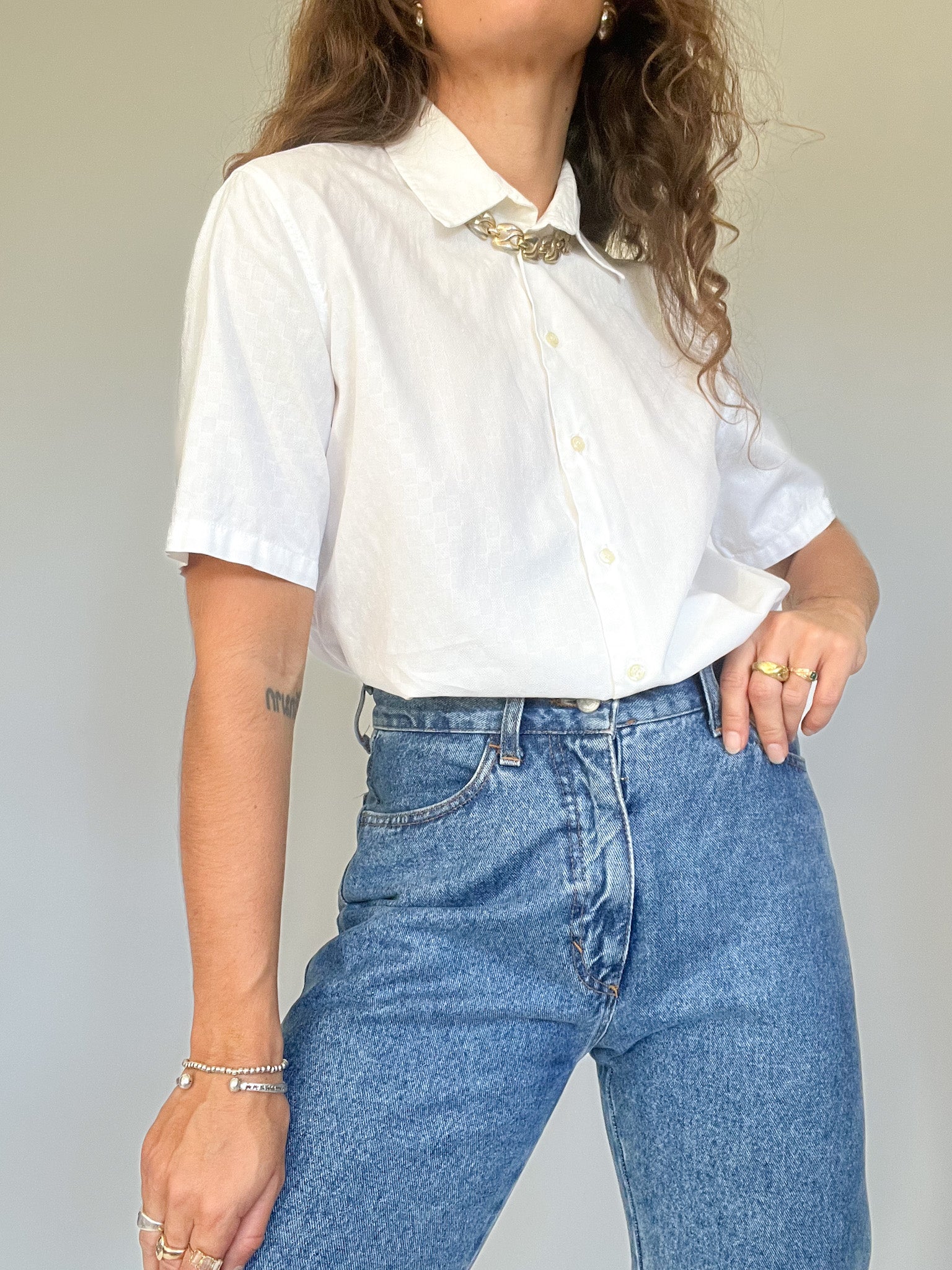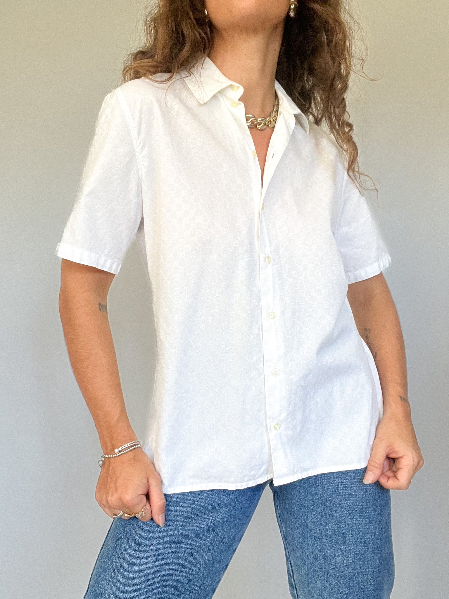 Vintage 90’s White Cotton Short Sleeve Shirt by Olivier Grant
