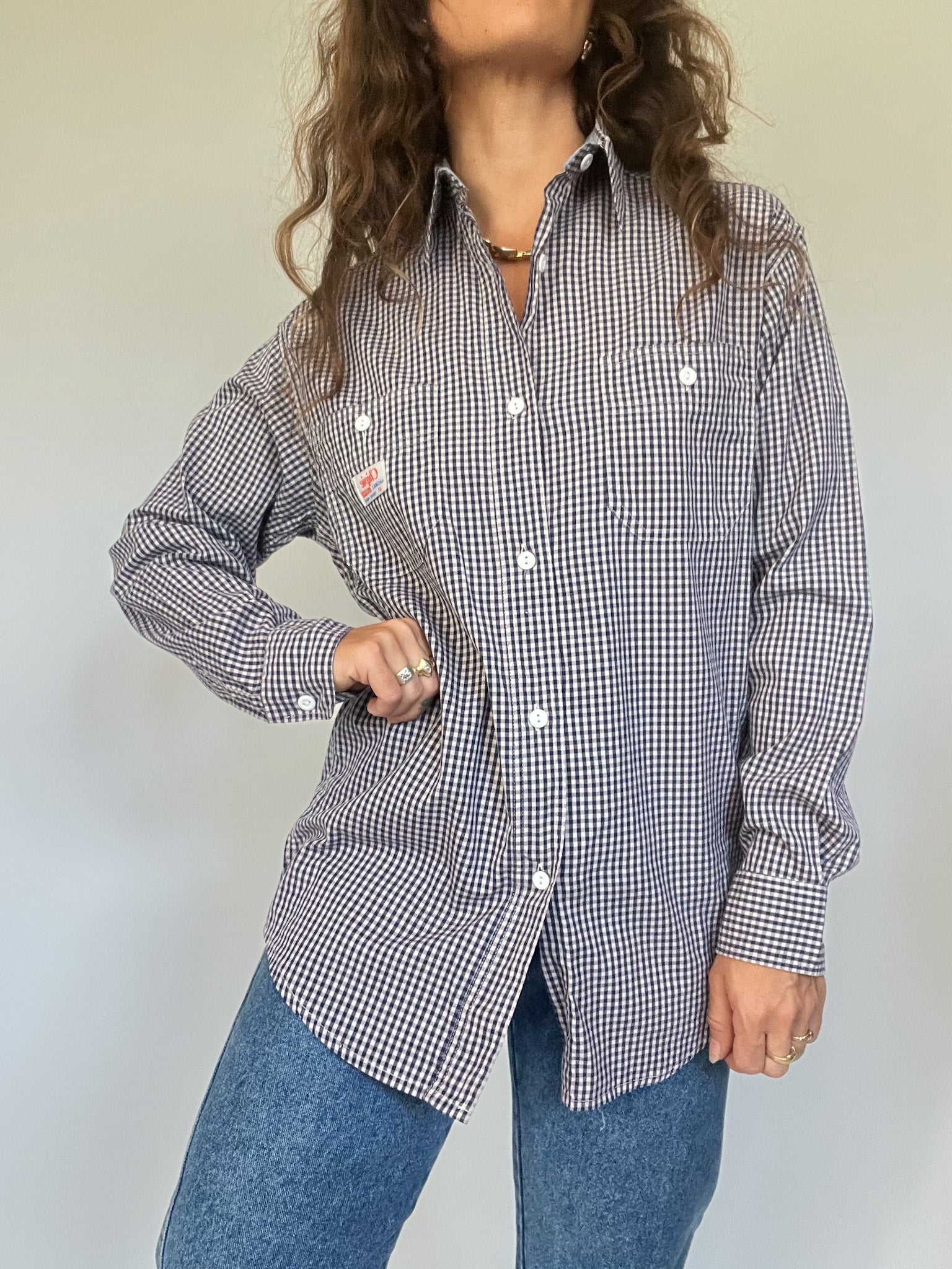 Vintage 90’s Chipie Navy & White Gingham Shirt